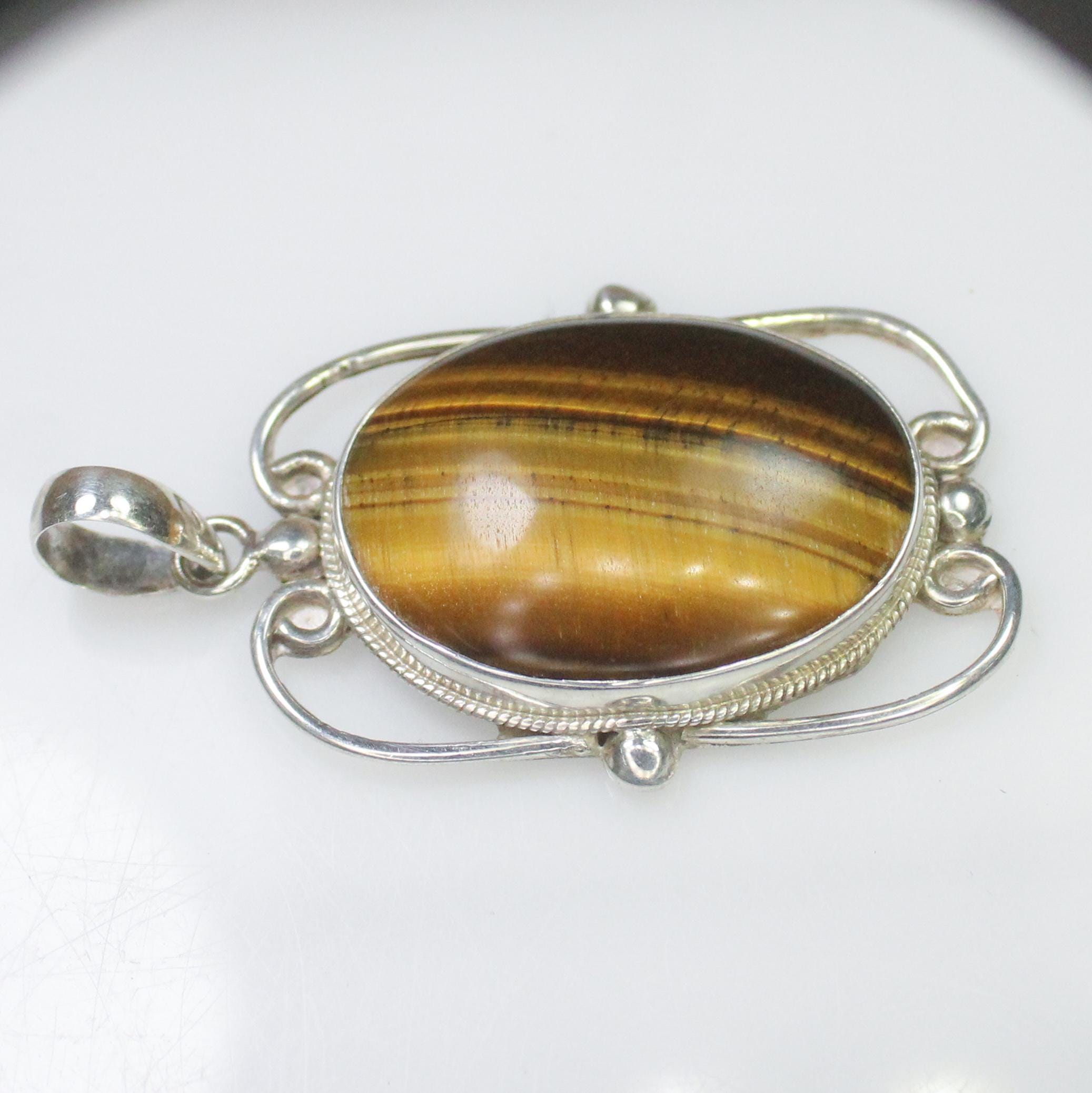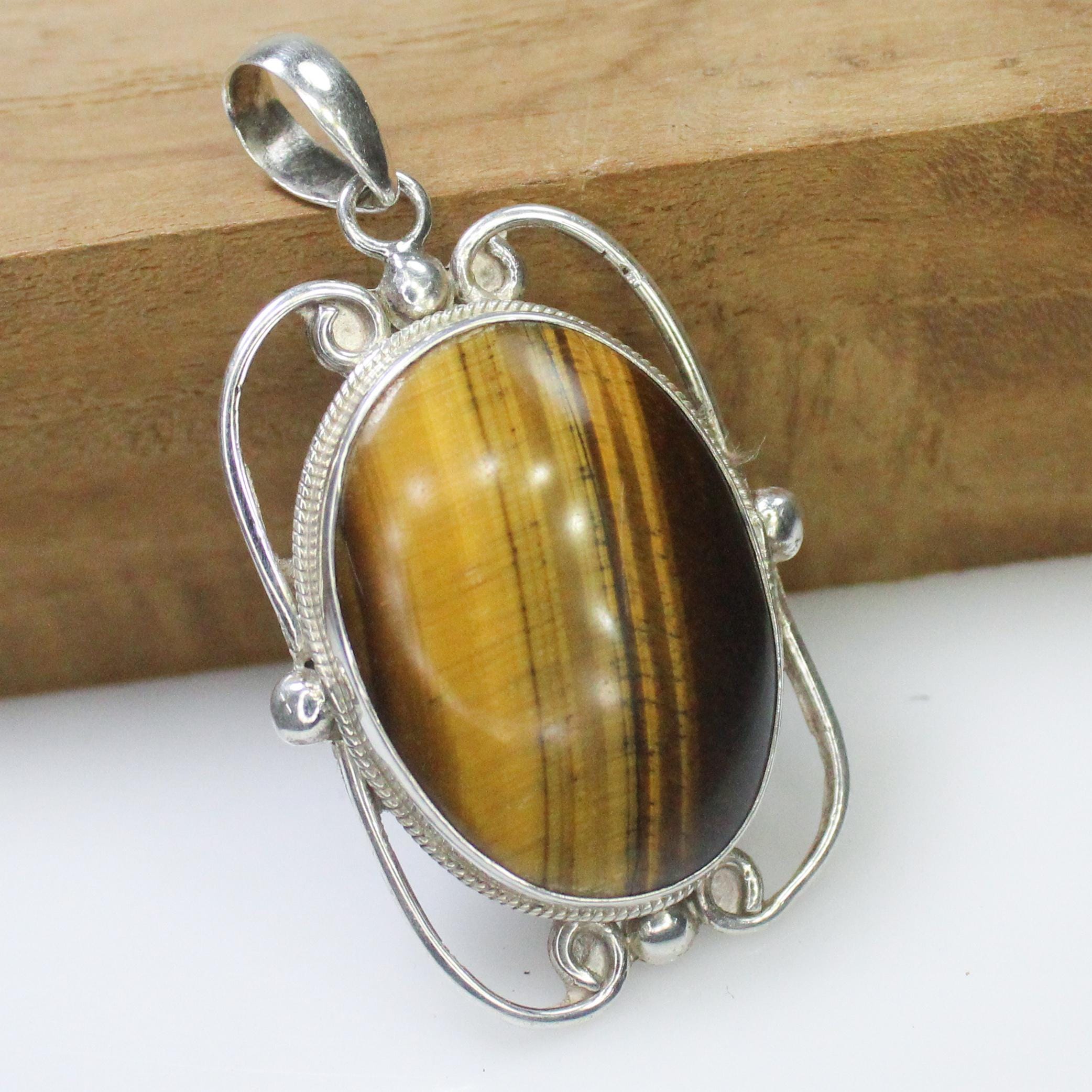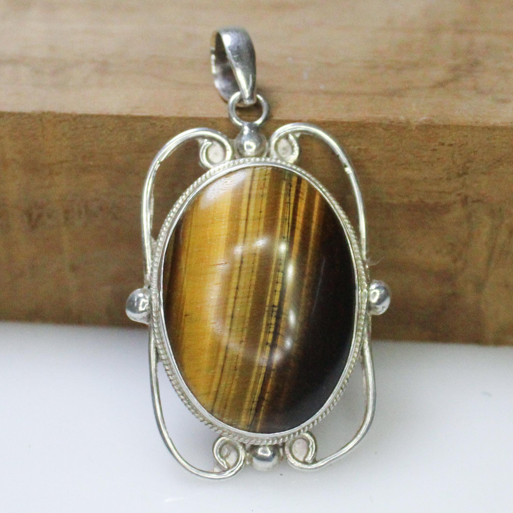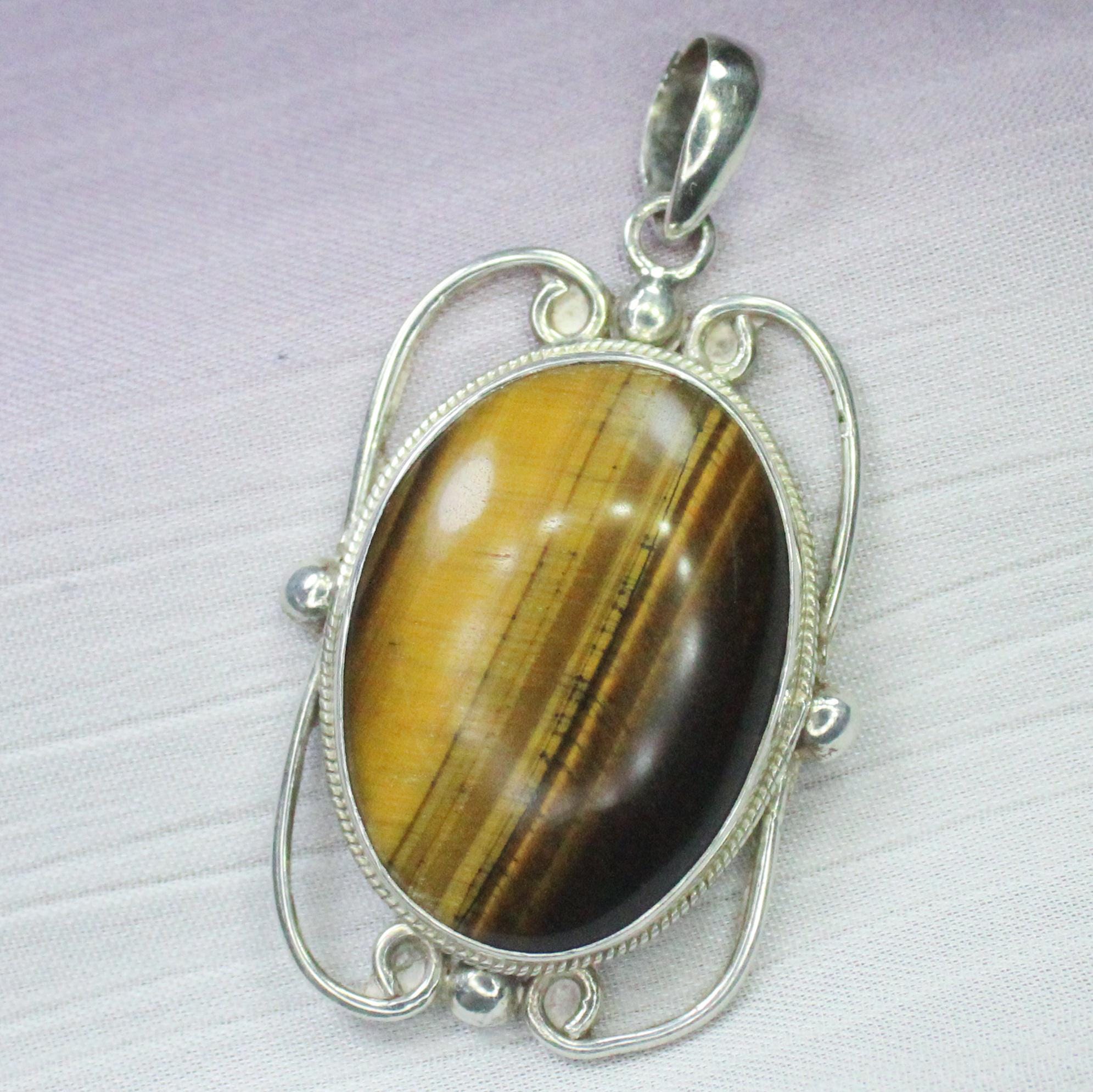 NATURAL YELLOW TIGER EYE PENDANT WITH STERLING SILVER