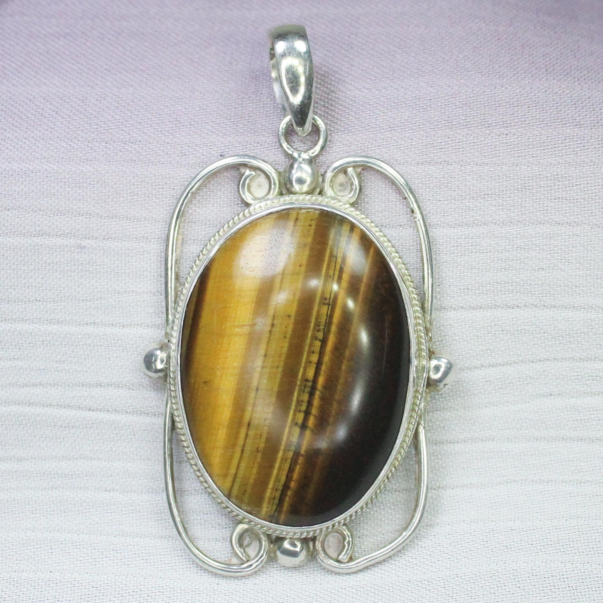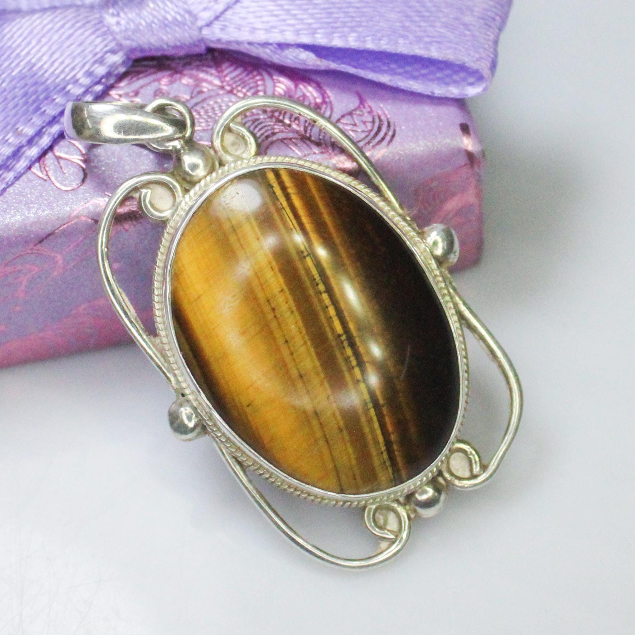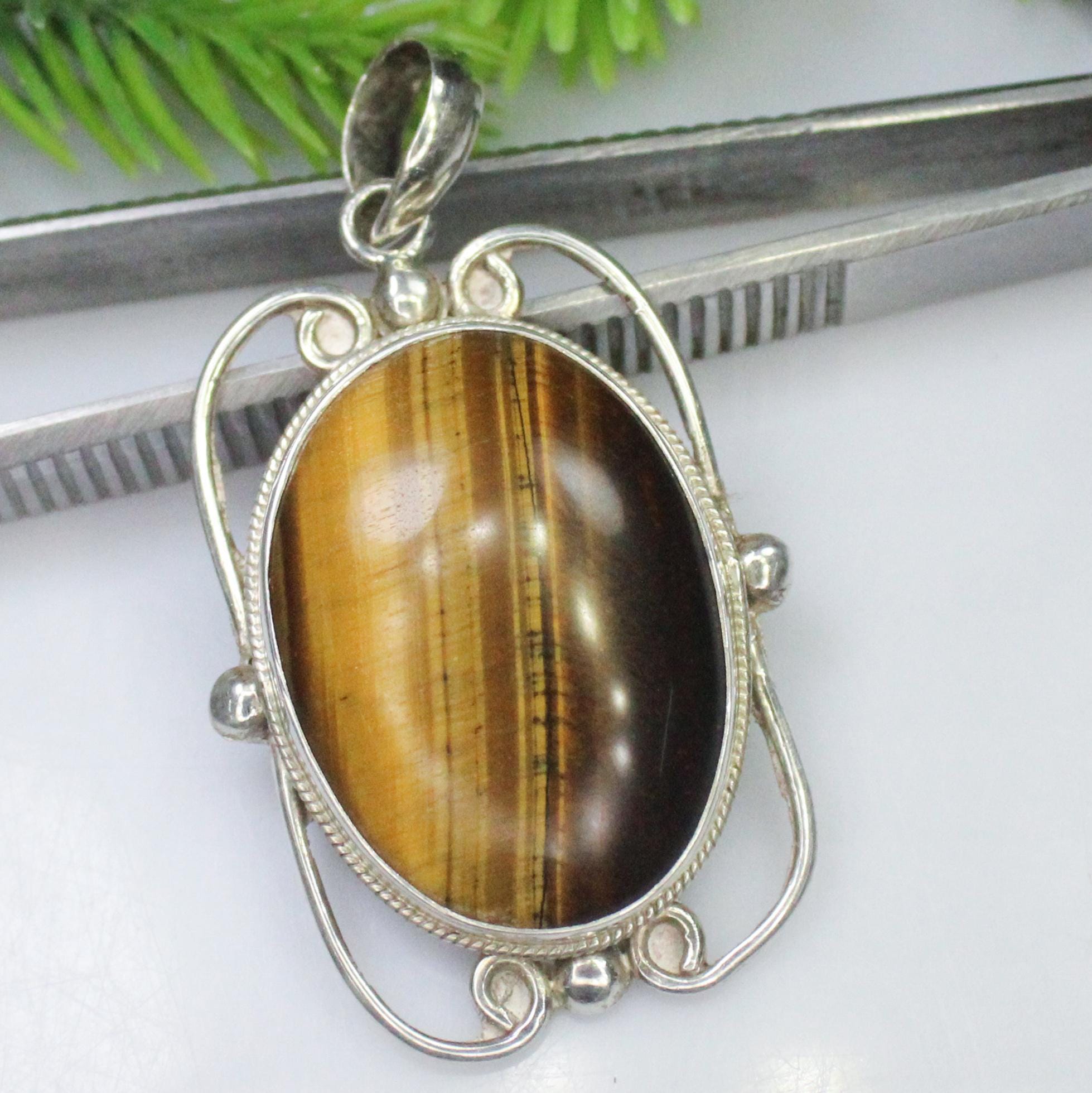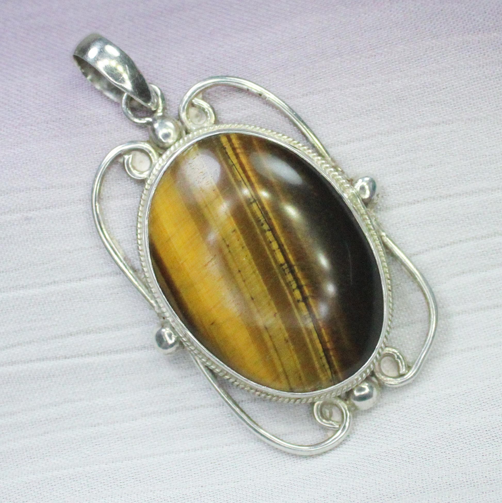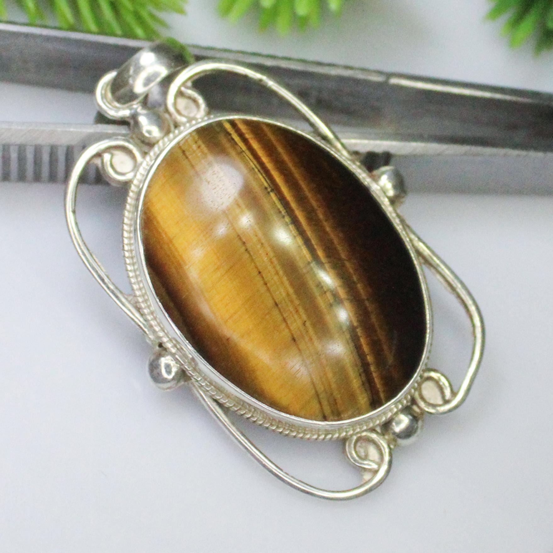 NATURAL YELLOW TIGER EYE PENDANT WITH STERLING SILVER
