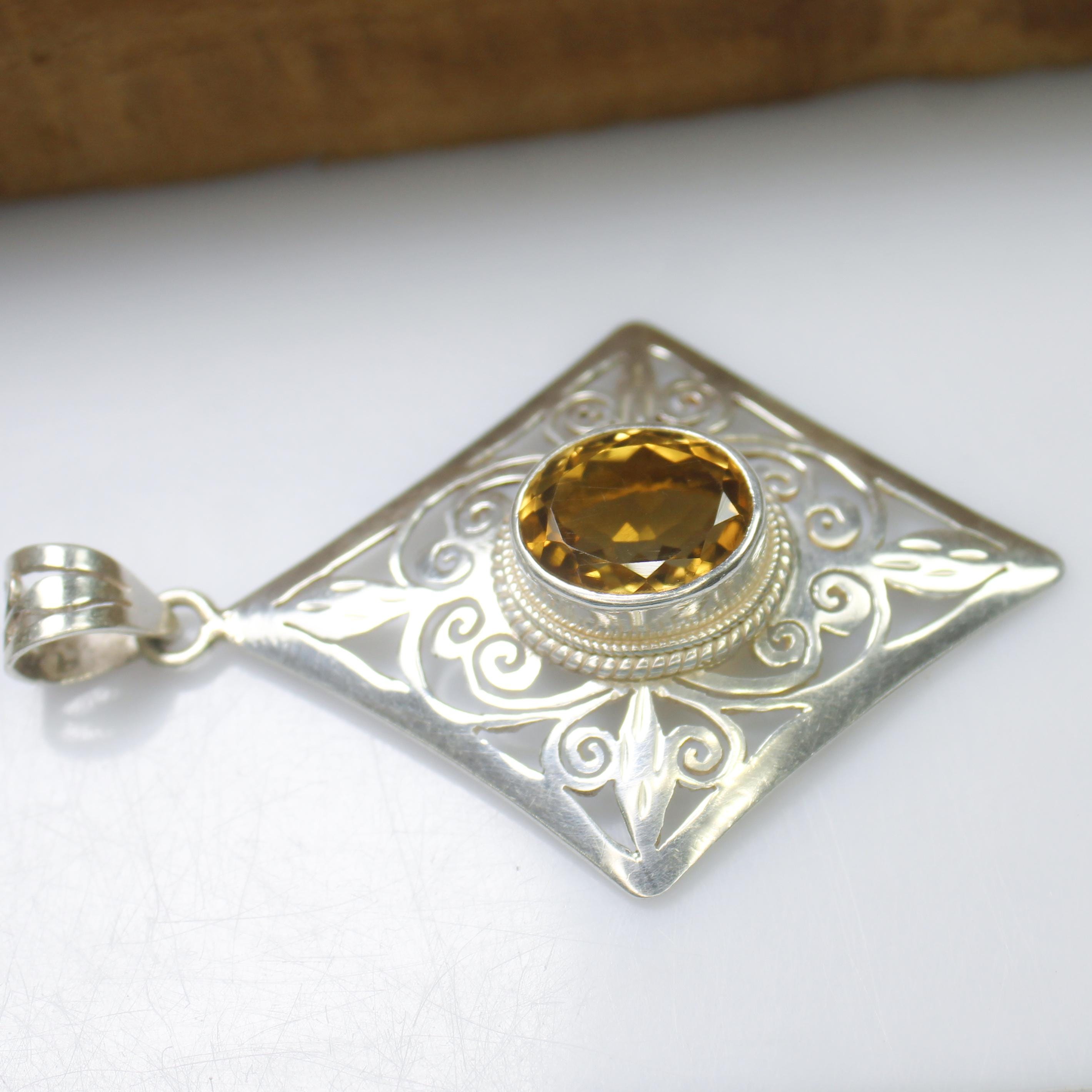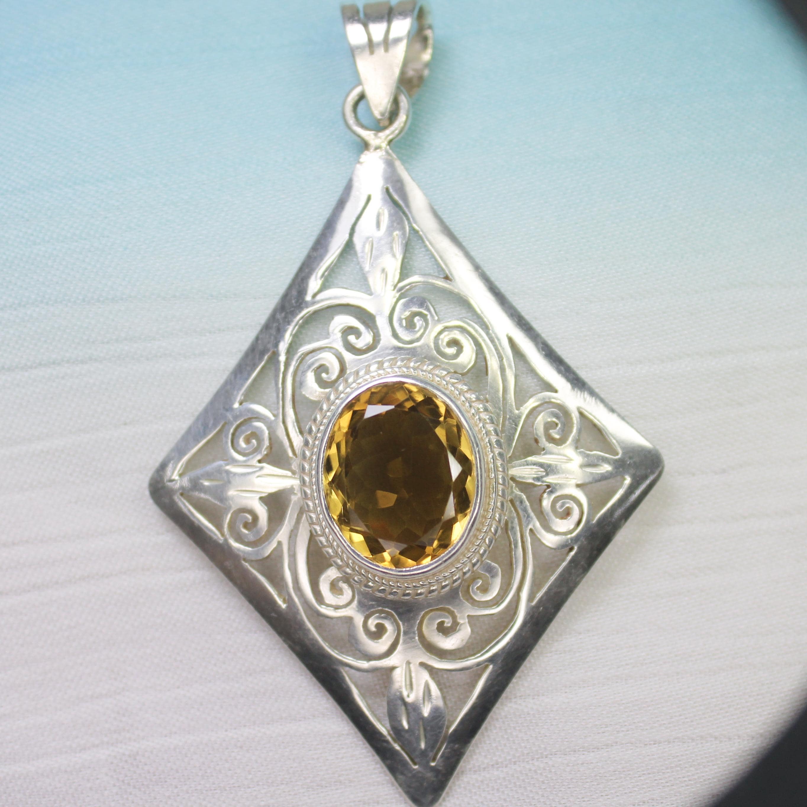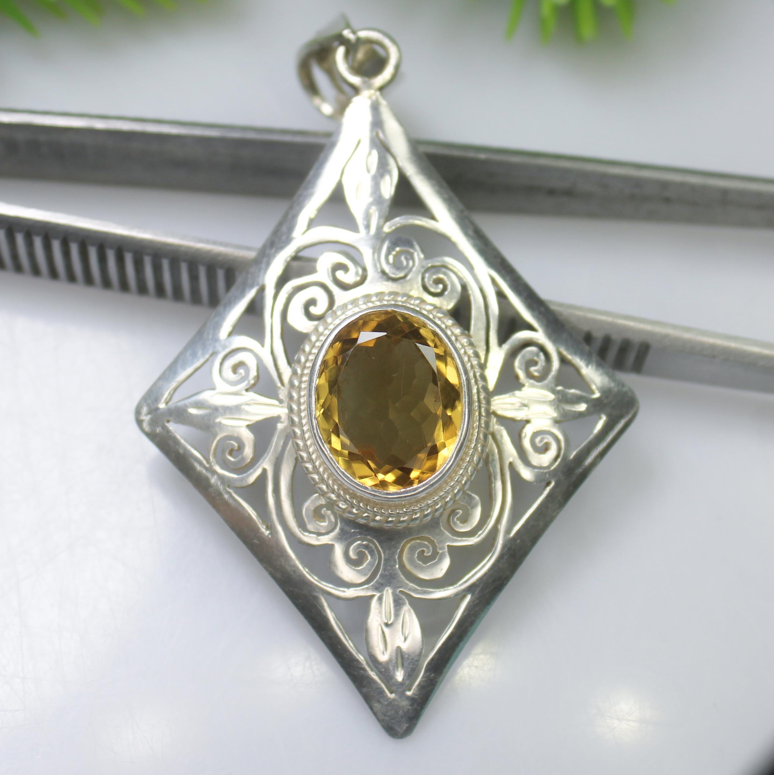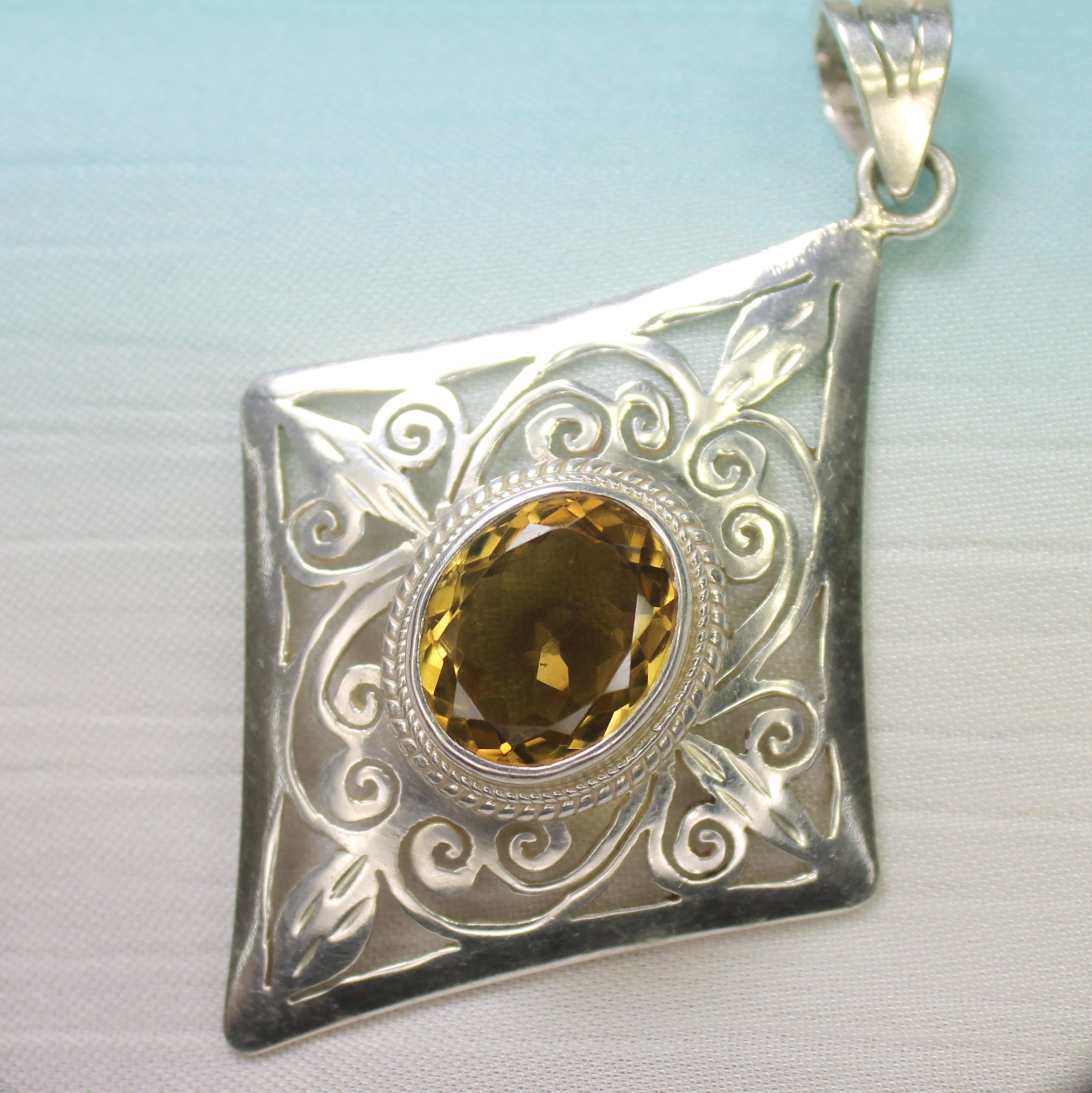 NATURAL YELLOW CITRINE PENDANT WITH STERLING SILVER