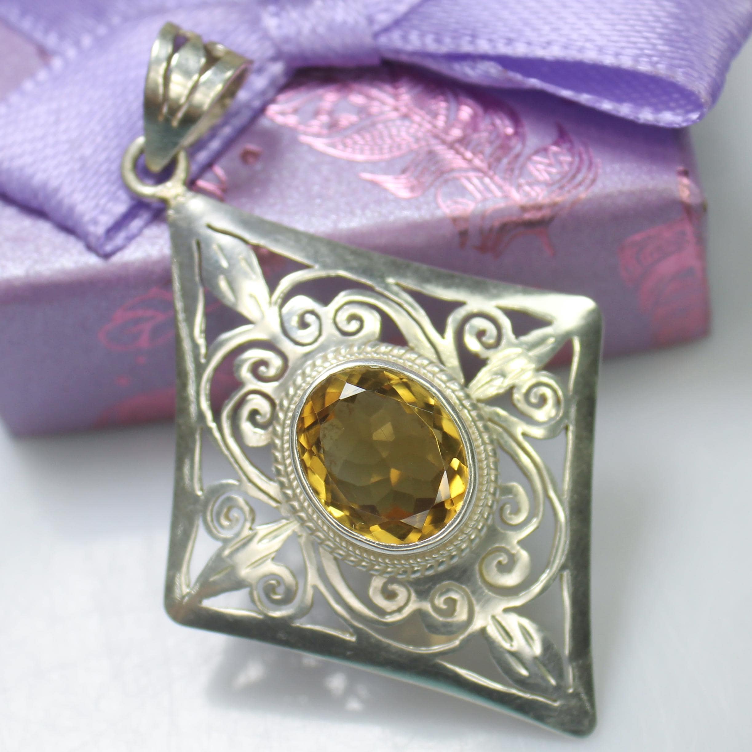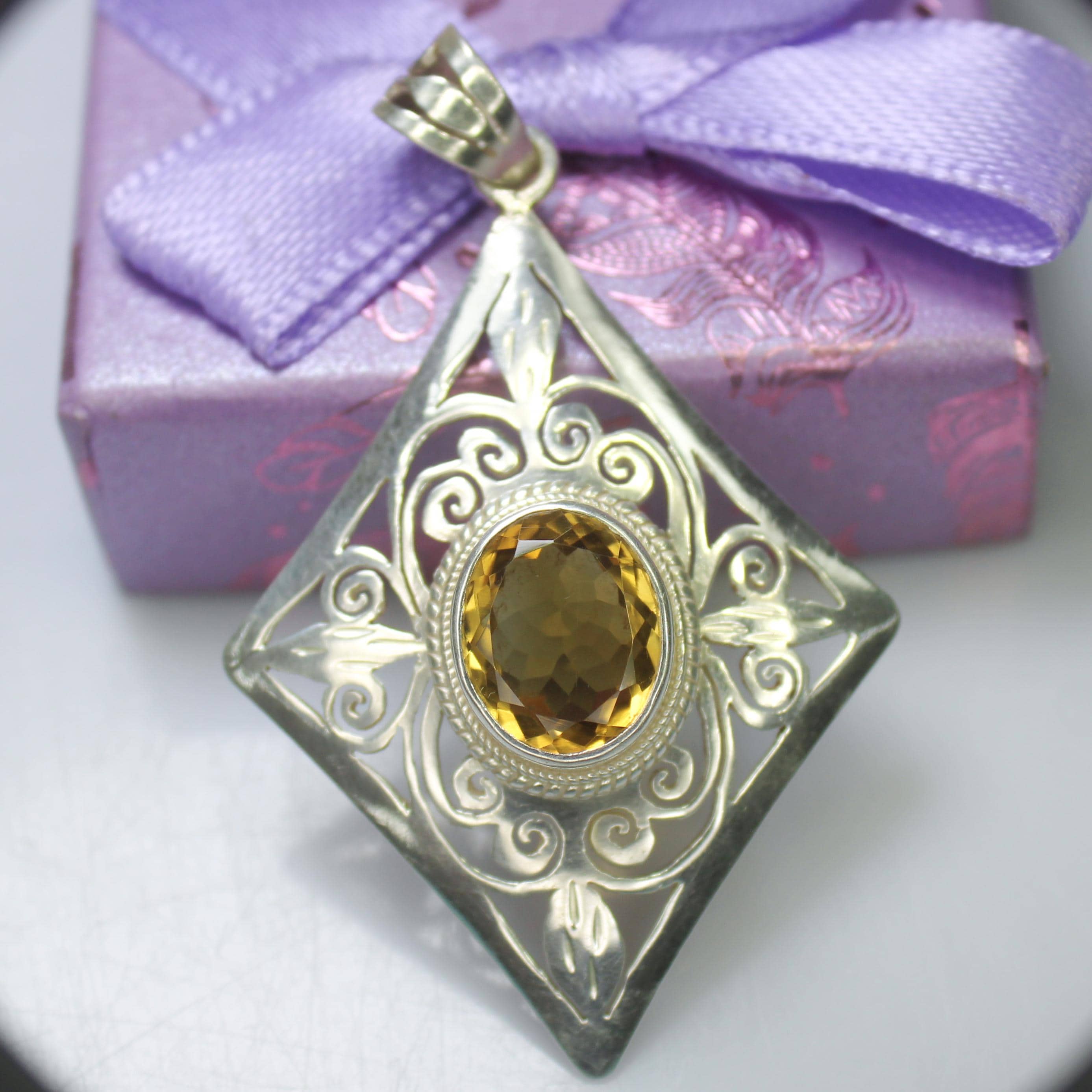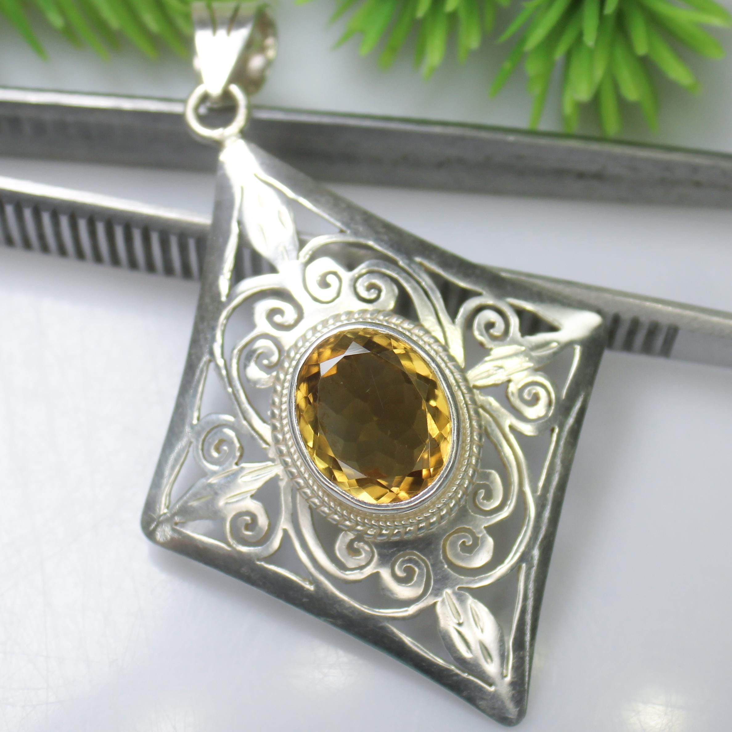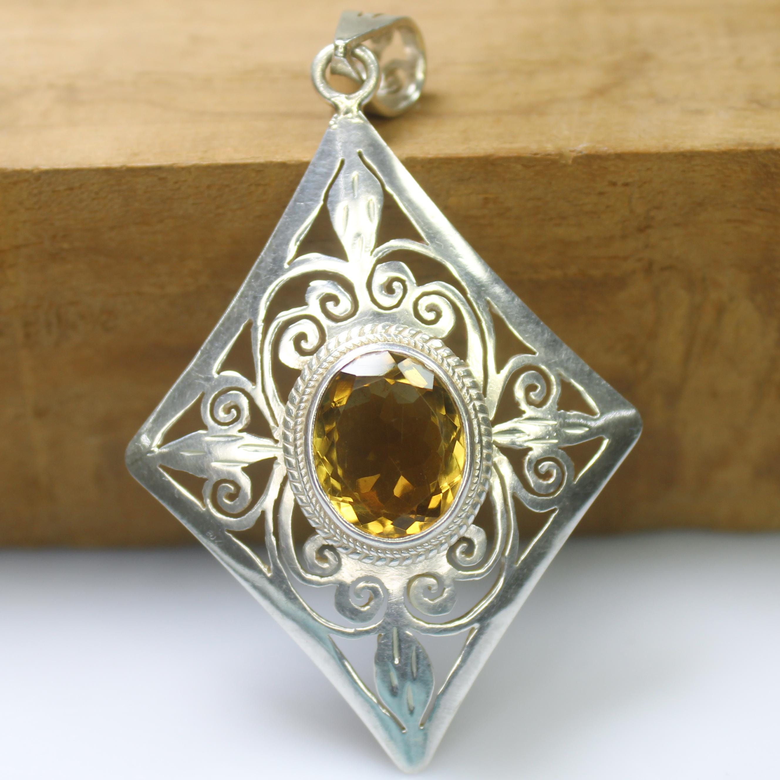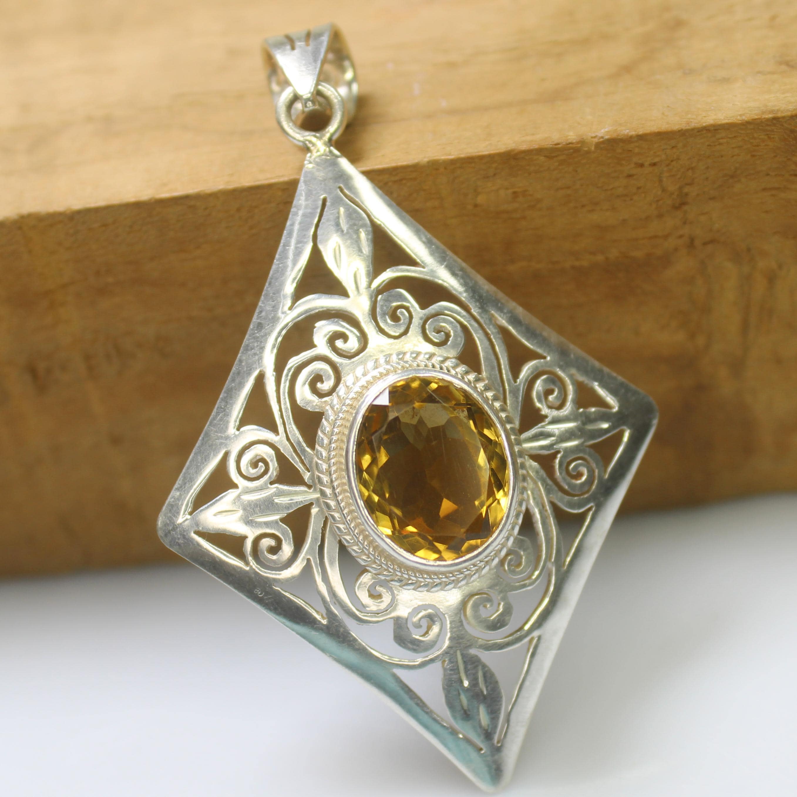 NATURAL YELLOW CITRINE PENDANT WITH STERLING SILVER