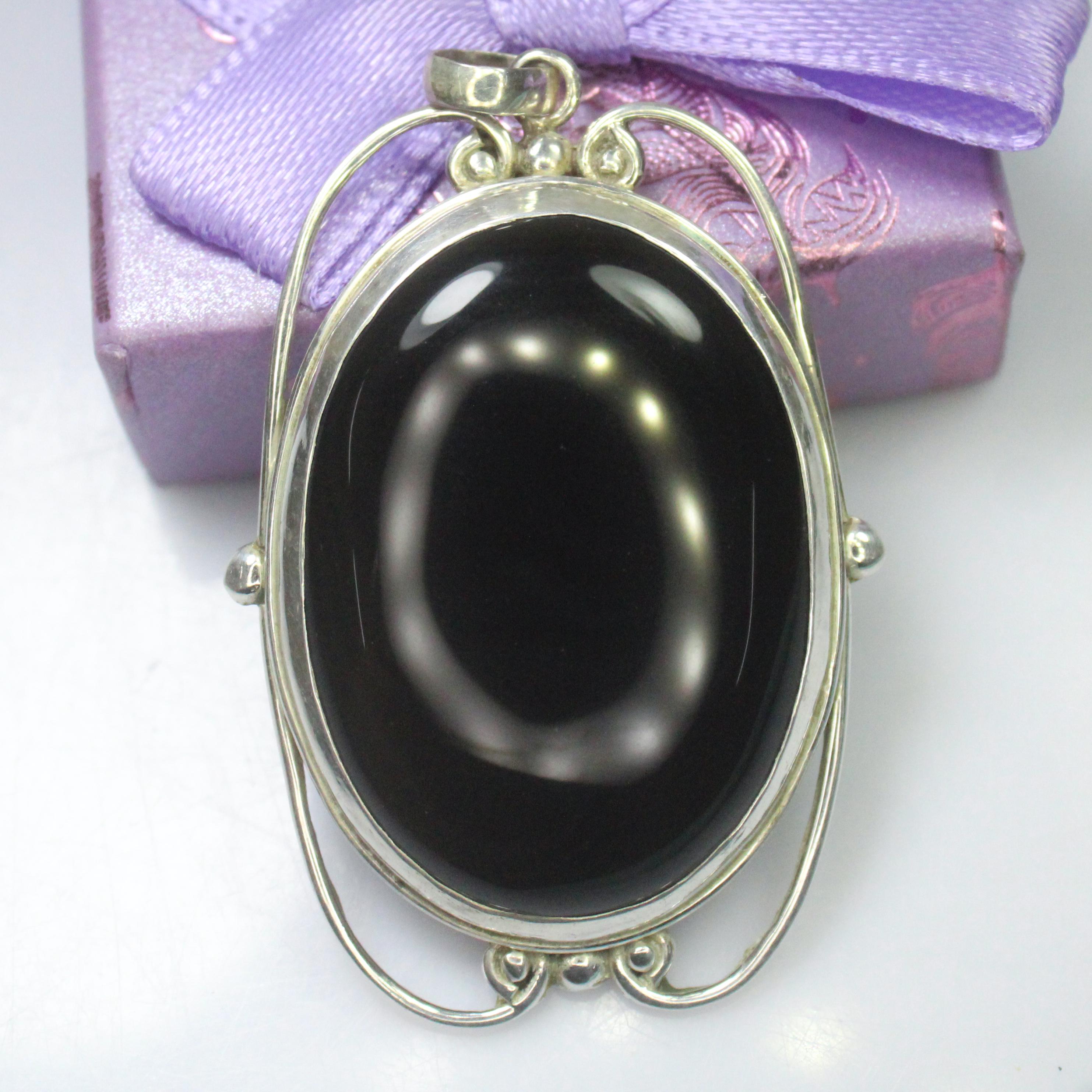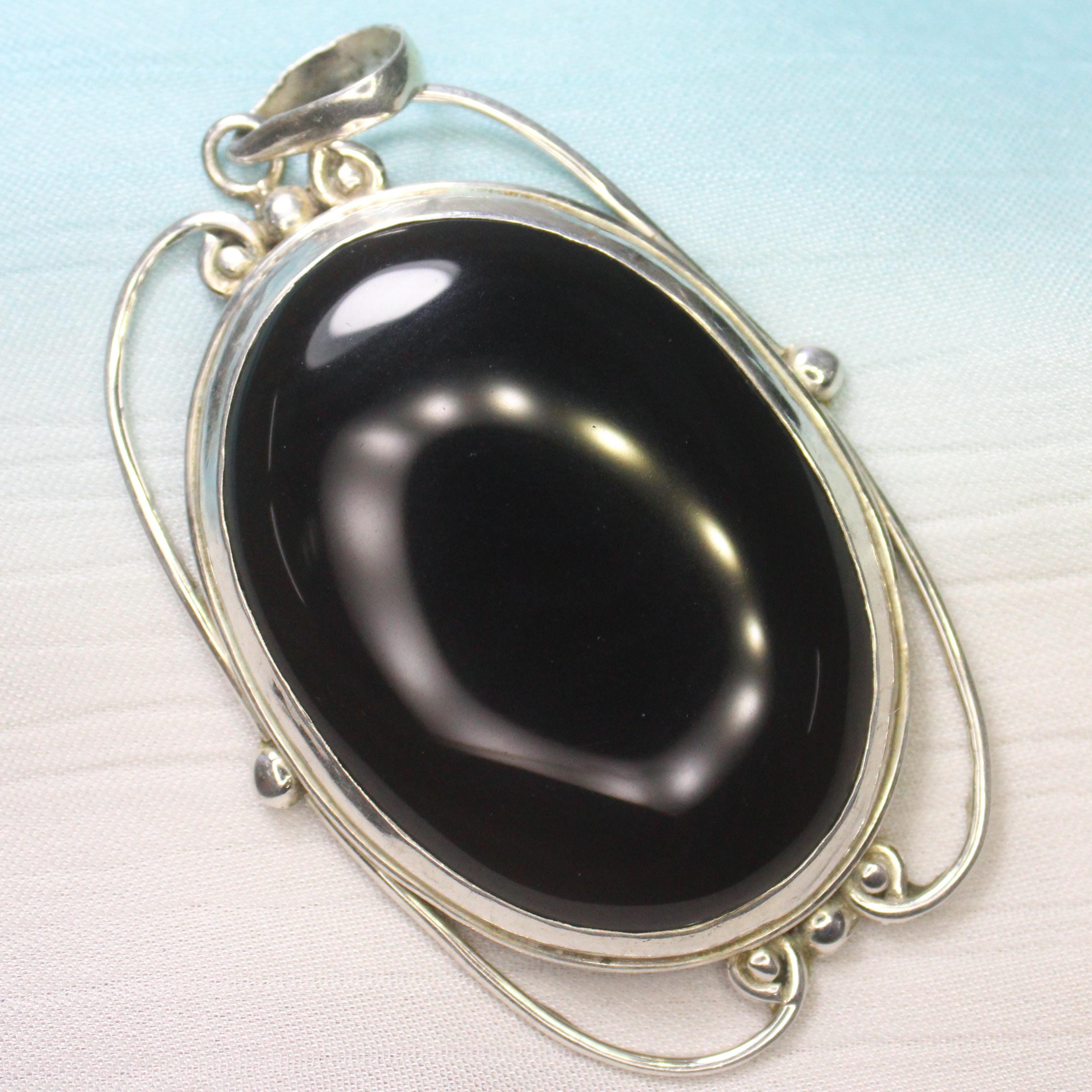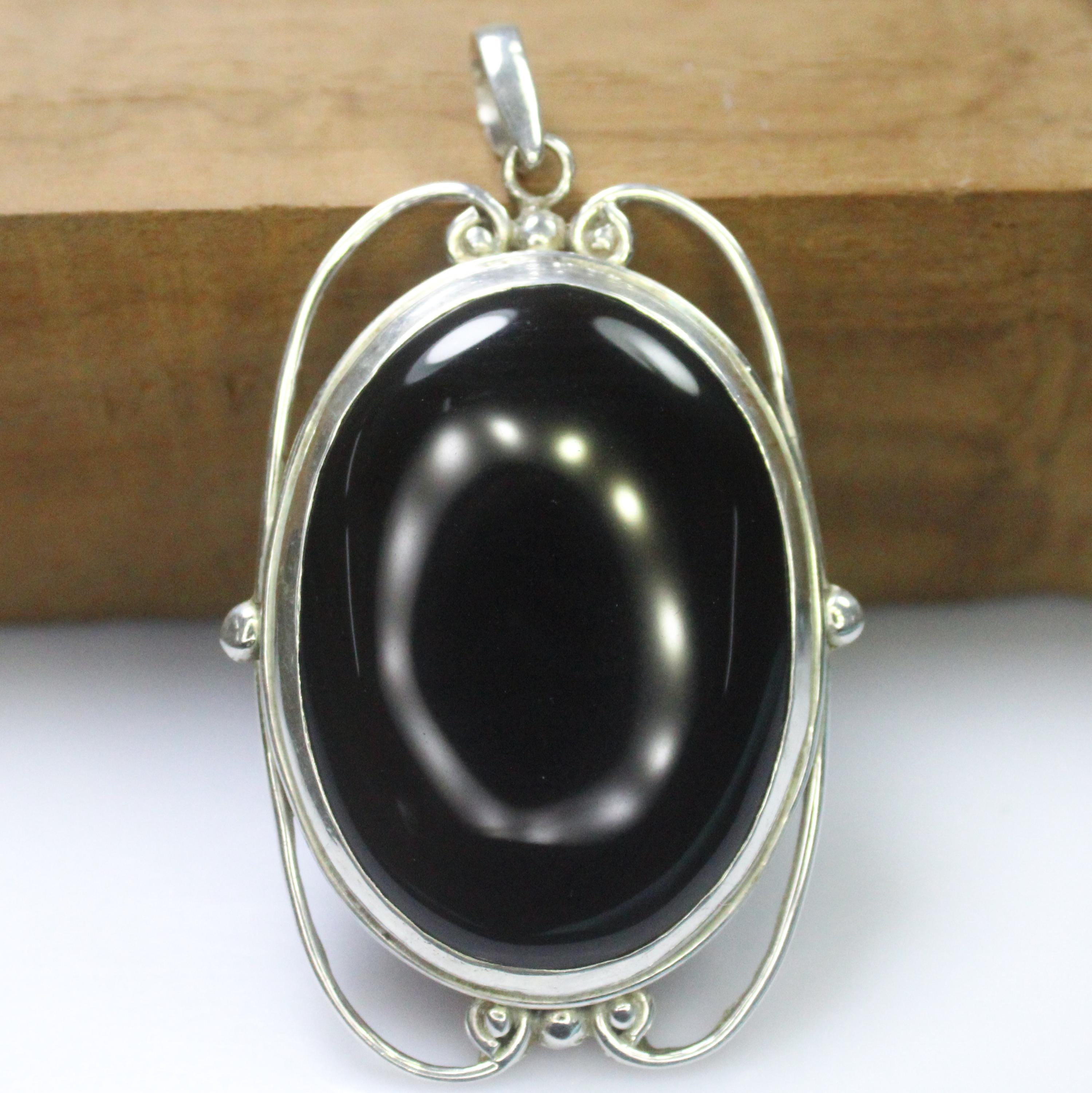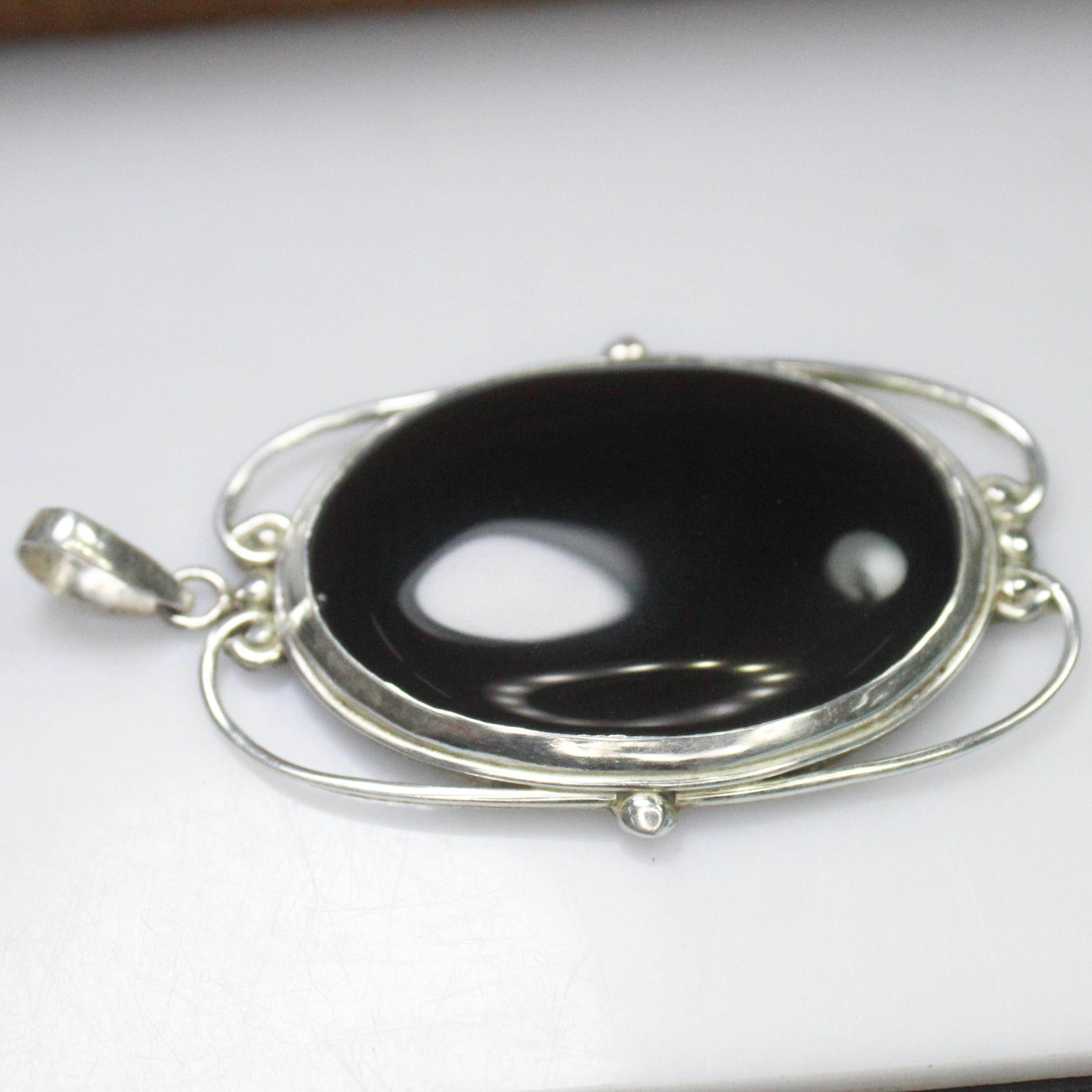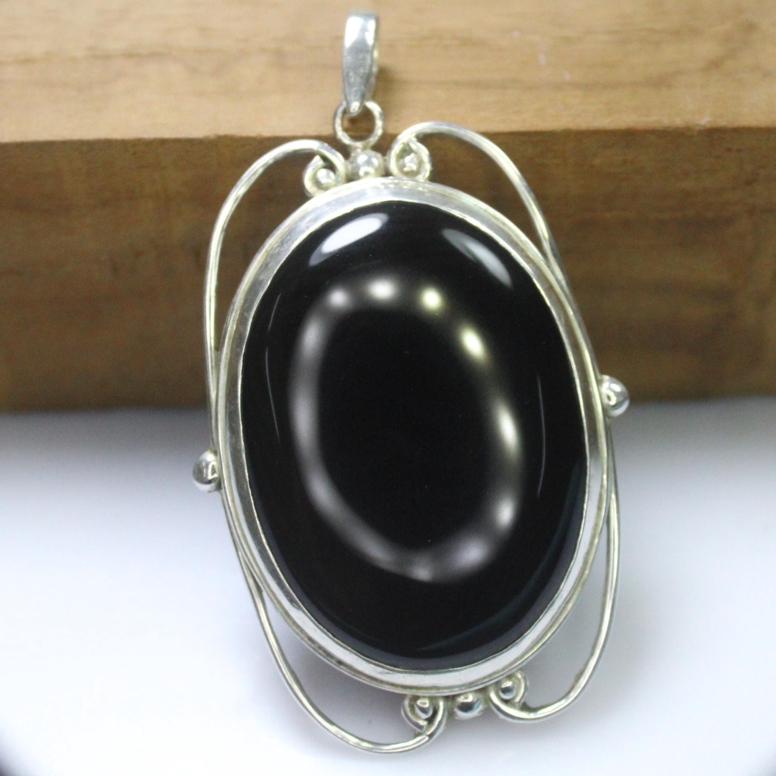 NATURAL BLACK ONYX PENDANT WITH STERLING SILVER