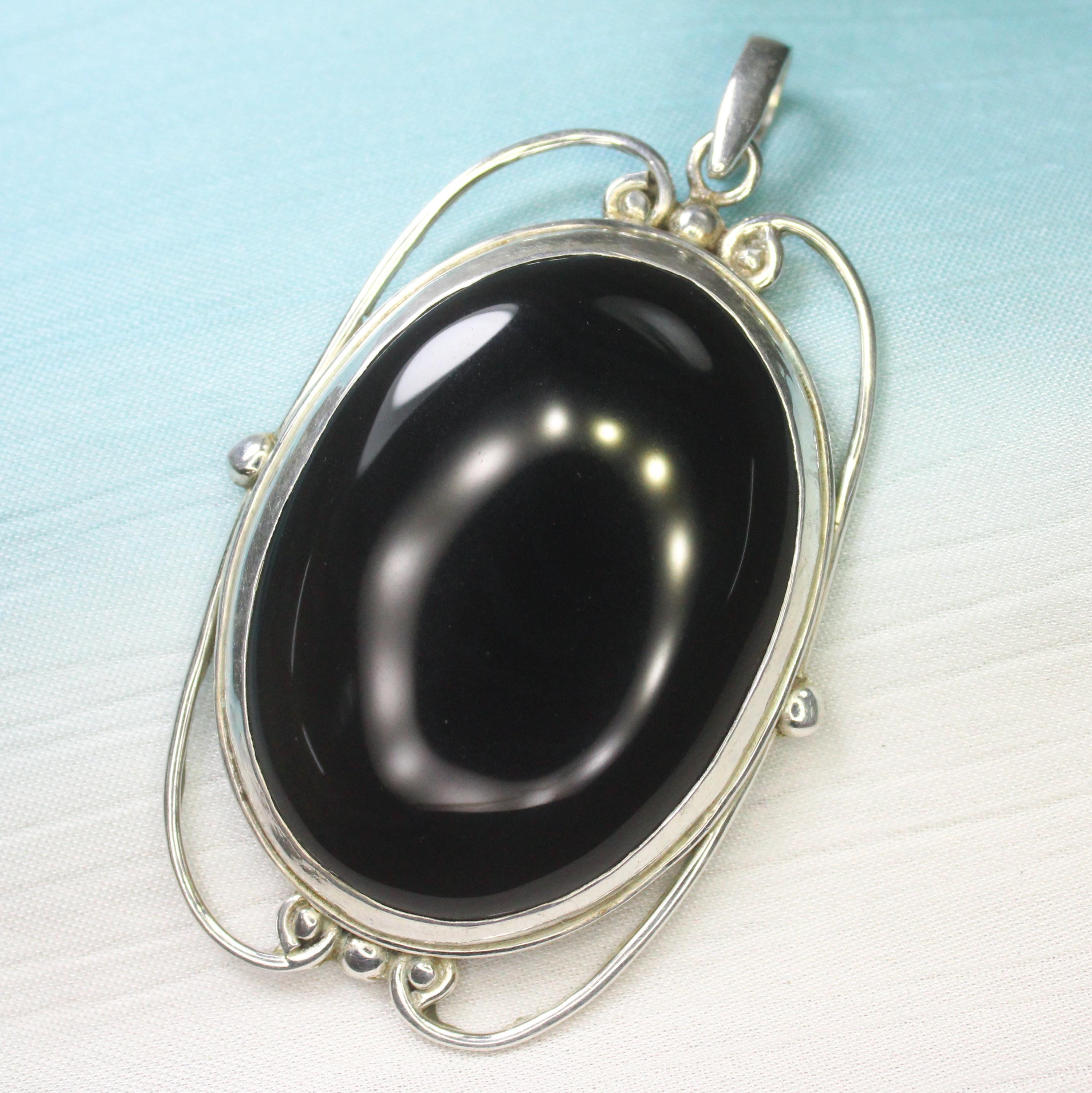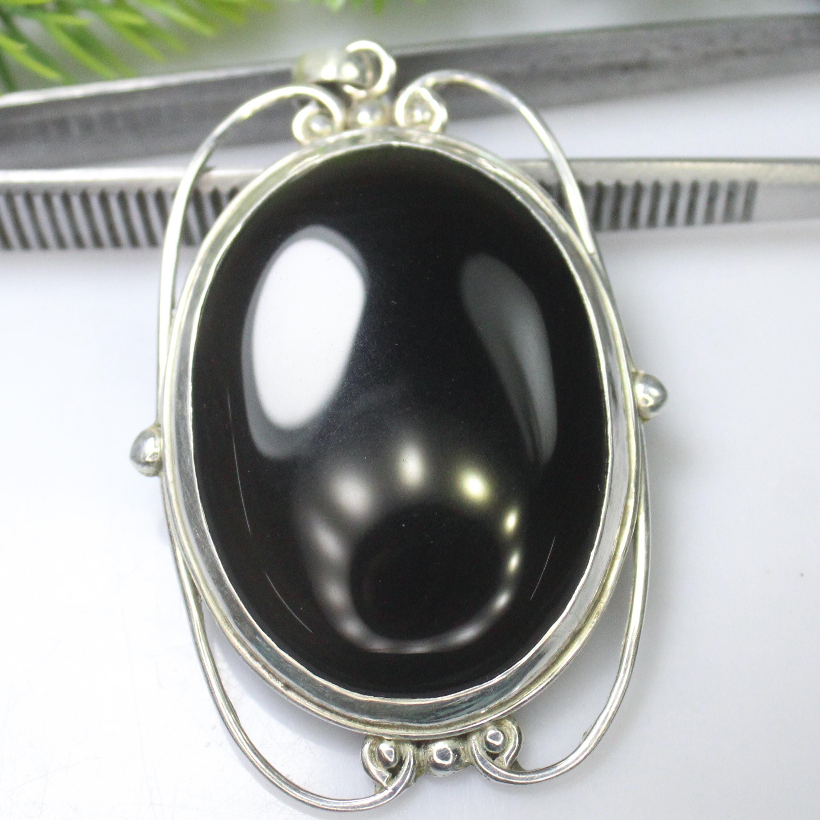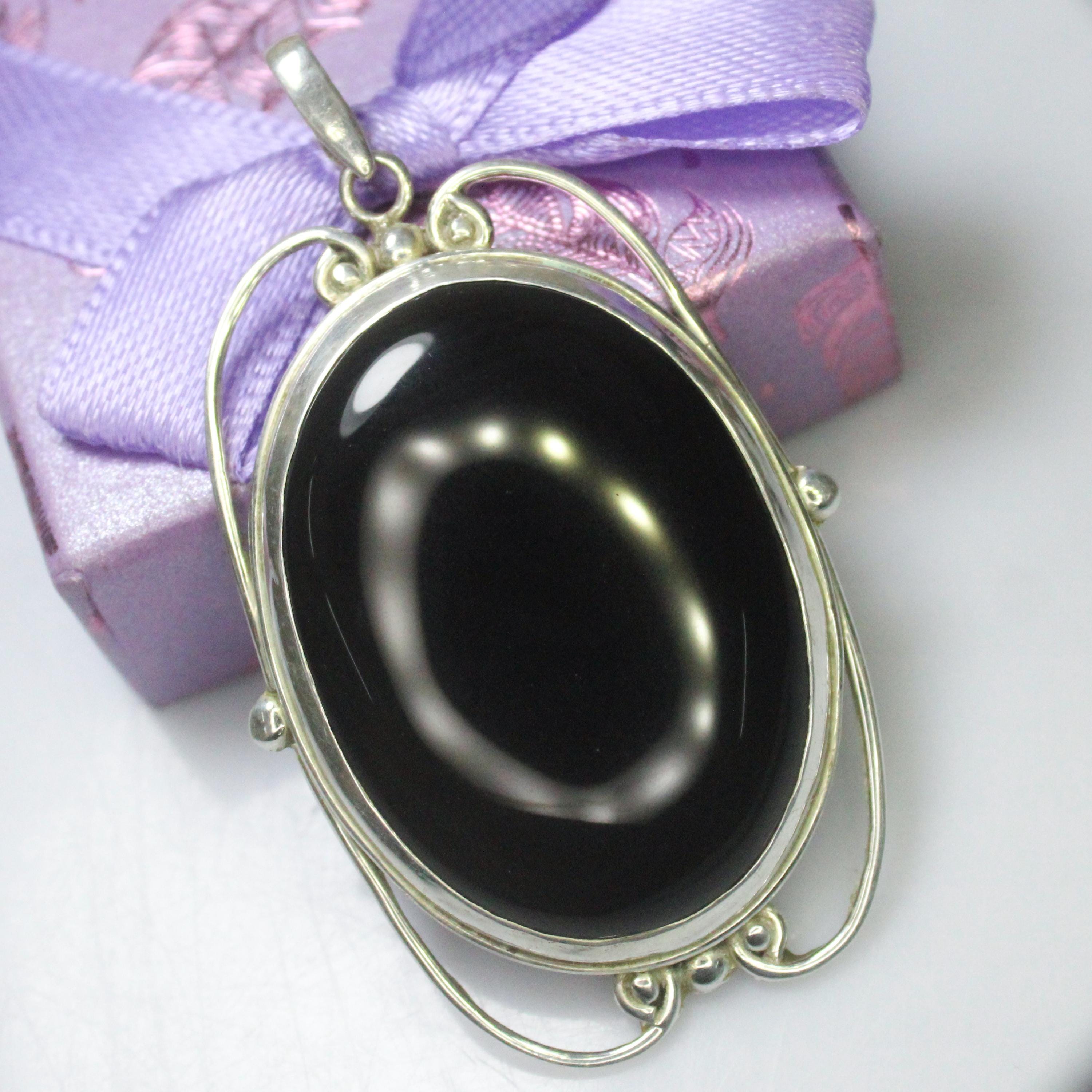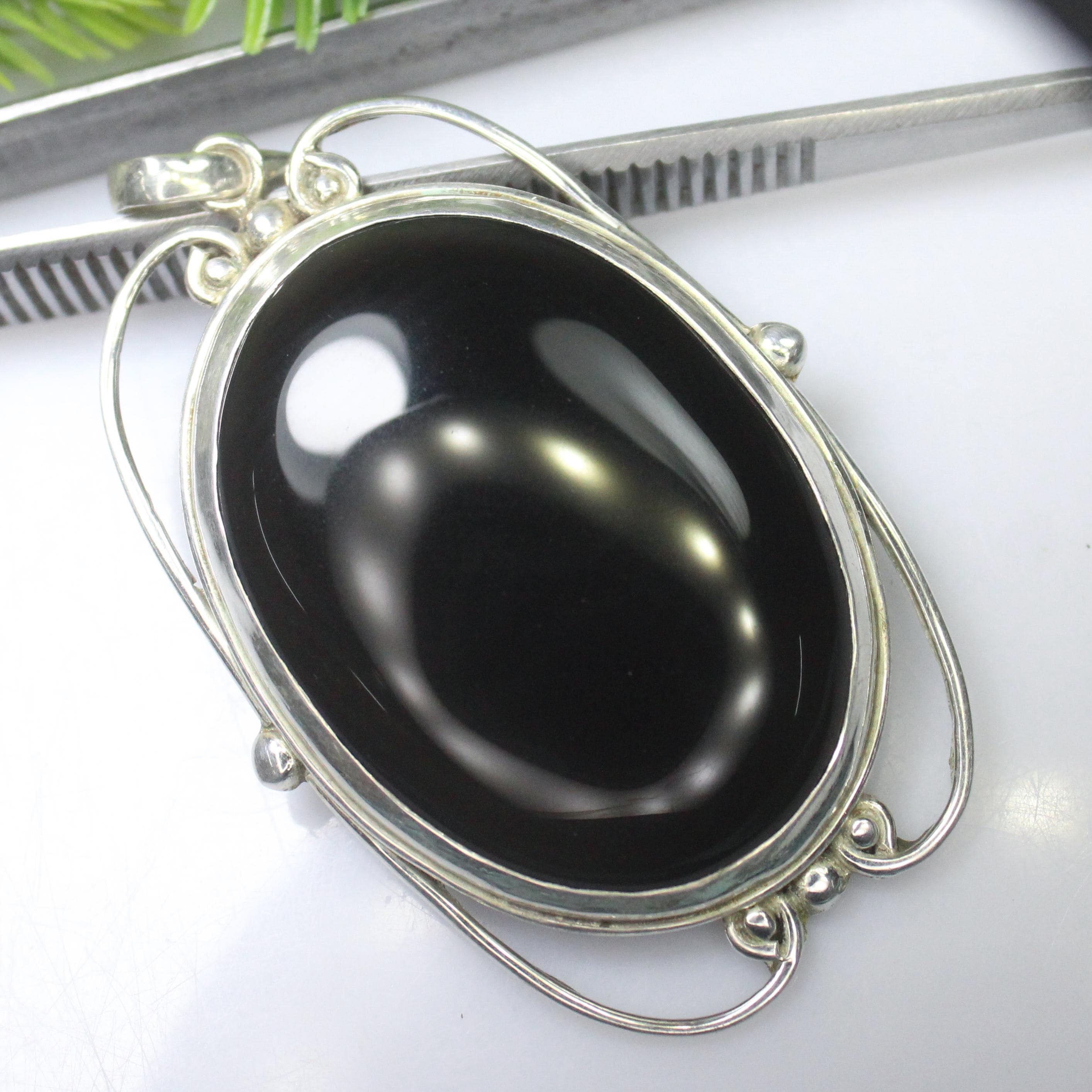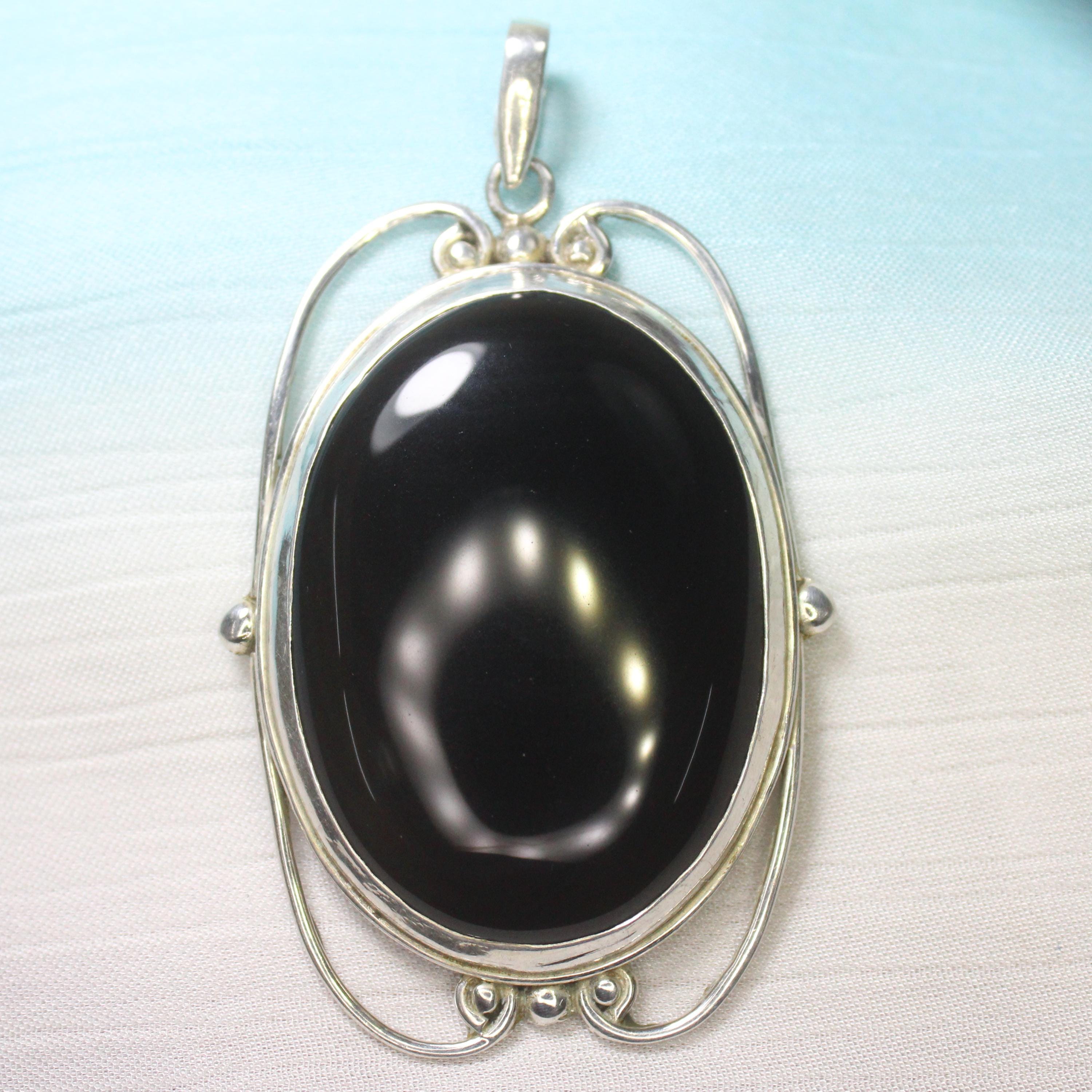 NATURAL BLACK ONYX PENDANT WITH STERLING SILVER