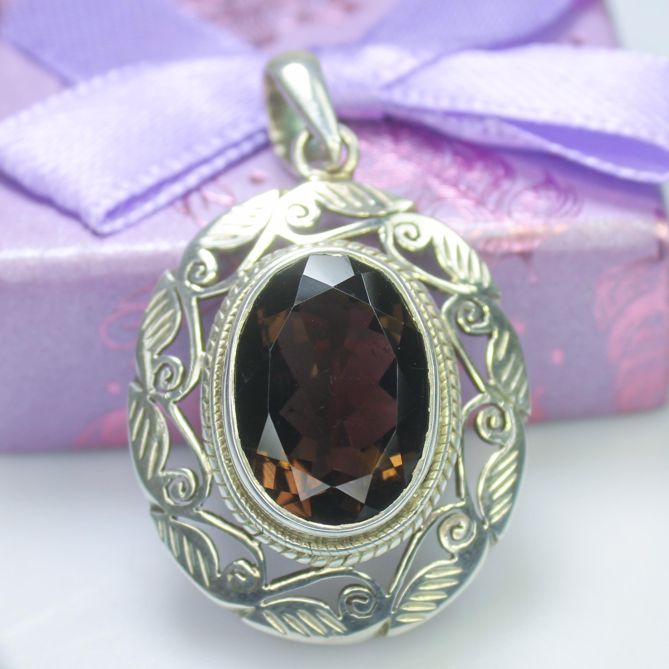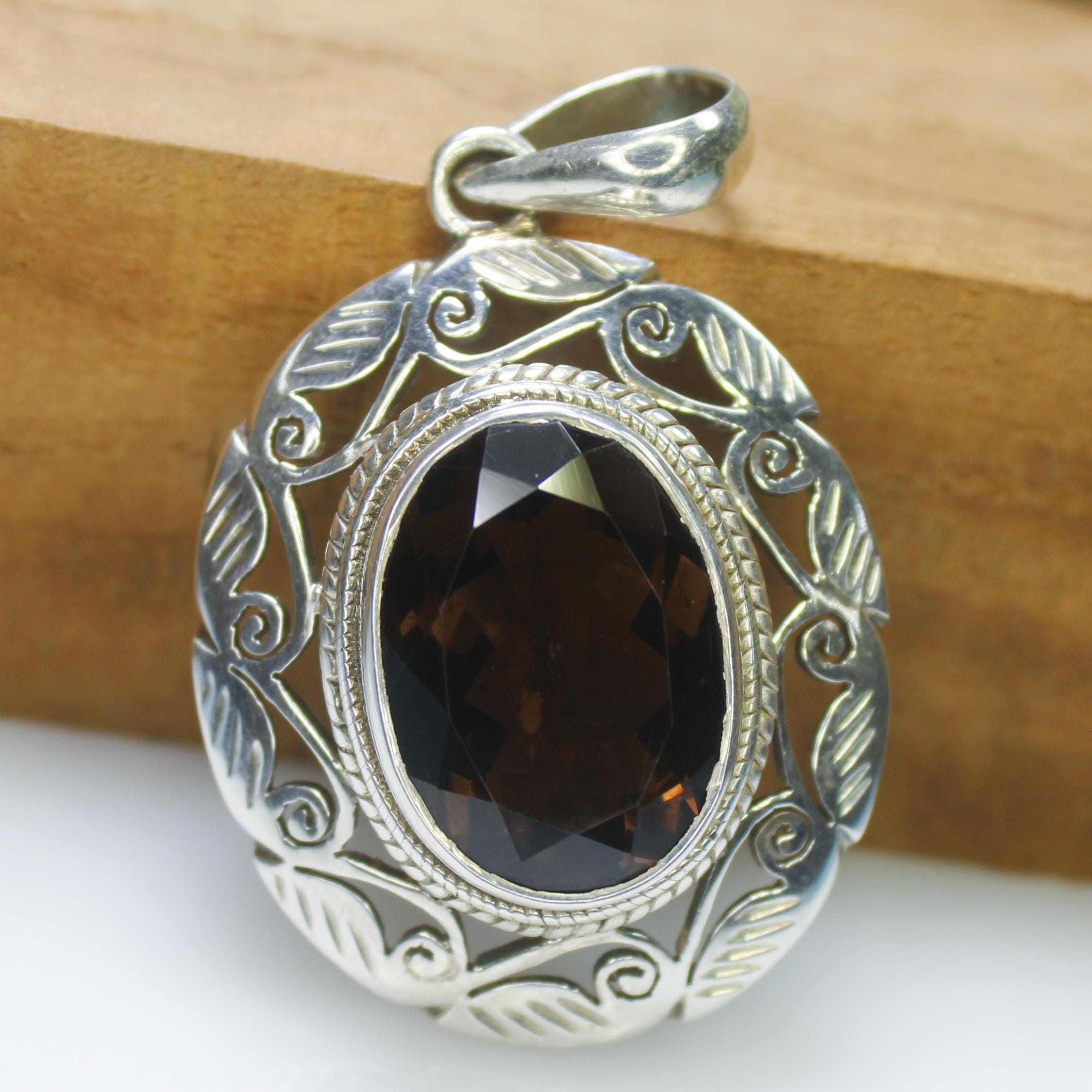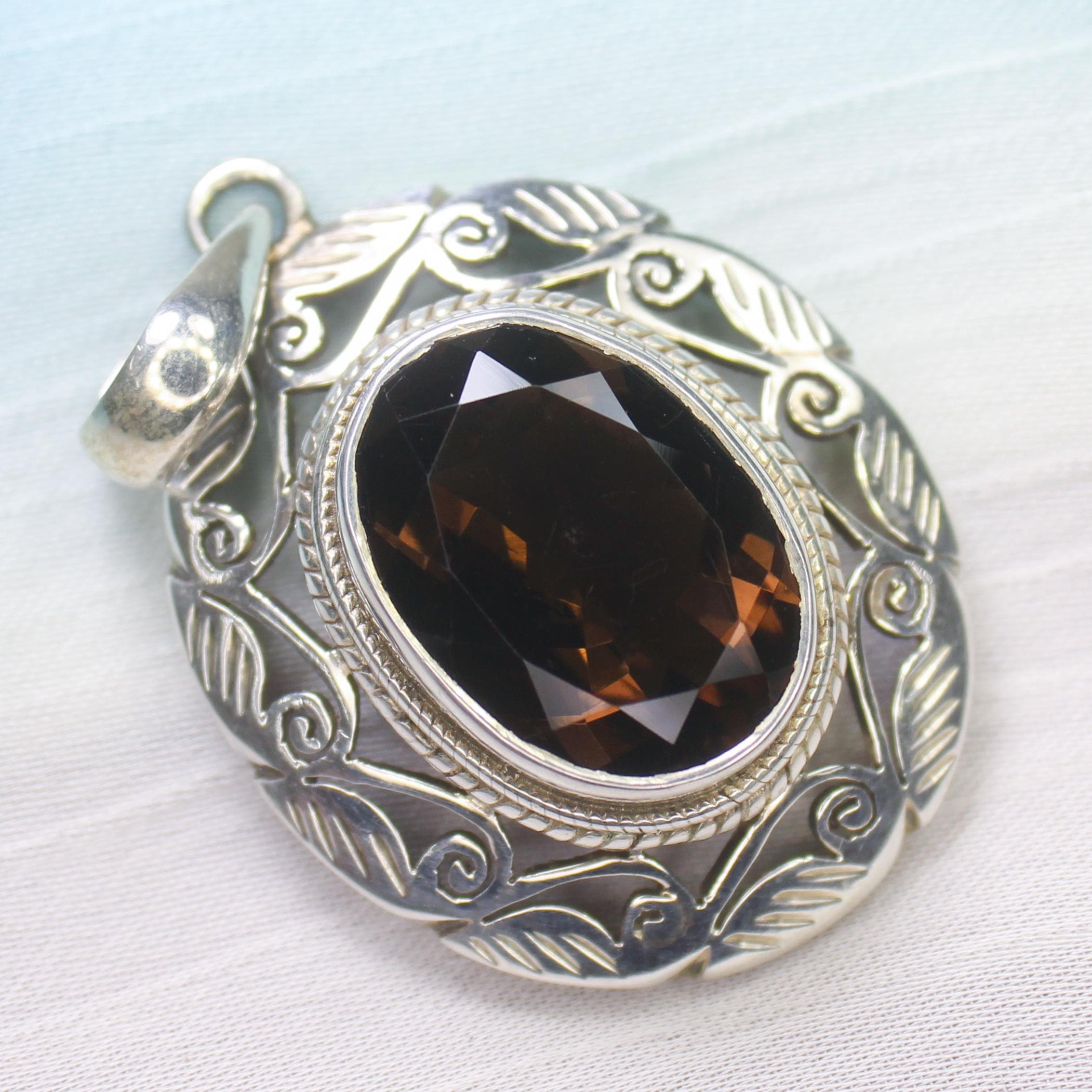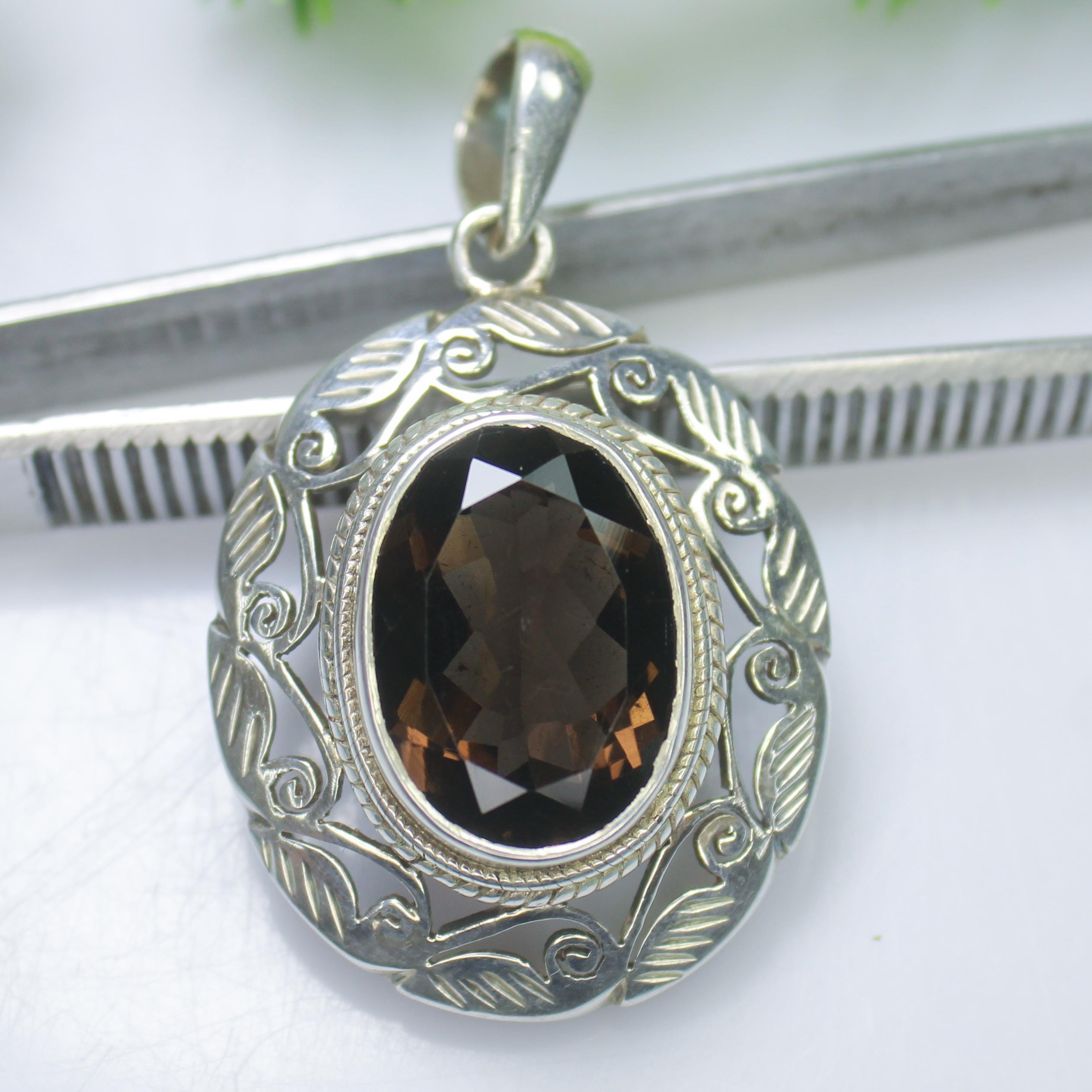 NATURAL BROWN SMOKEY QUARTZ PENDANT WITH STERLING SILVER