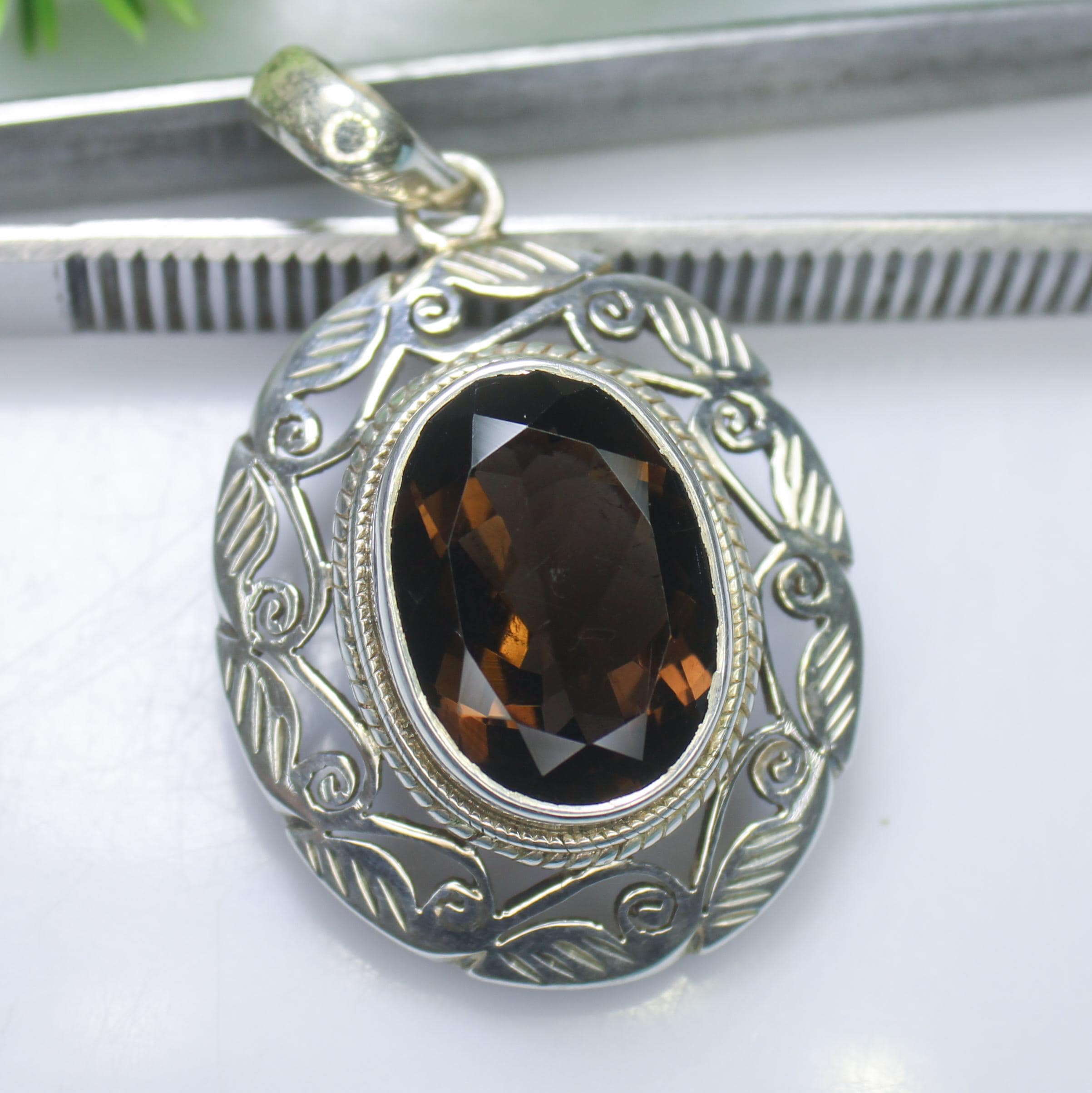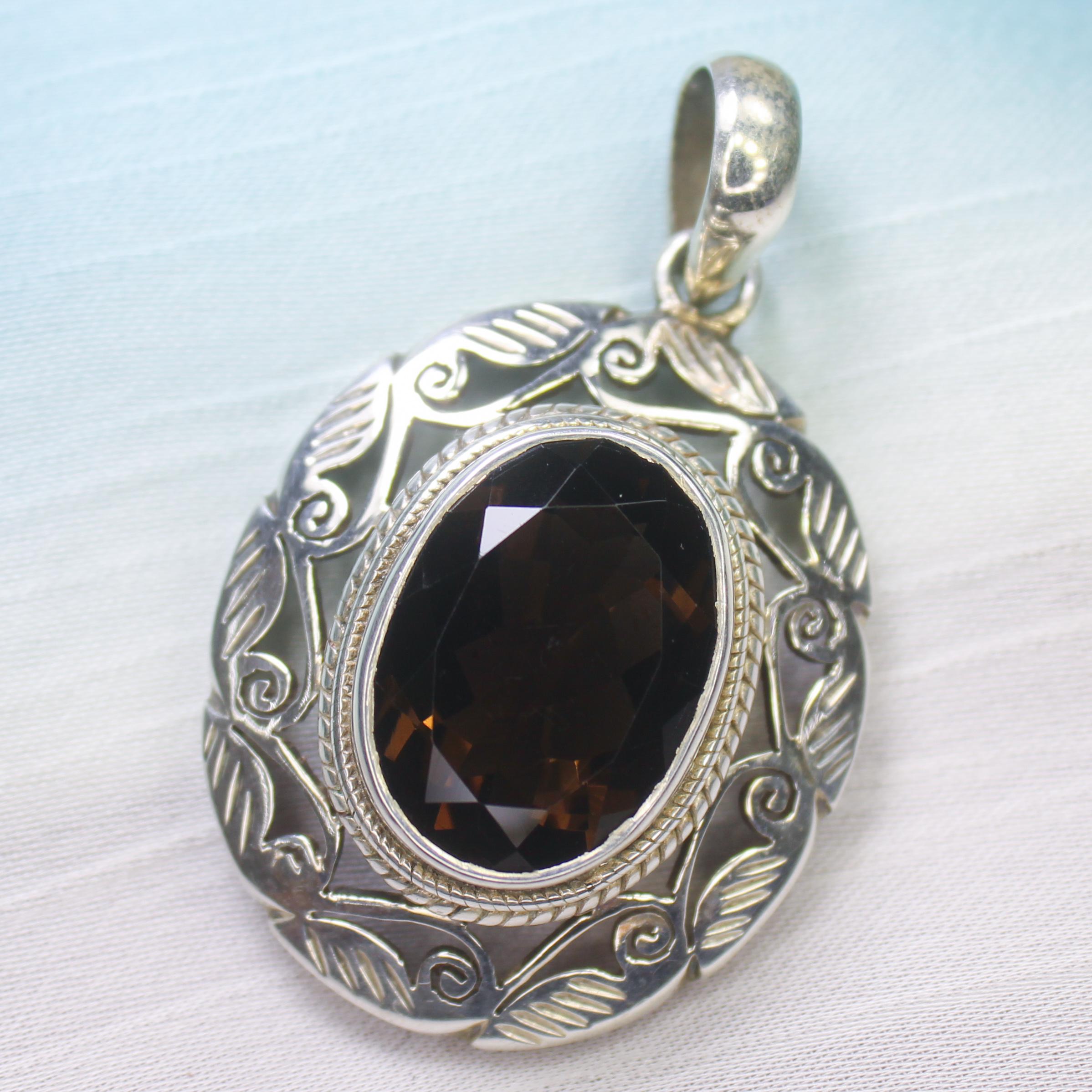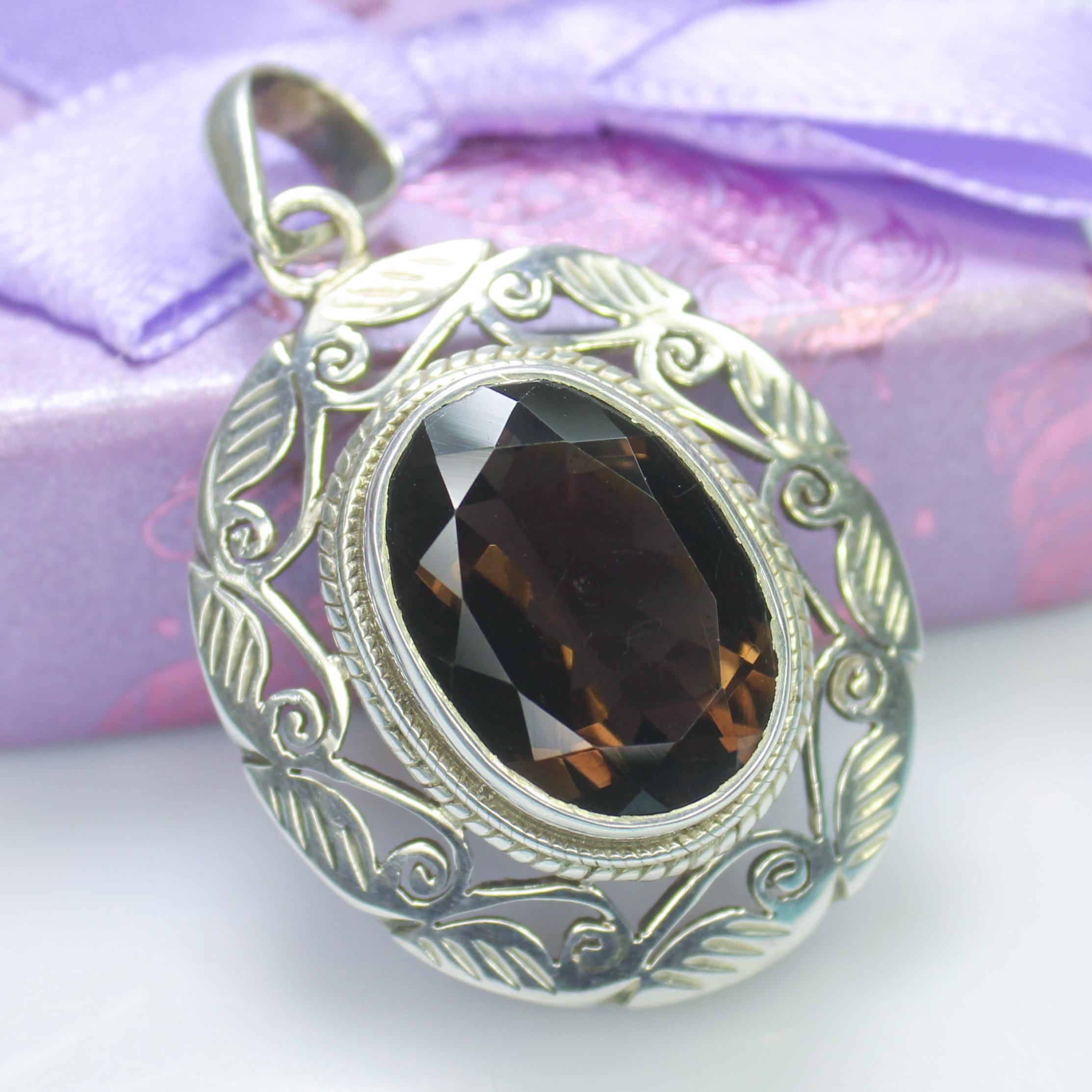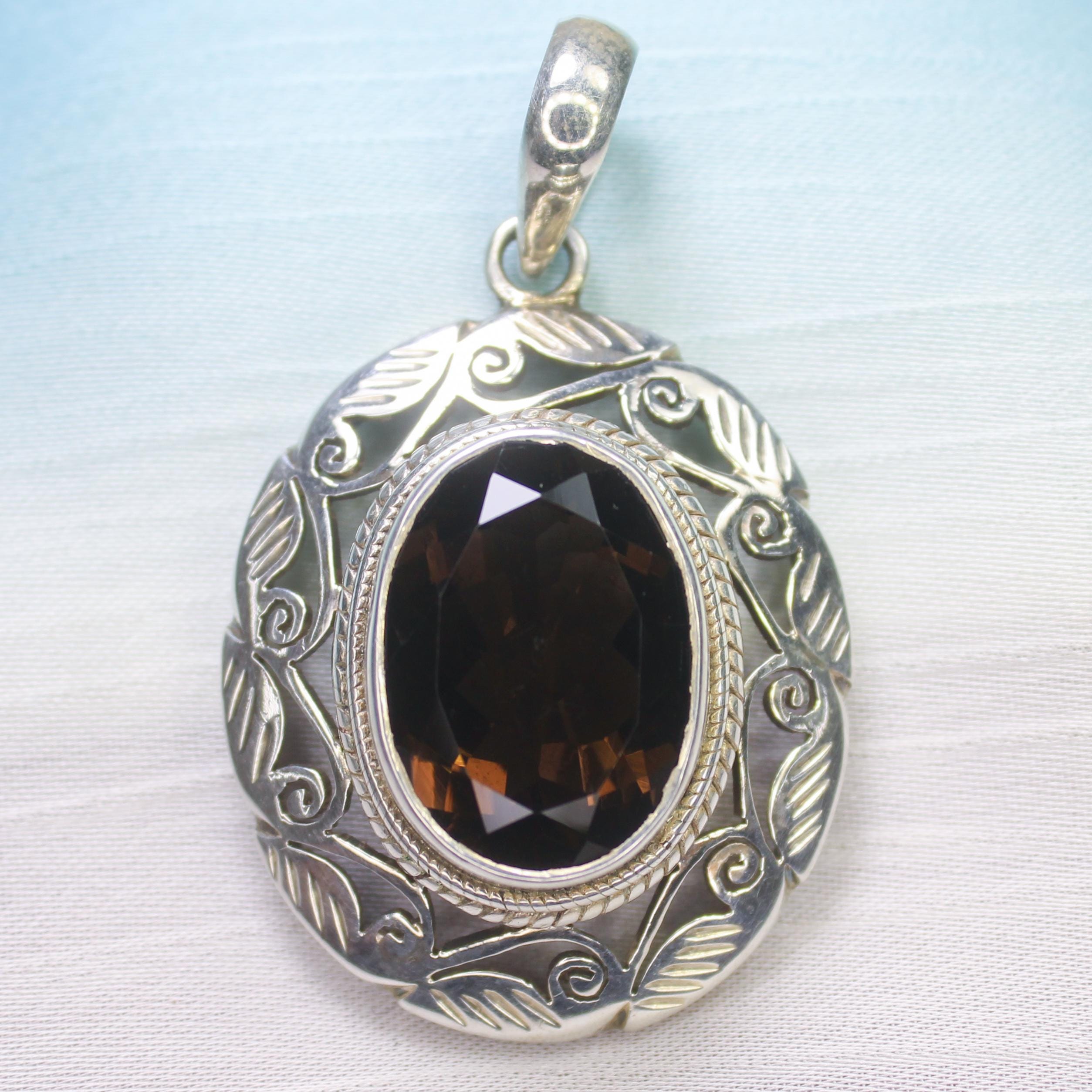 NATURAL BROWN SMOKEY QUARTZ PENDANT WITH STERLING SILVER