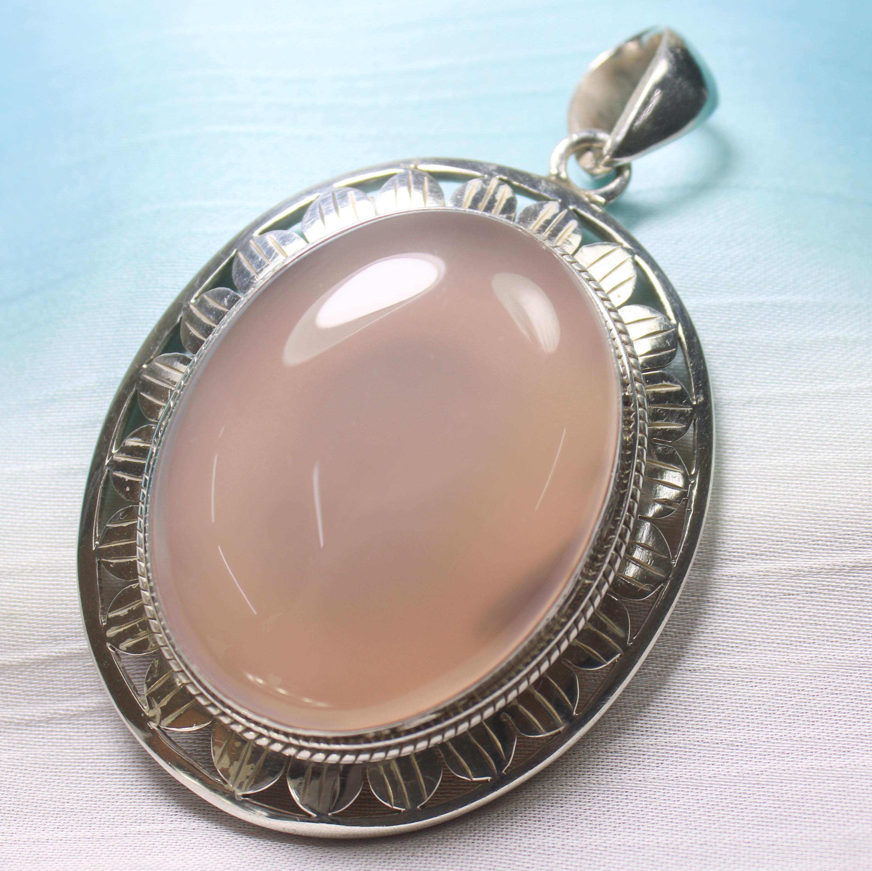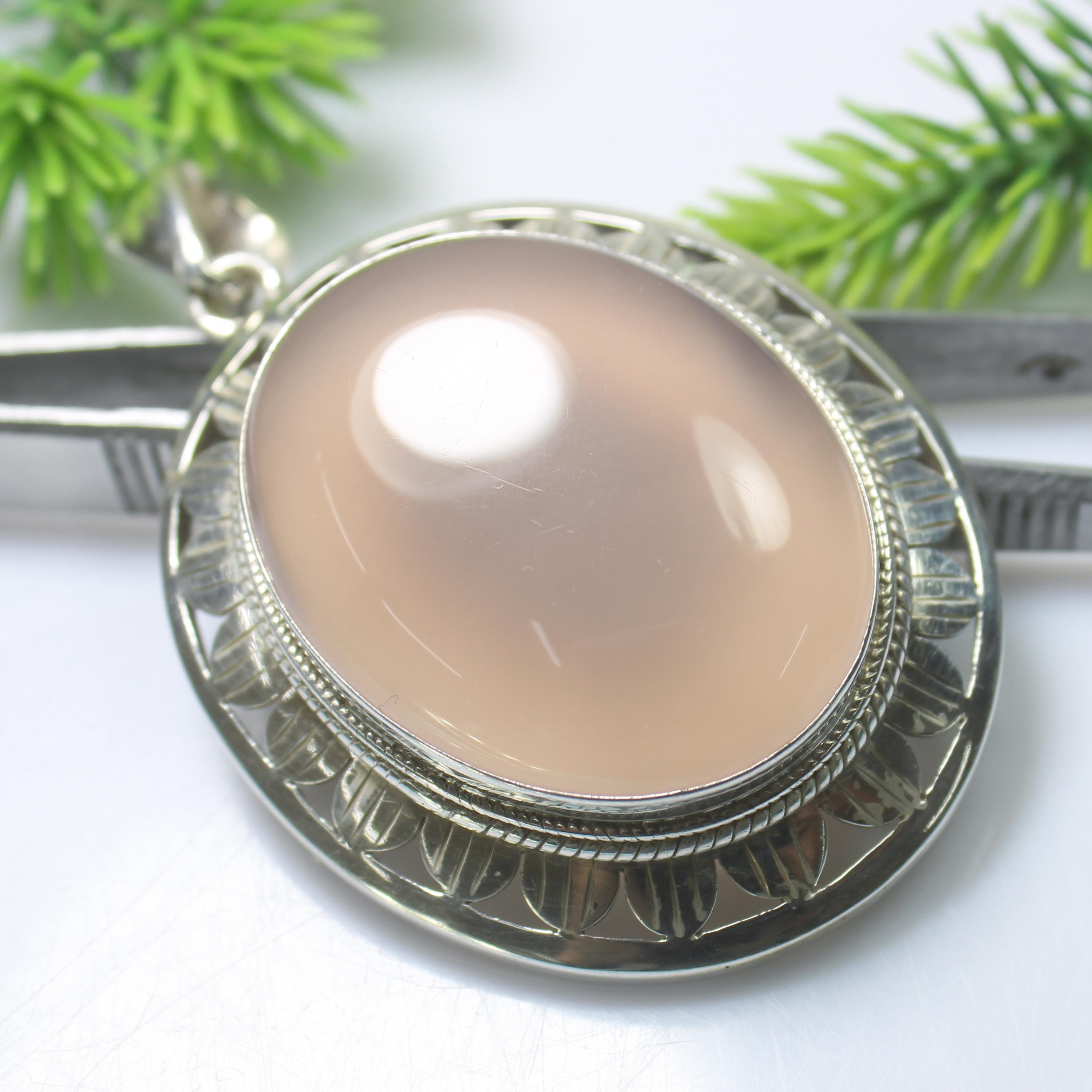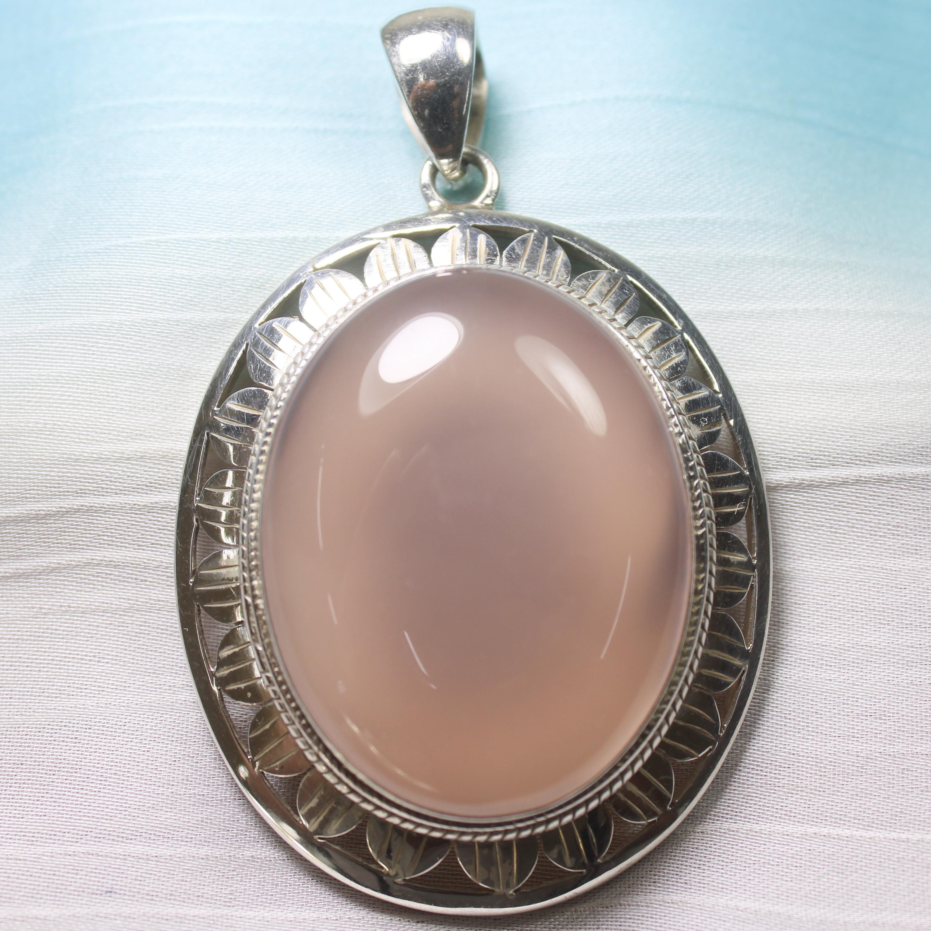 NATURAL PINK ROSE QUARTZ PENDANT WITH STERLING SILVER
