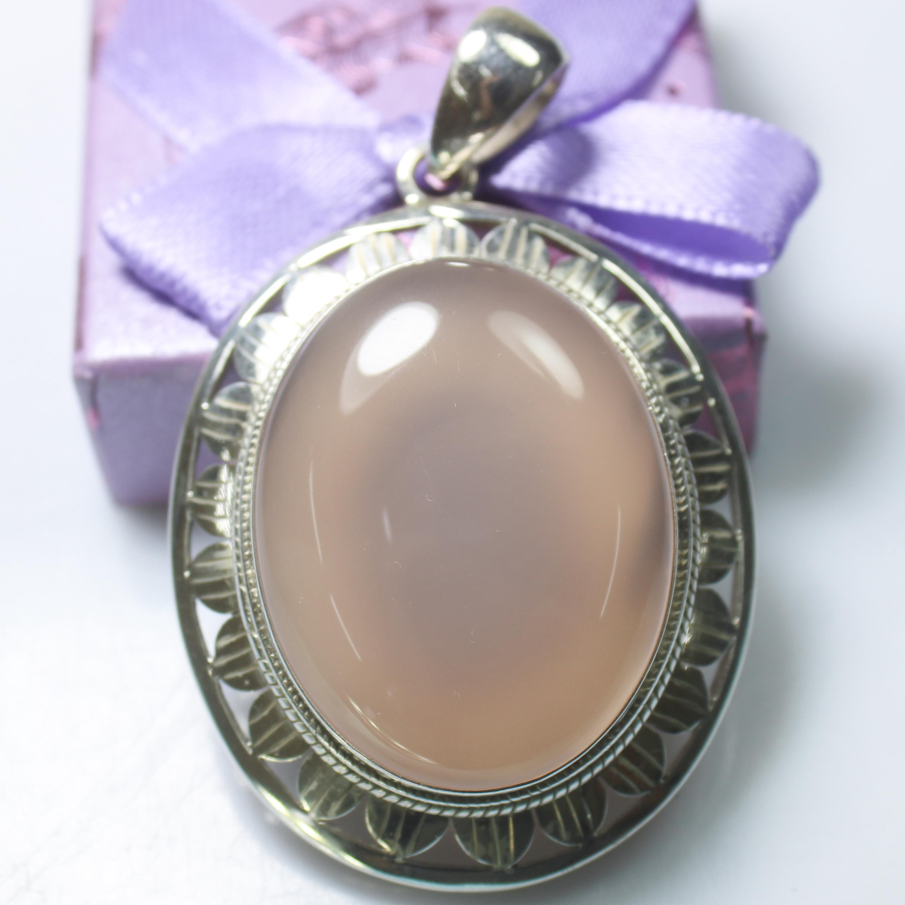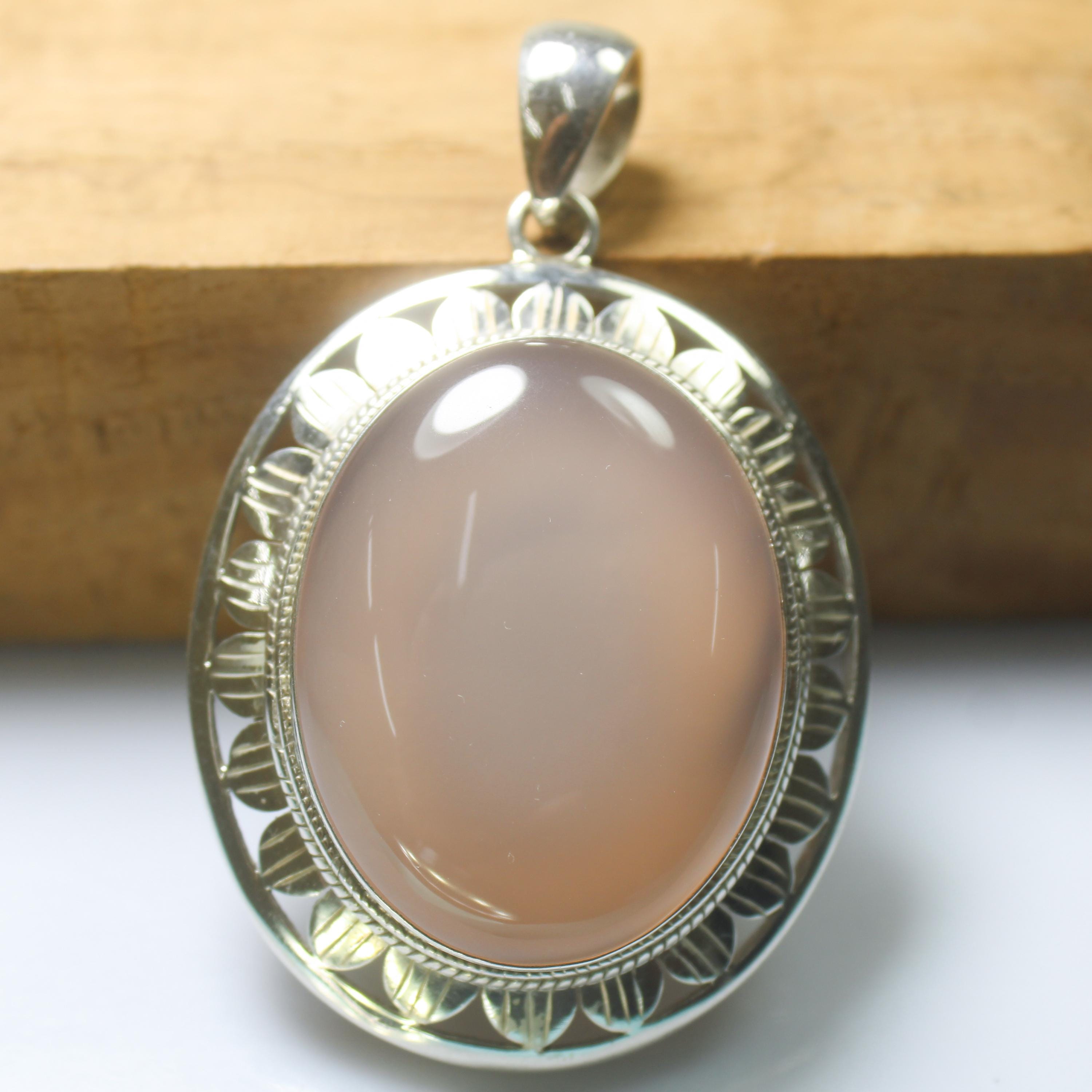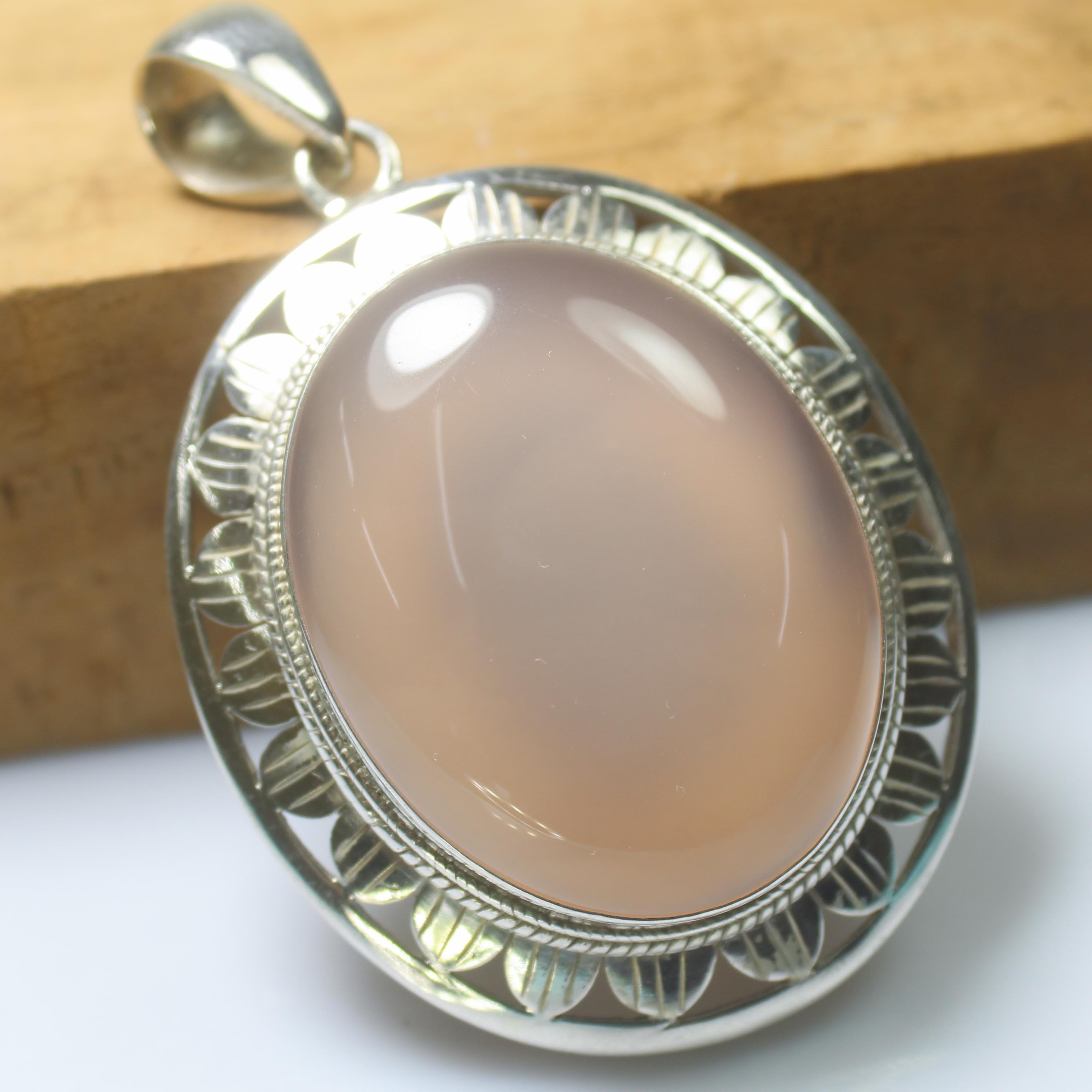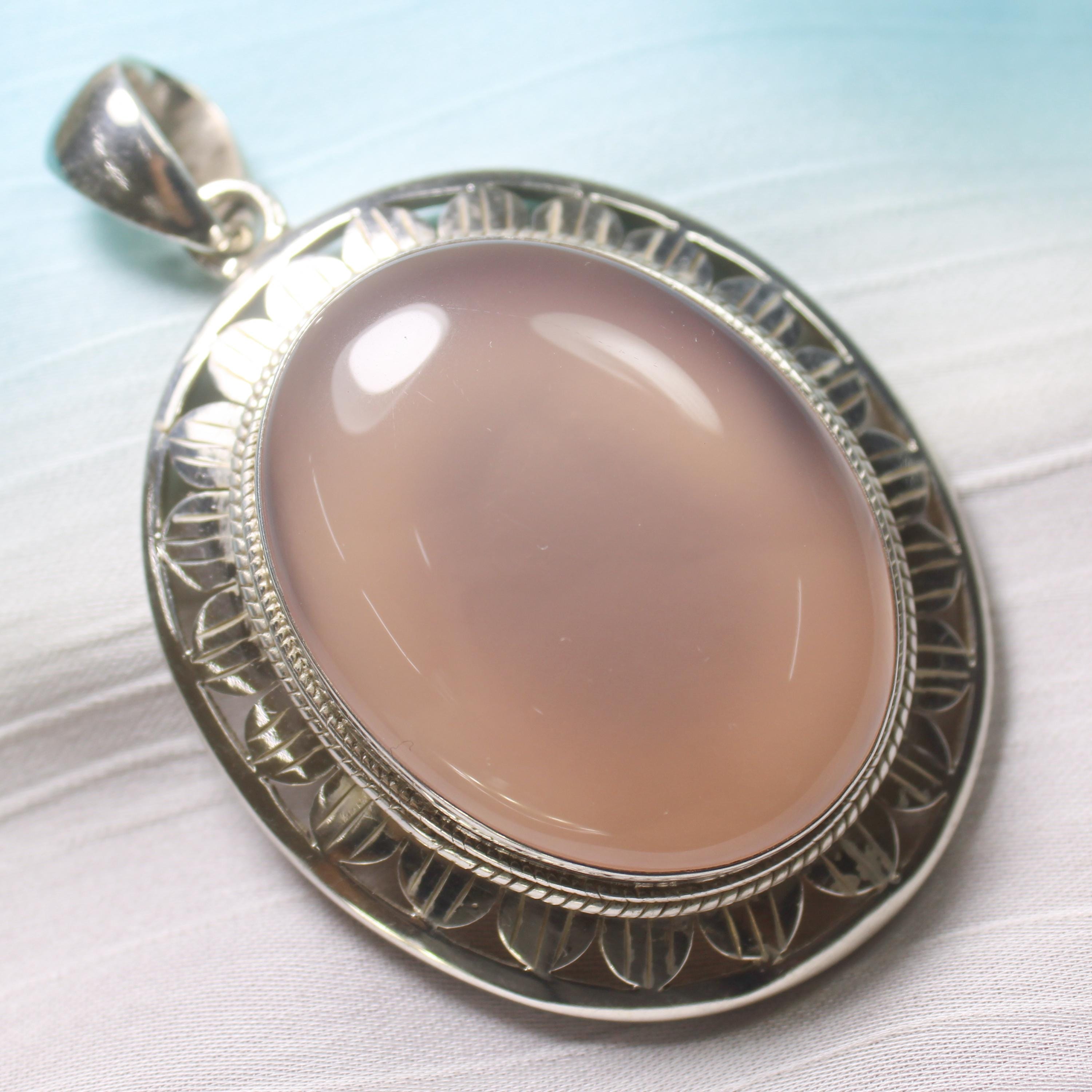 NATURAL PINK ROSE QUARTZ PENDANT WITH STERLING SILVER