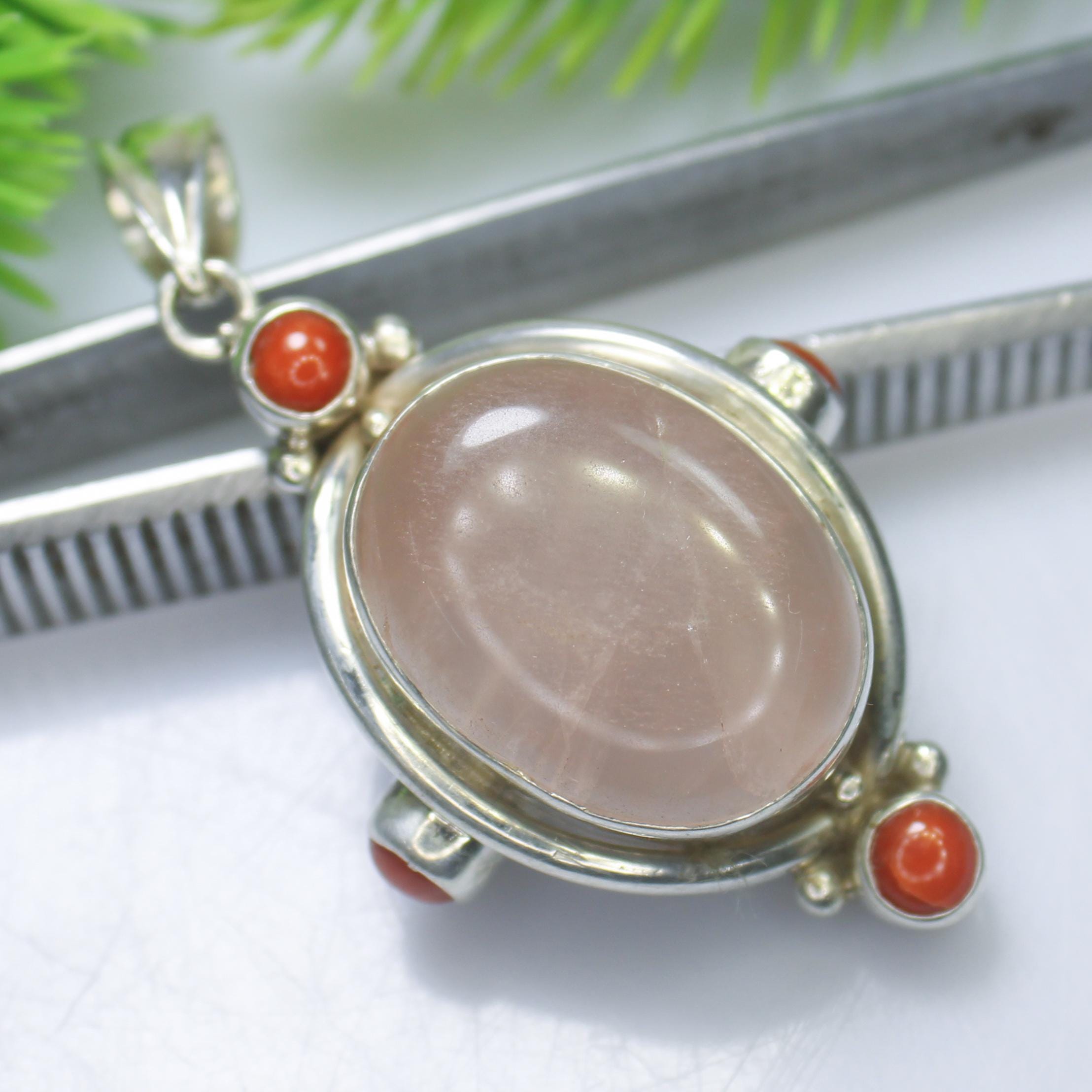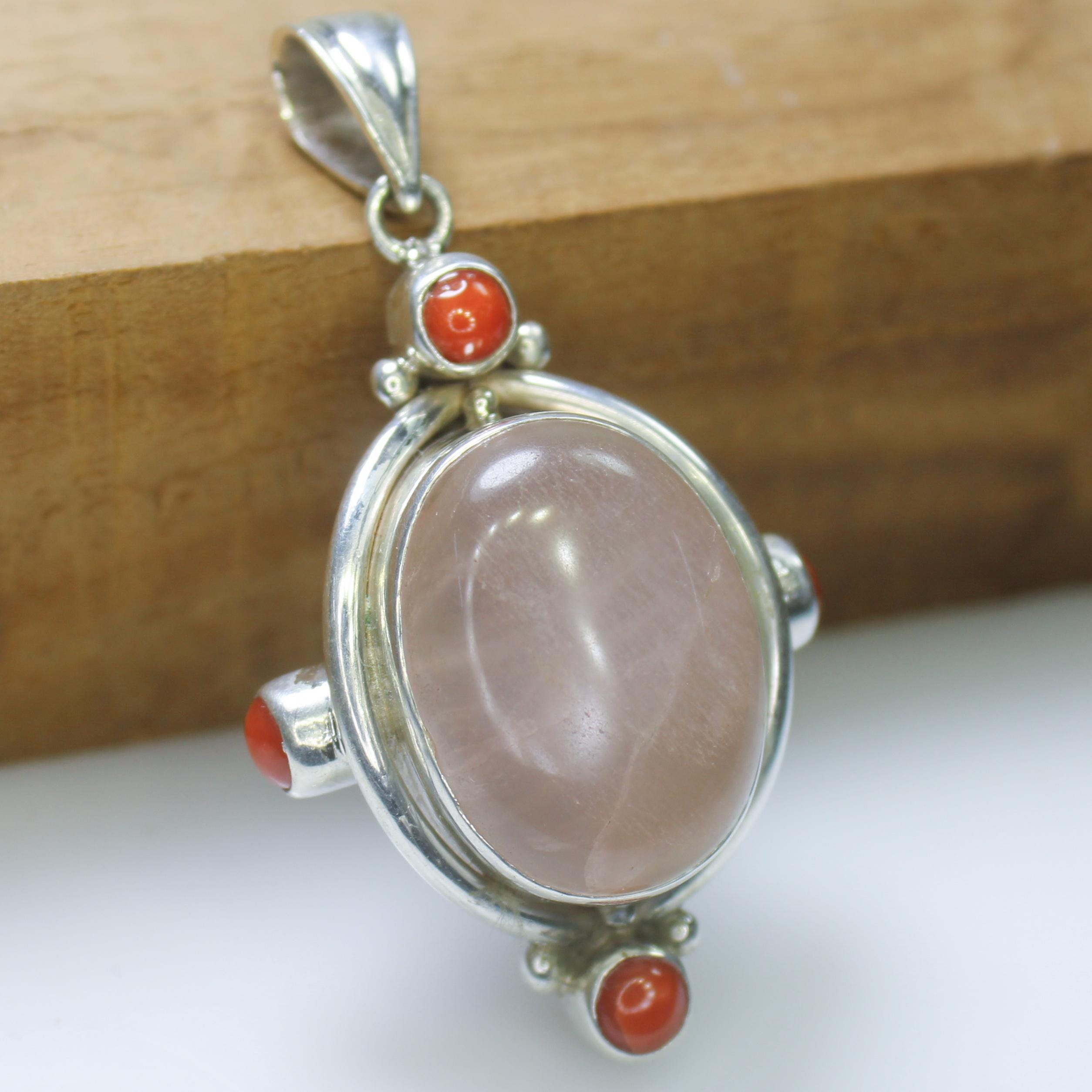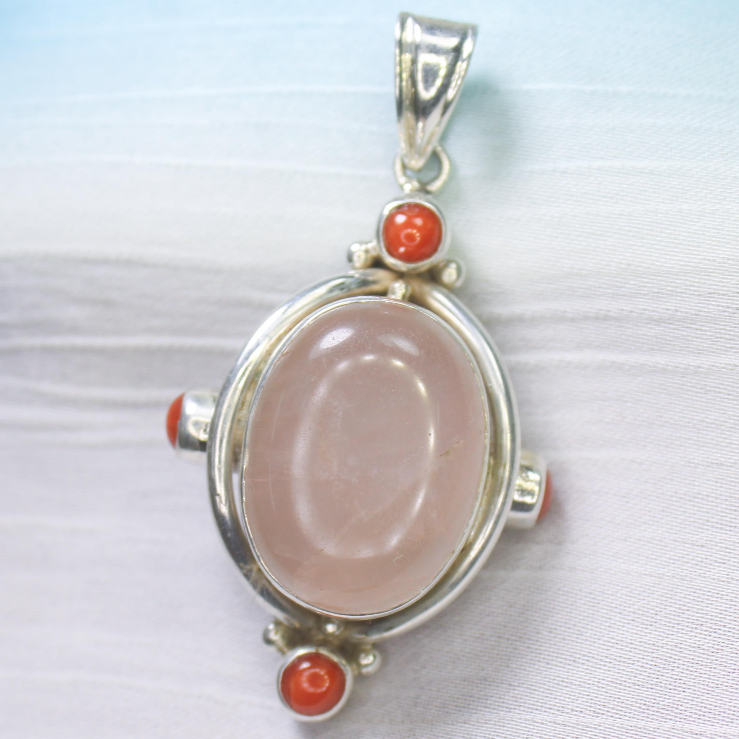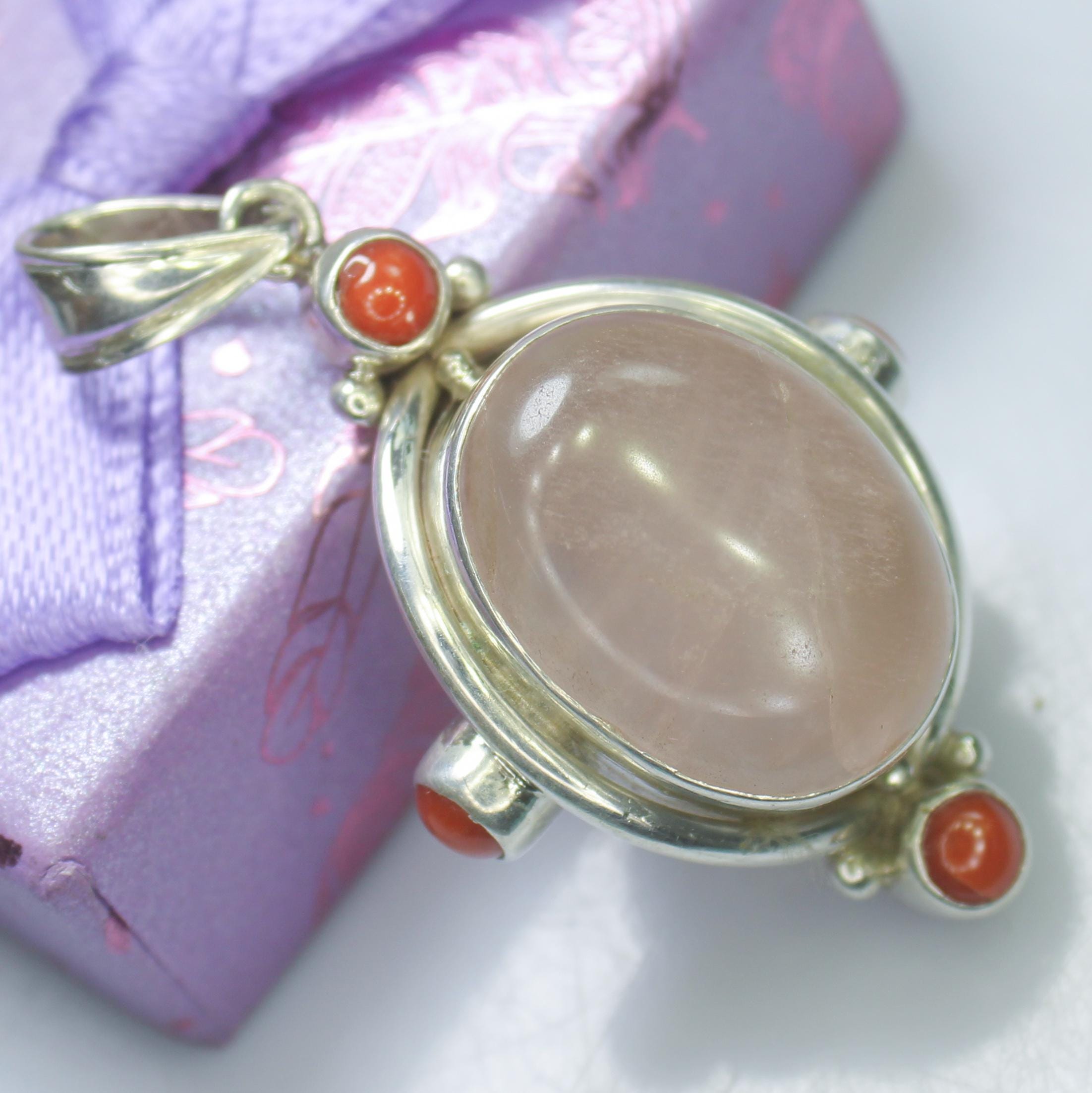 NATURAL PINK ROSE QUARTZ PENDANT WITH STERLING SILVER