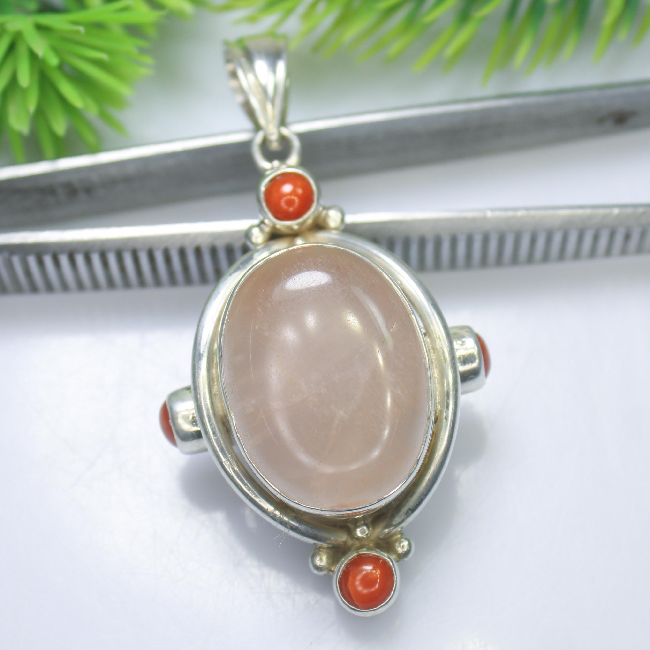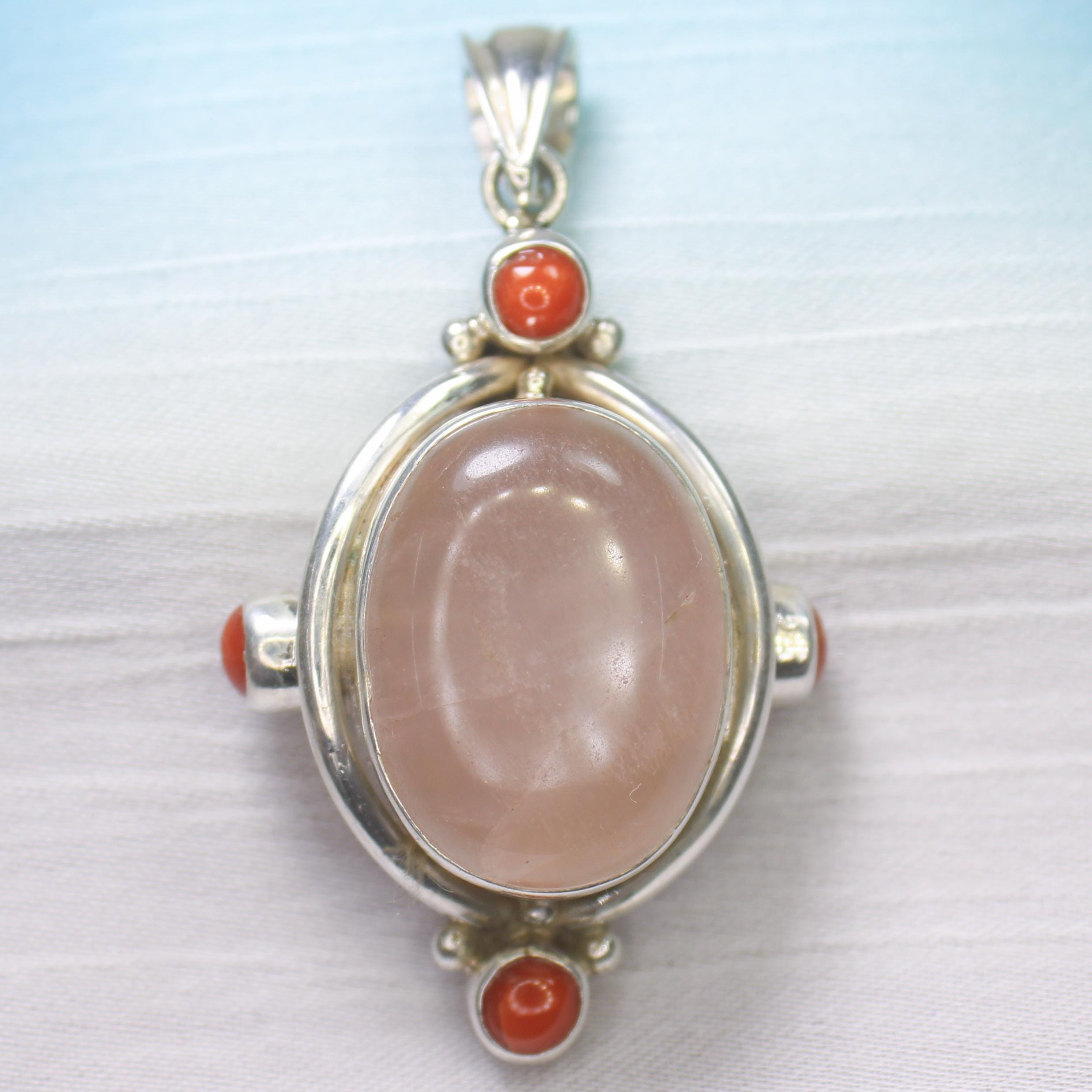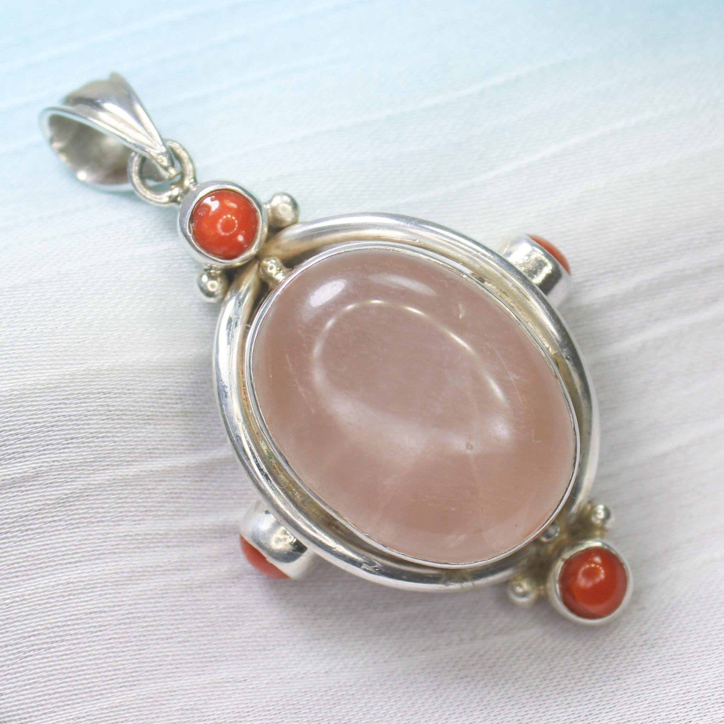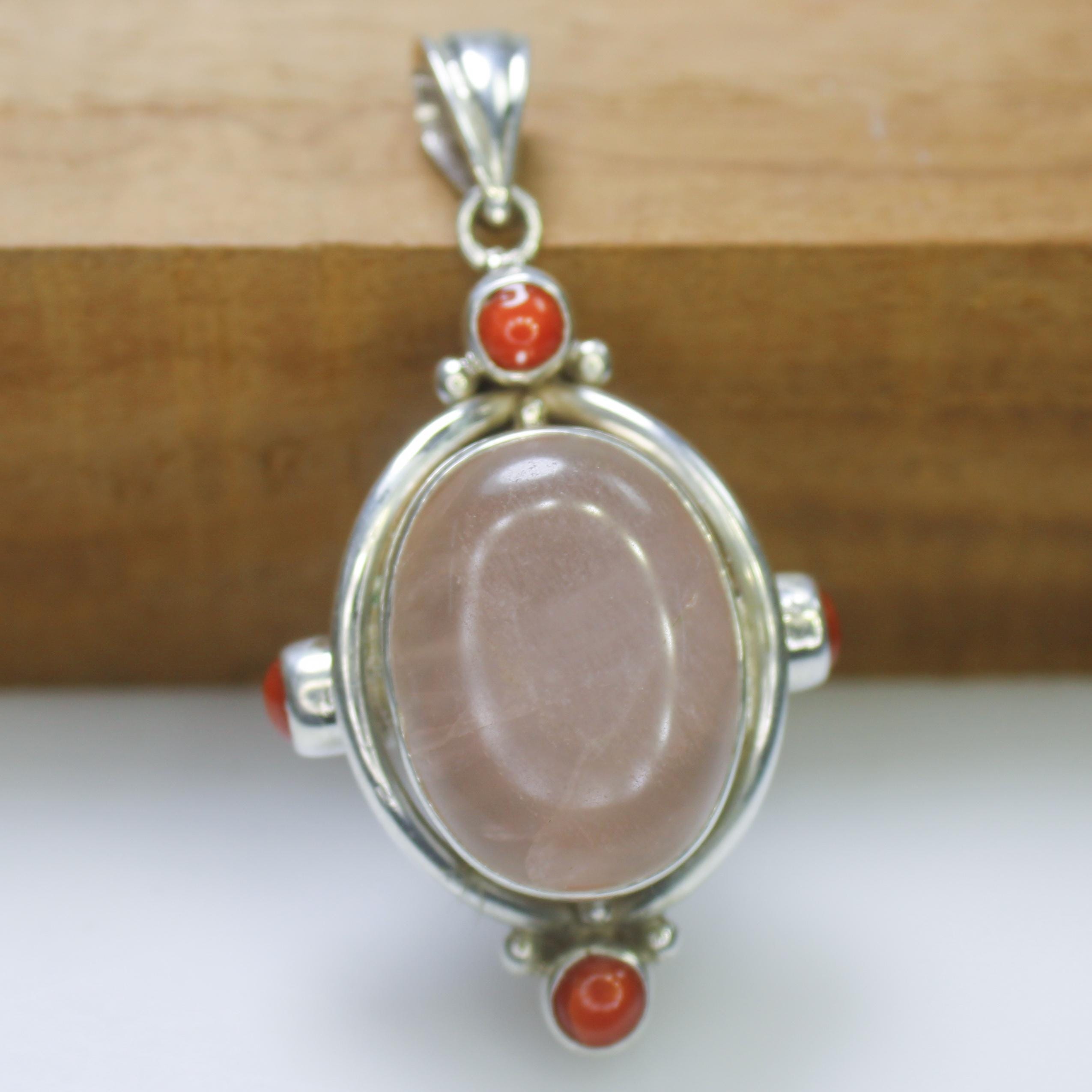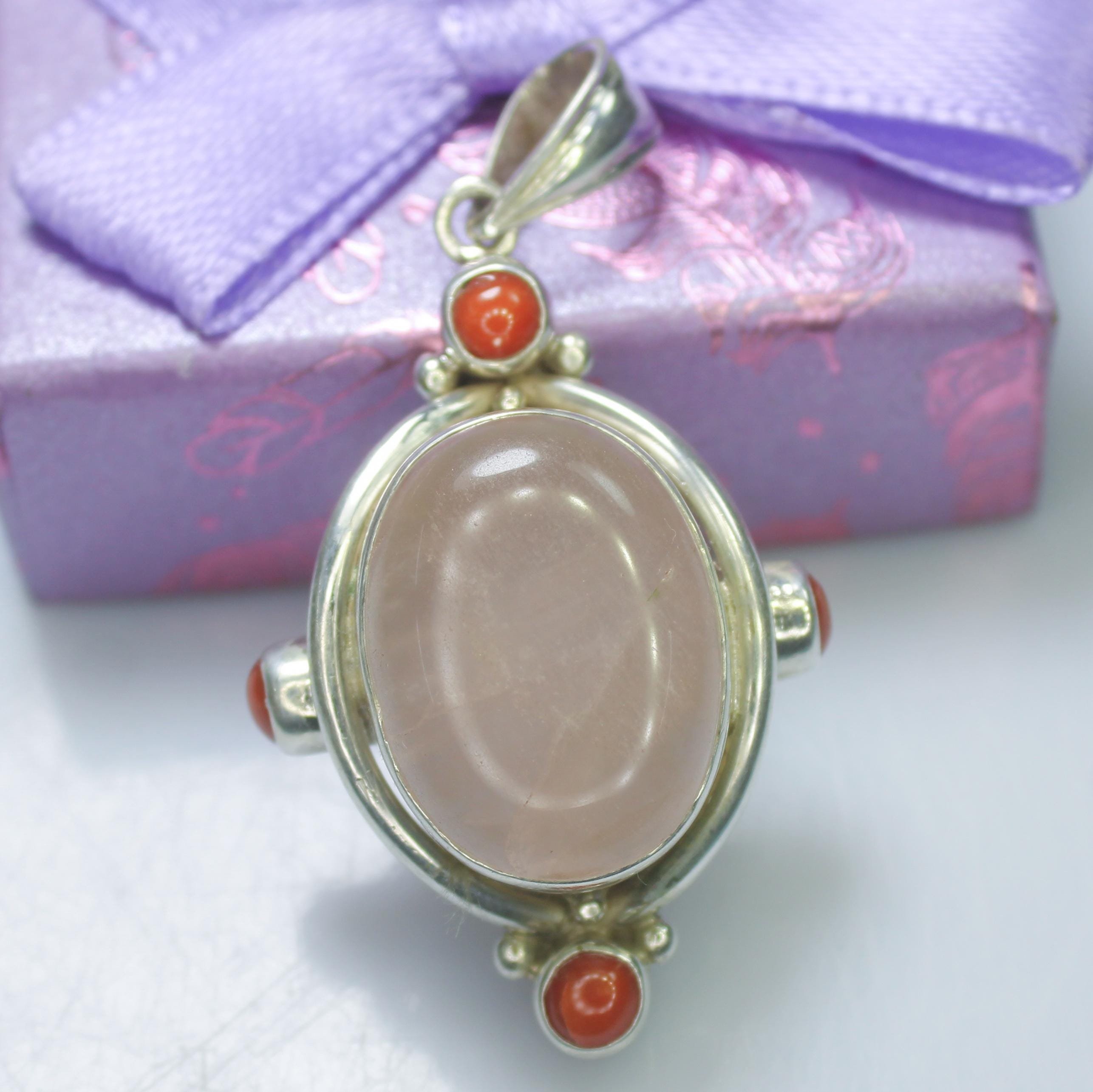 NATURAL PINK ROSE QUARTZ PENDANT WITH STERLING SILVER