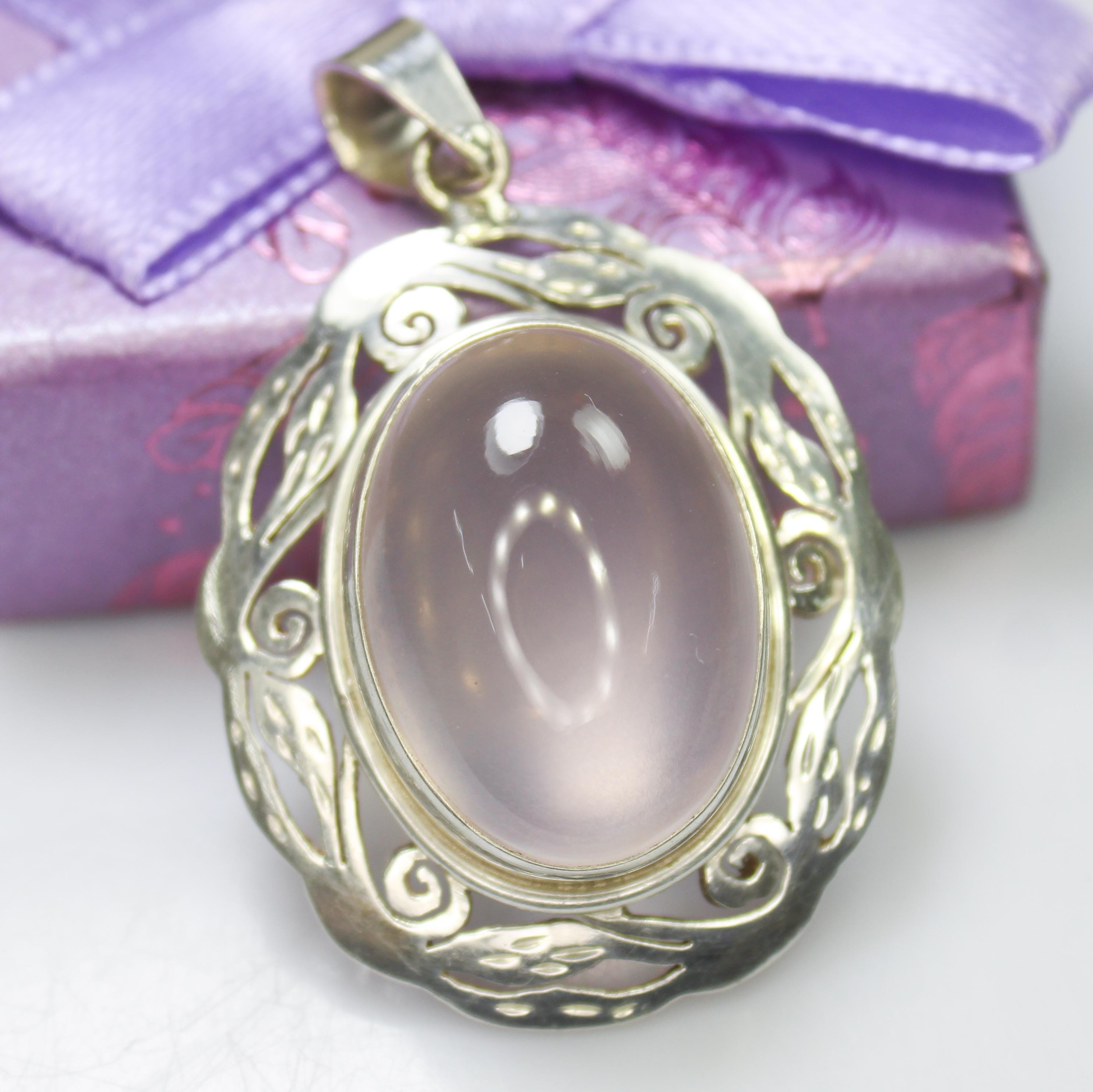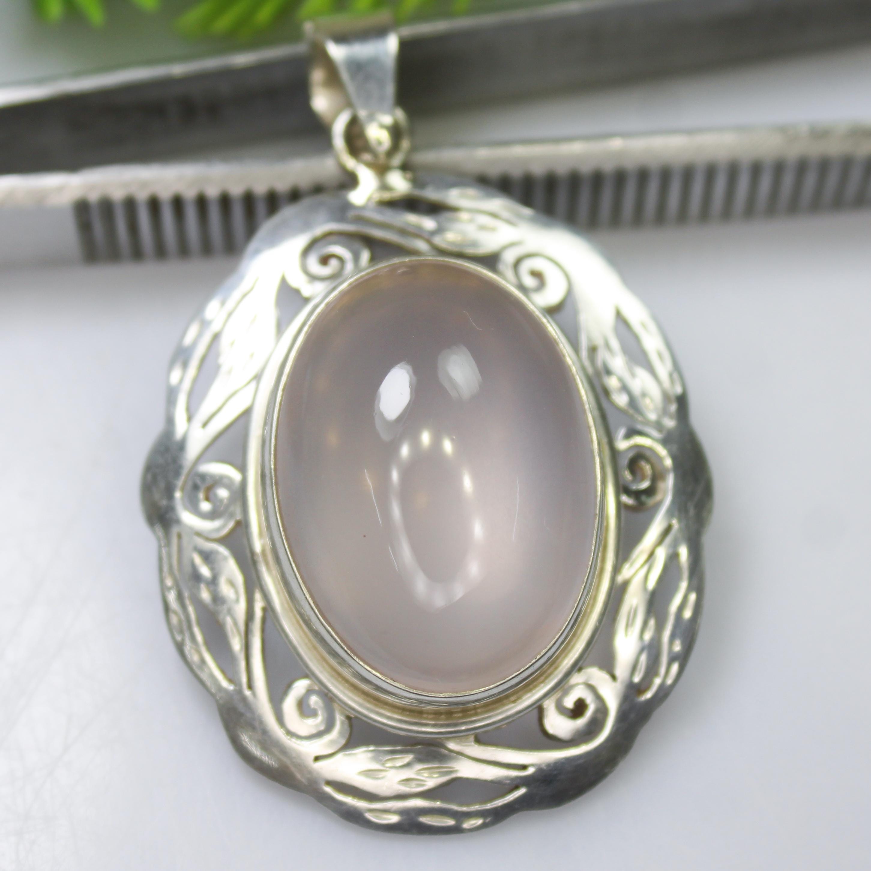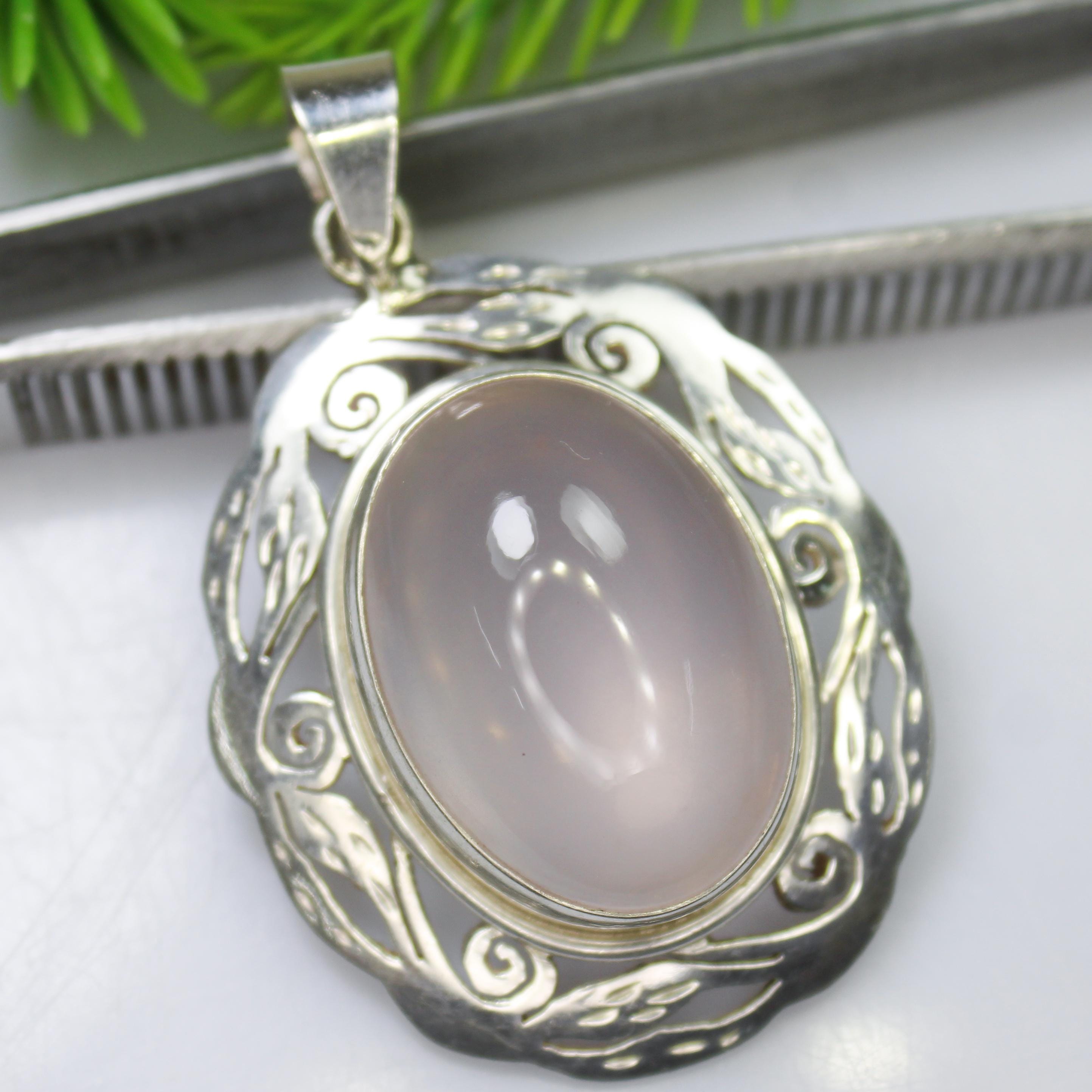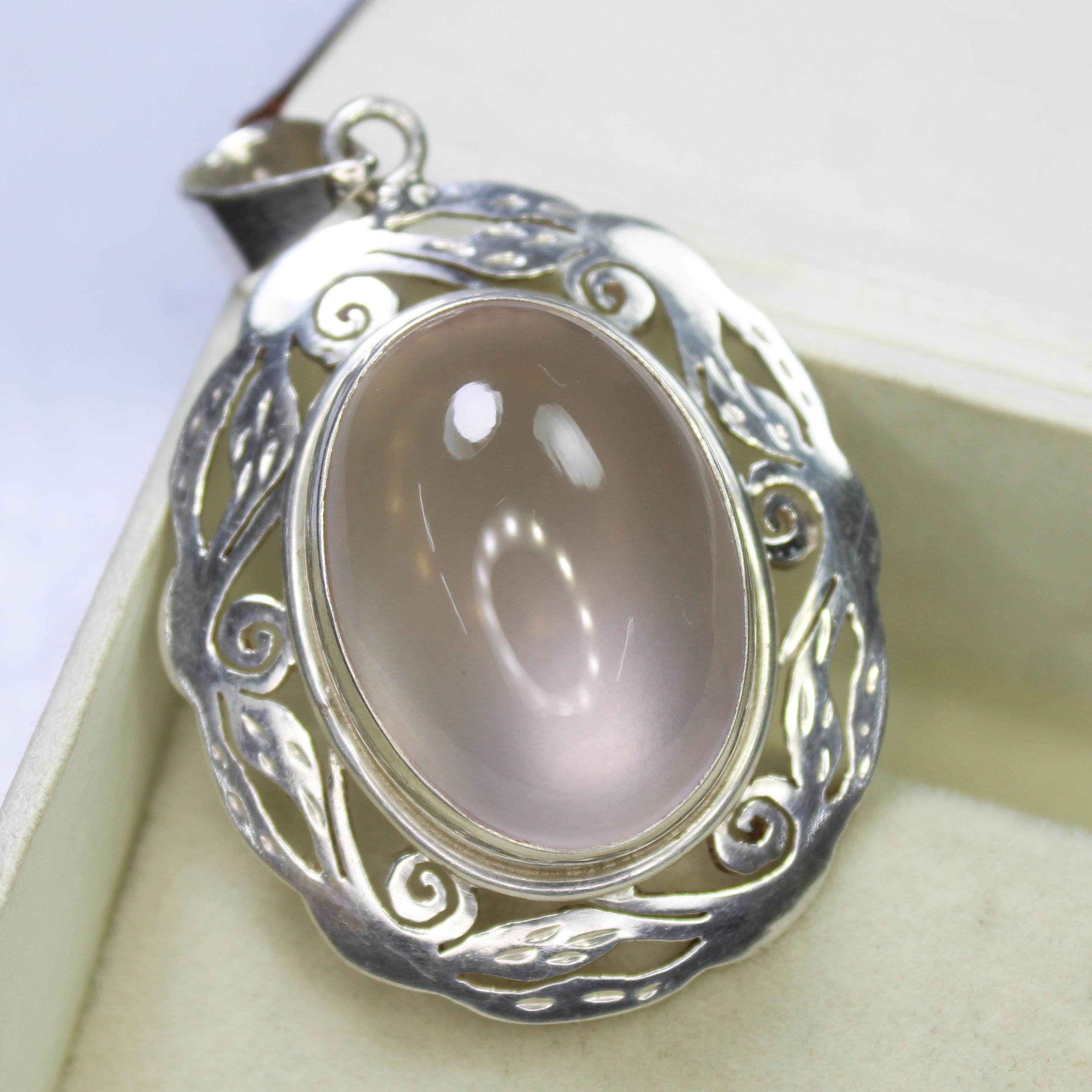 NATURAL PINK ROSE QUARTZ PENDANT WITH STERLING SILVER