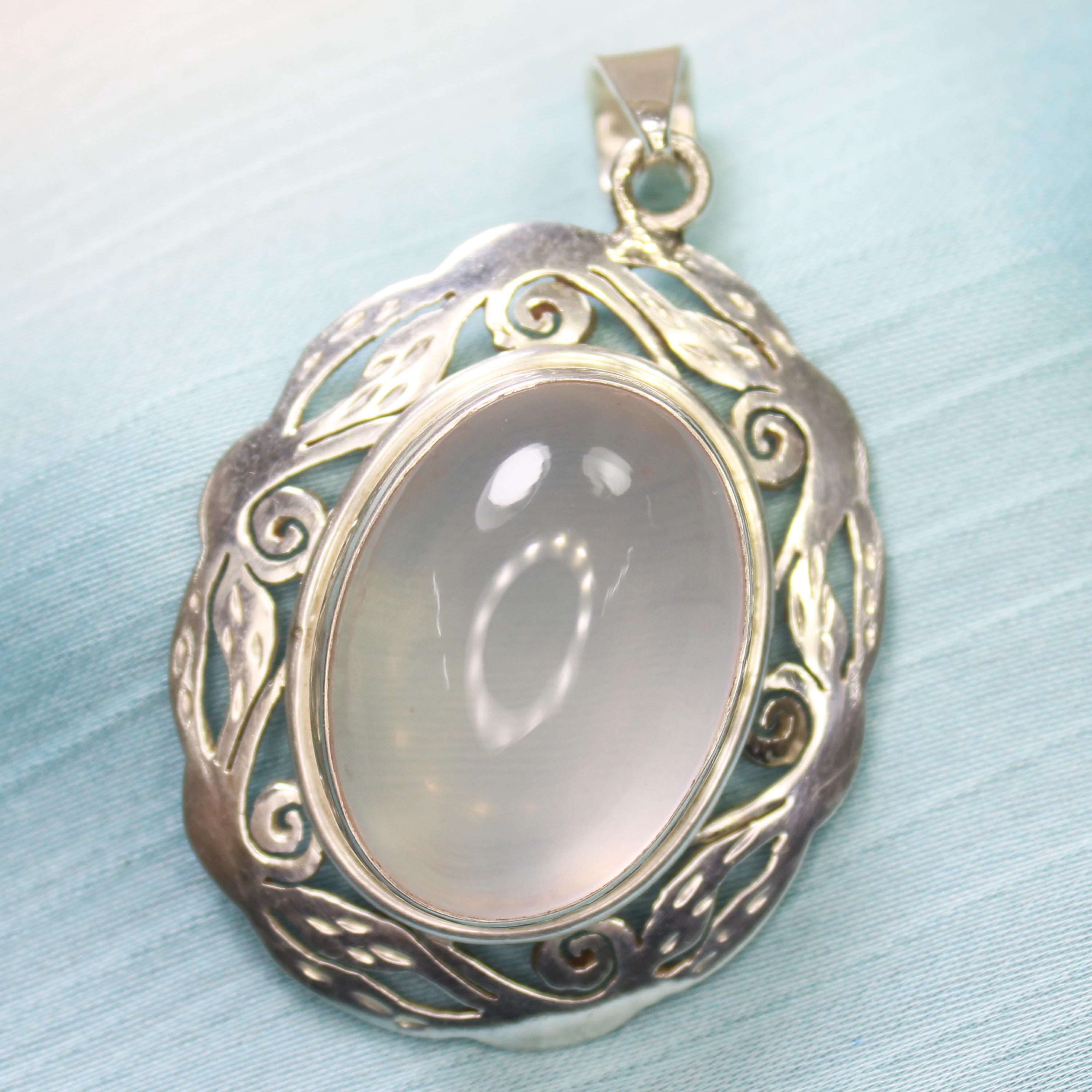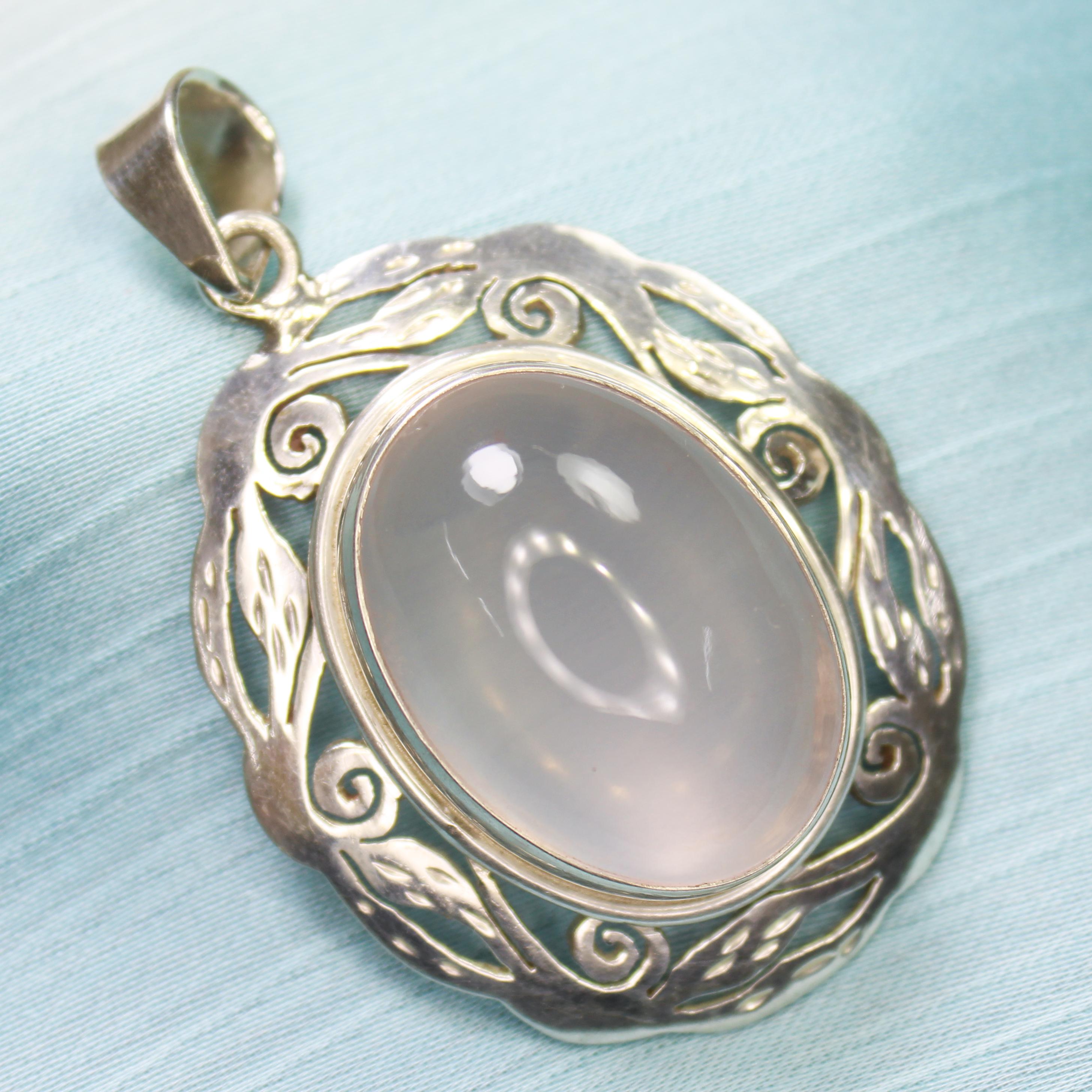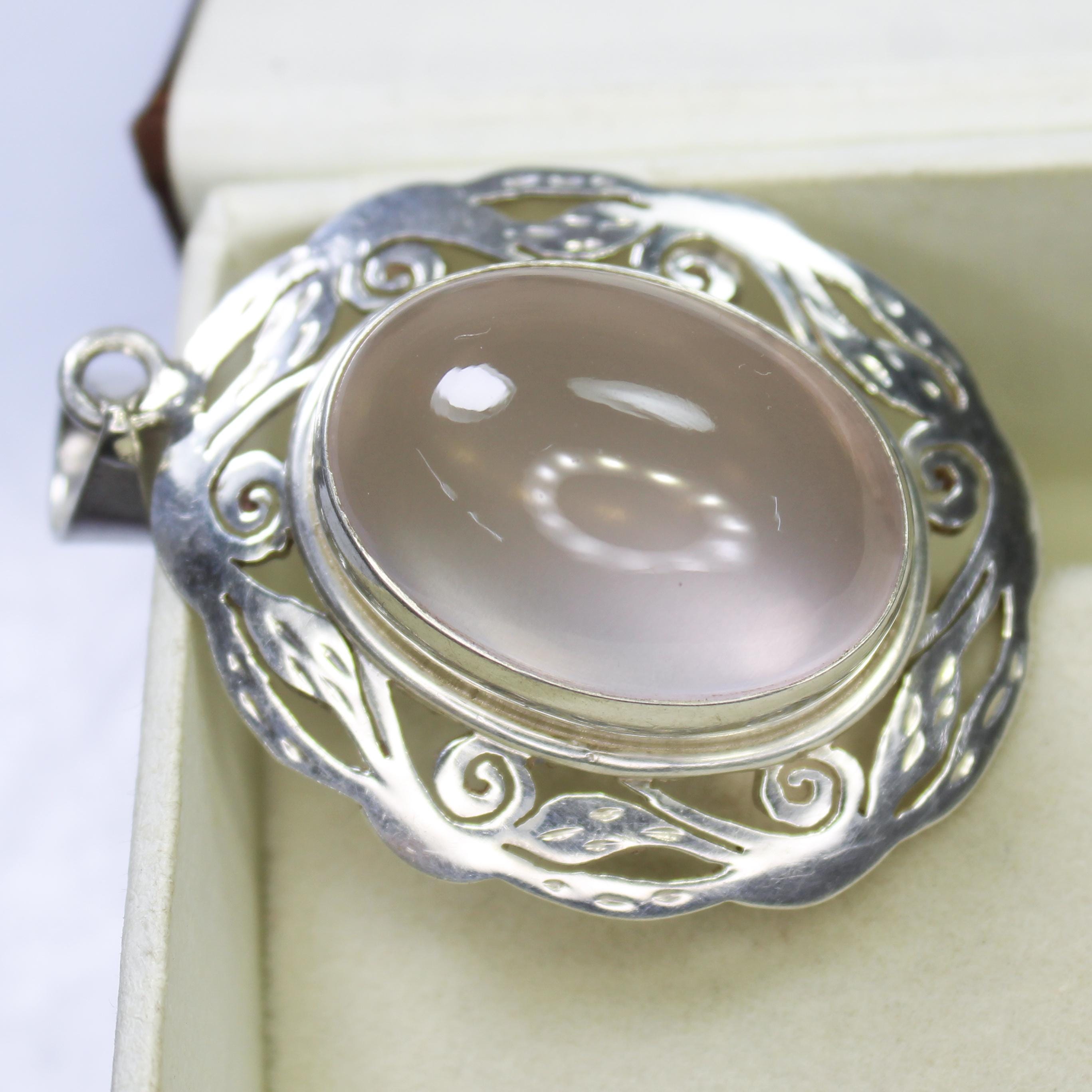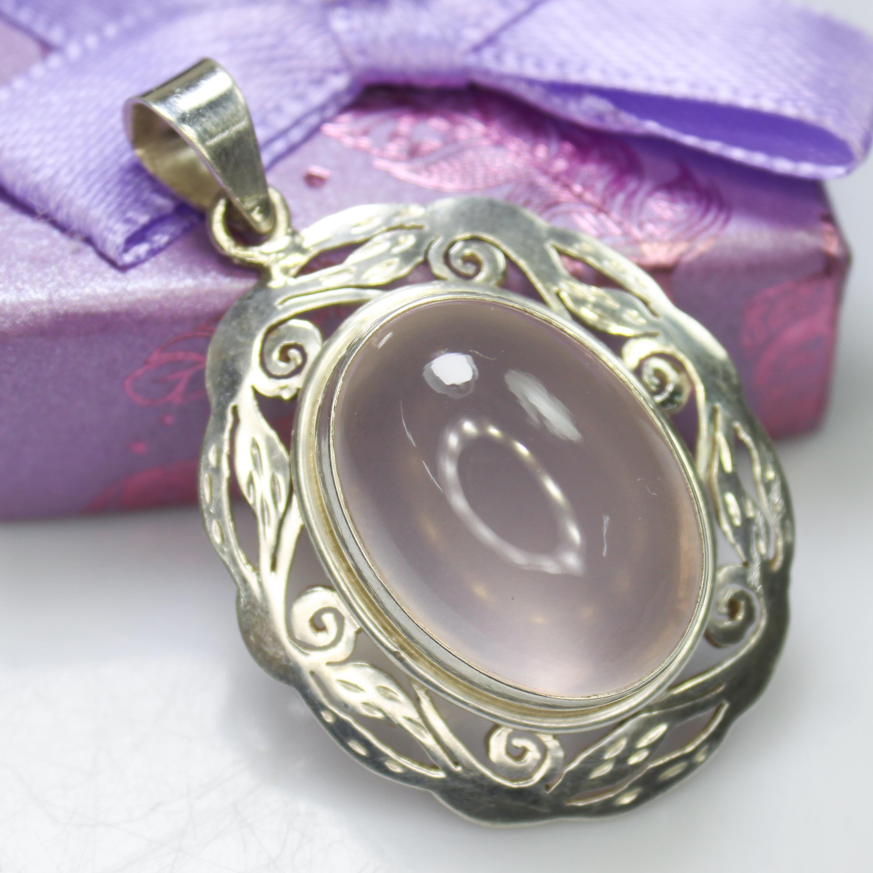 NATURAL PINK ROSE QUARTZ PENDANT WITH STERLING SILVER