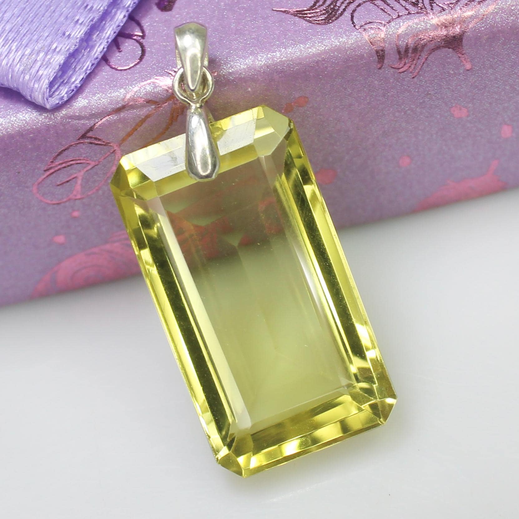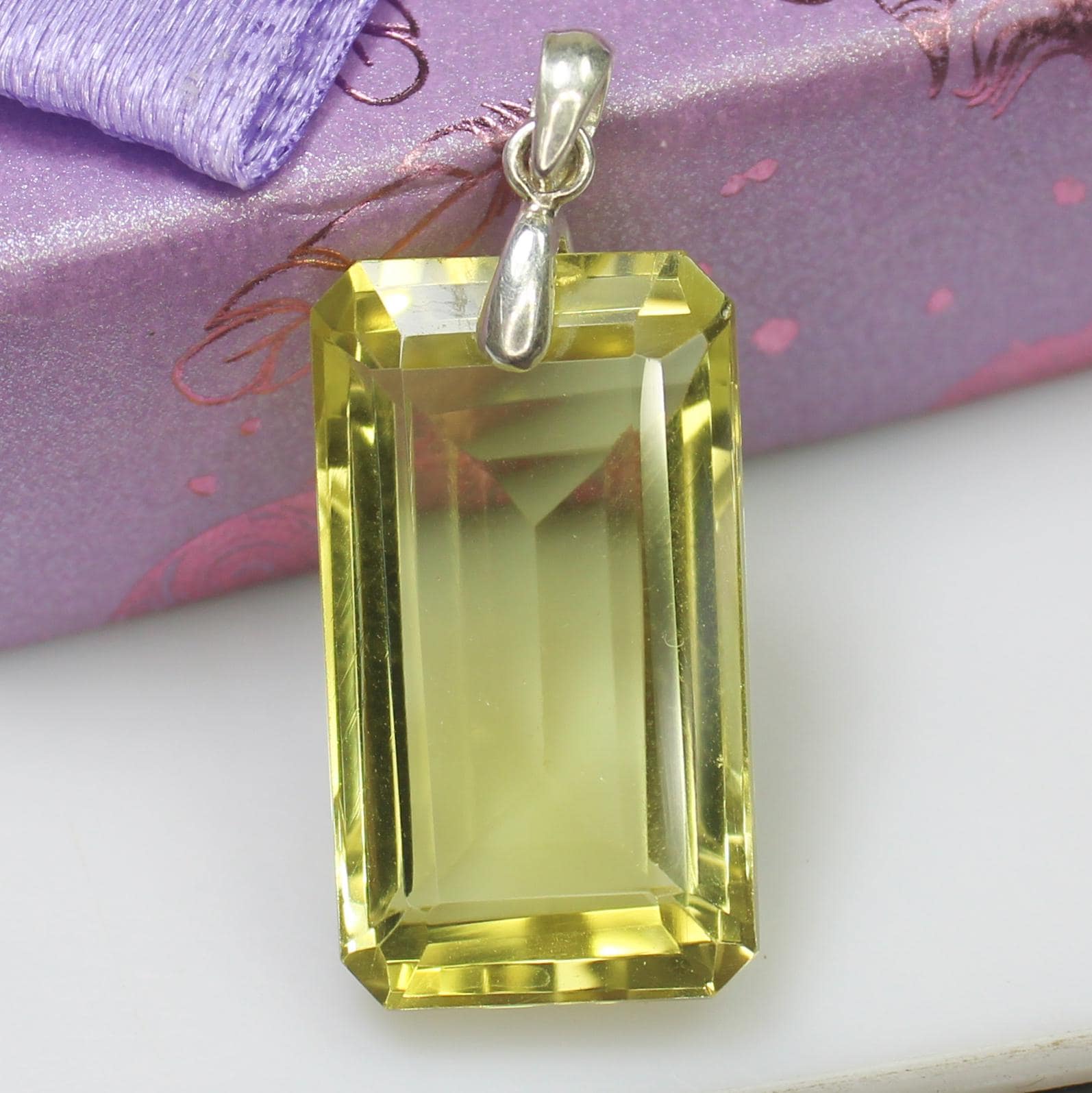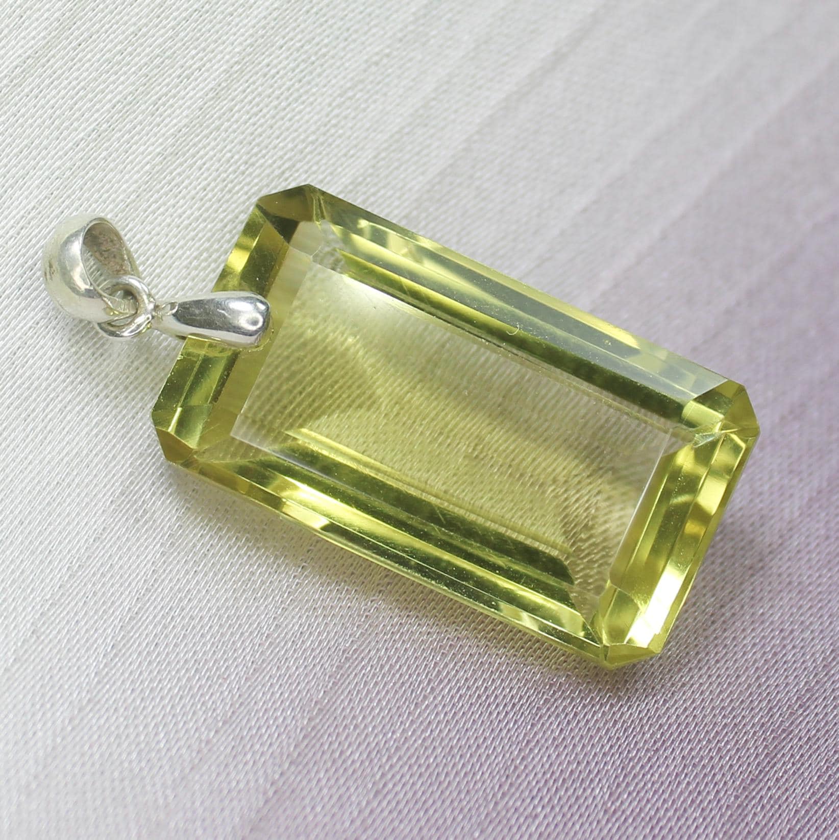 NATURAL YELLOW LEMON QUARTZ PENDANT WITH STERLING SILVER