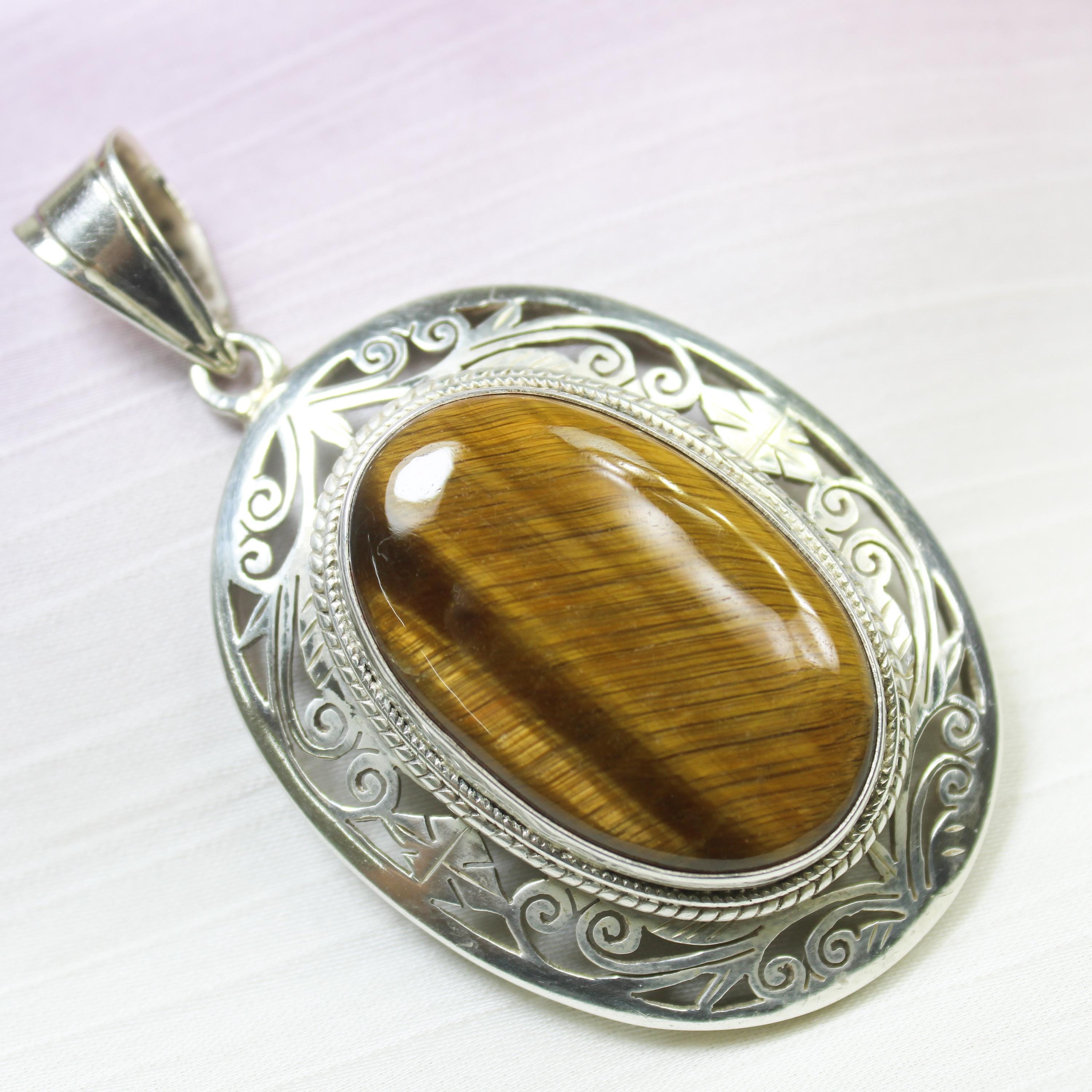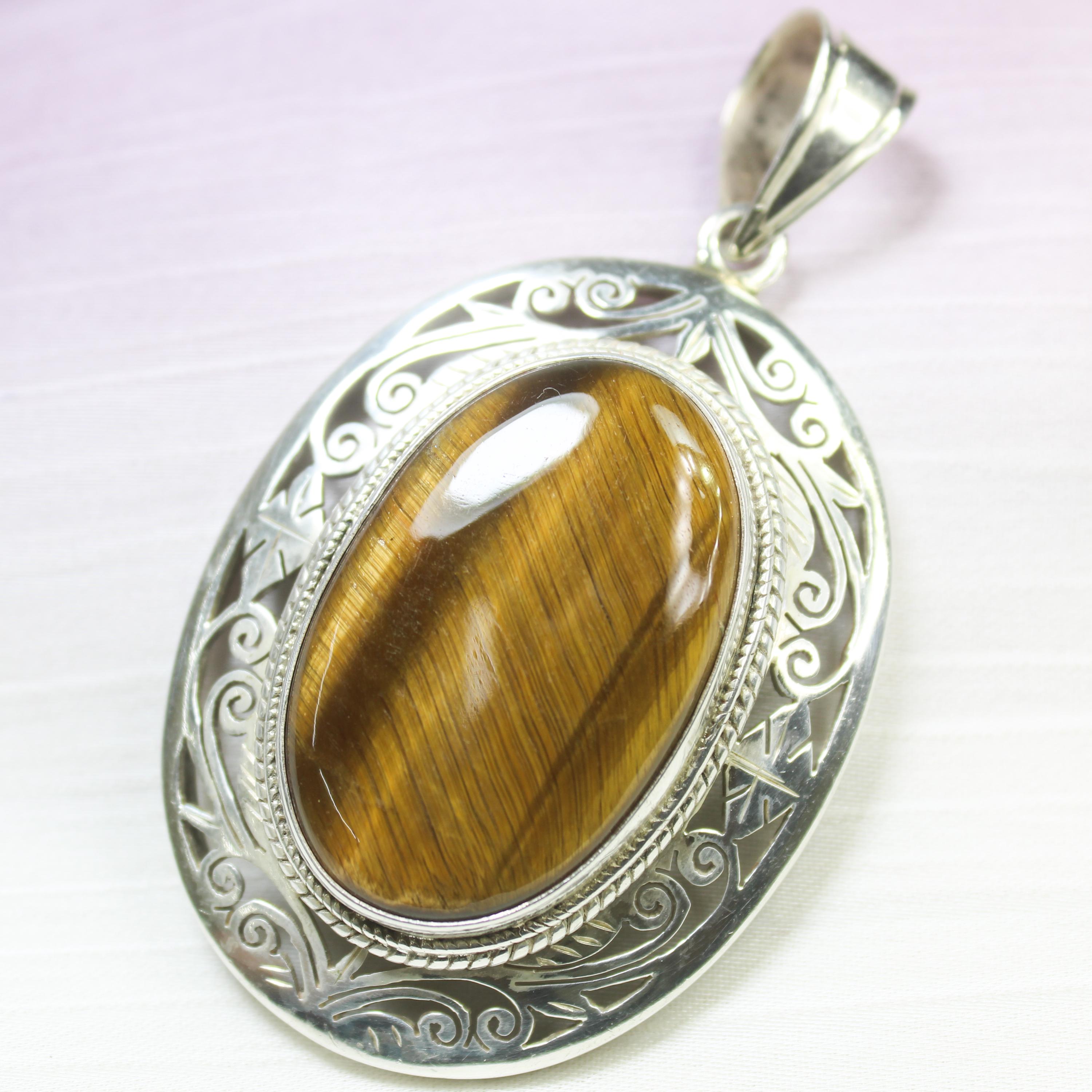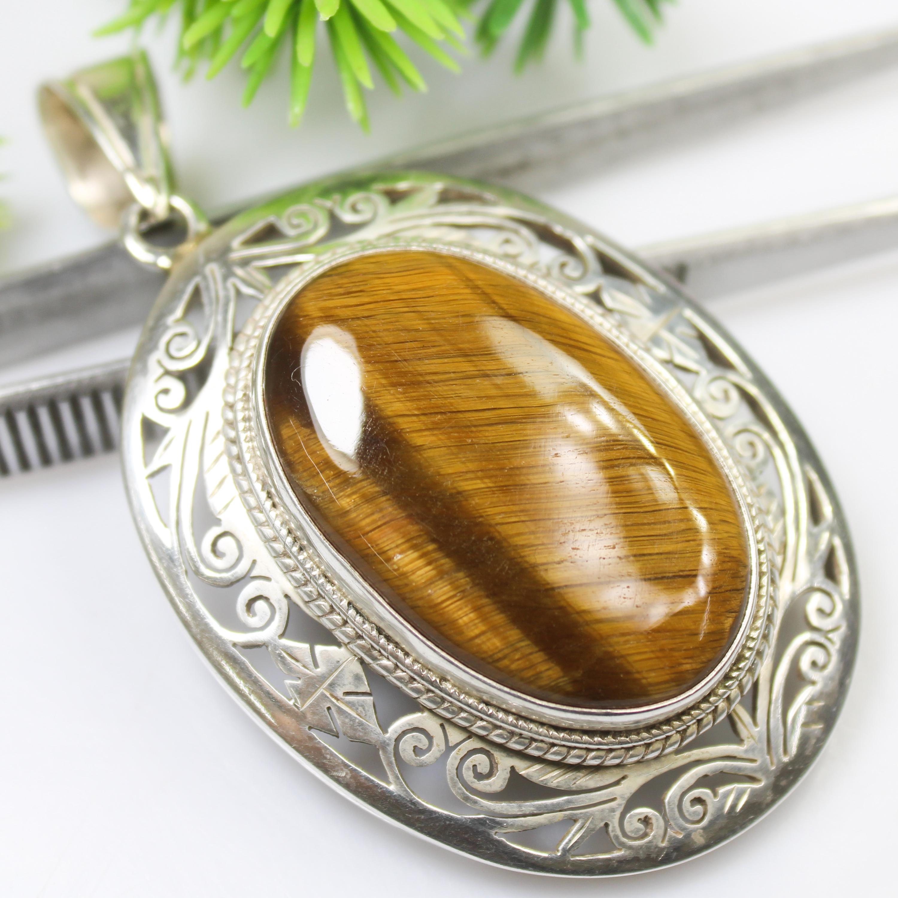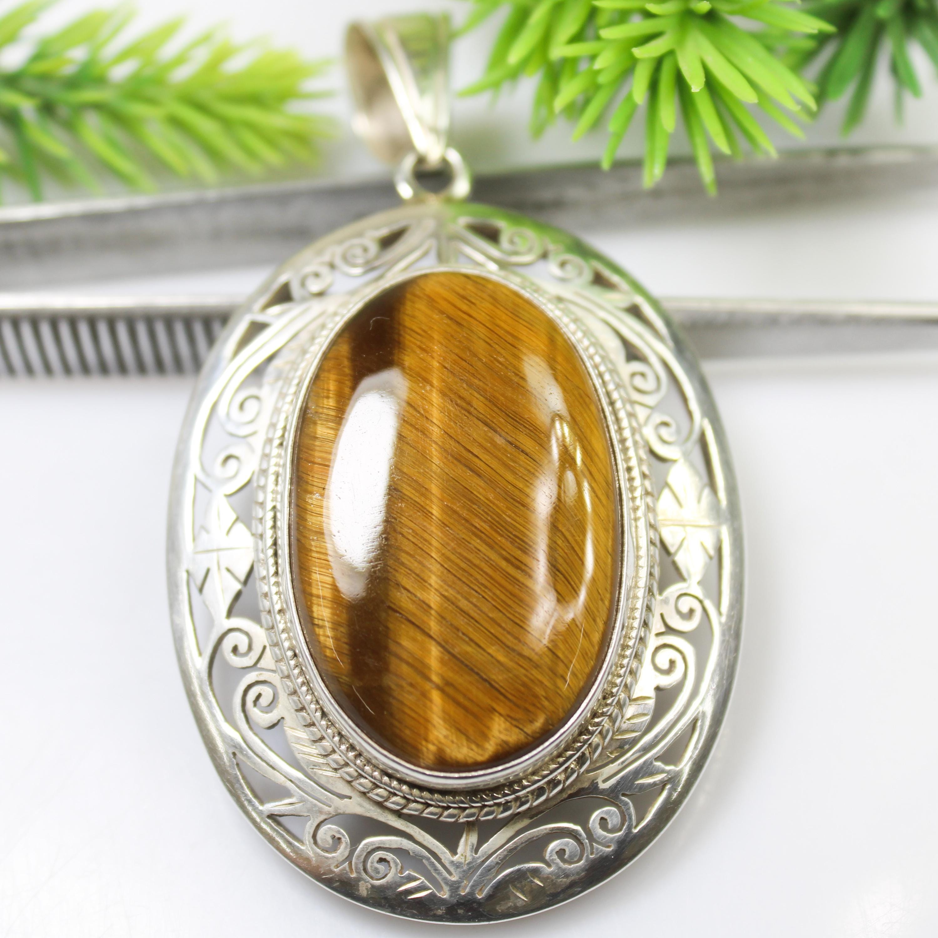 NATURAL YELLOW TIGER EYE PENDANT WITH STERLING SILVER