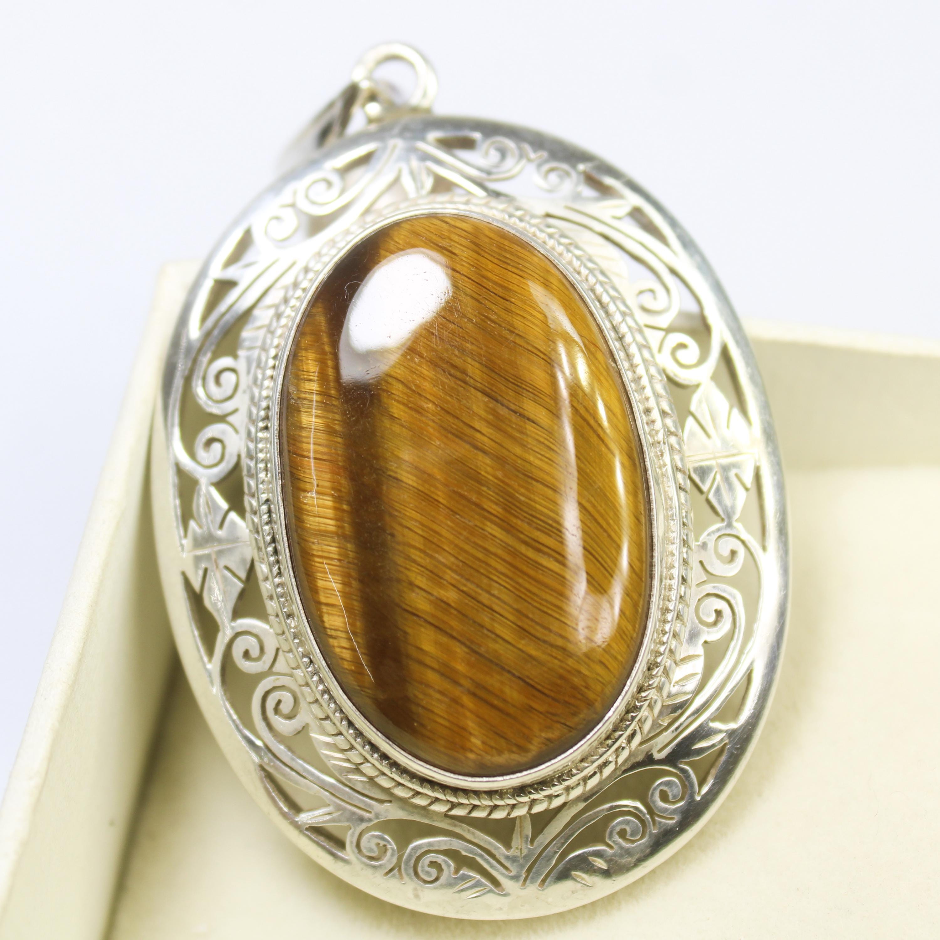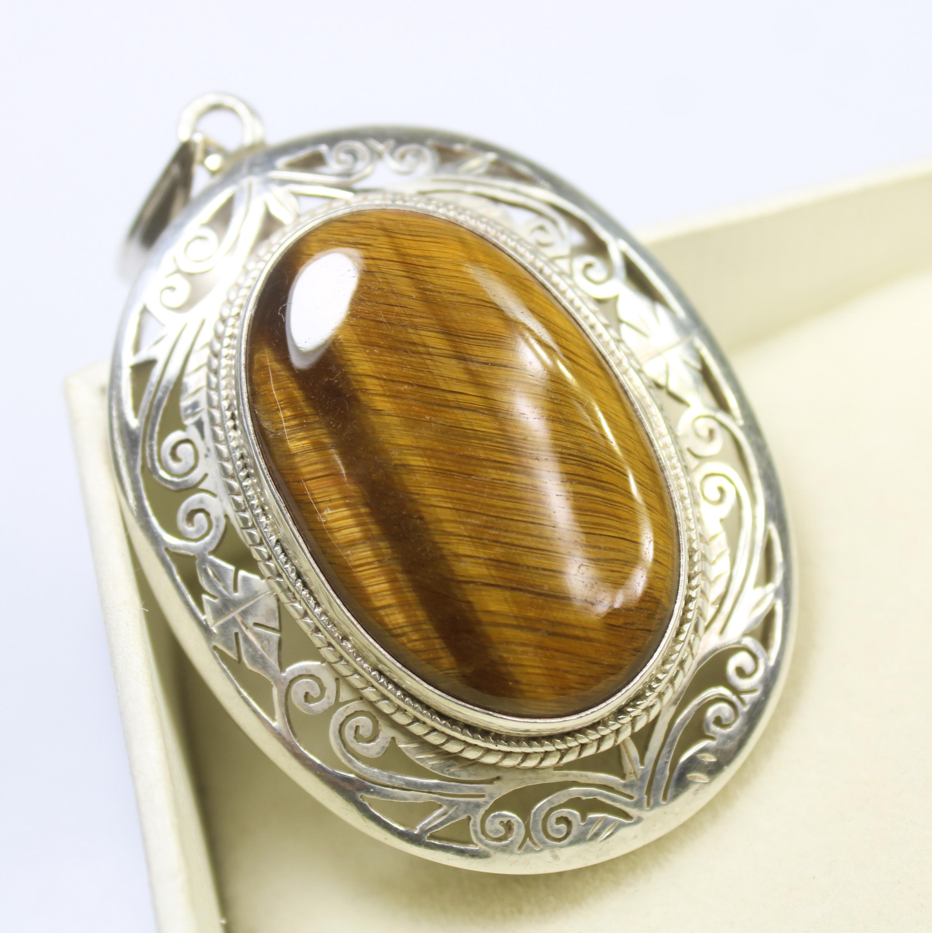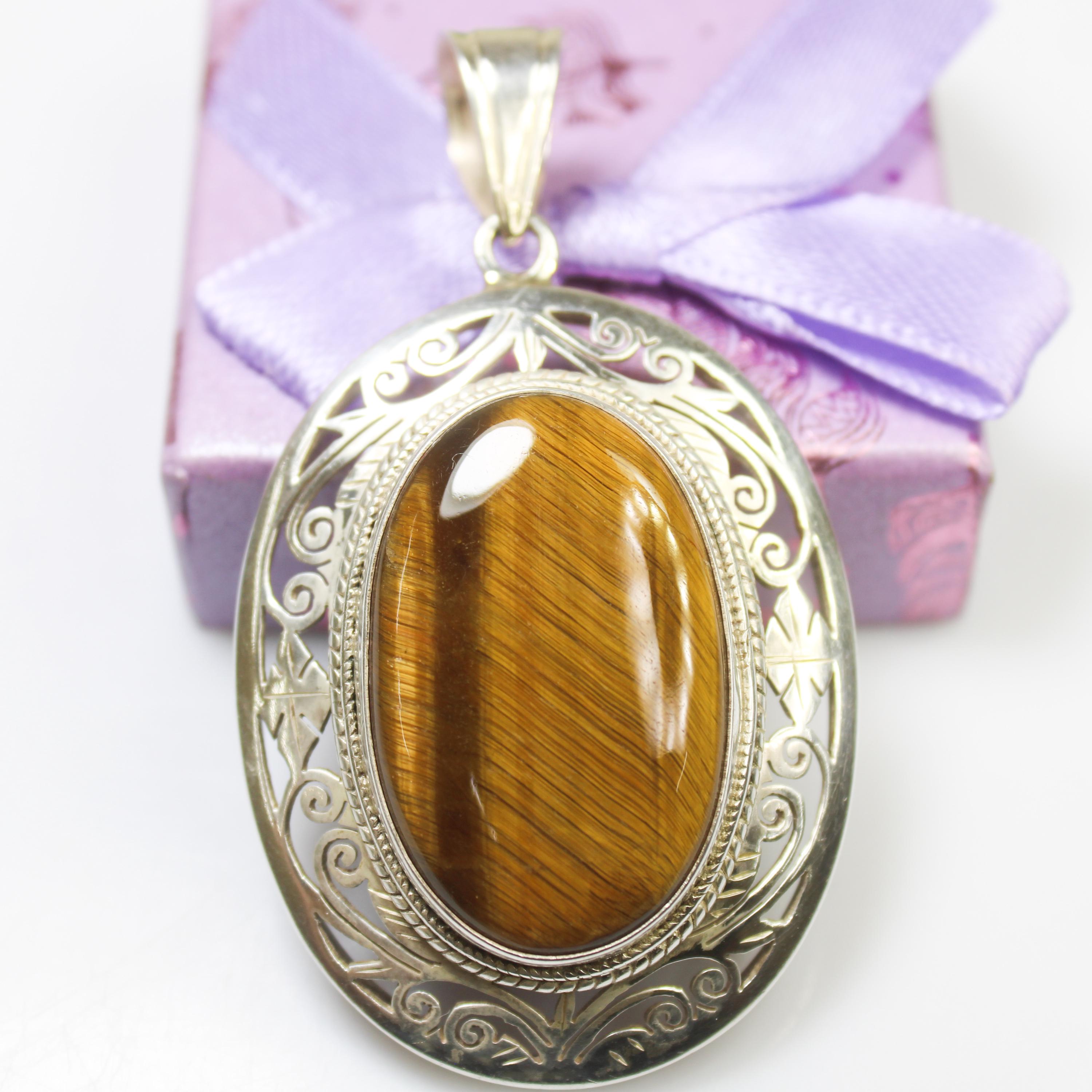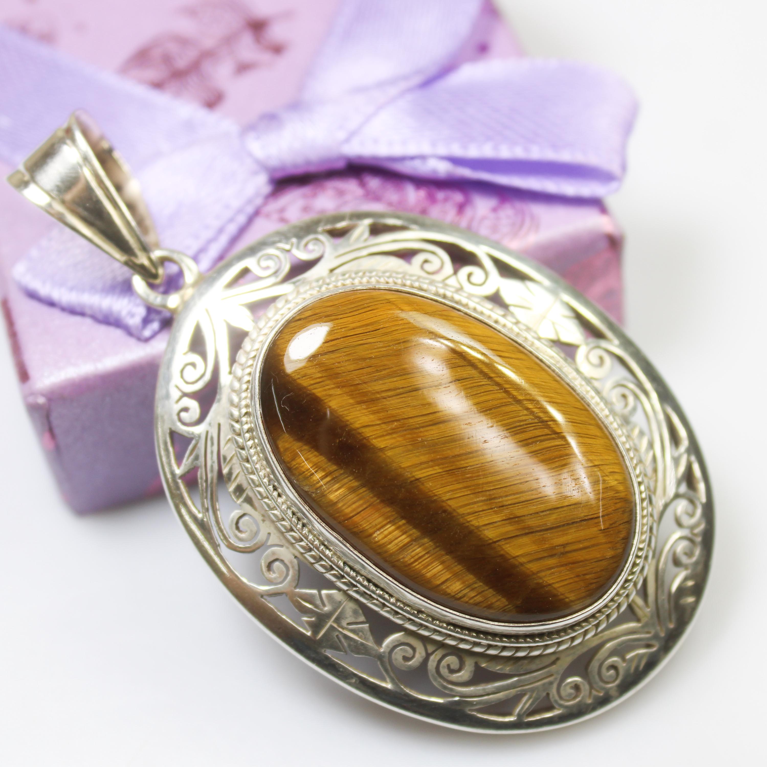 NATURAL YELLOW TIGER EYE PENDANT WITH STERLING SILVER