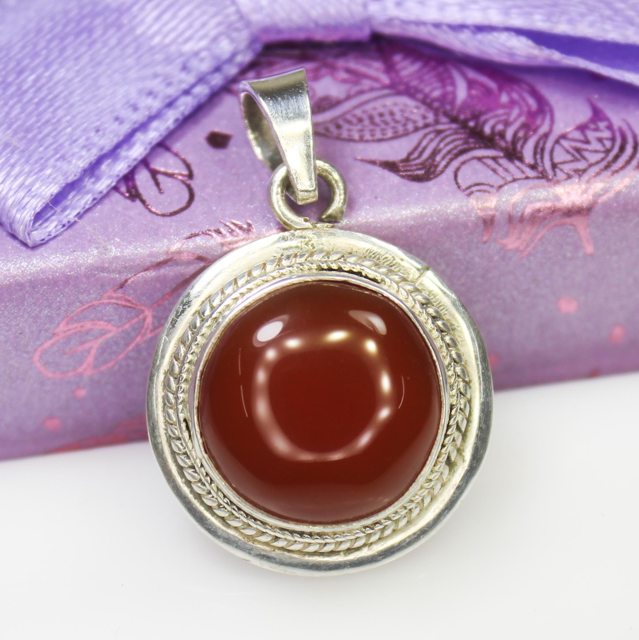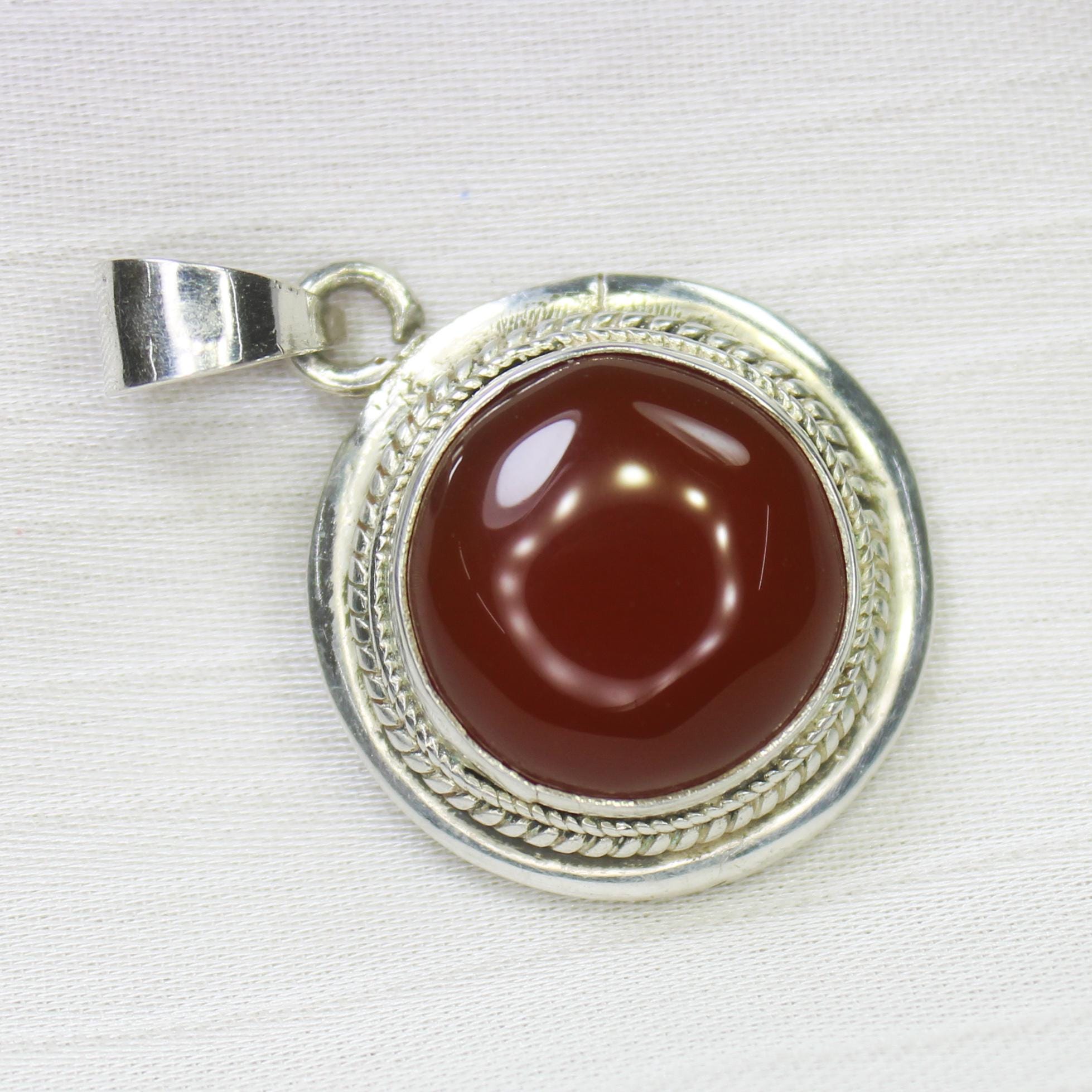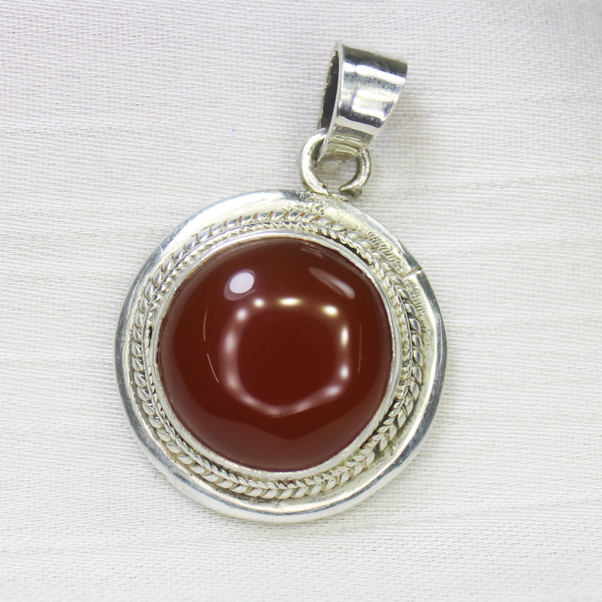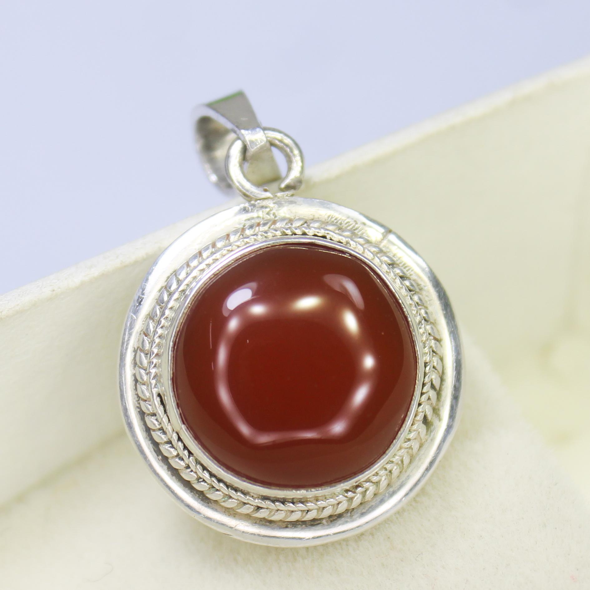 NATURAL ORANGE ONYX PENDANT WITH STERLING SILVER