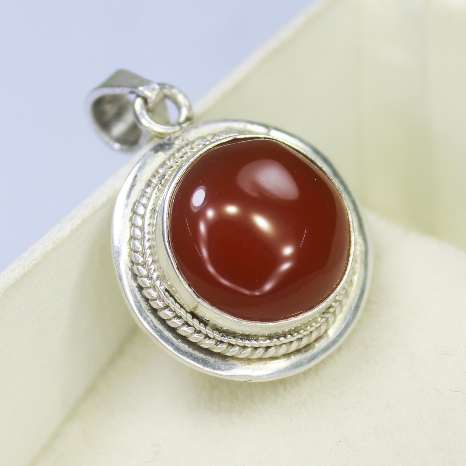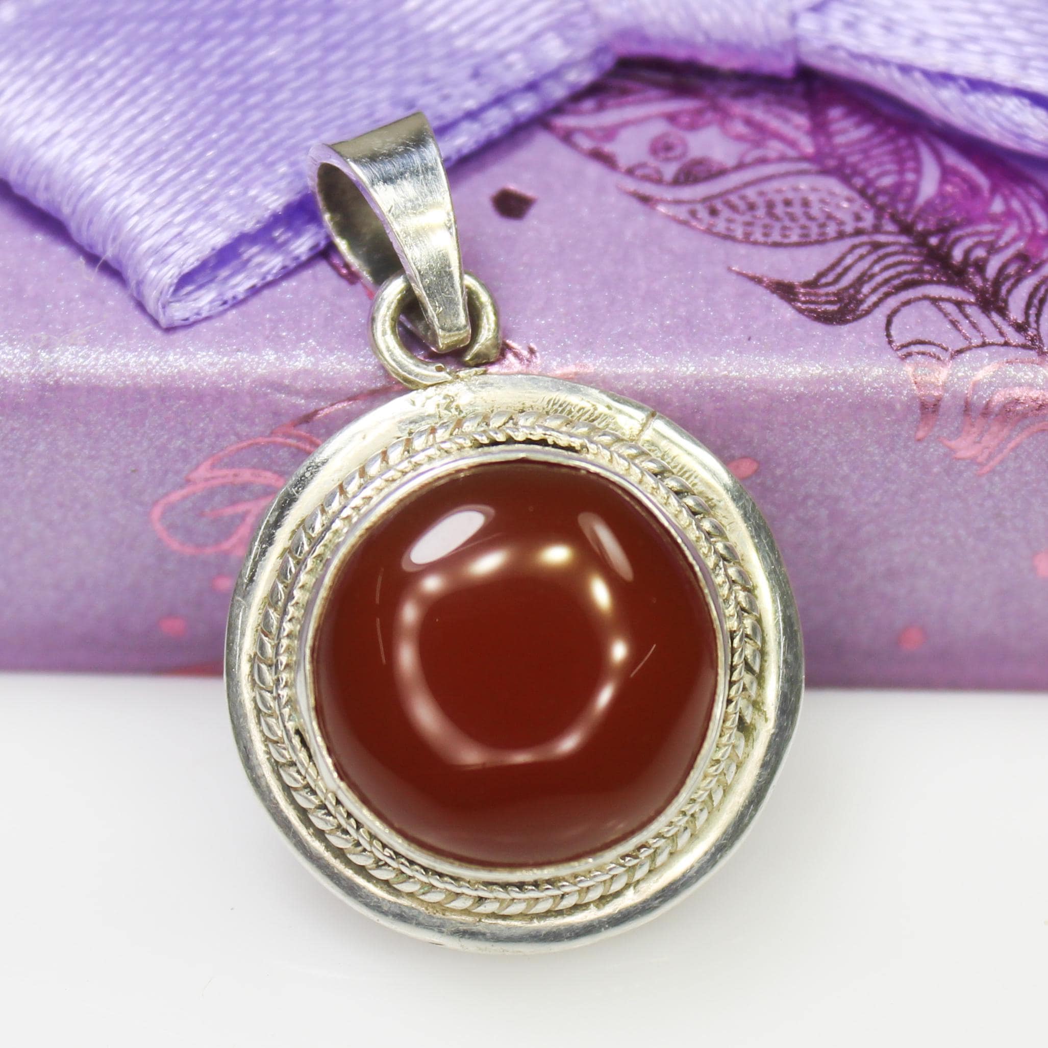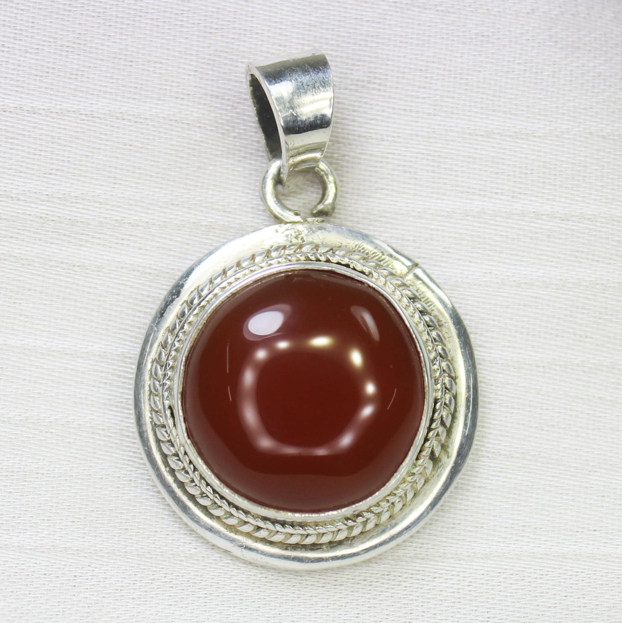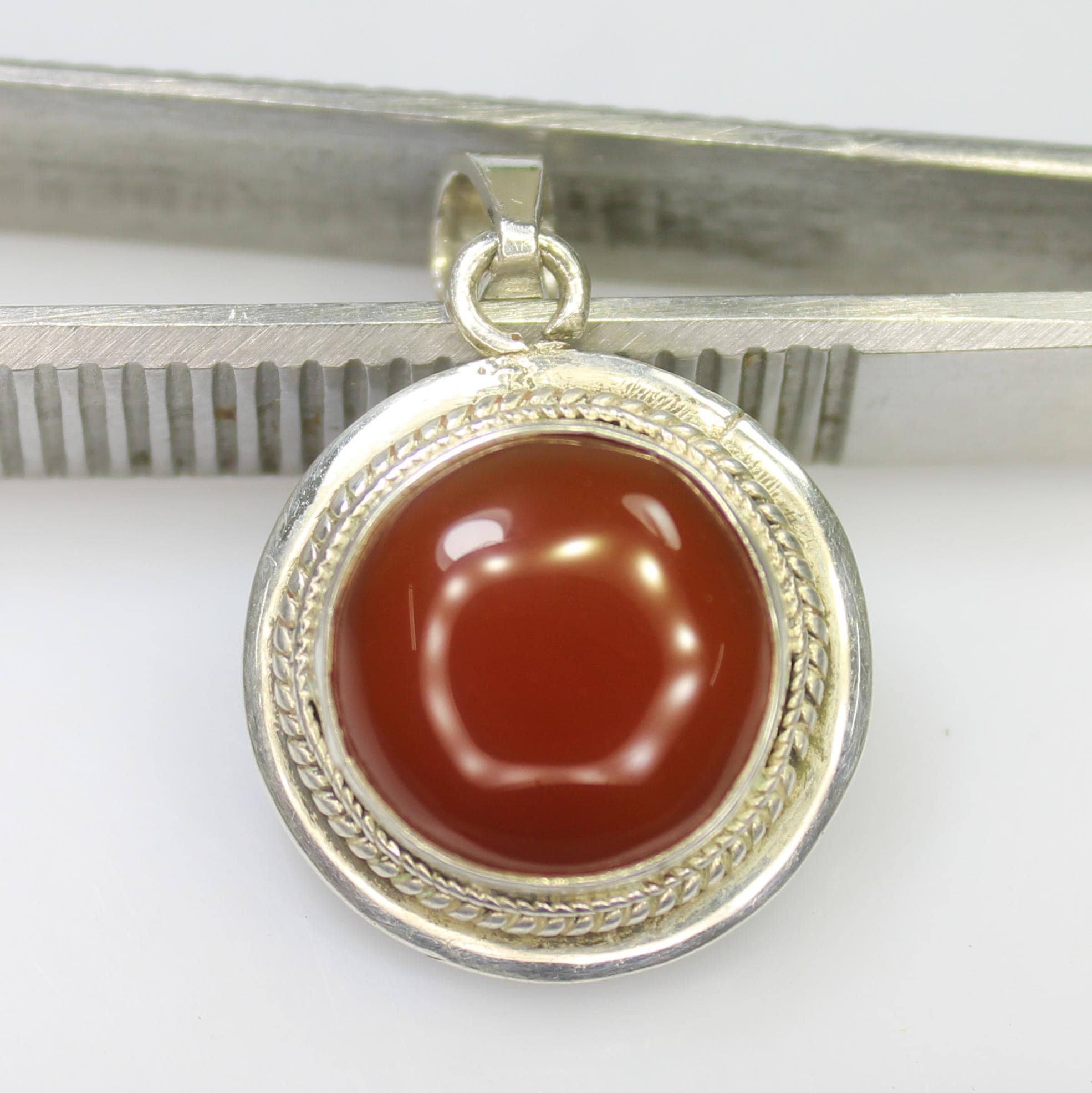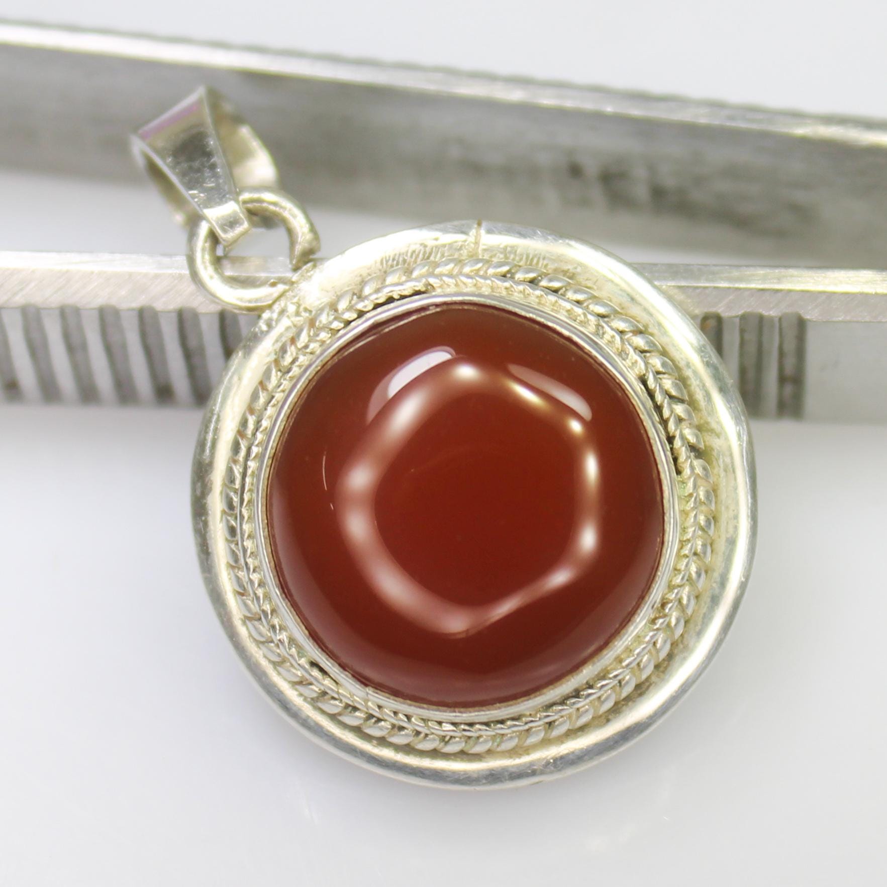 NATURAL ORANGE ONYX PENDANT WITH STERLING SILVER