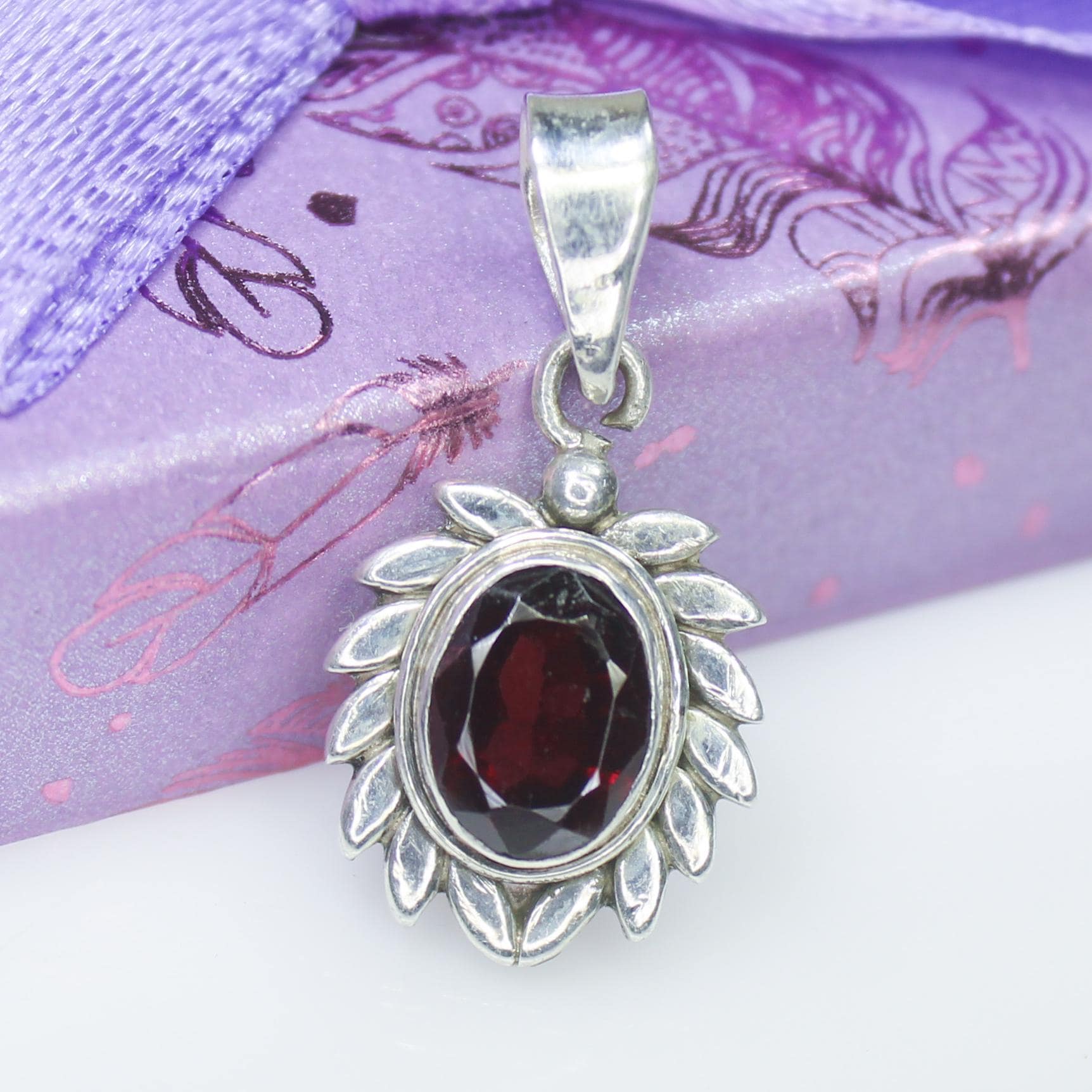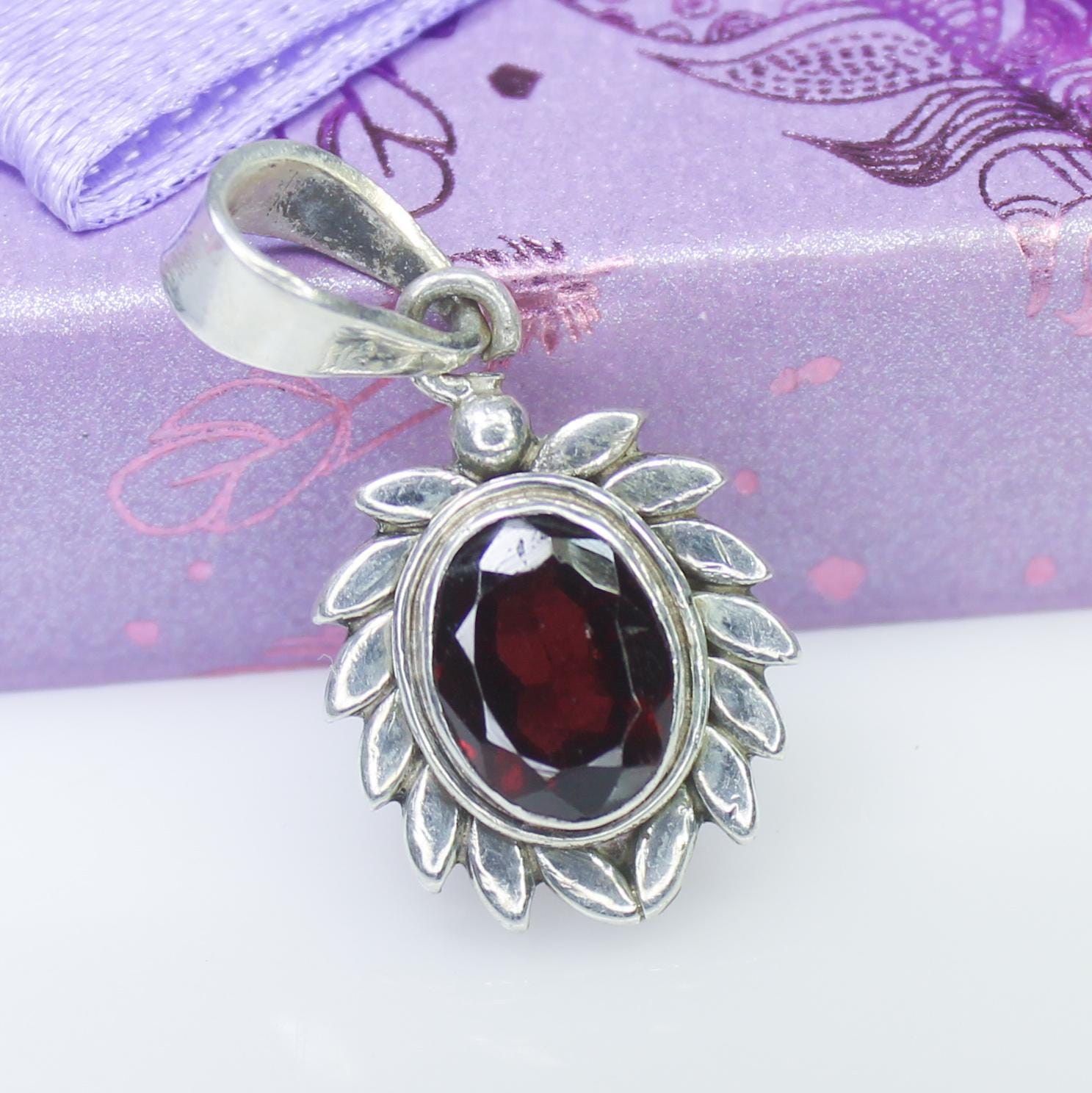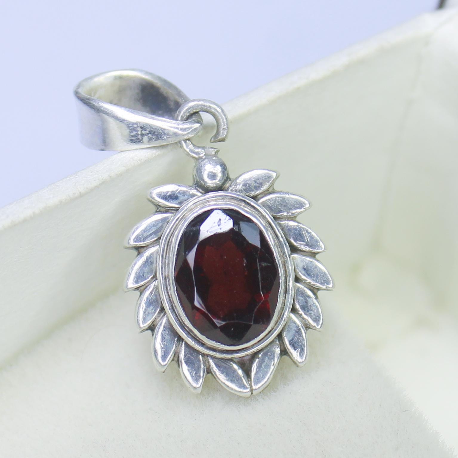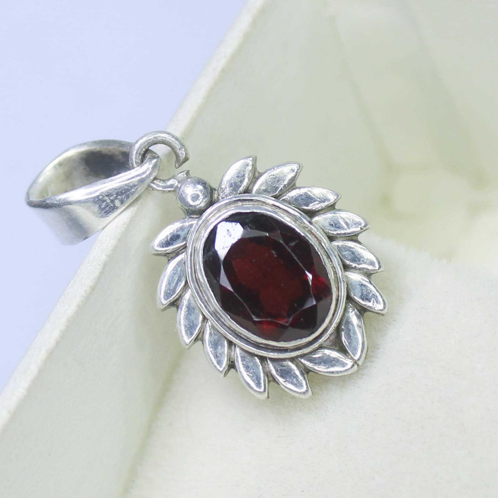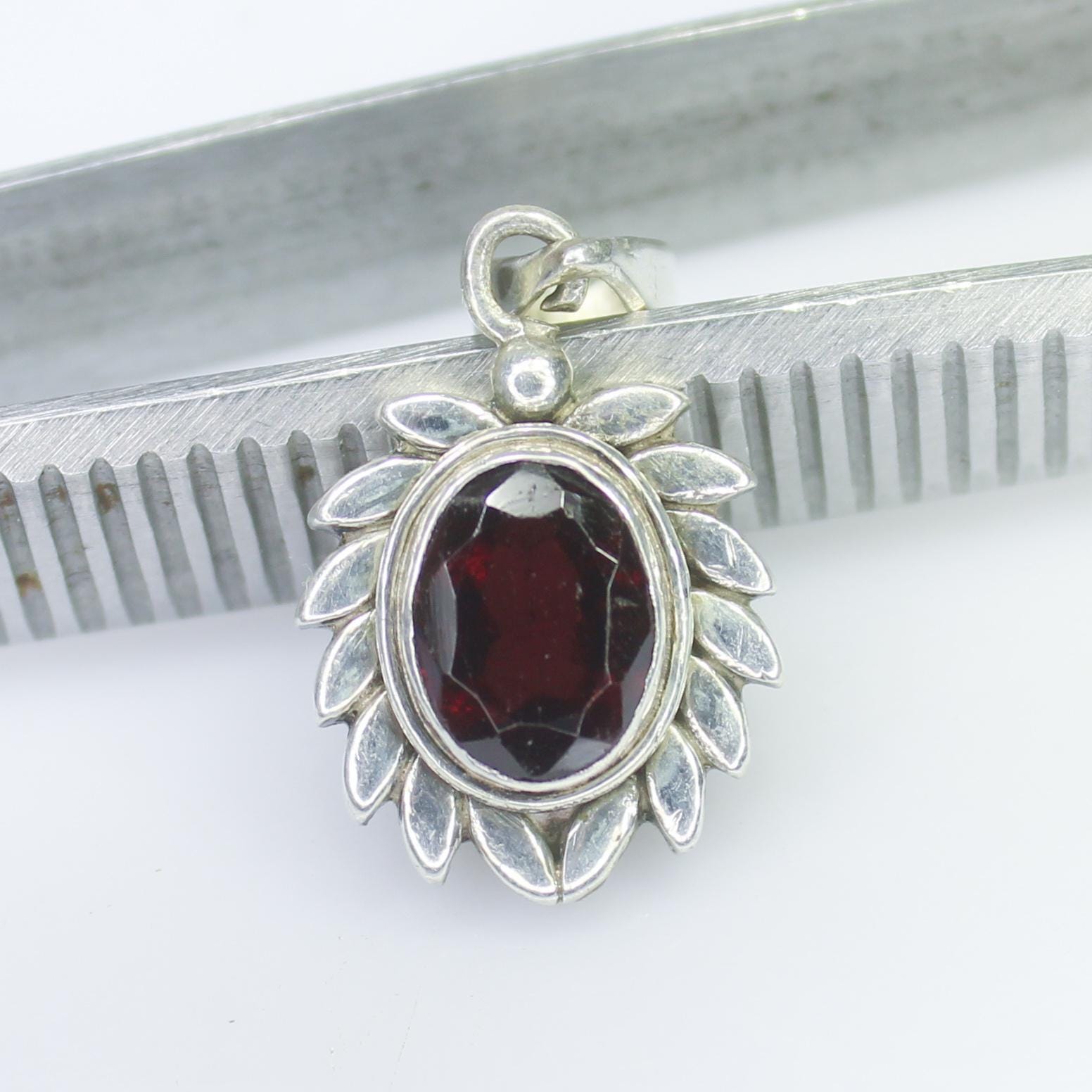 NATURAL RED GARNET PENDANT WITH STERLING SILVER
