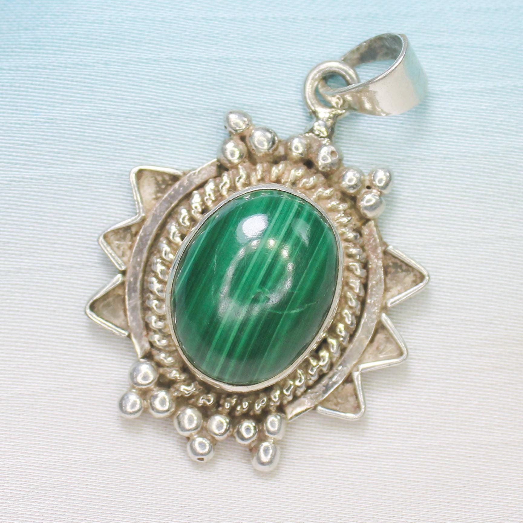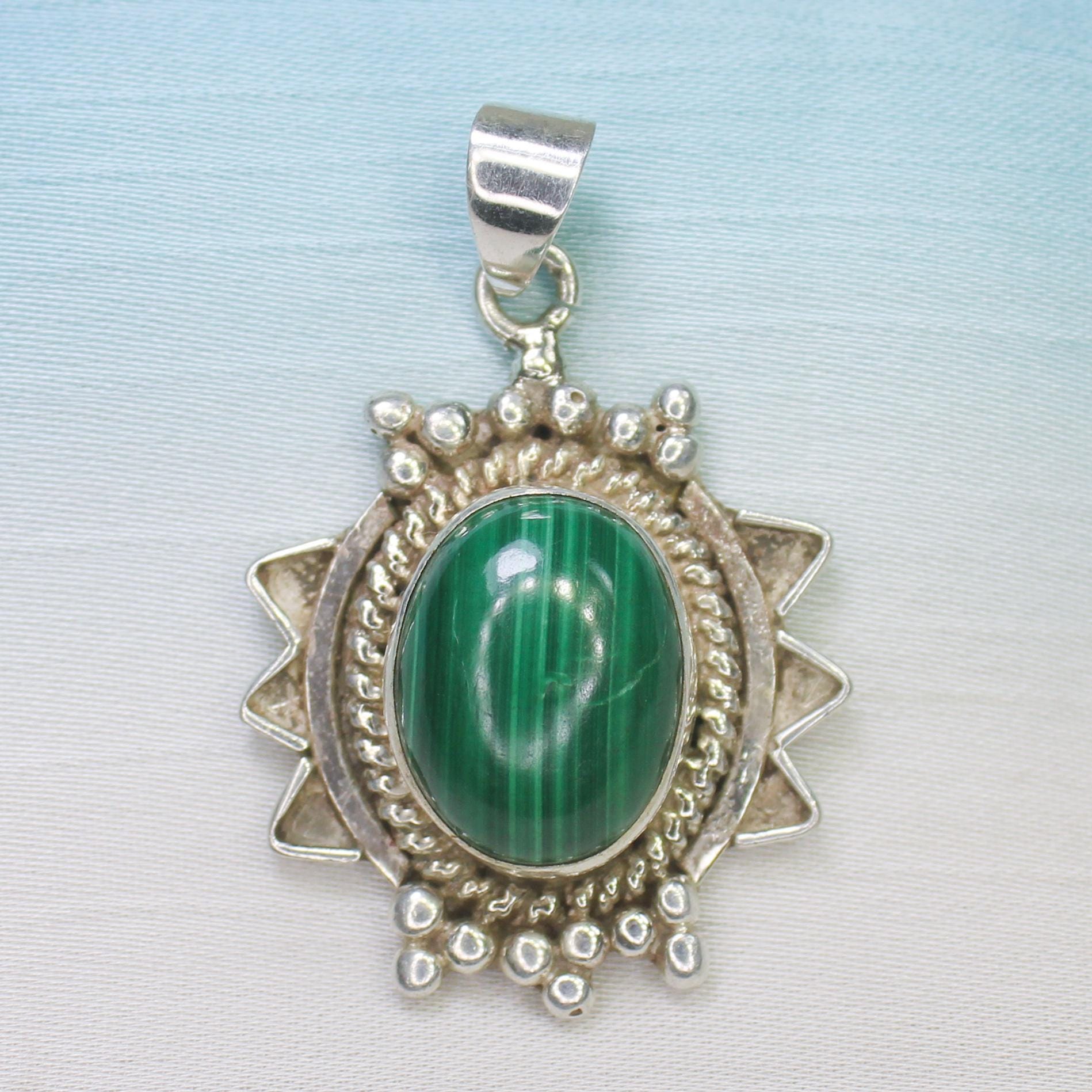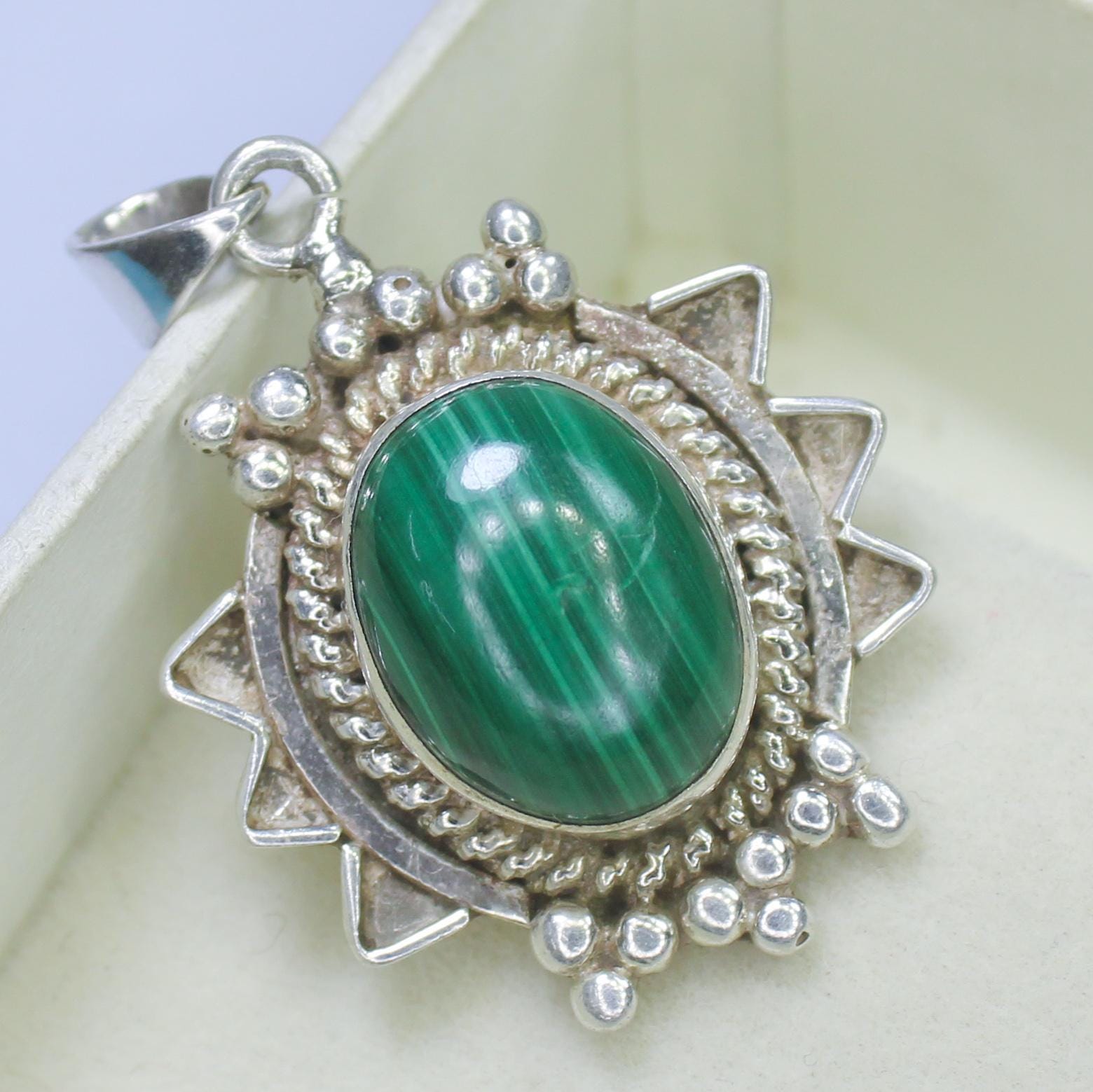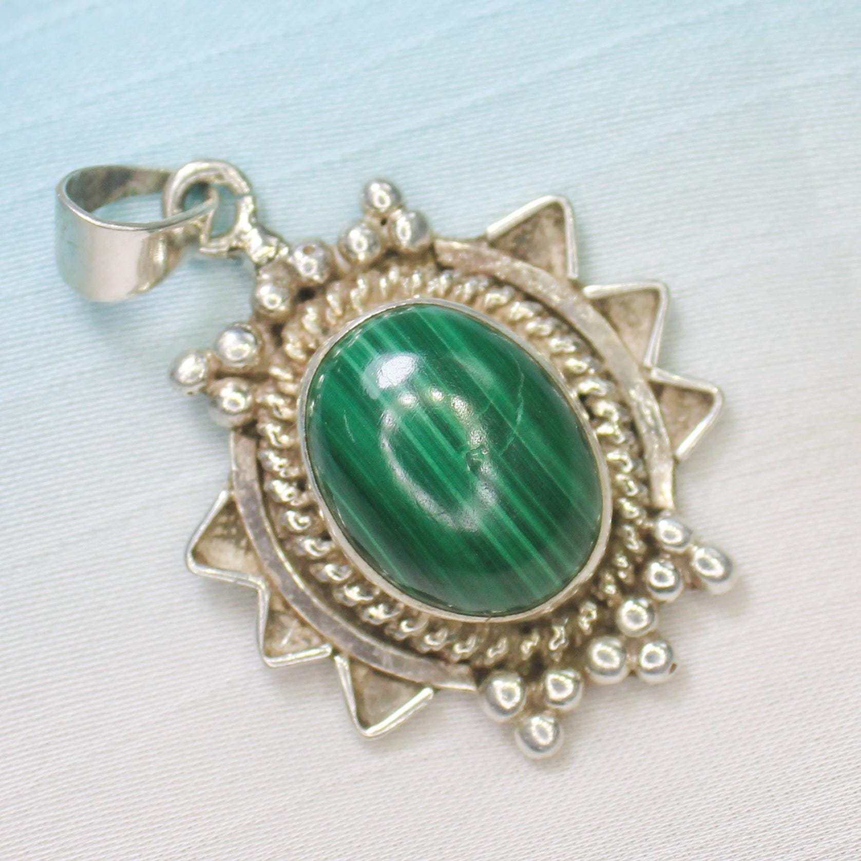 NATURAL GREEN MALACHITE PENDANT WITH STERLING SILVER