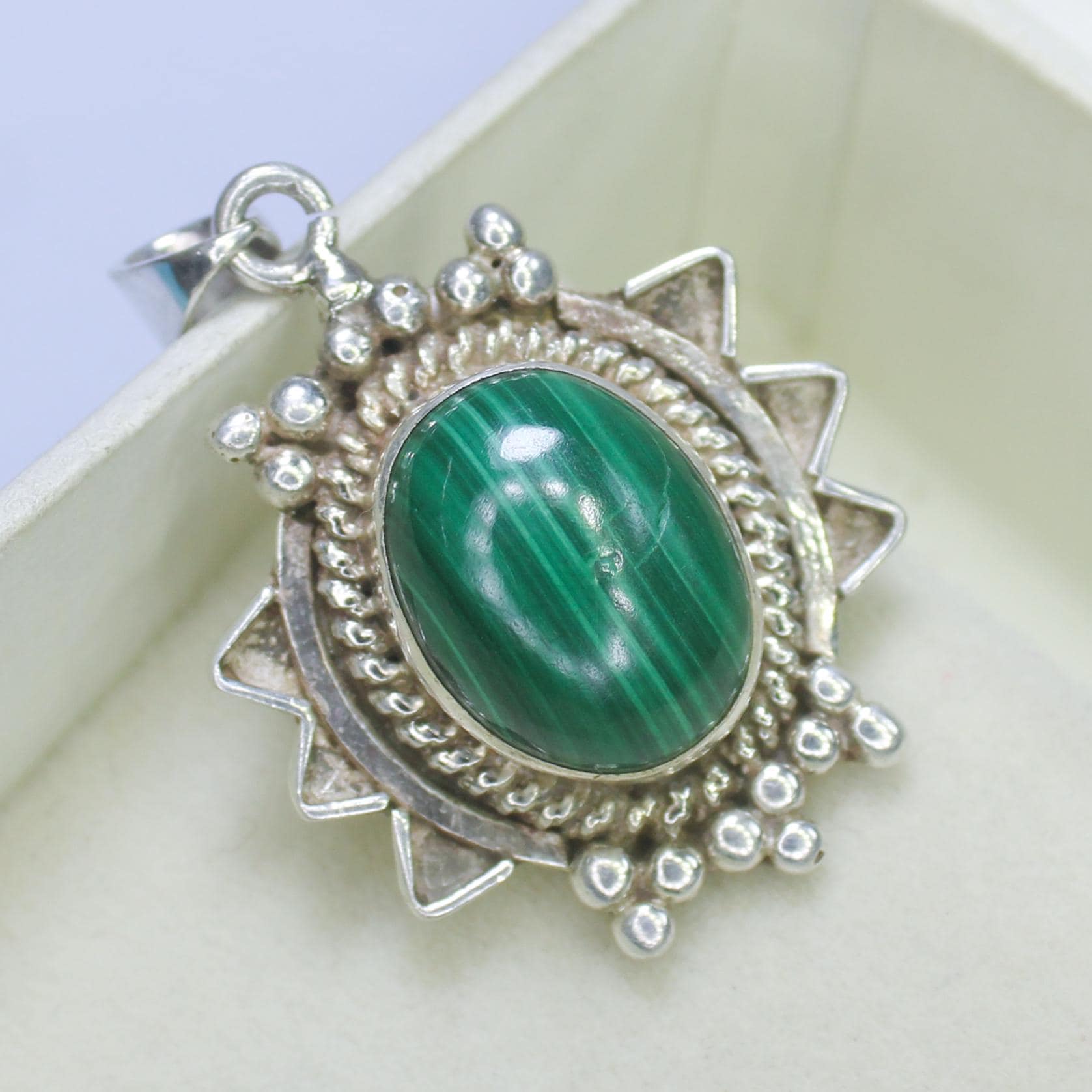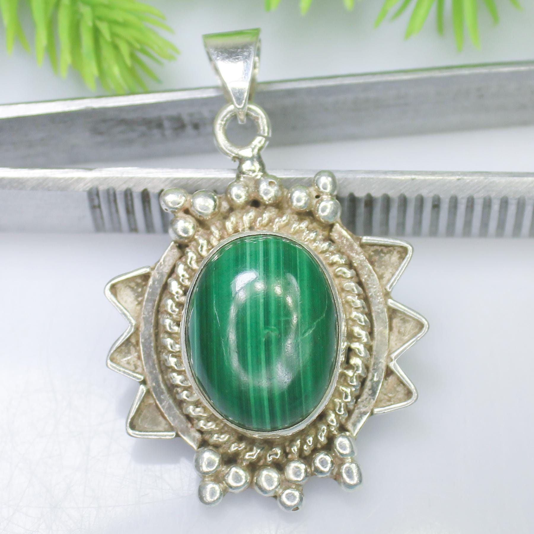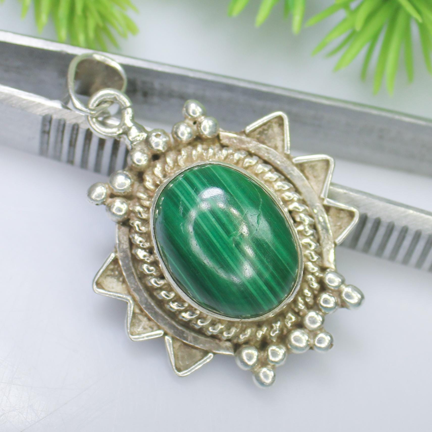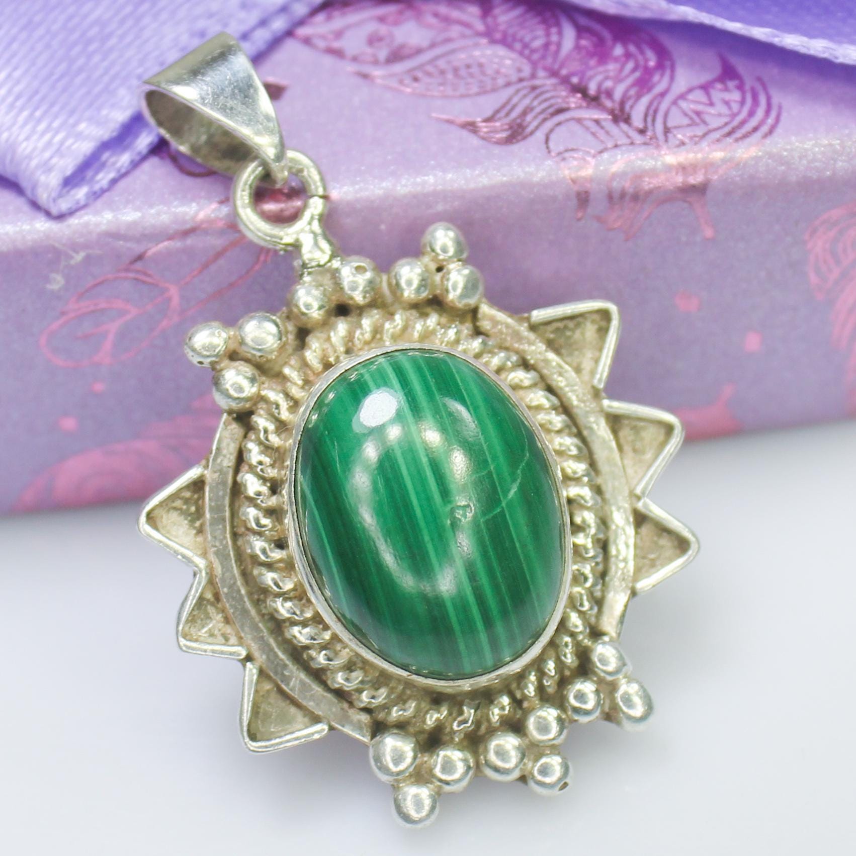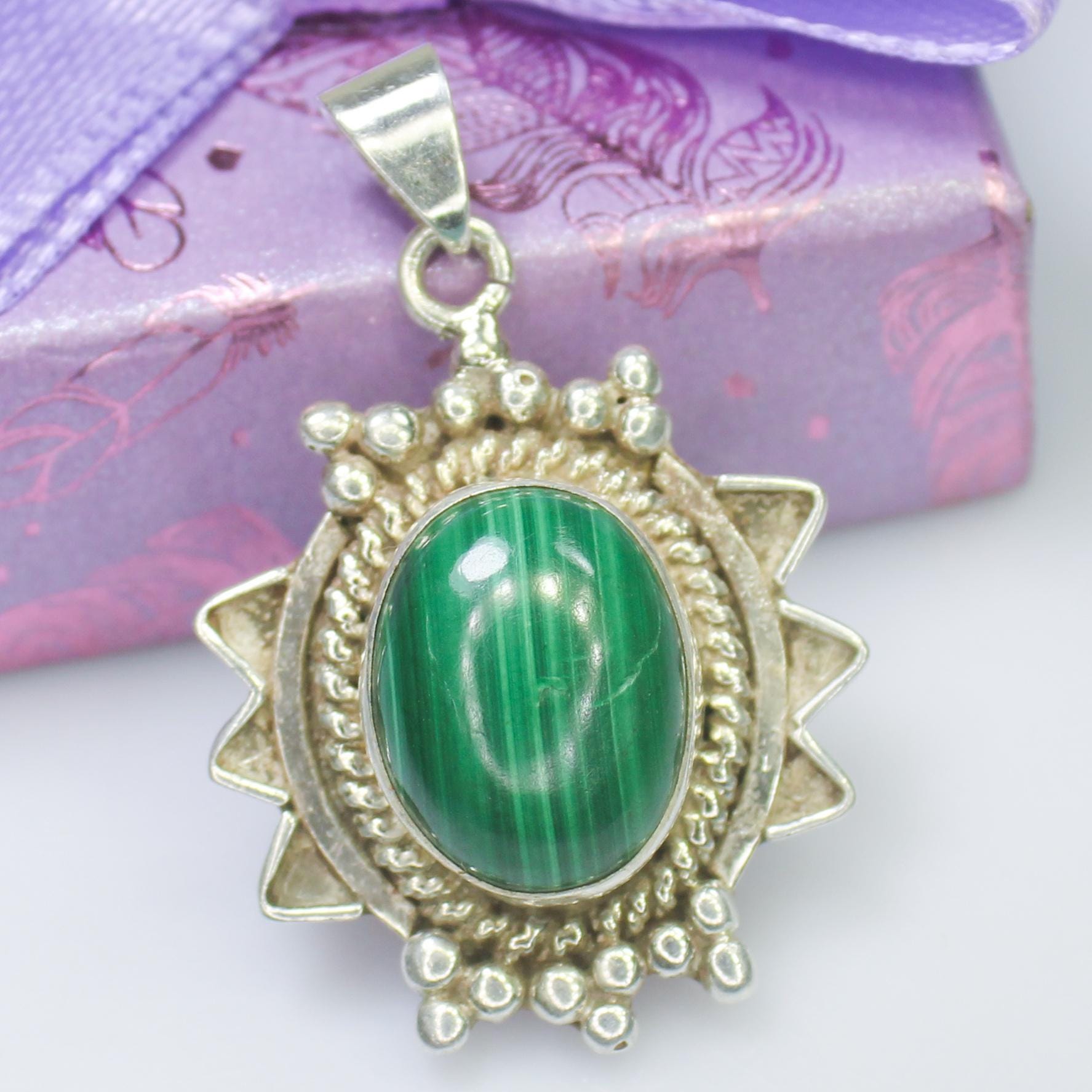 NATURAL GREEN MALACHITE PENDANT WITH STERLING SILVER