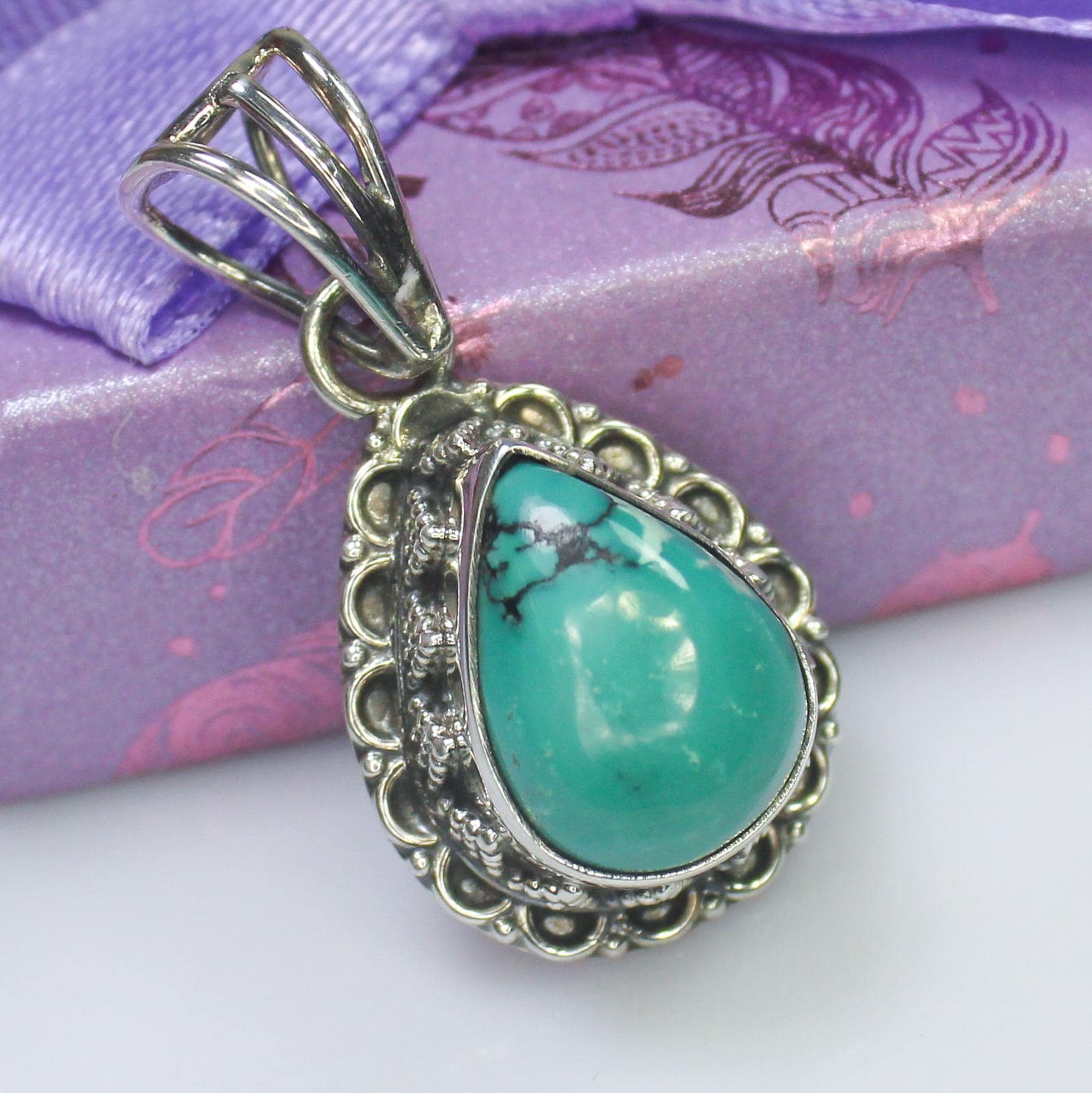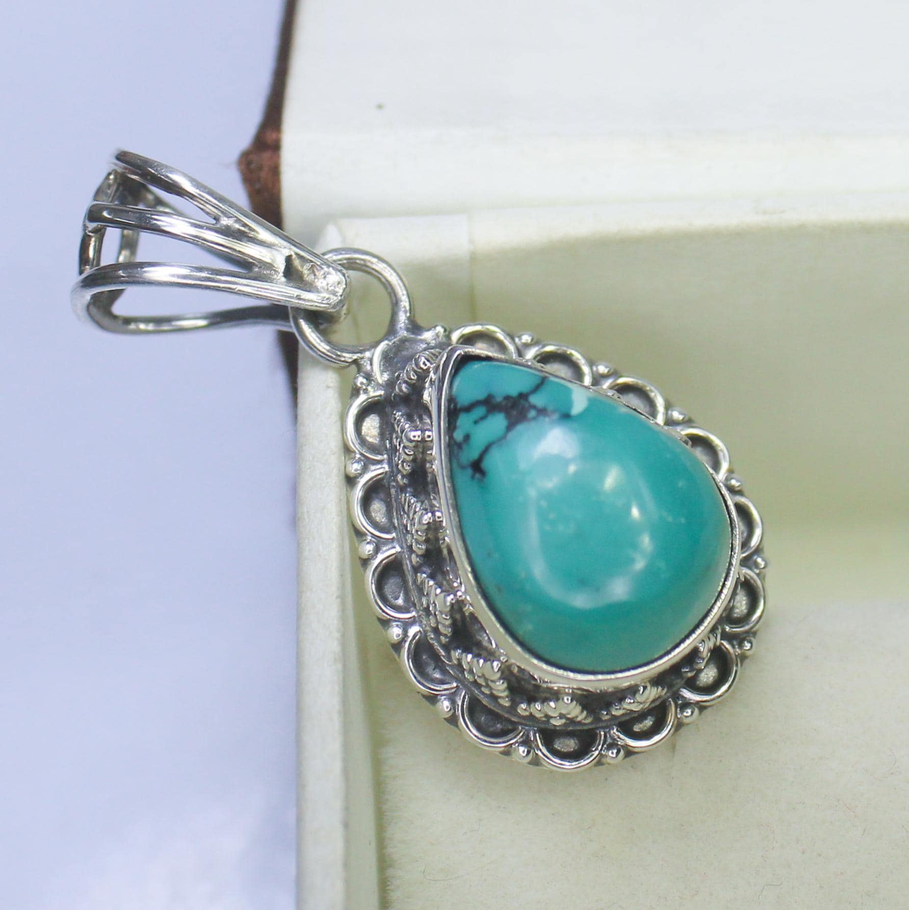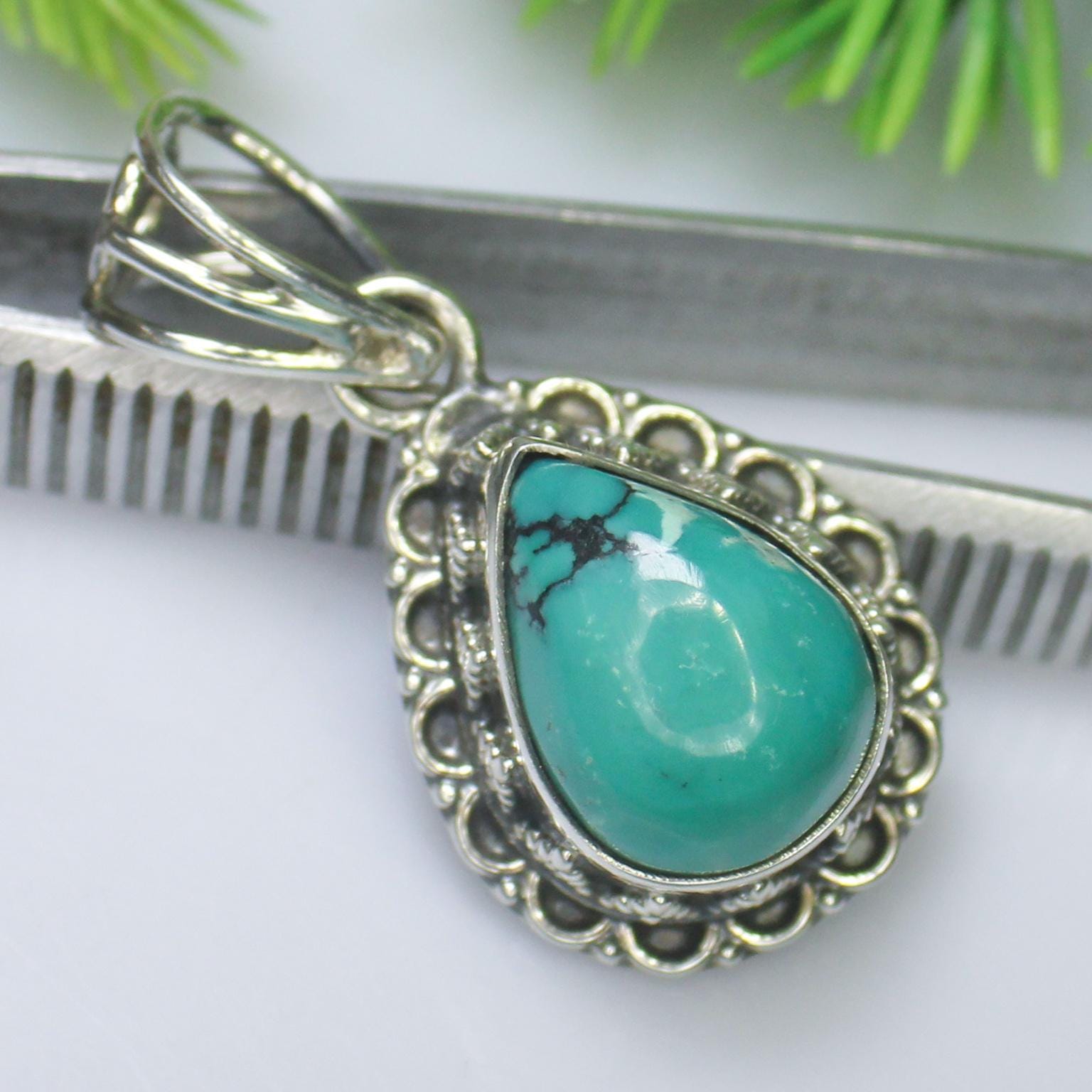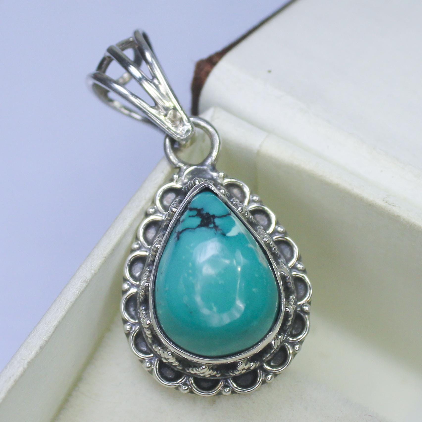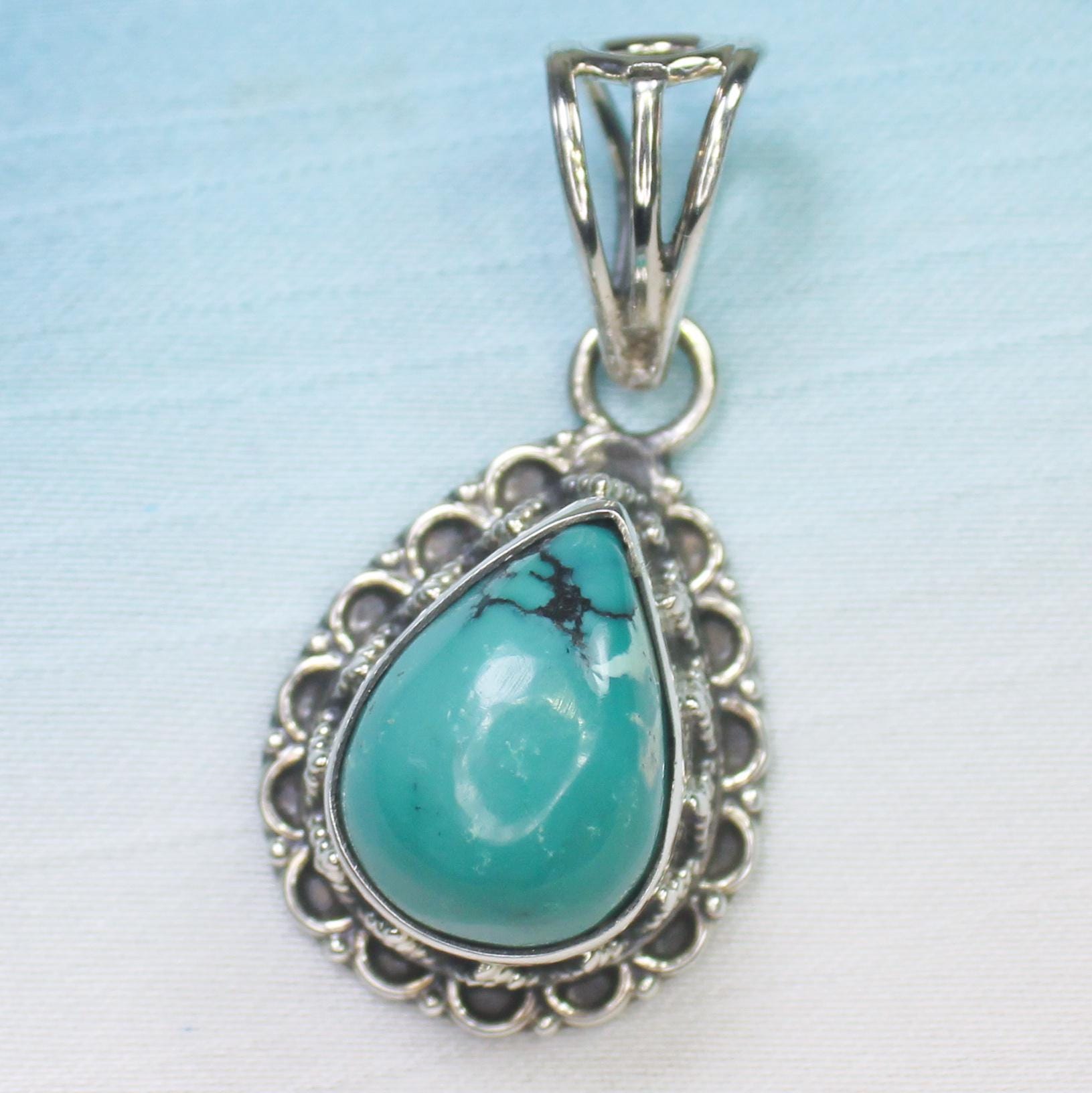 NATURAL BLUE TURQUOISE PENDANT WITH STERLING SILVER