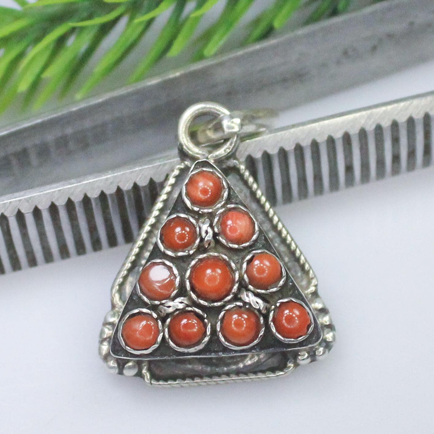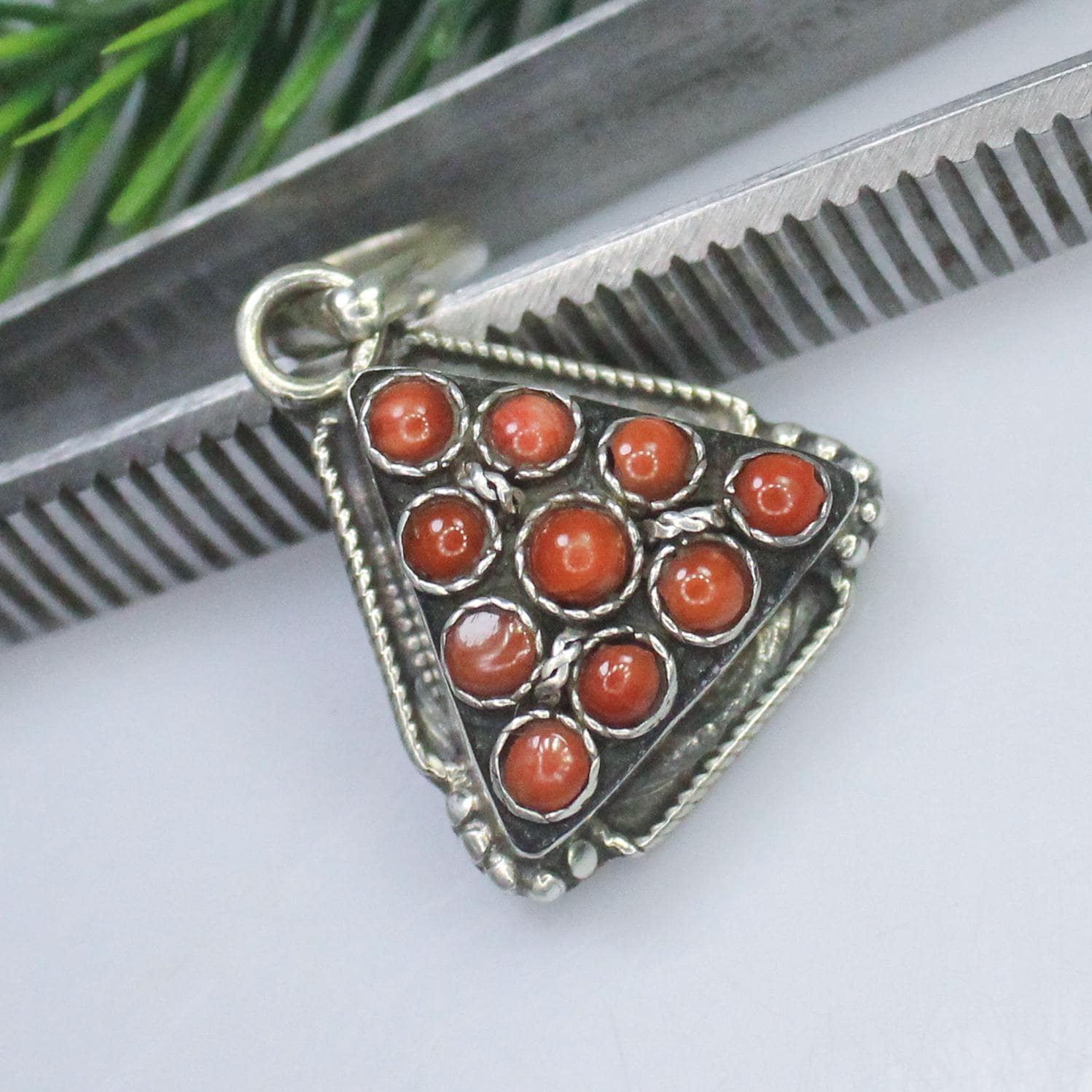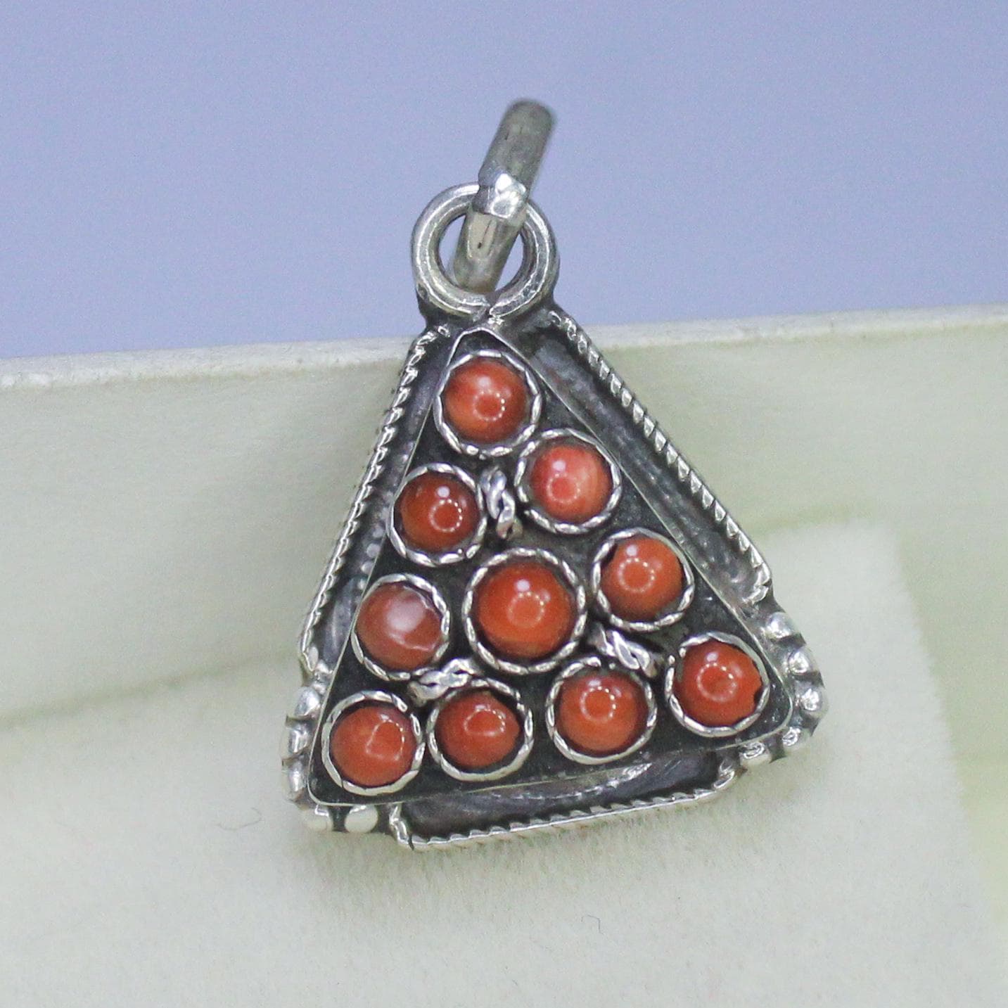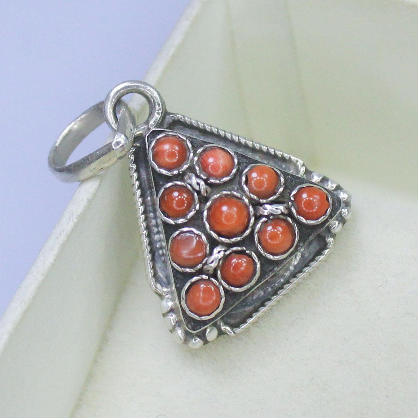 NATURAL RED CORAL PENDANT WITH STERLING SILVER