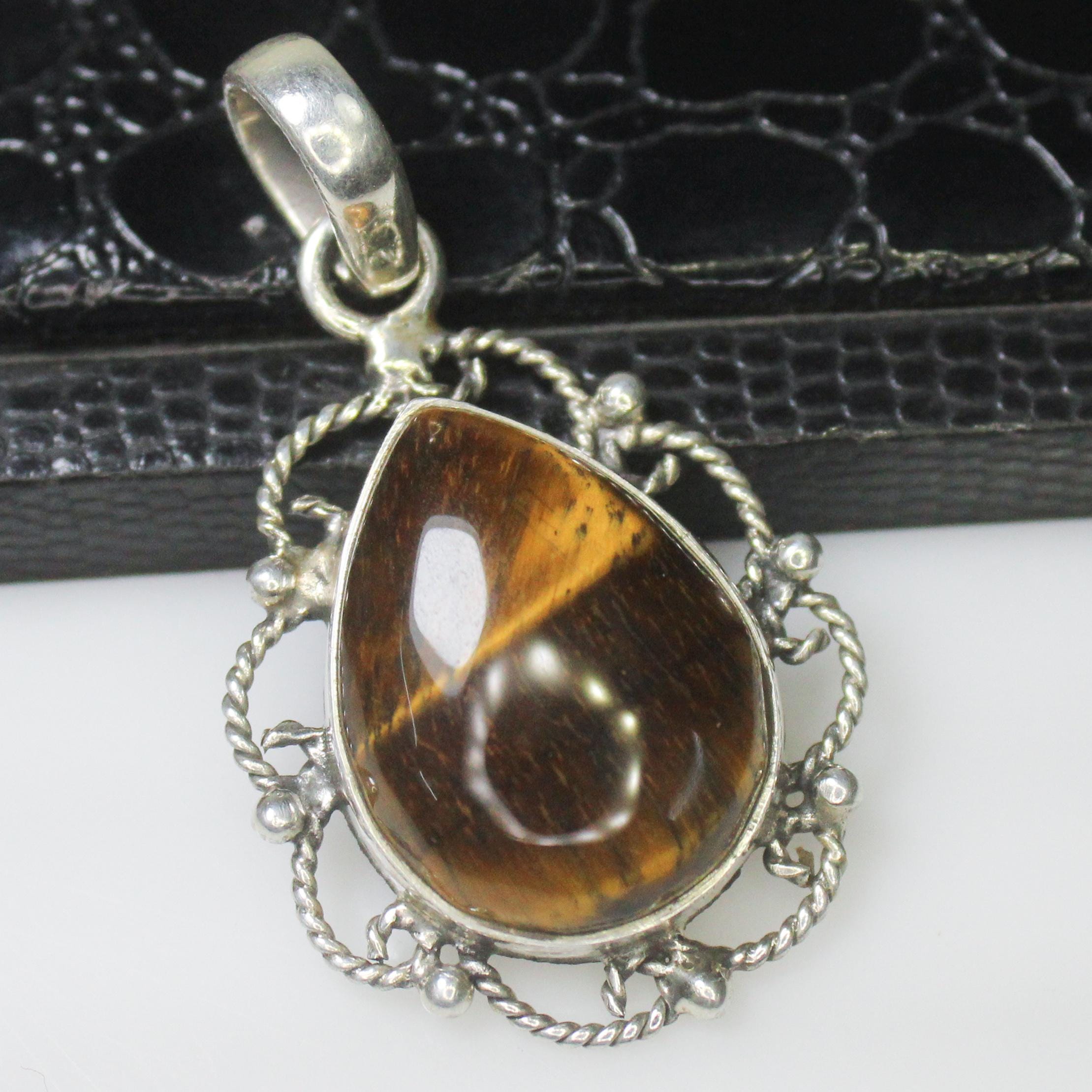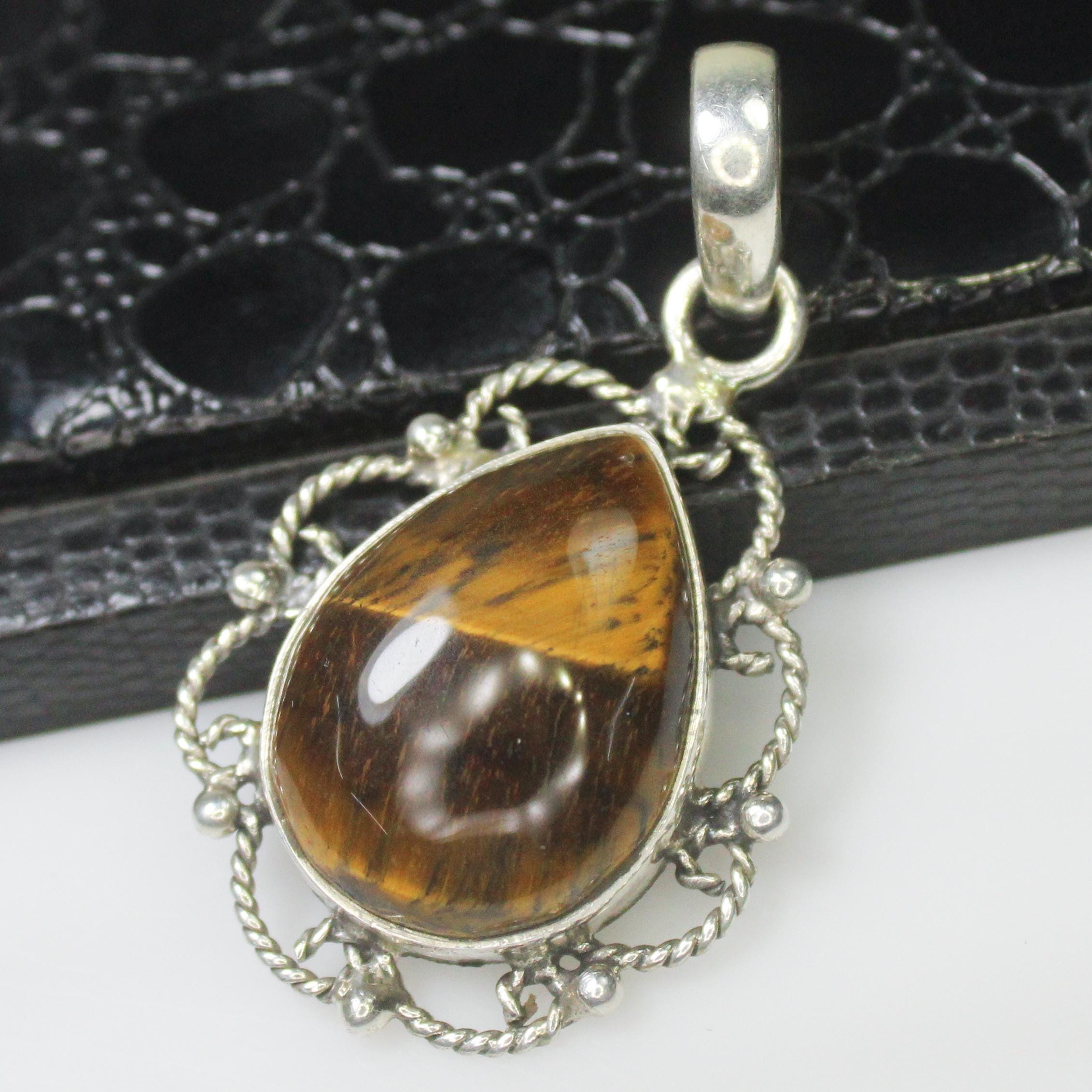 NATURAL YELLOW TIGER EYE PENDANT WITH STERLING SILVER