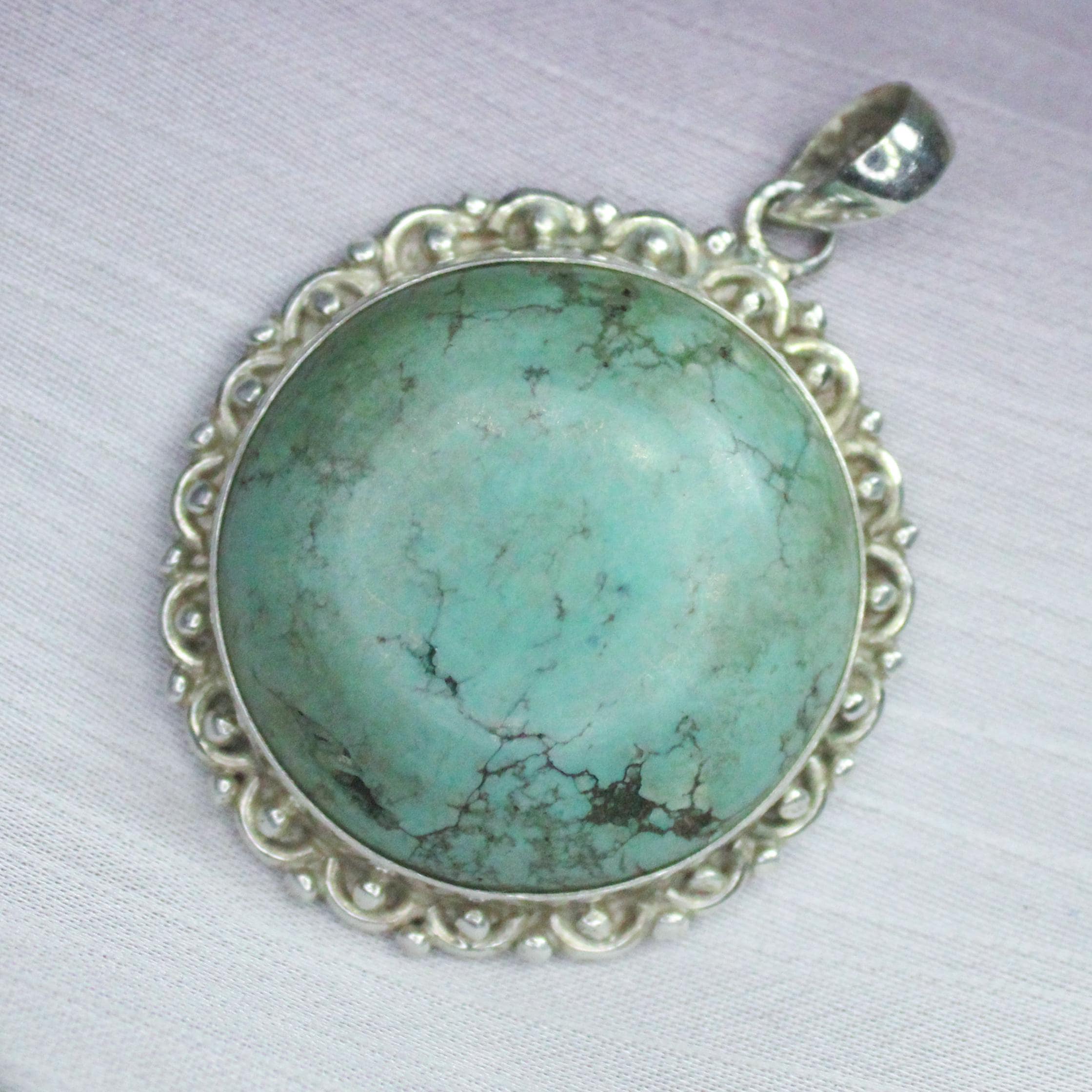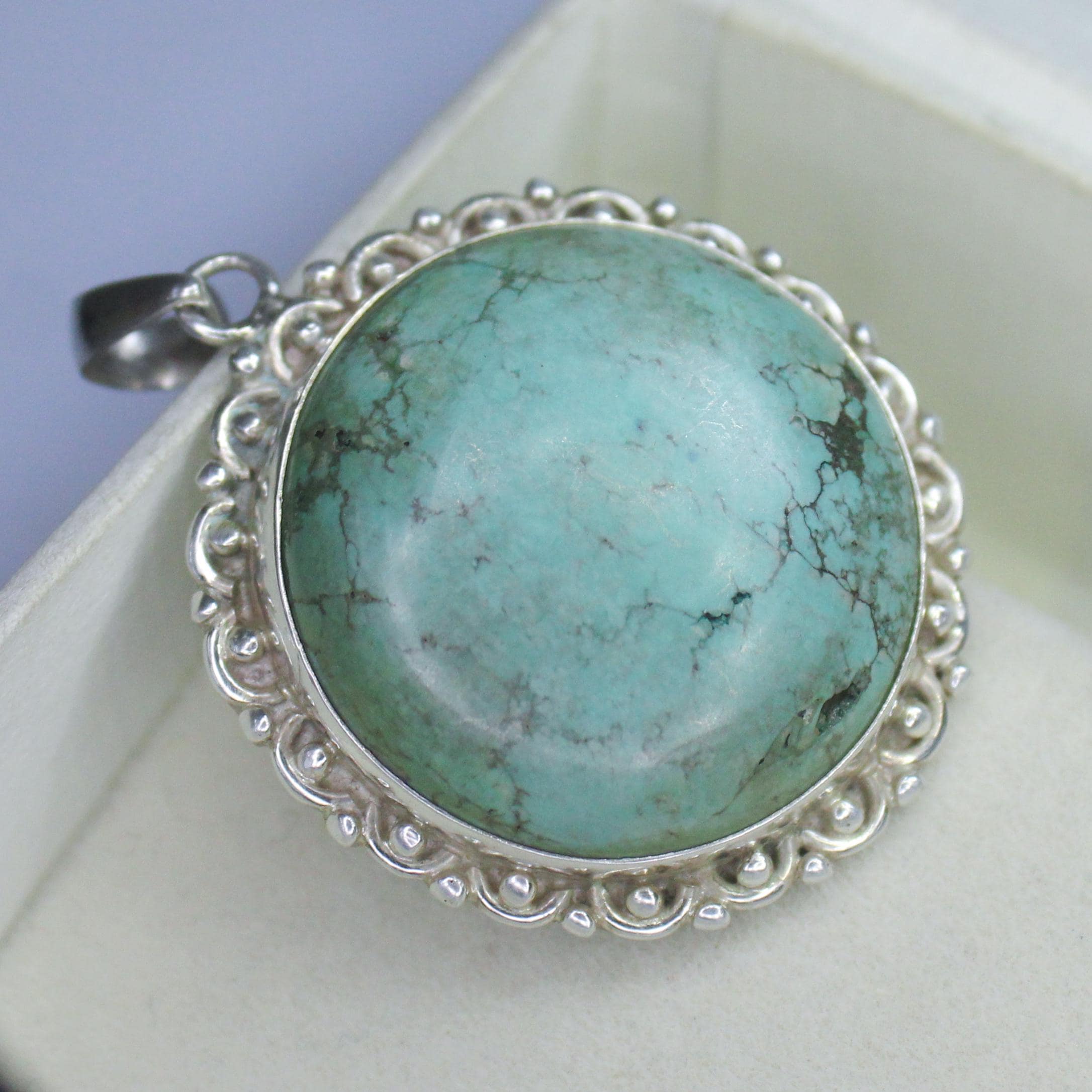 NATURAL BLUE TURQUOISE PENDANT WITH STERLING SILVER