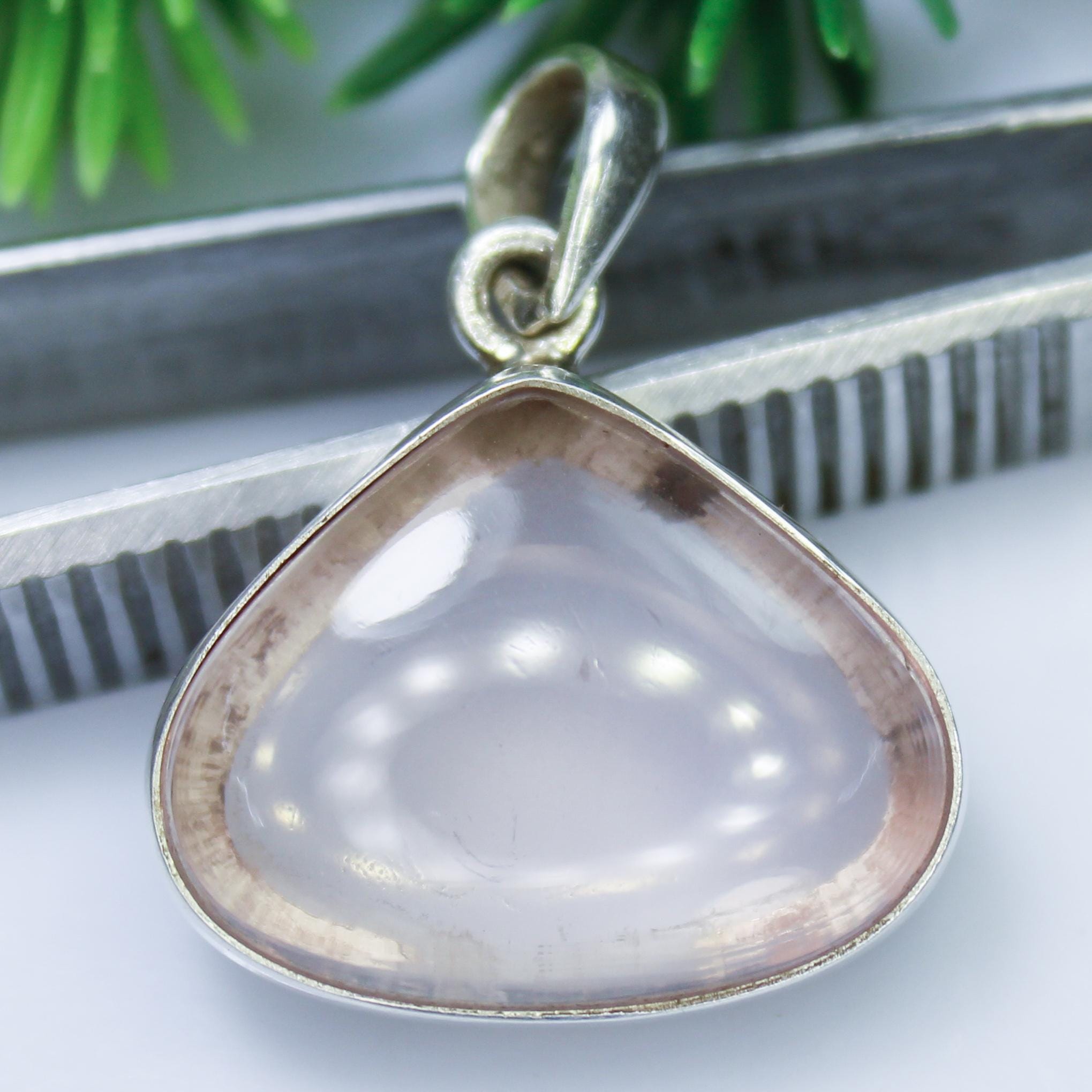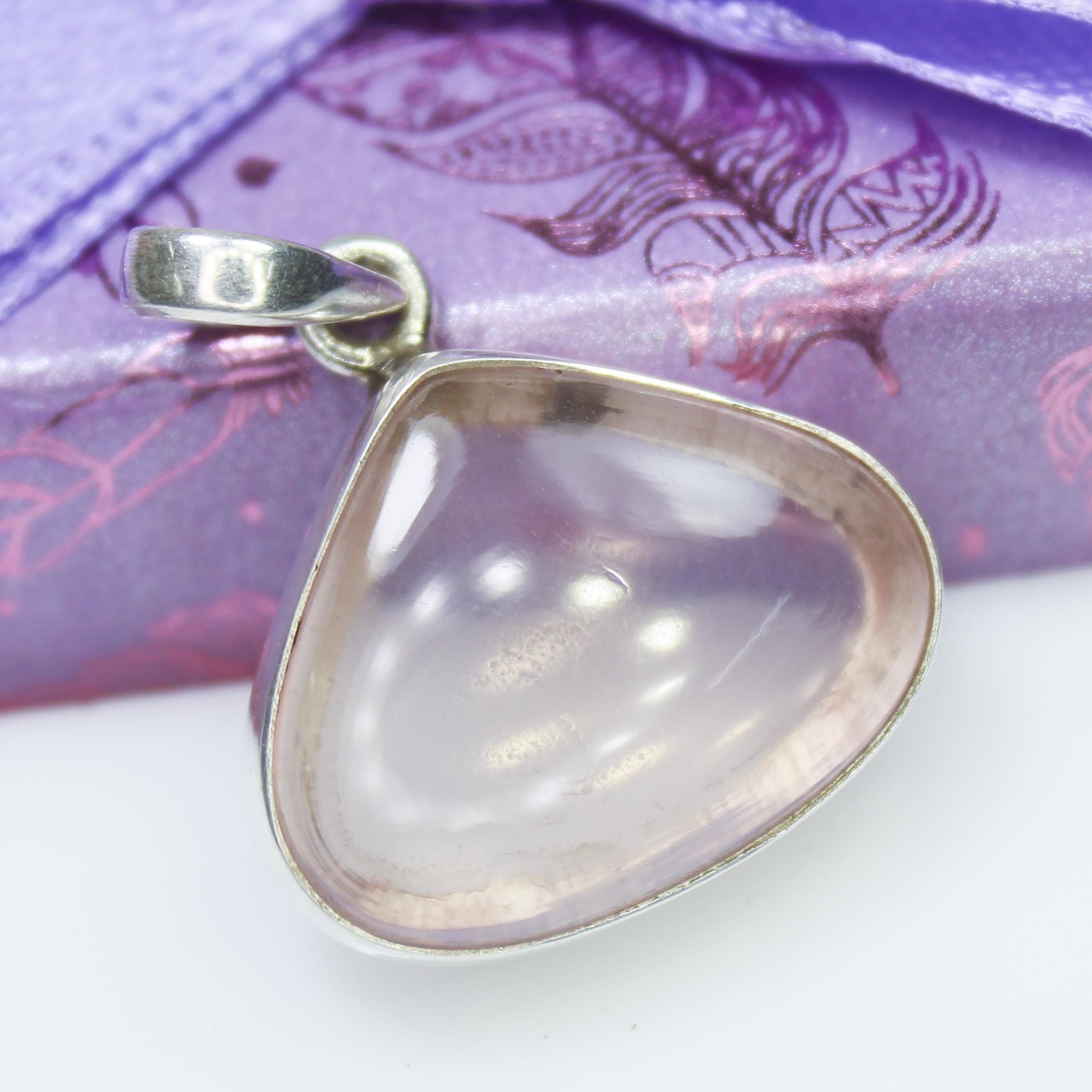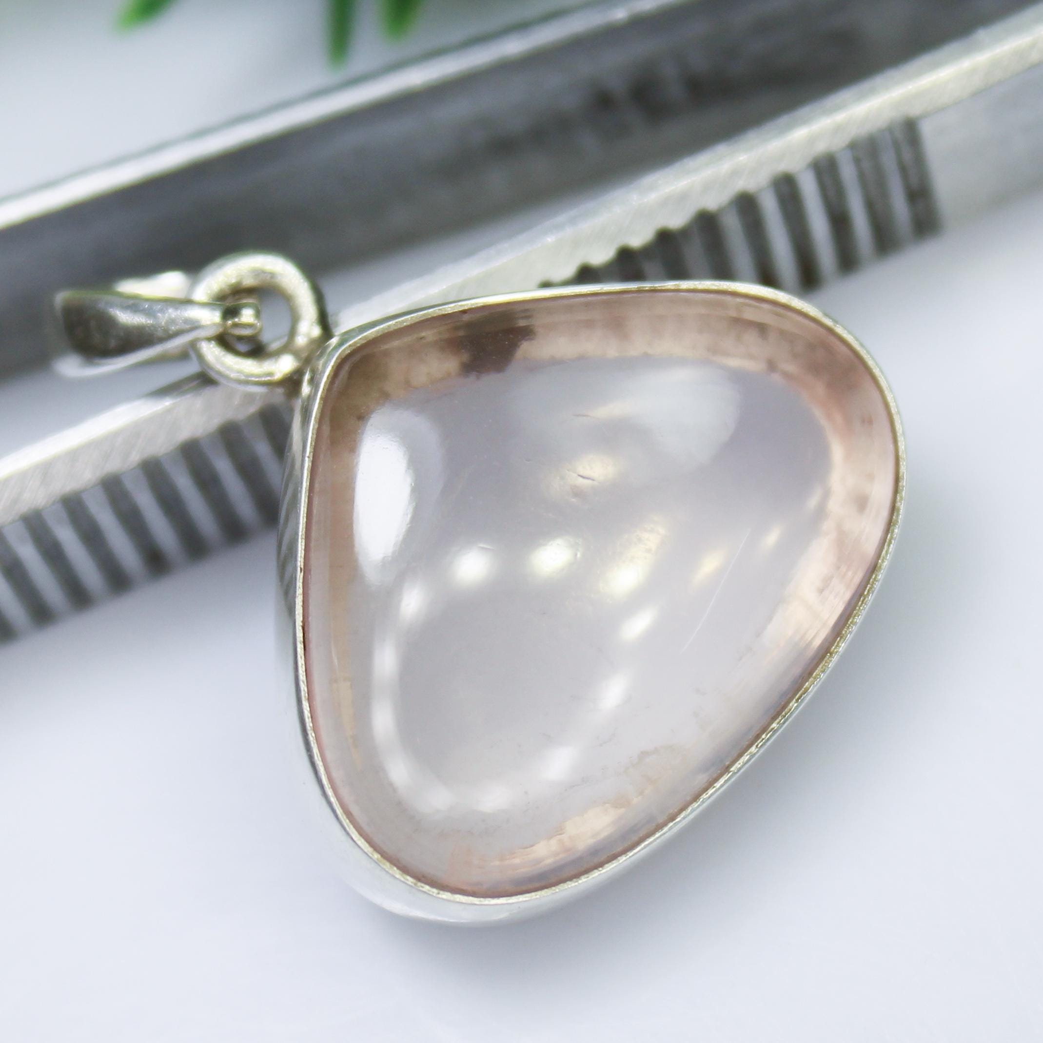 NATURAL PINK ROSE QUARTZ PENDANT WITH STERLING SILVER