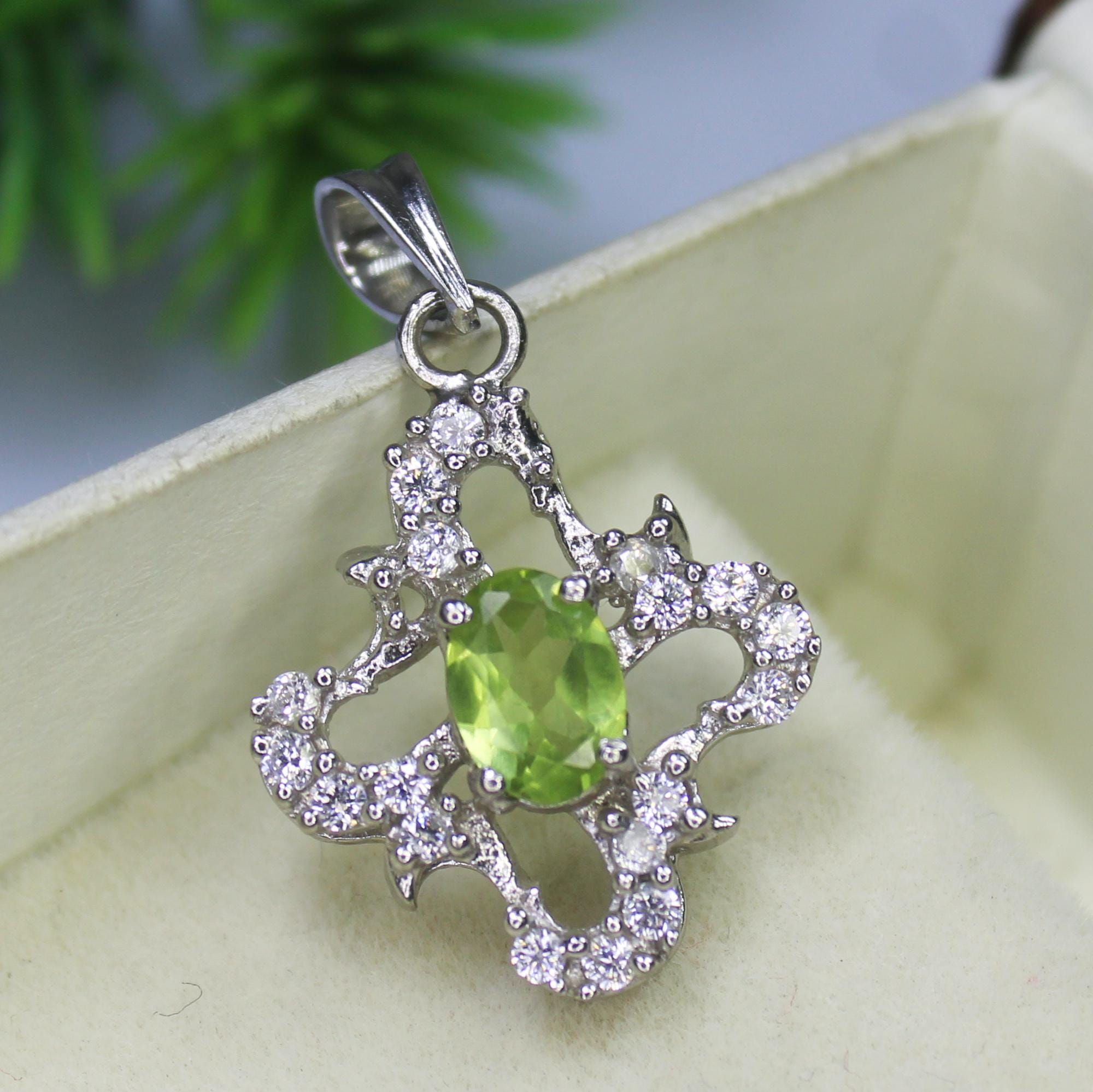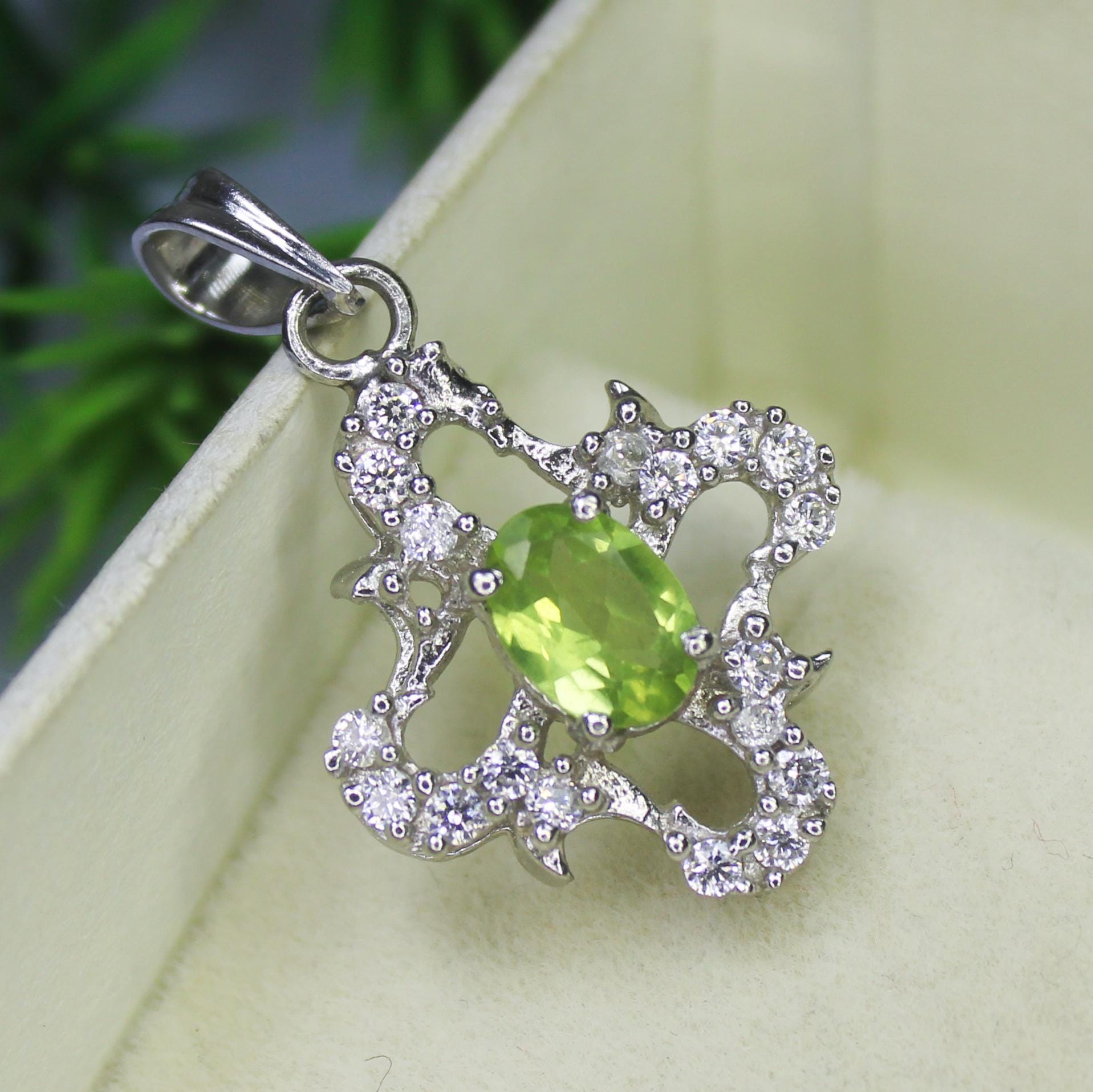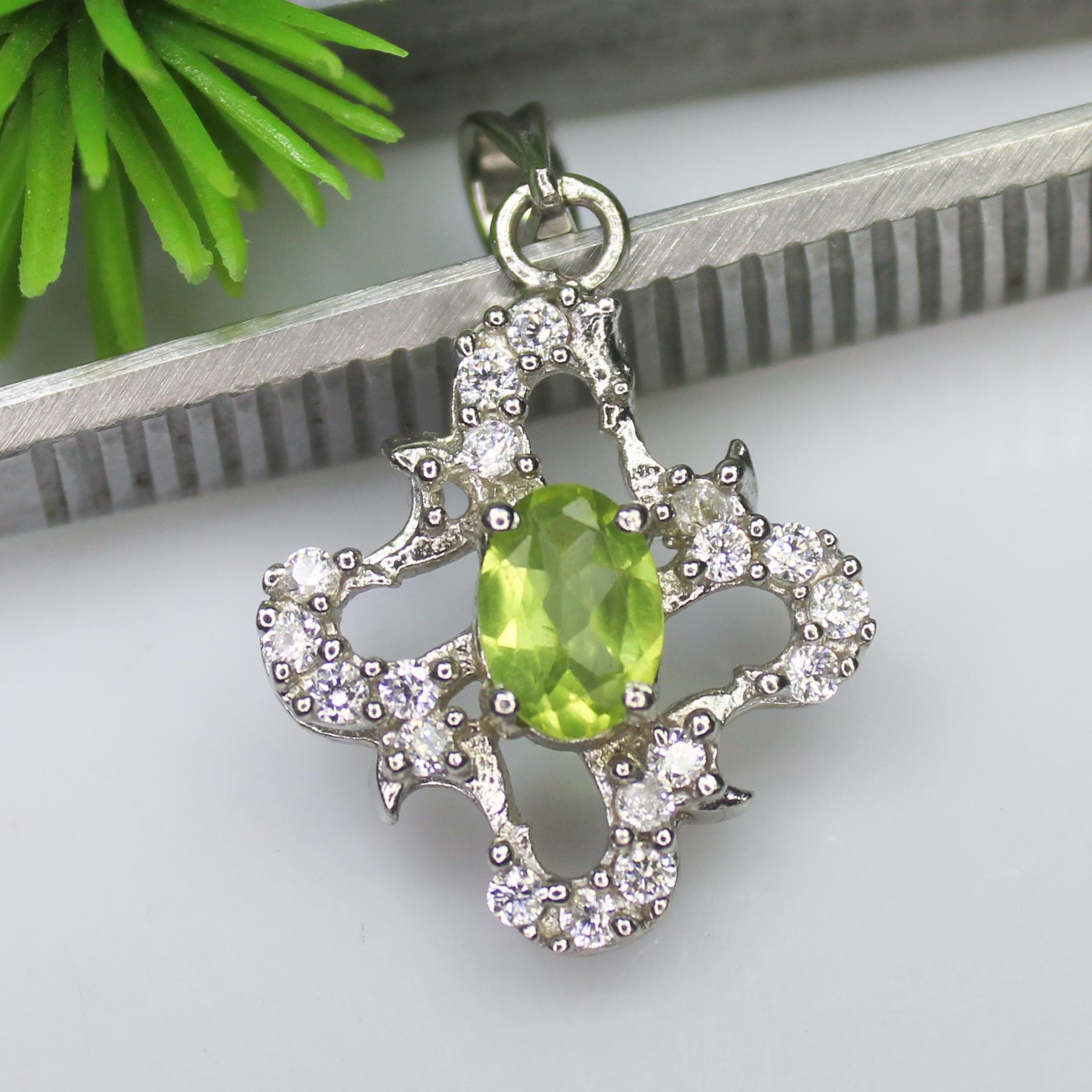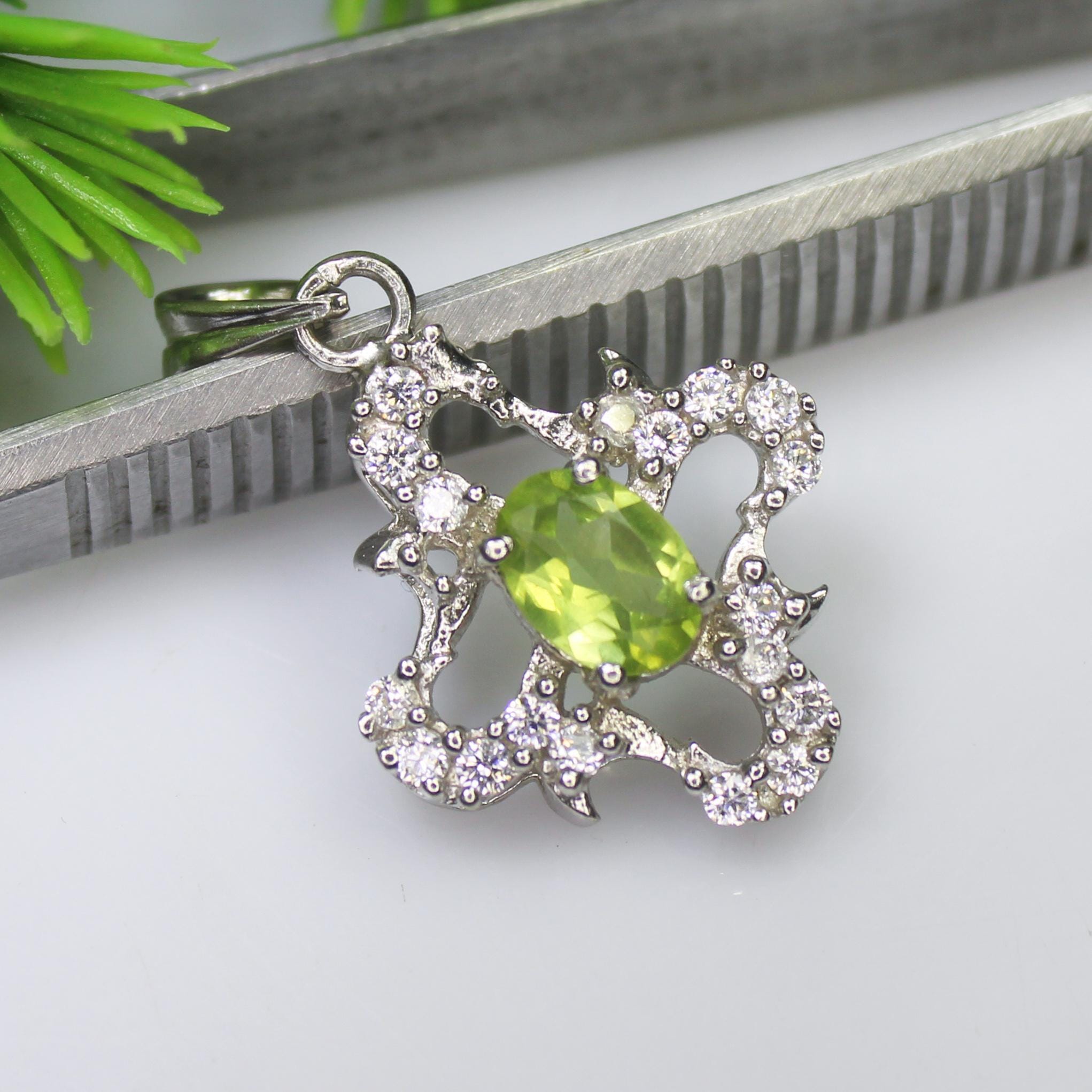 NATURAL GREEN PERIDOT PENDANT WITH STERLING SILVER