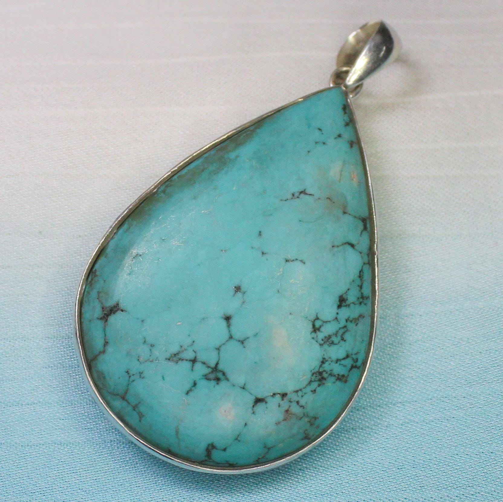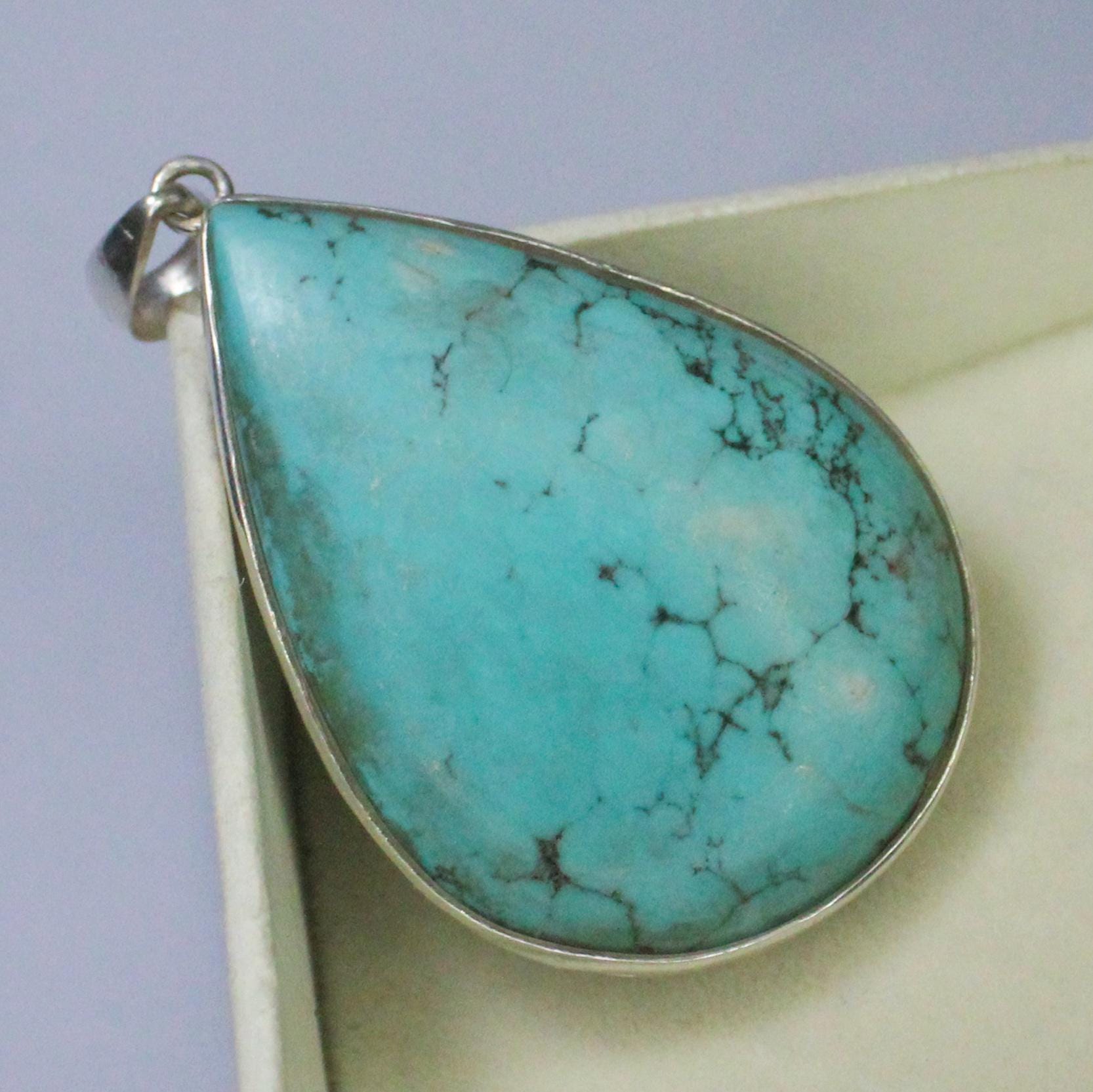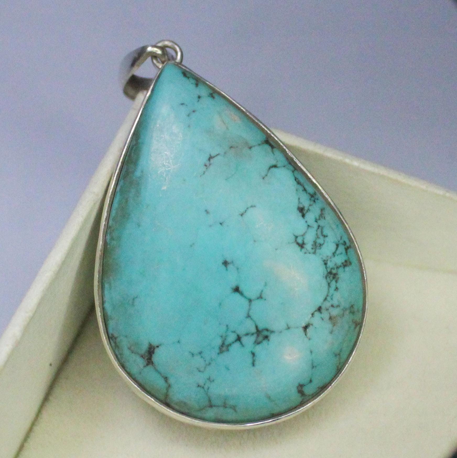 NATURAL BLUE TURQUOISE PENDANT WITH STERLING SILVER