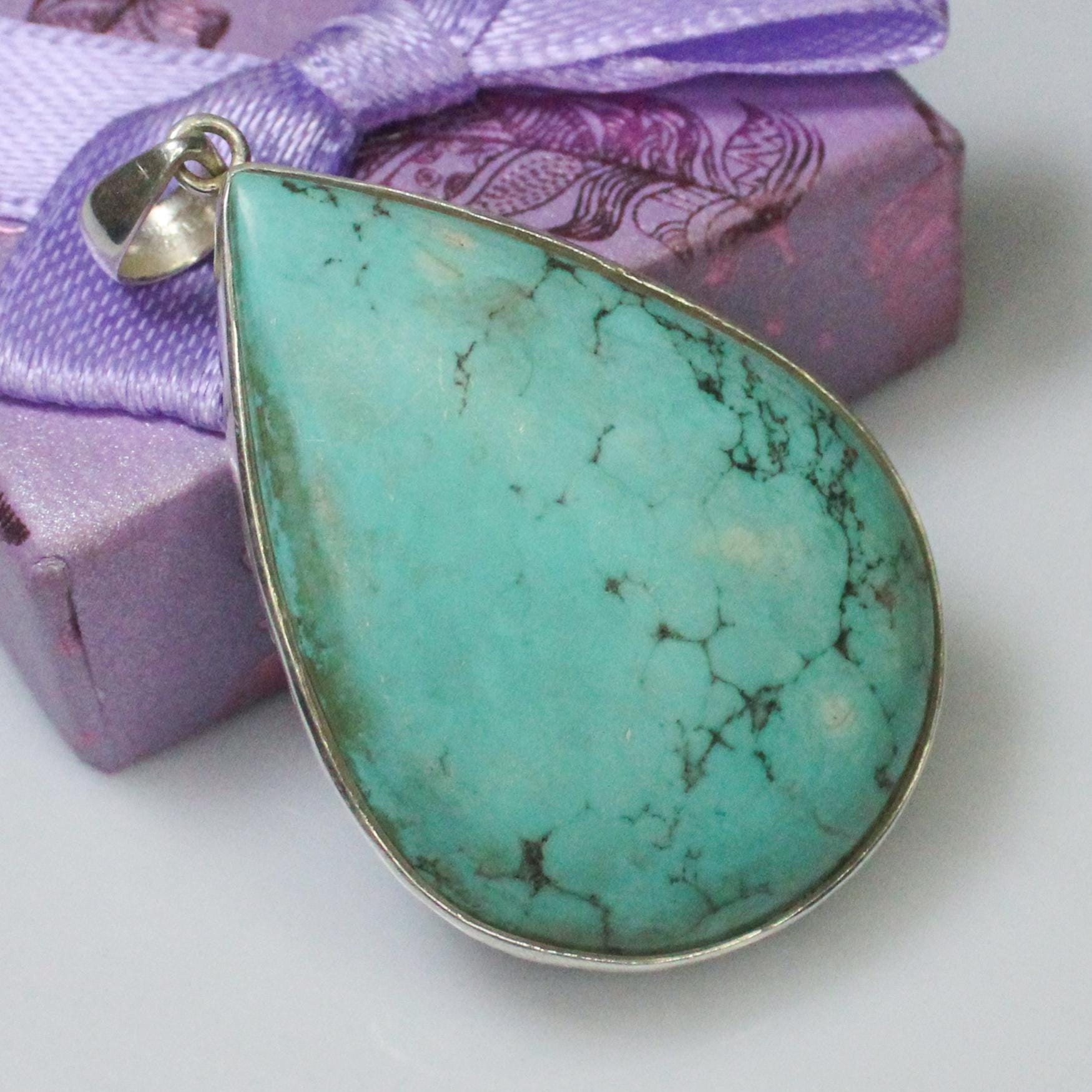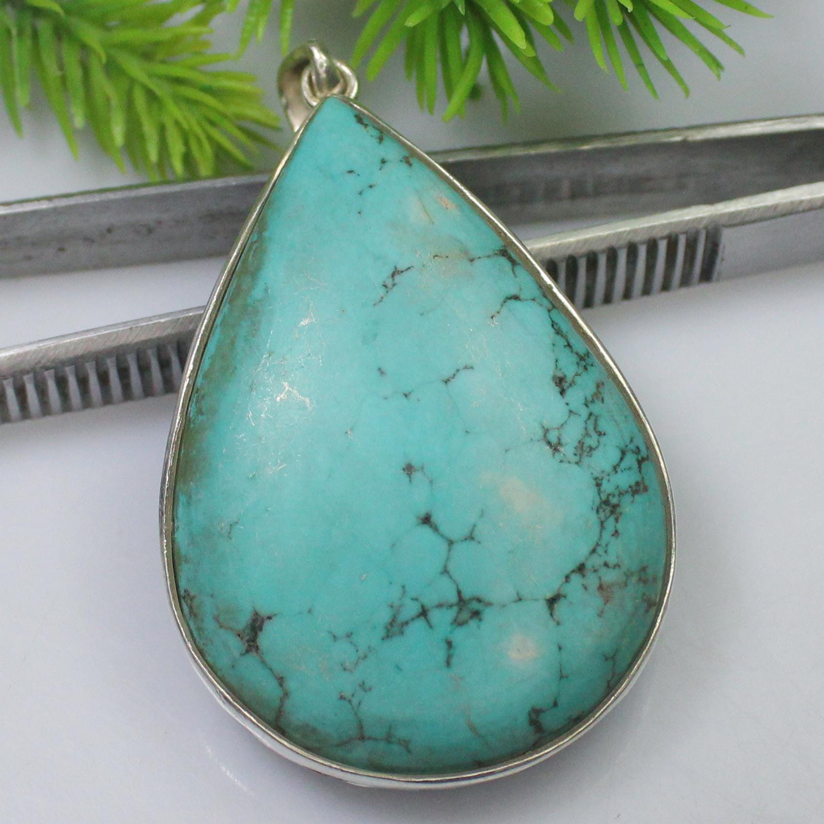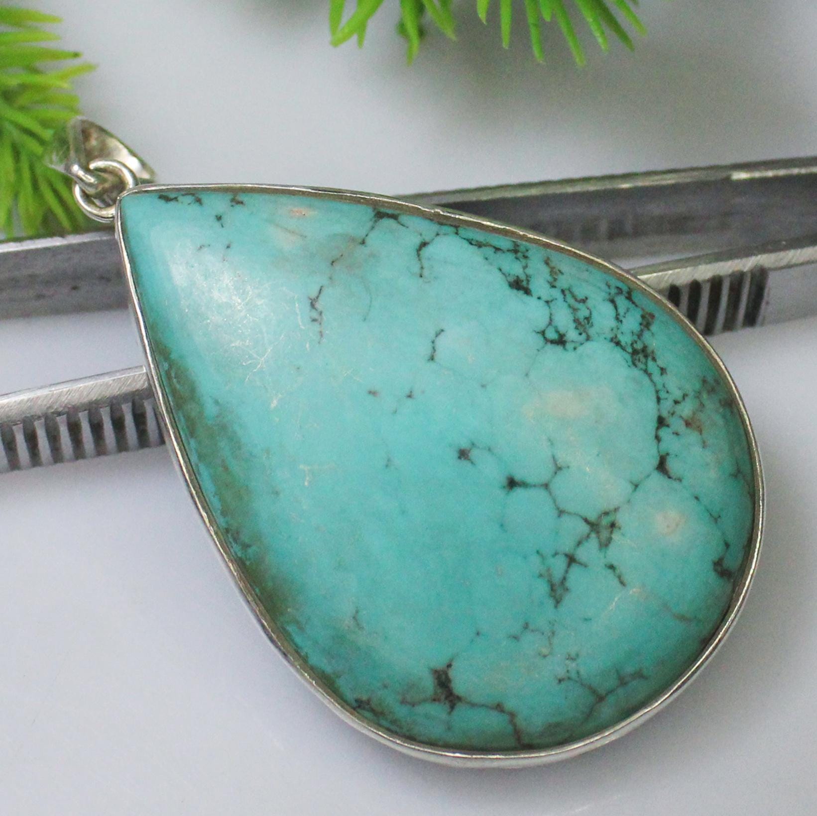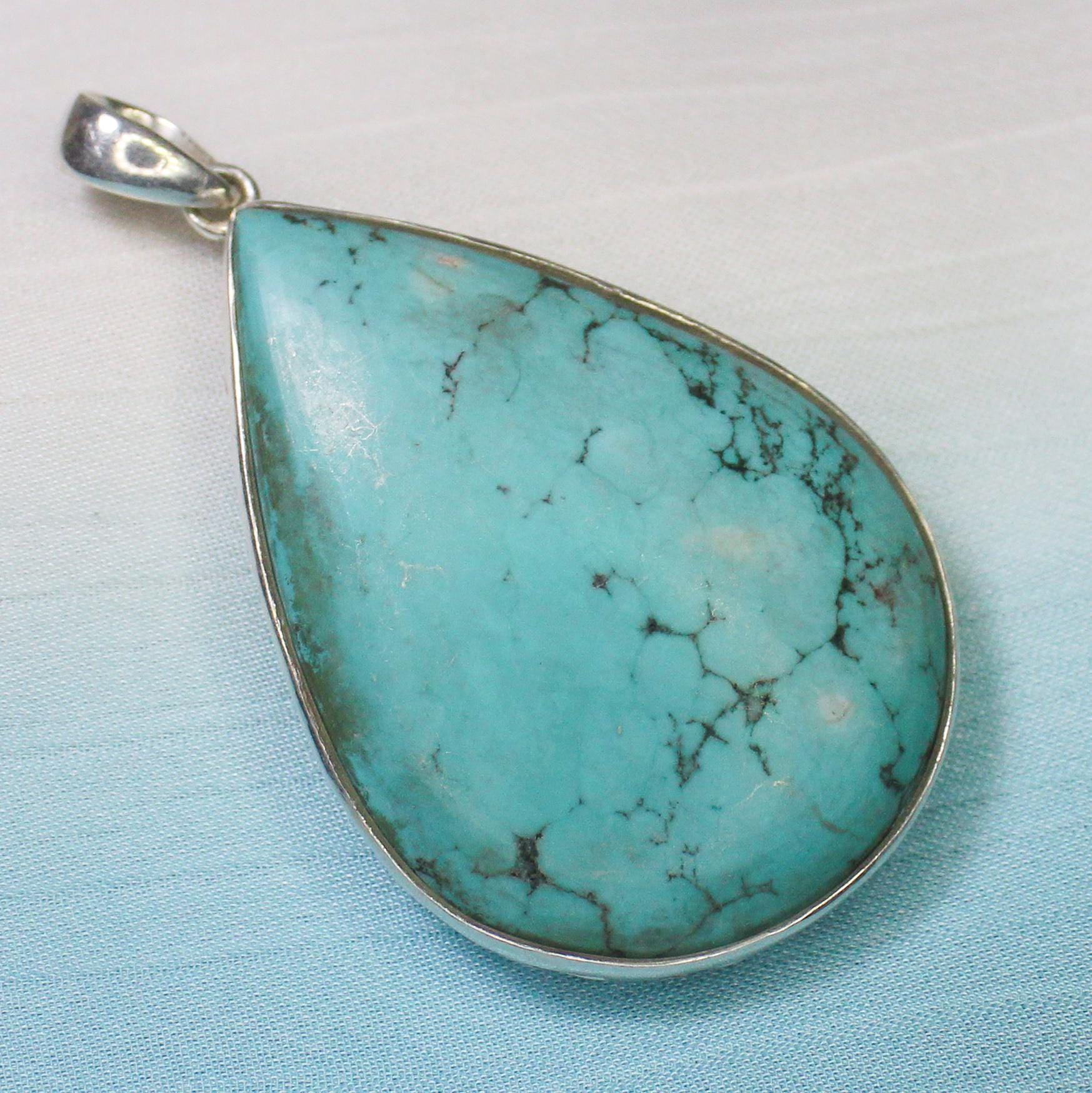 NATURAL BLUE TURQUOISE PENDANT WITH STERLING SILVER