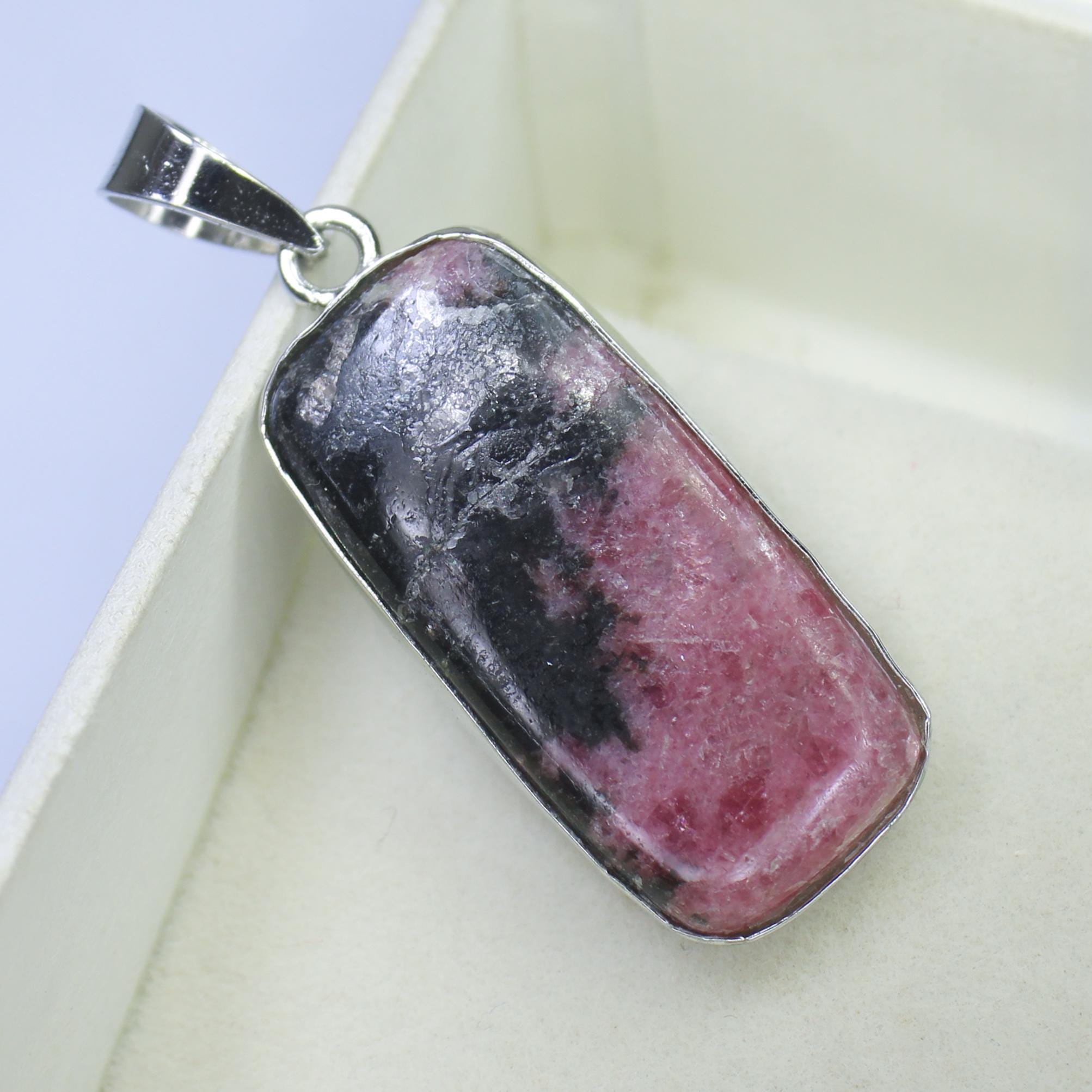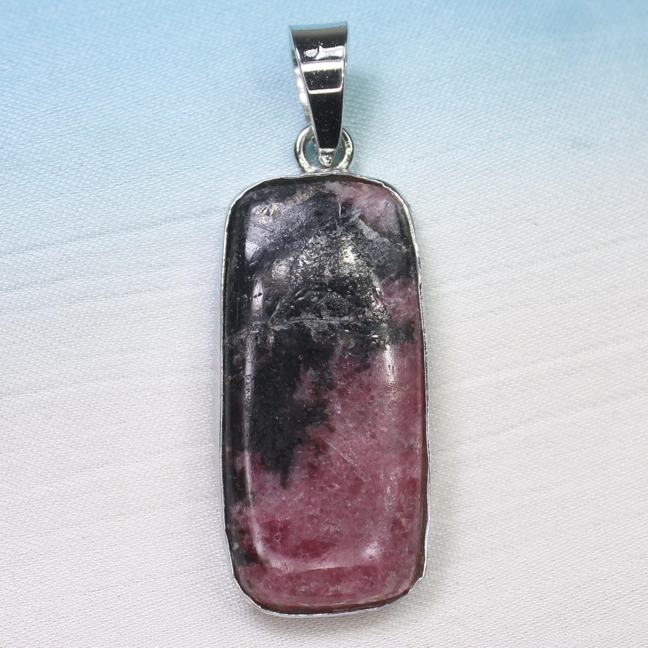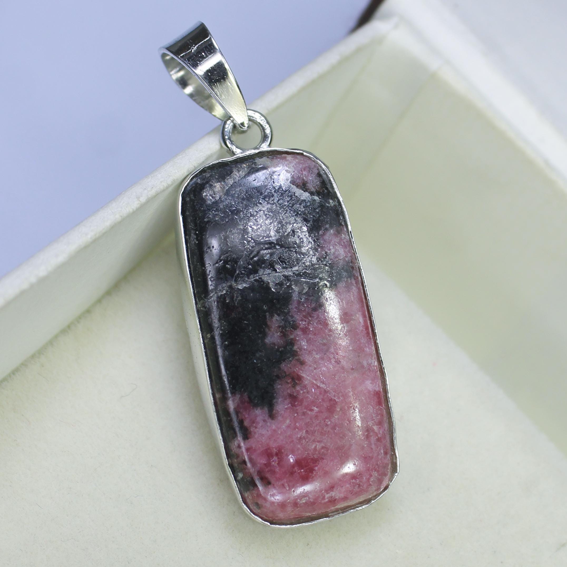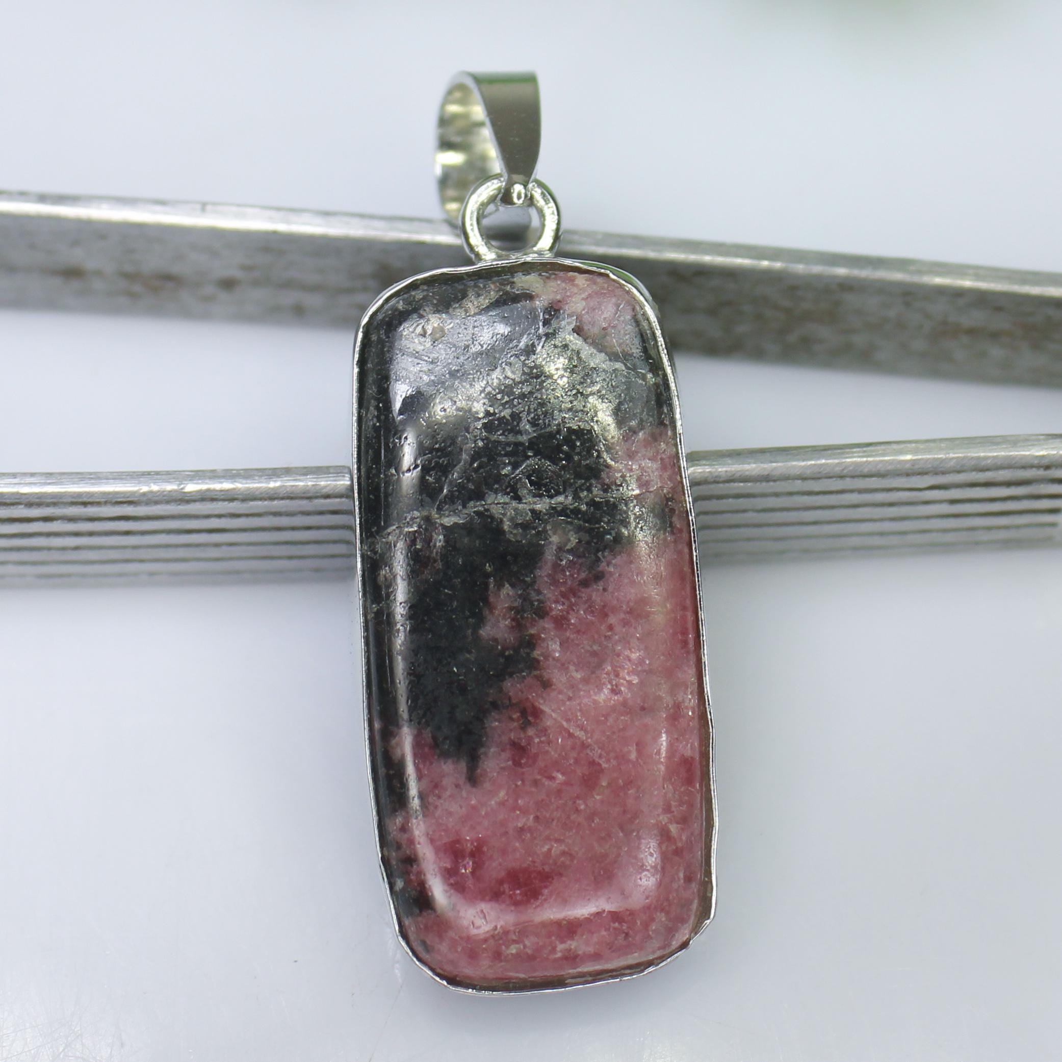 NATURAL PINK RHODONITE PENDANT WITH STERLING SILVER