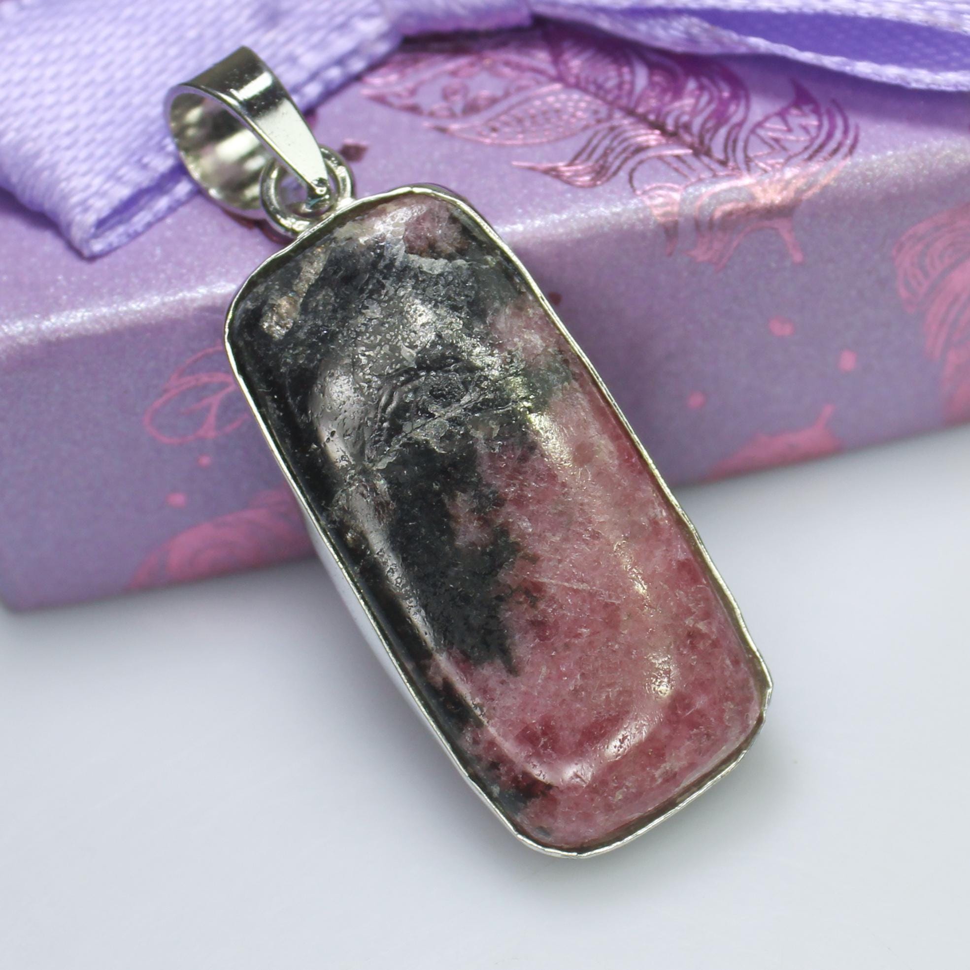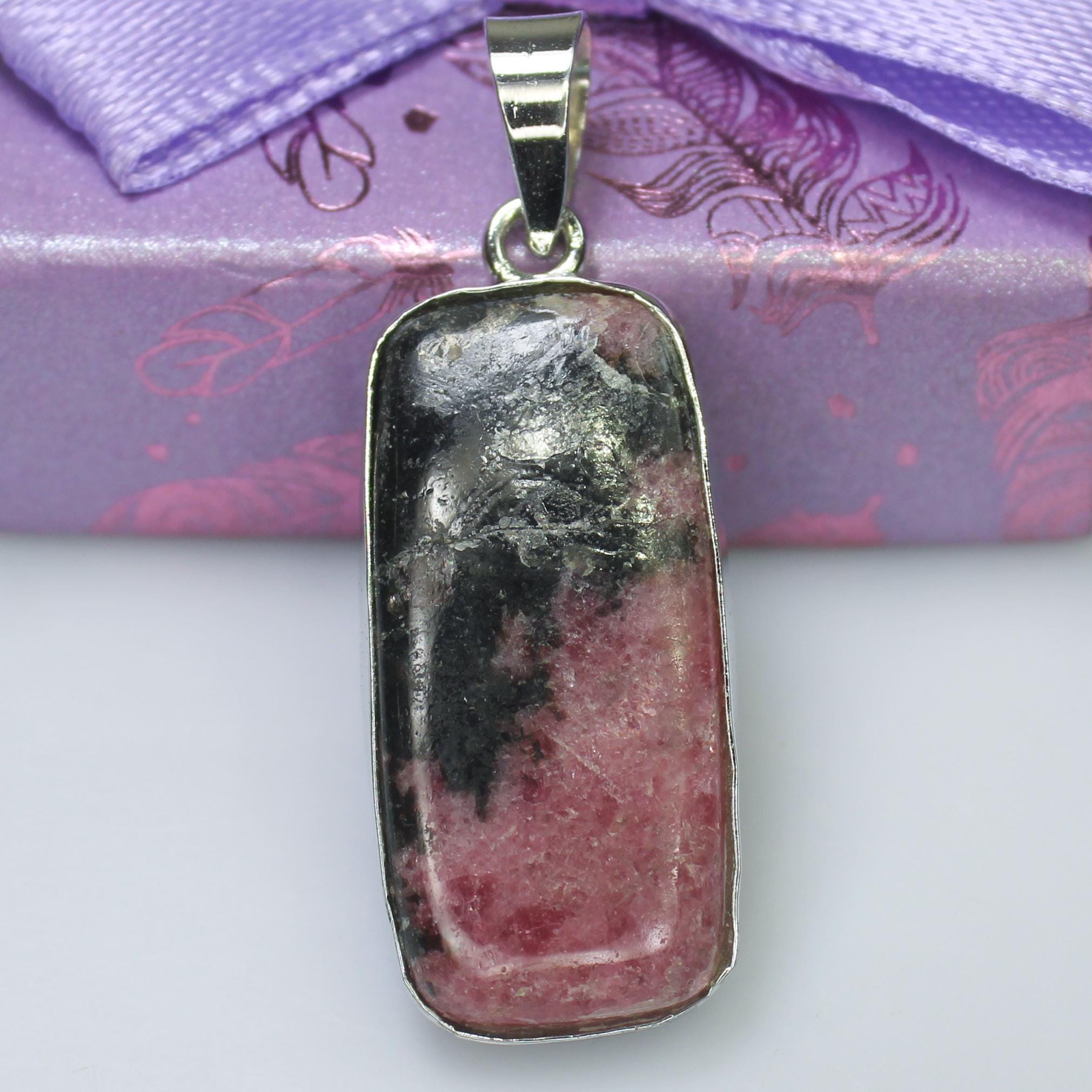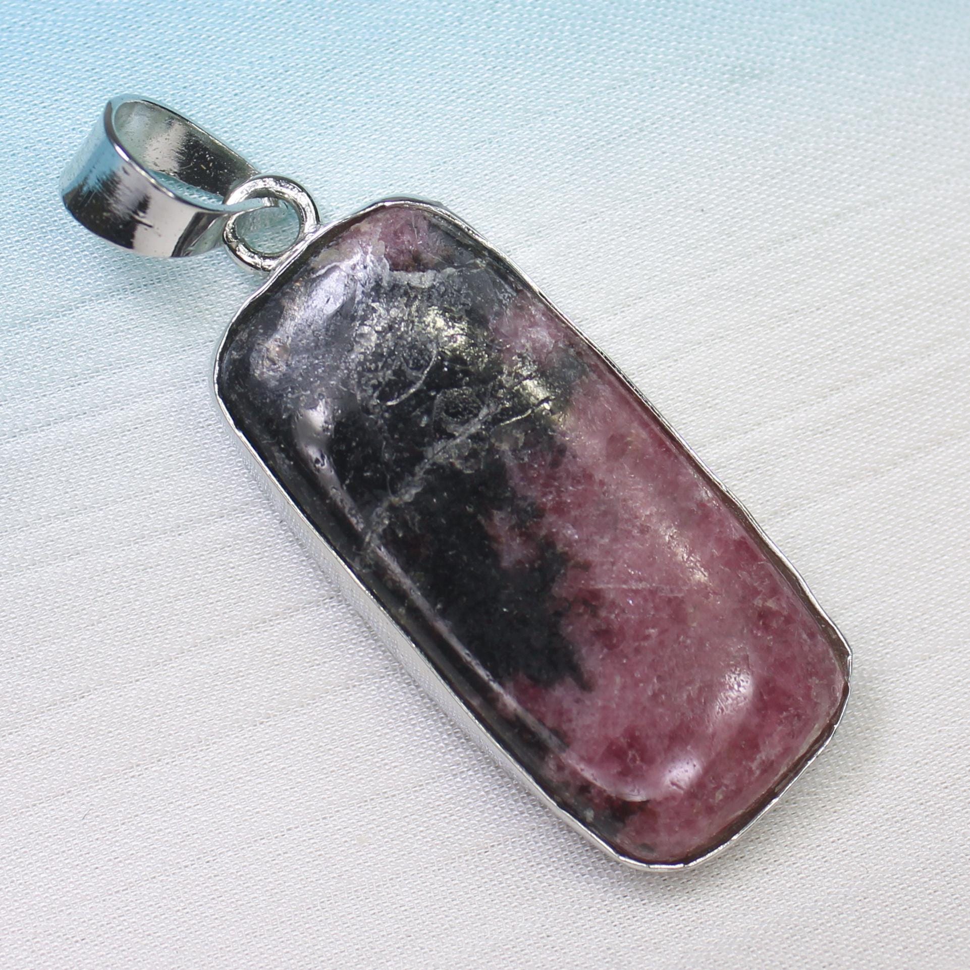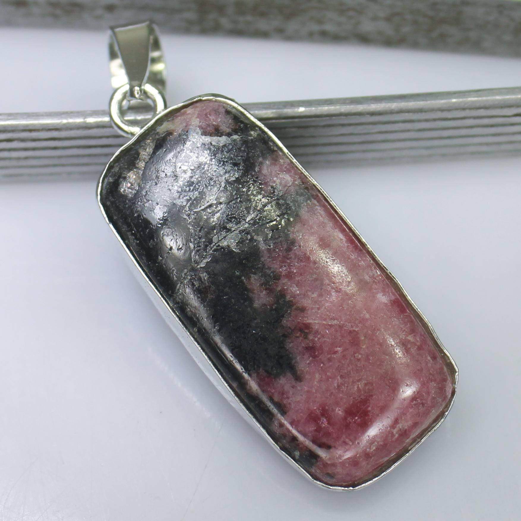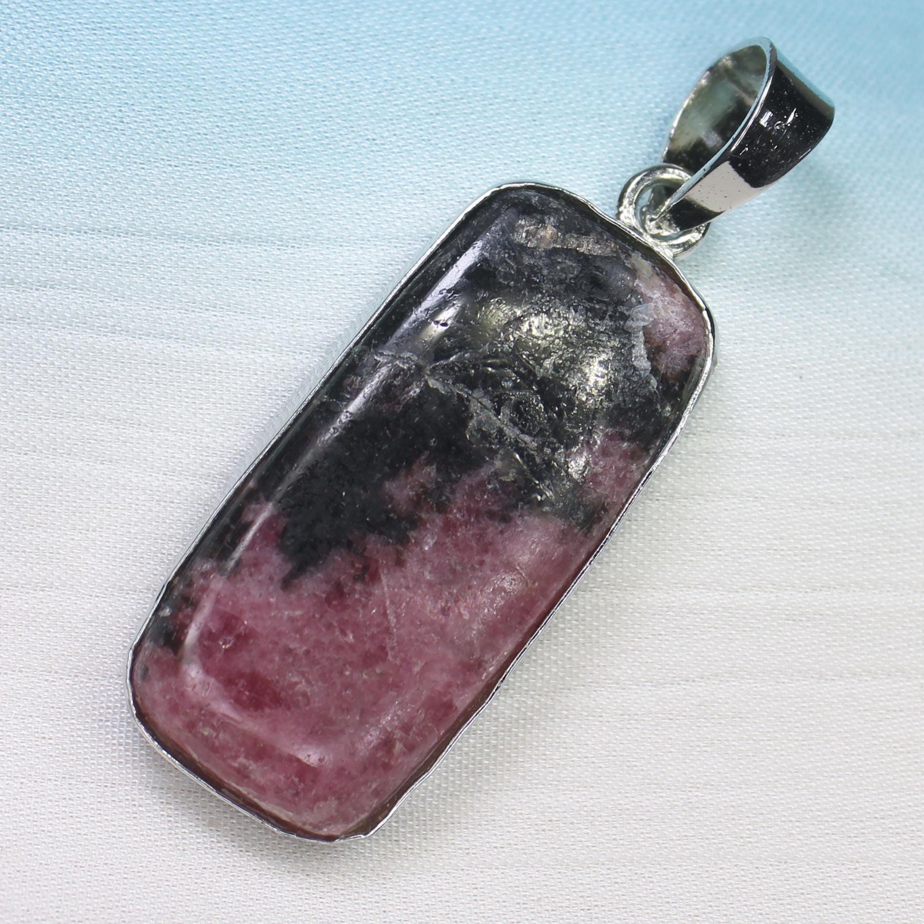 NATURAL PINK RHODONITE PENDANT WITH STERLING SILVER