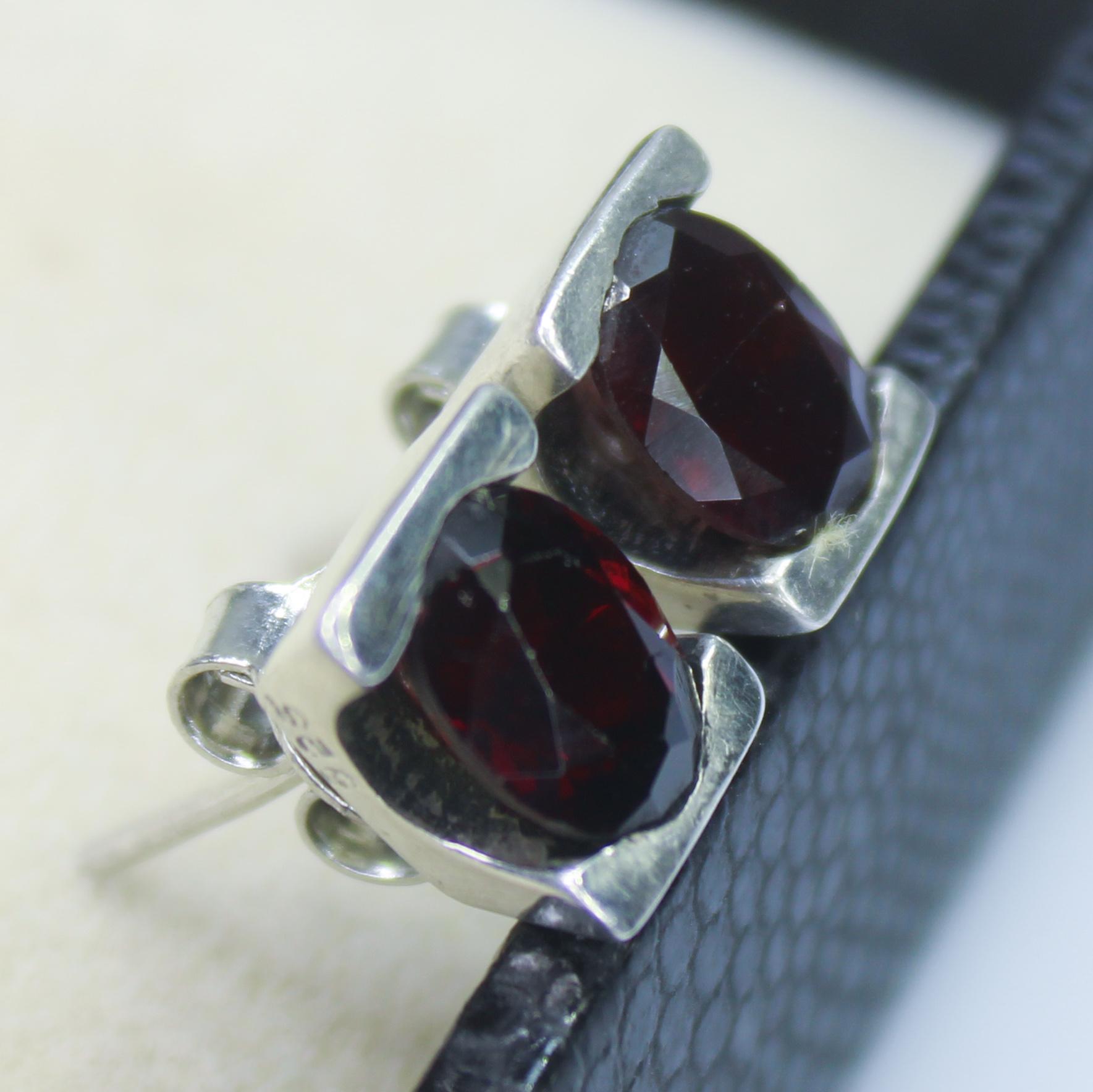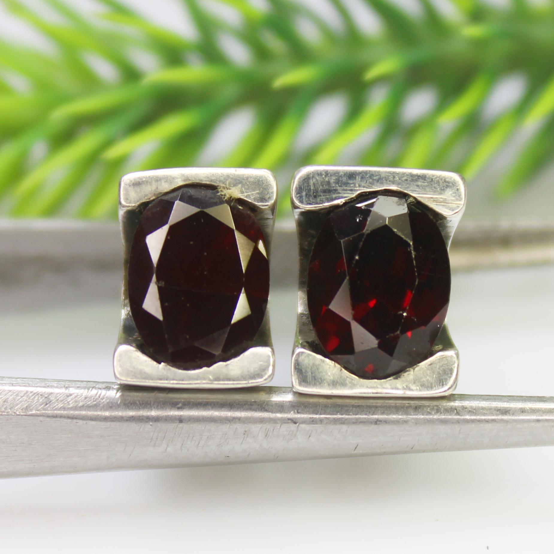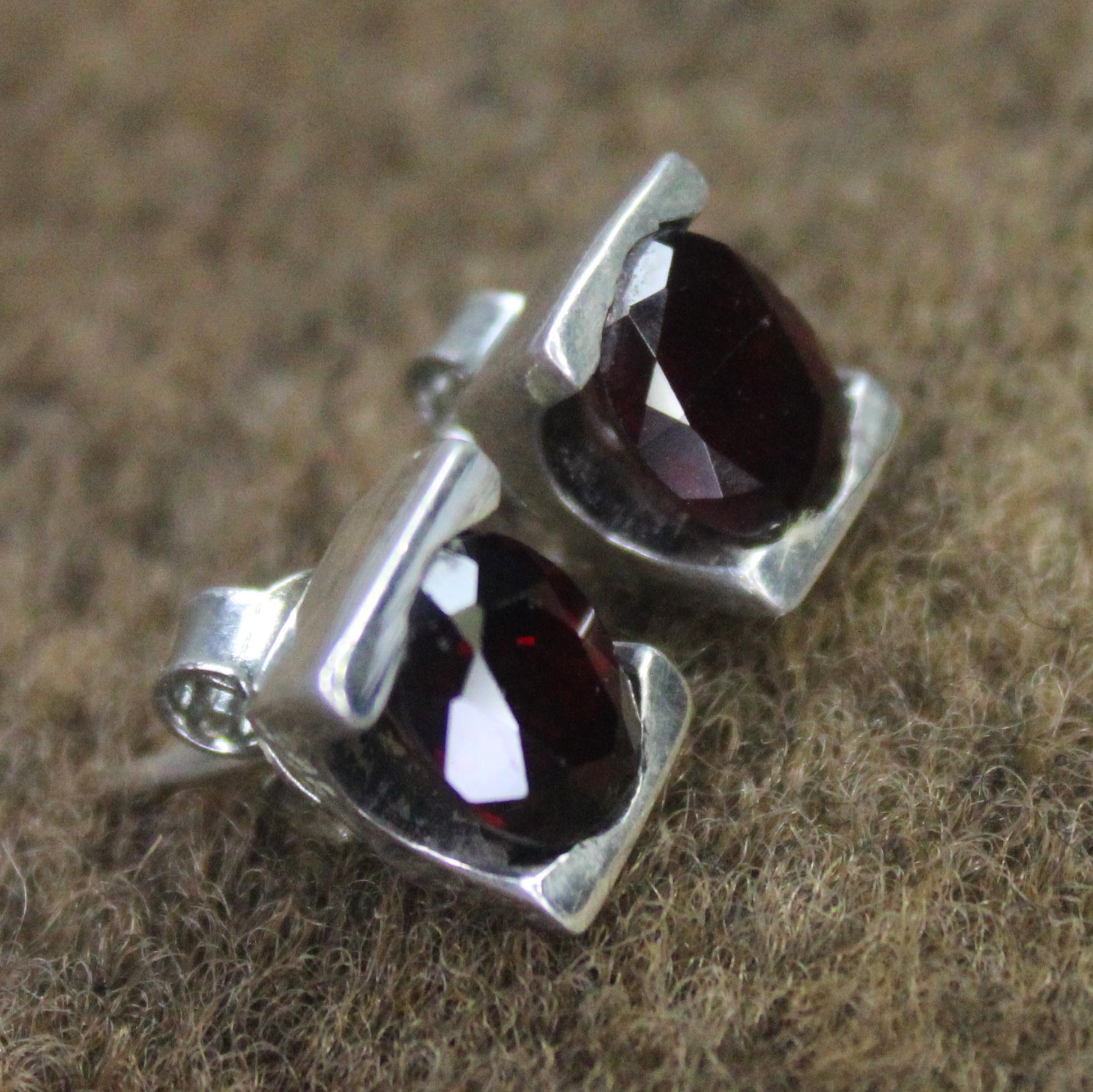 NATURAL RED GARNET STUDS WITH STERLING SILVER