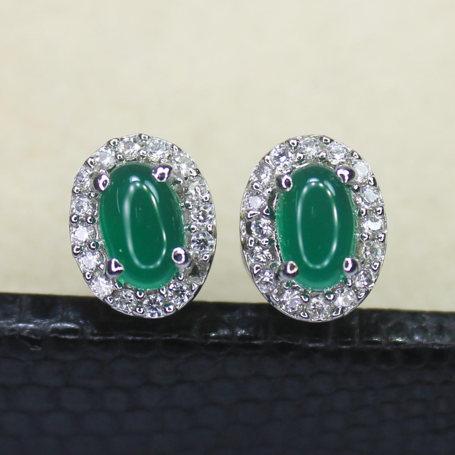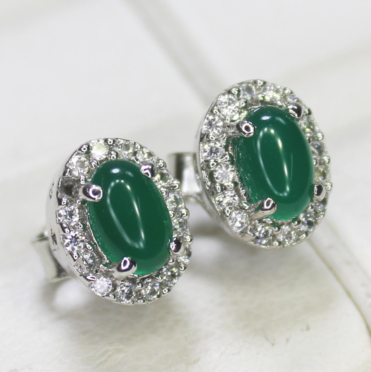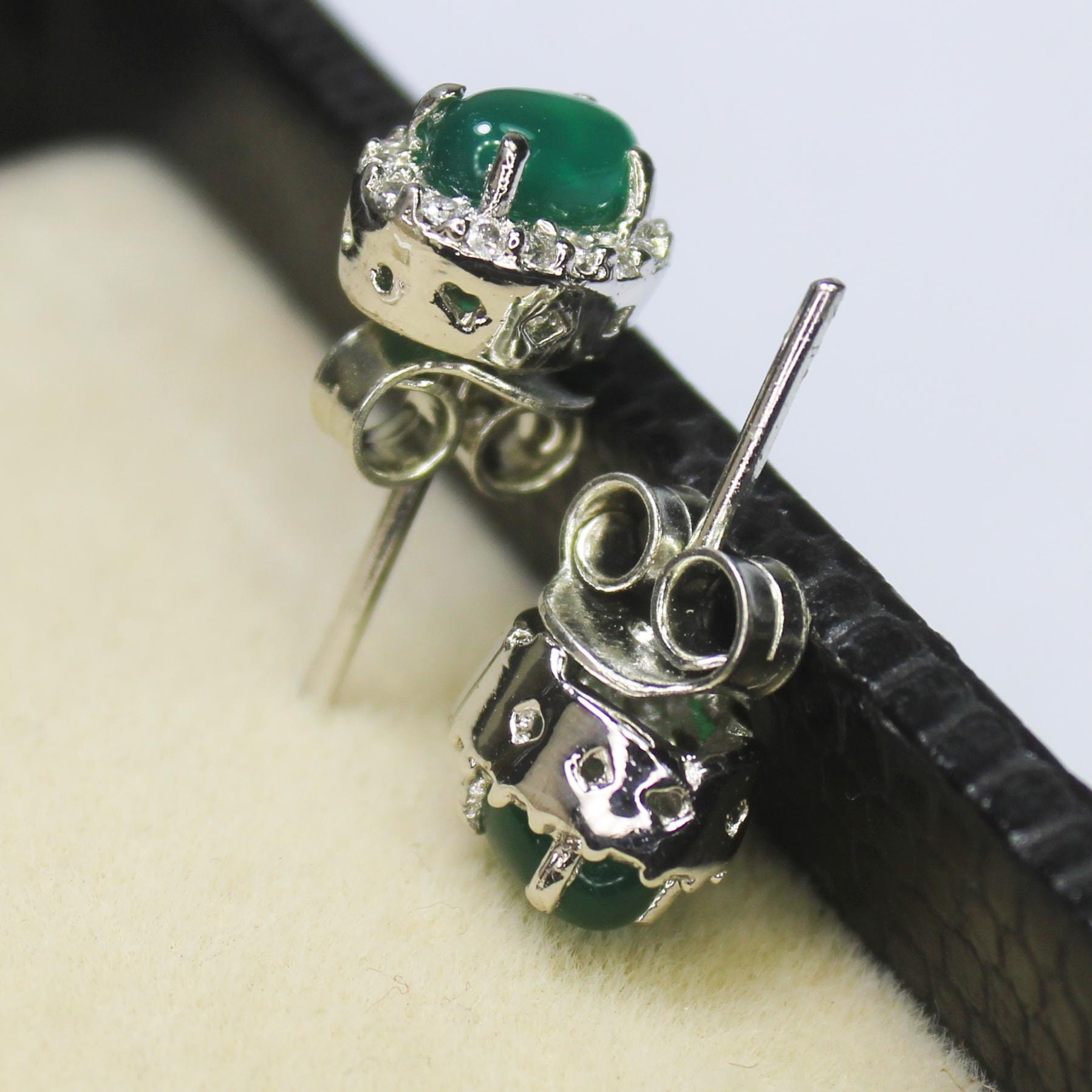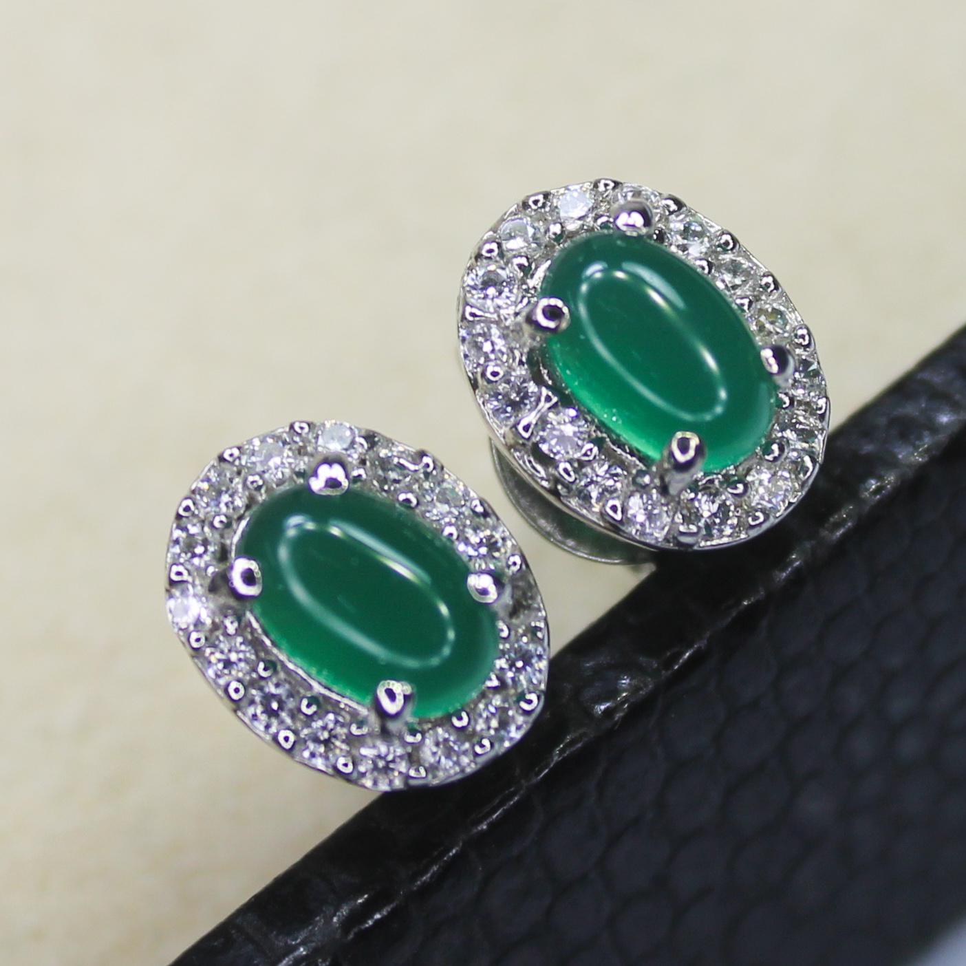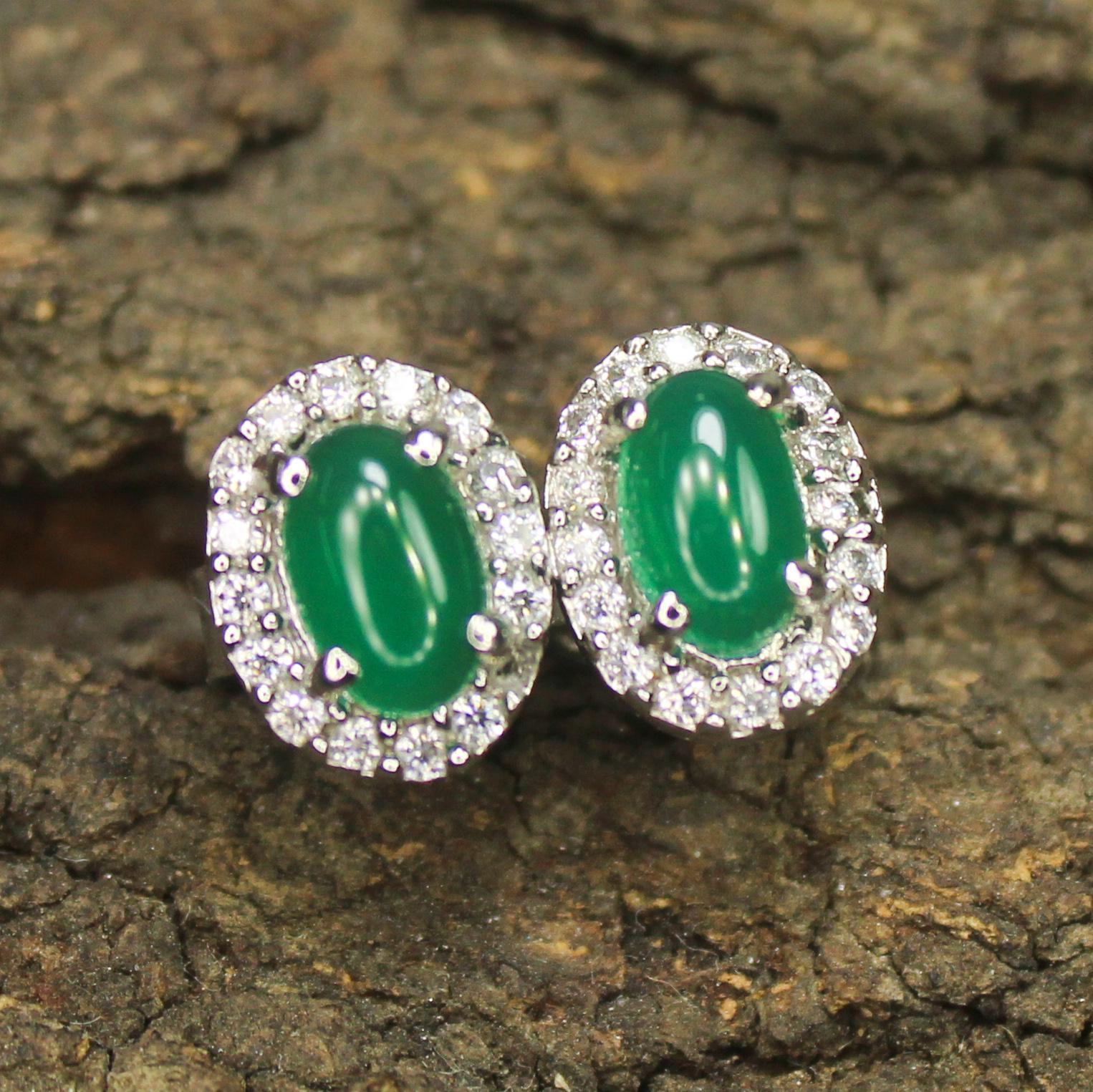 NATURAL GREEN ONYX STUDS WITH STERLING SILVER