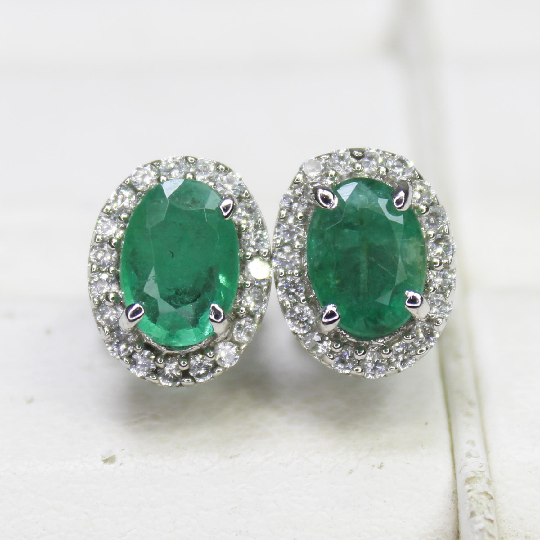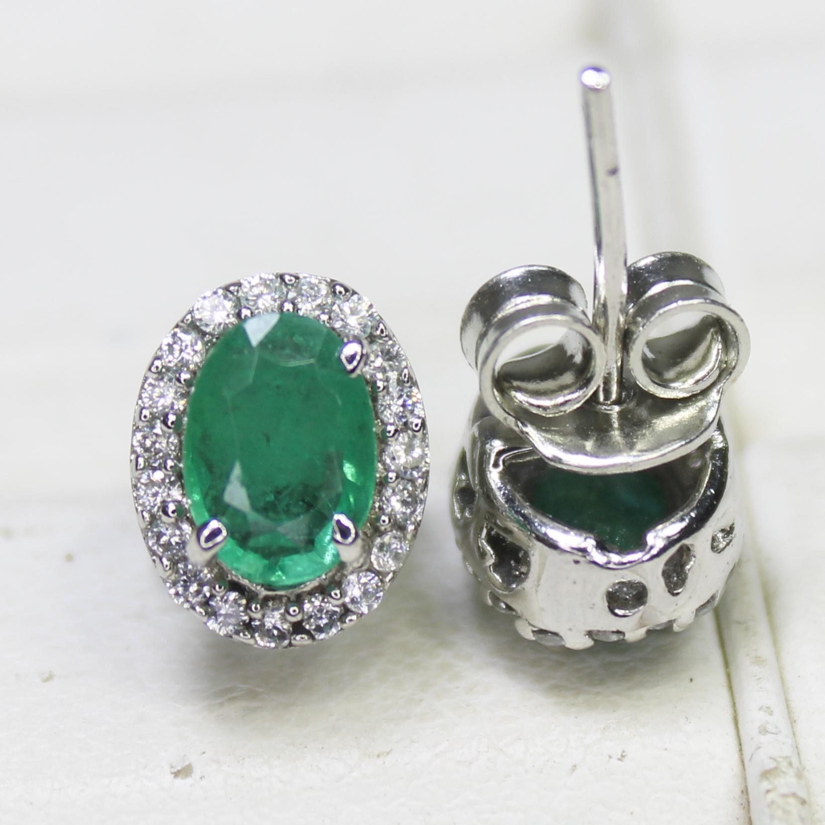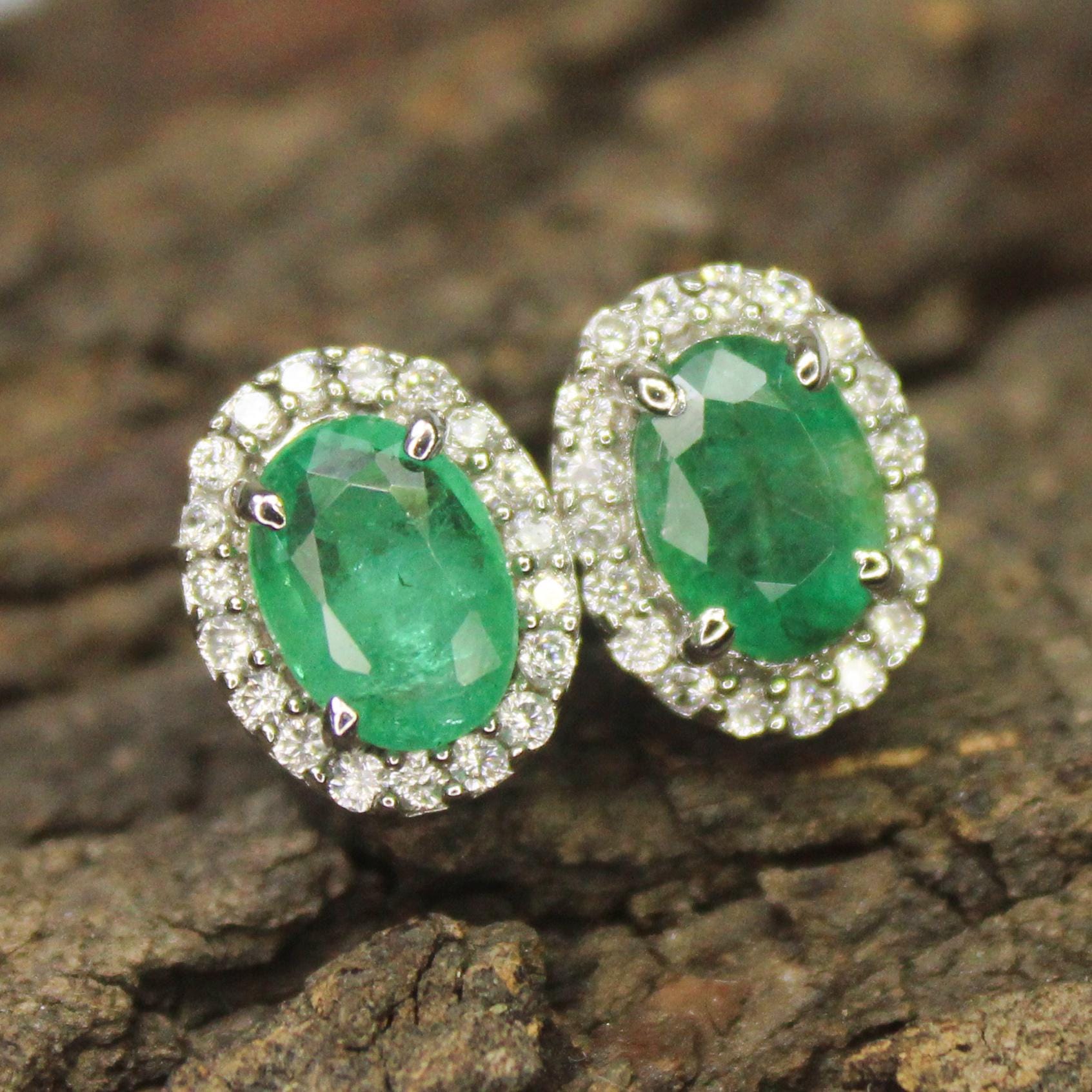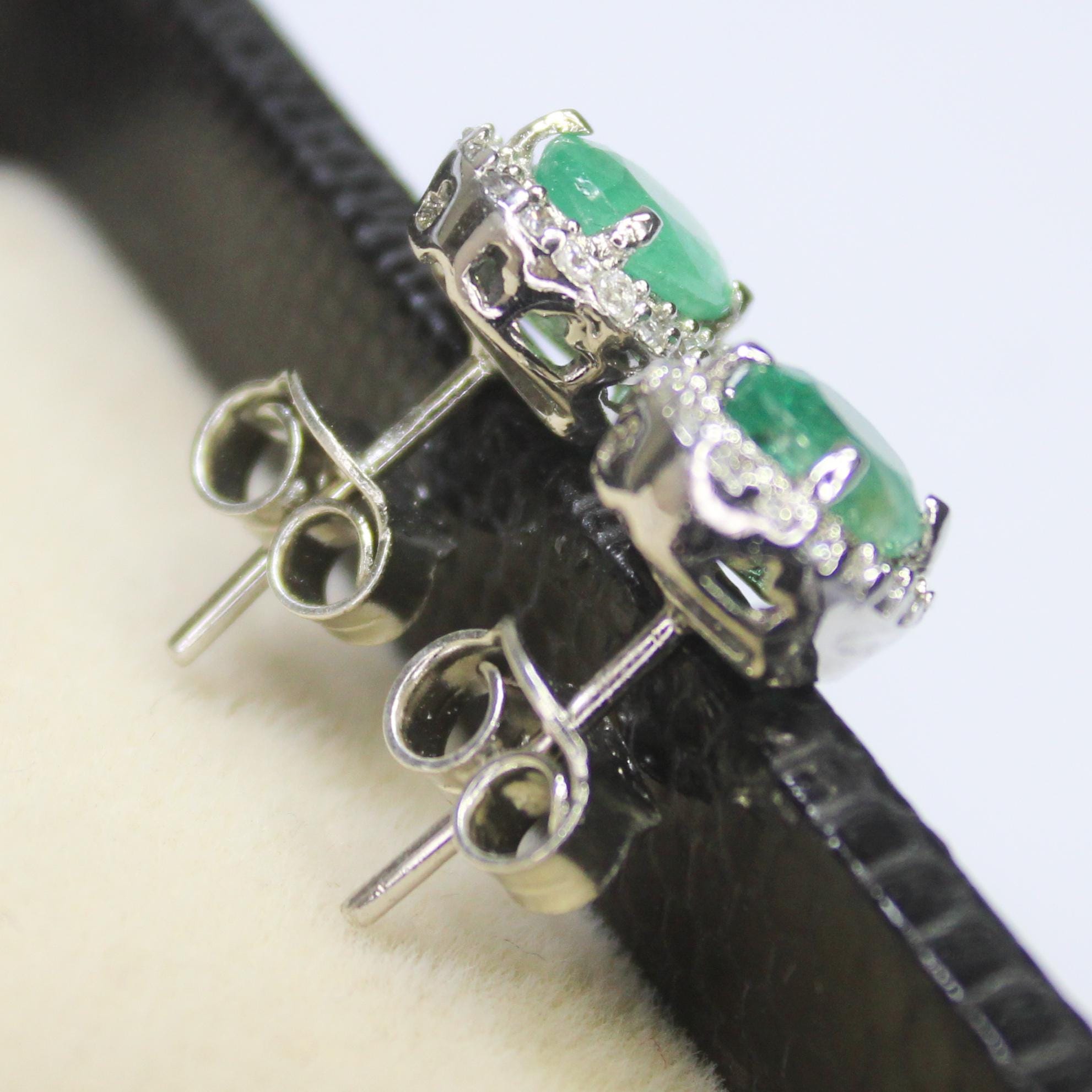 NATURAL GREEN EMERALD STUDS WITH STERLING SILVER
