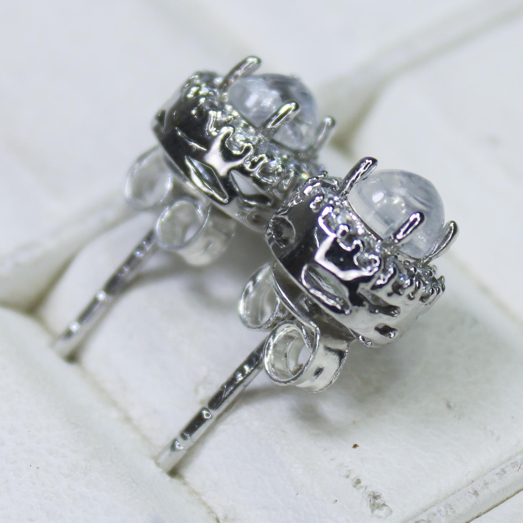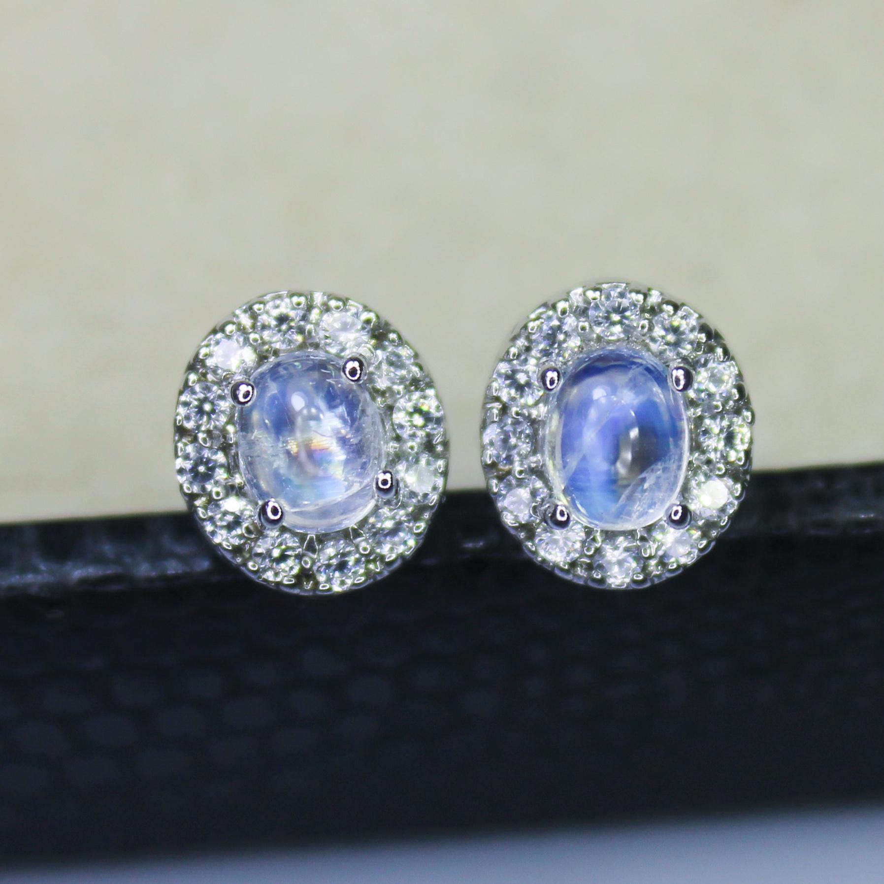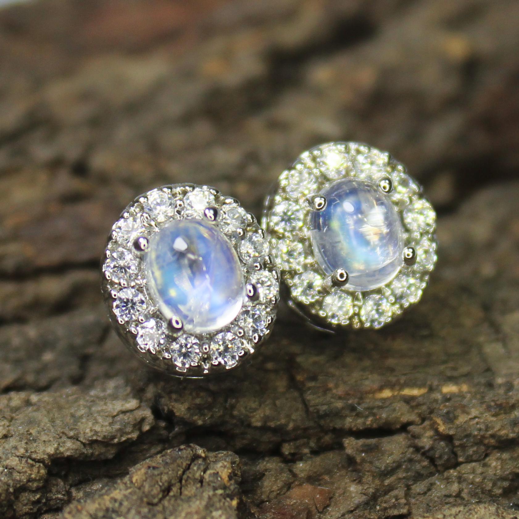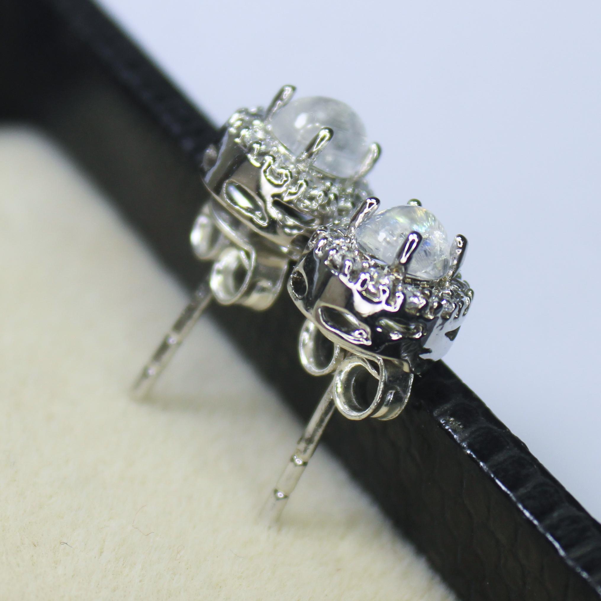 NATURAL WHITE RAINBOW MOONSTONE STUDS WITH STERLING SILVER