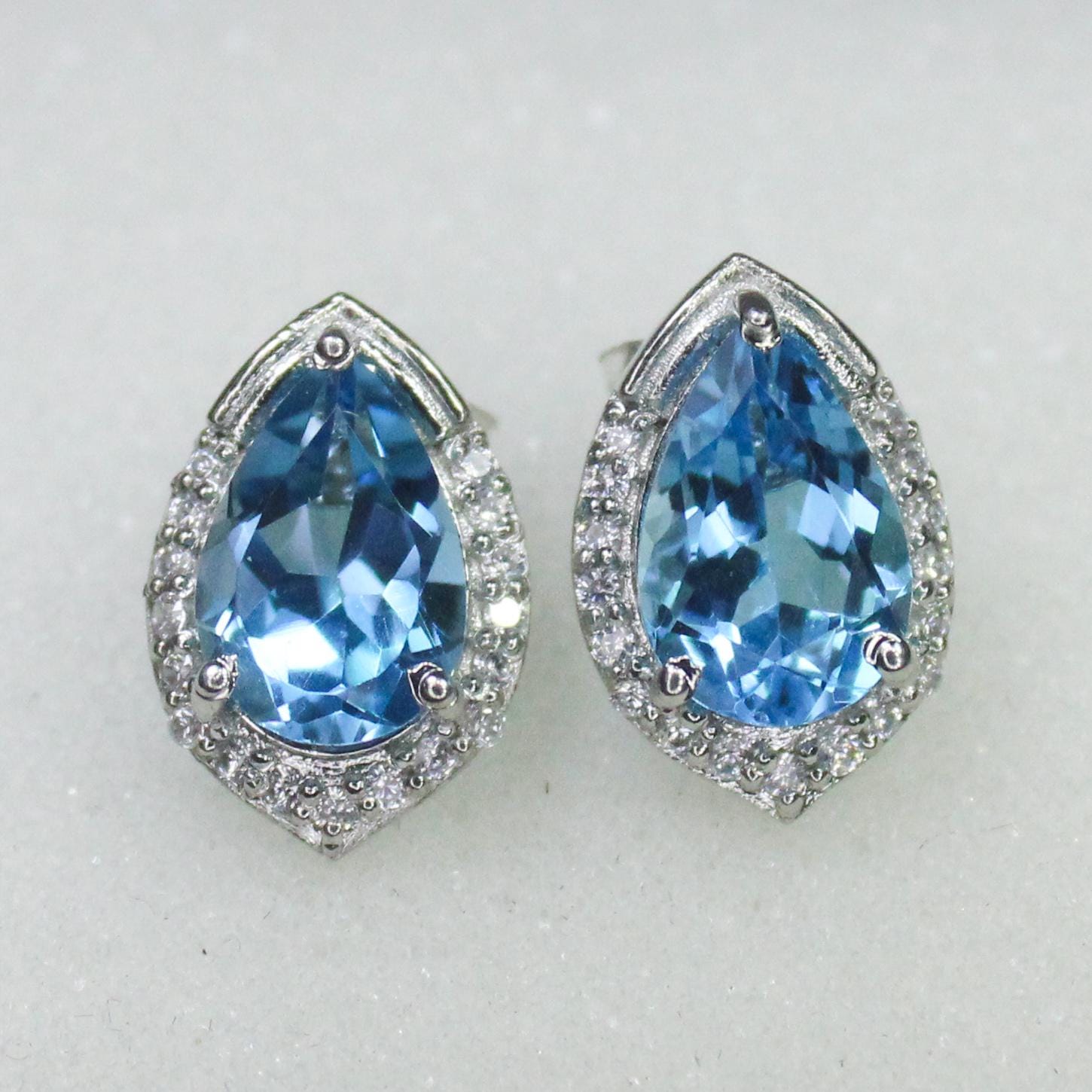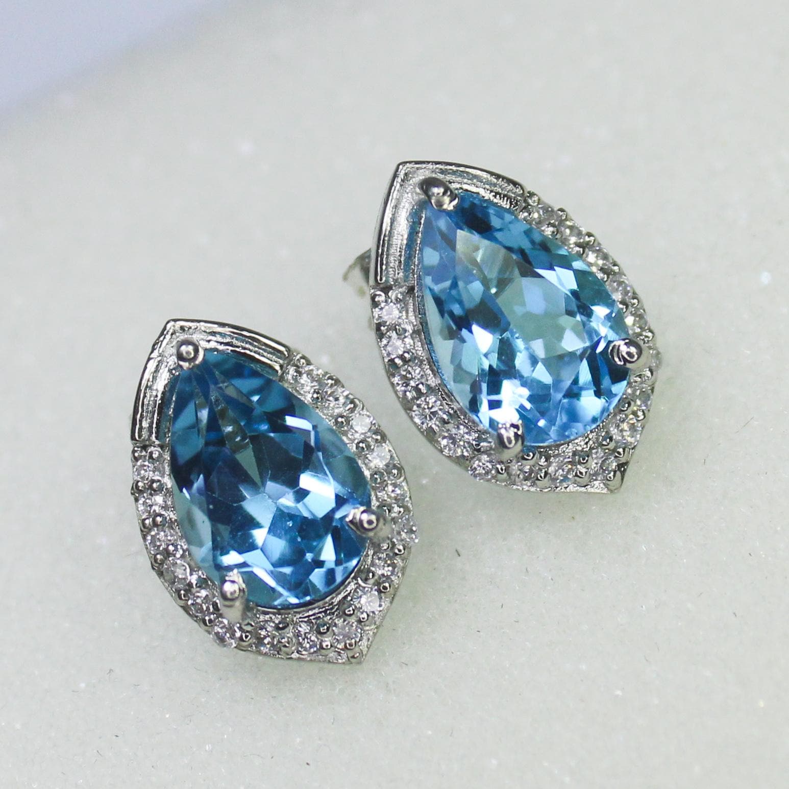 NATURAL BLUE TOPAZ STUDS WITH STERLING SILVER