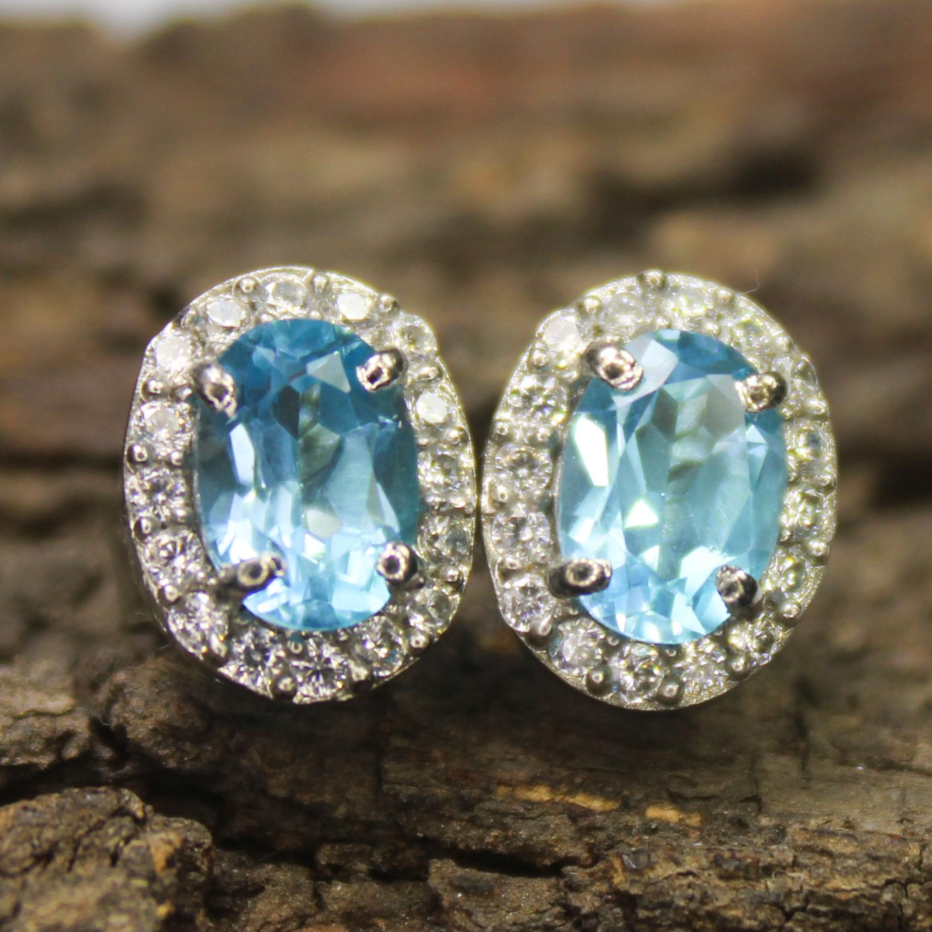 NATURAL BLUE TOPAZ STUDS WITH STERLING SILVER