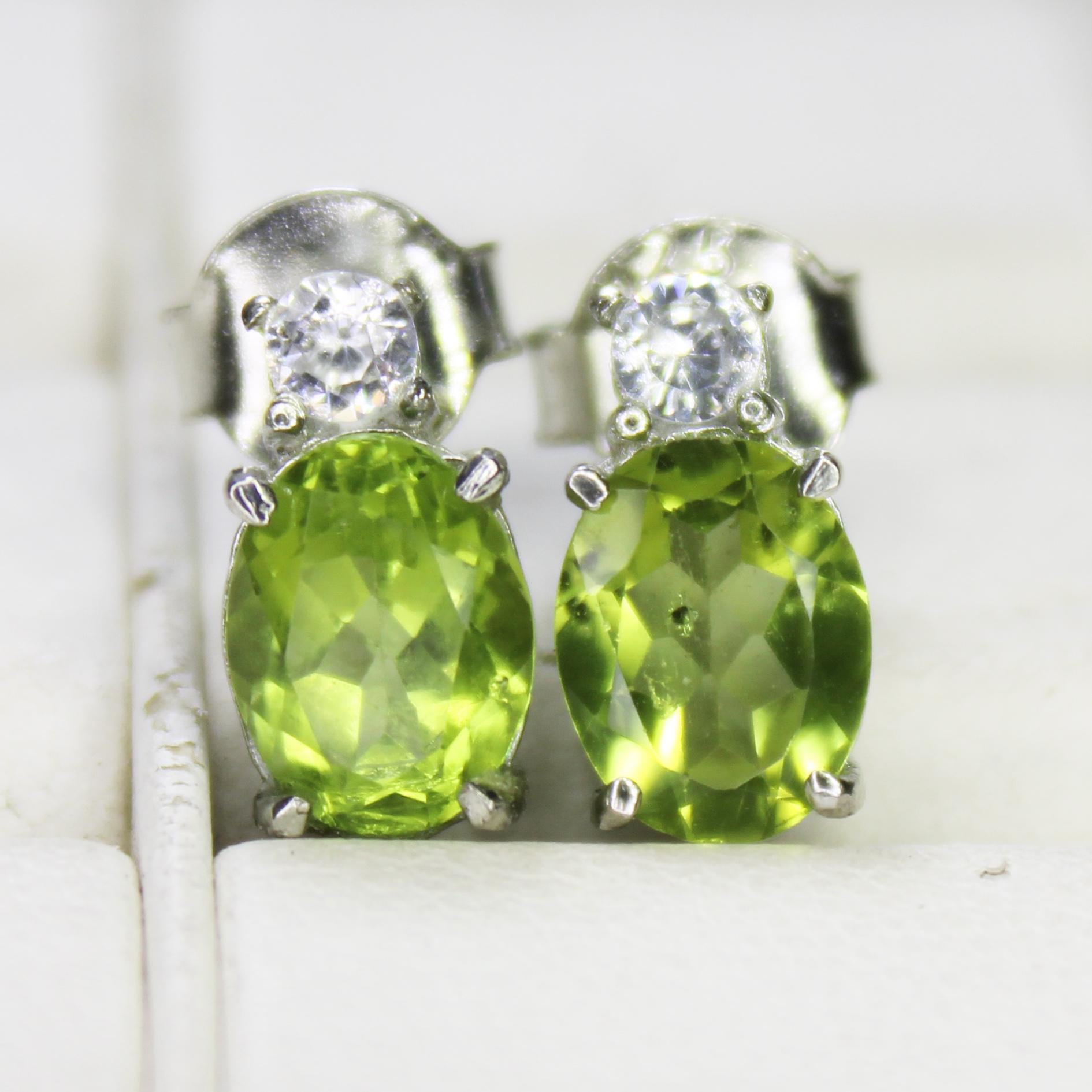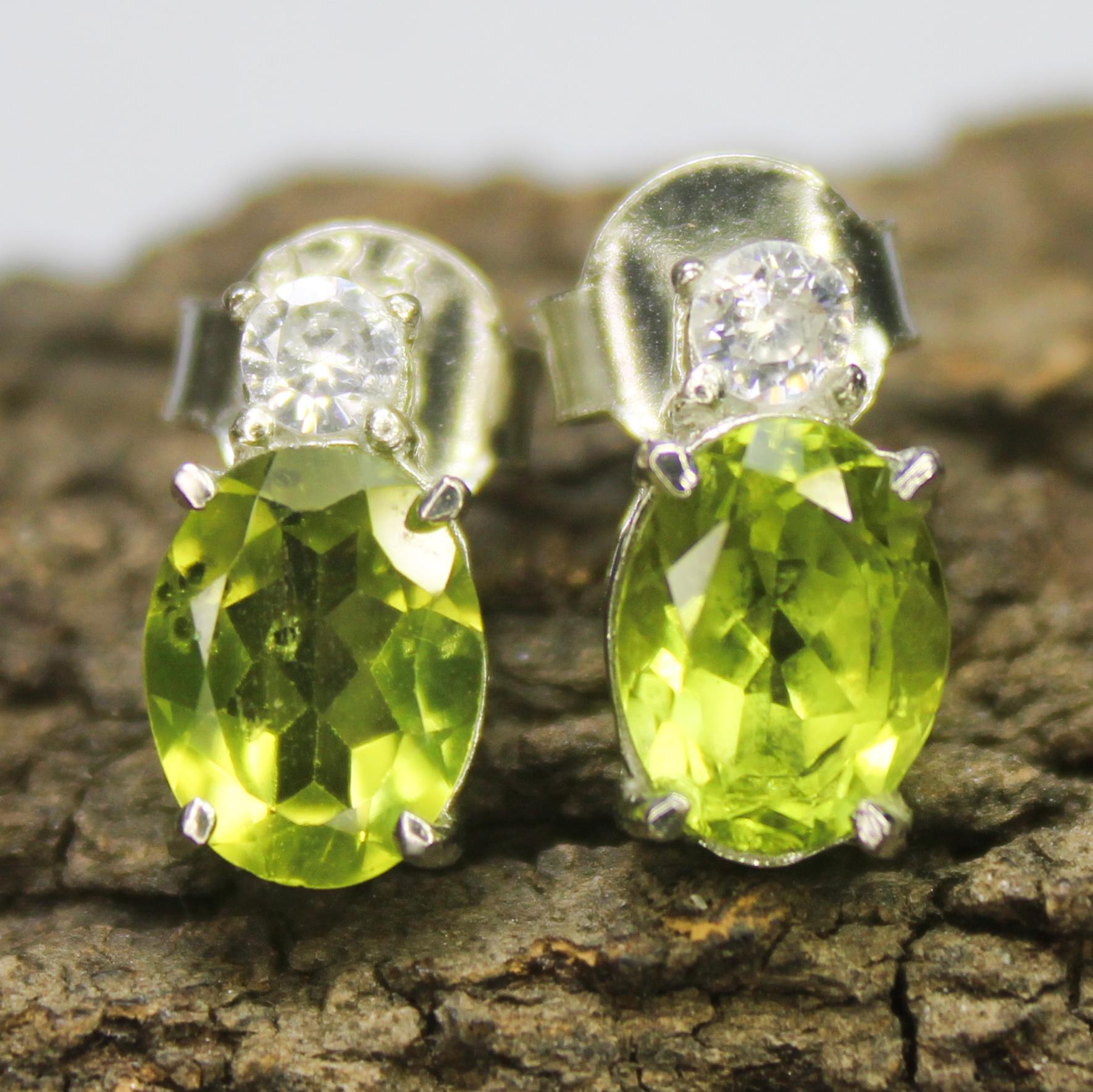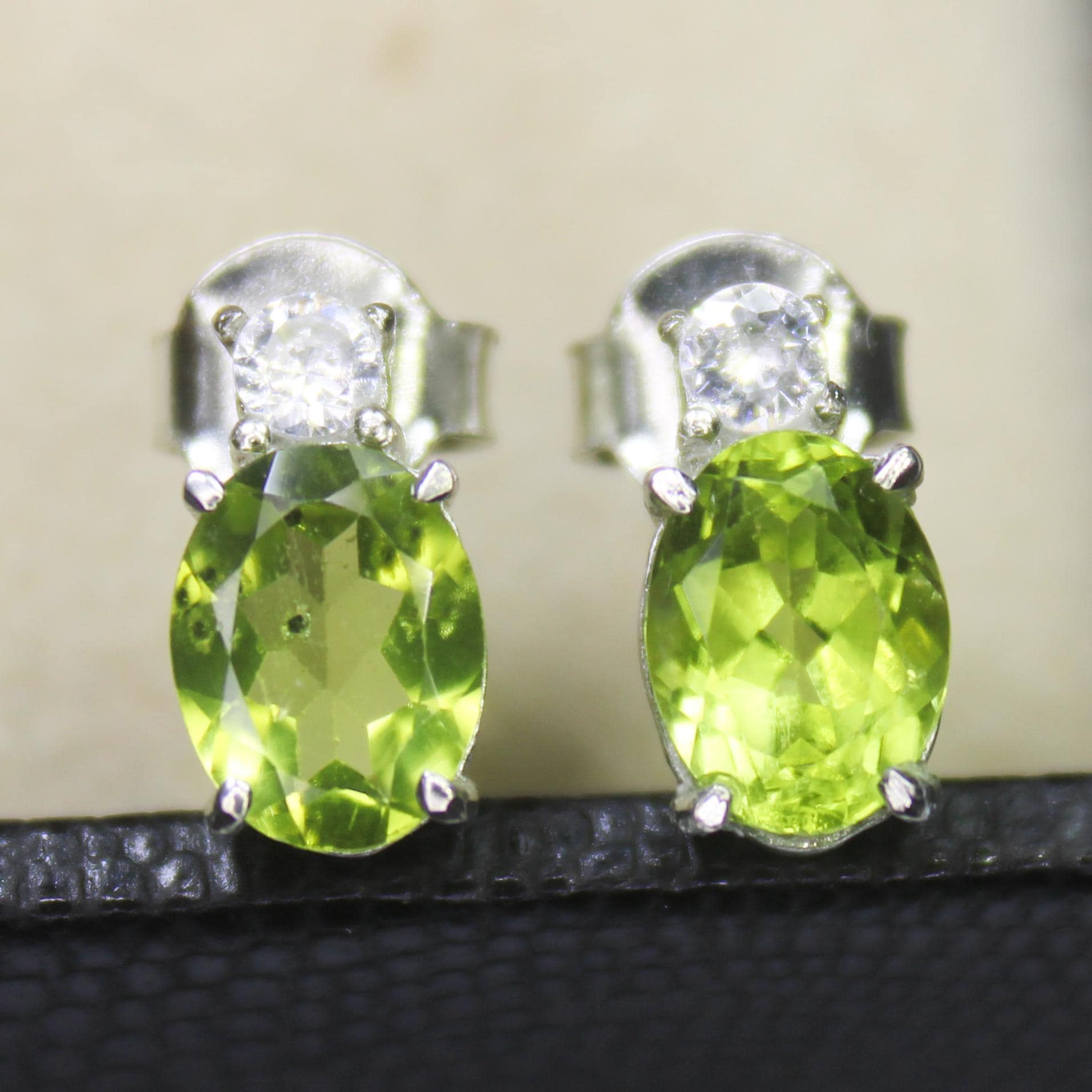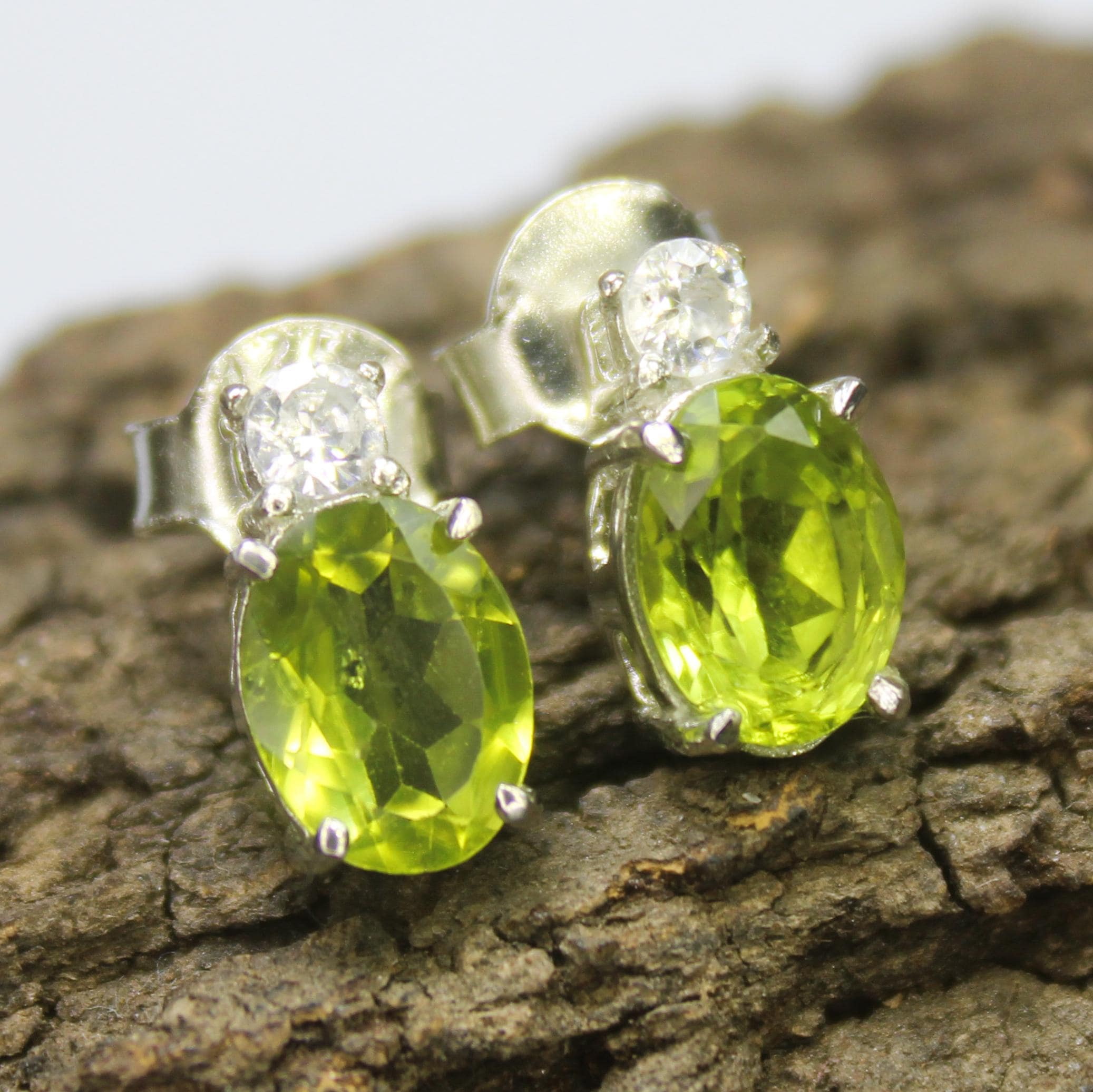 NATURAL GREEN PERIDOT STUDS WITH STERLING SILVER