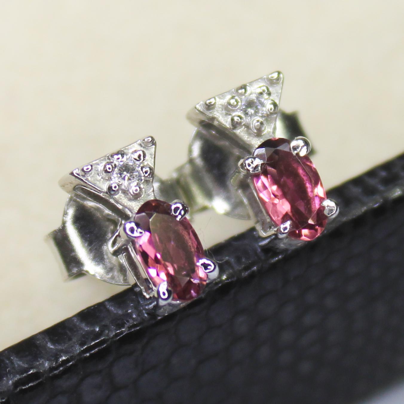 NATURAL PINK TOURMALINE STUDS WITH STERLING SILVER