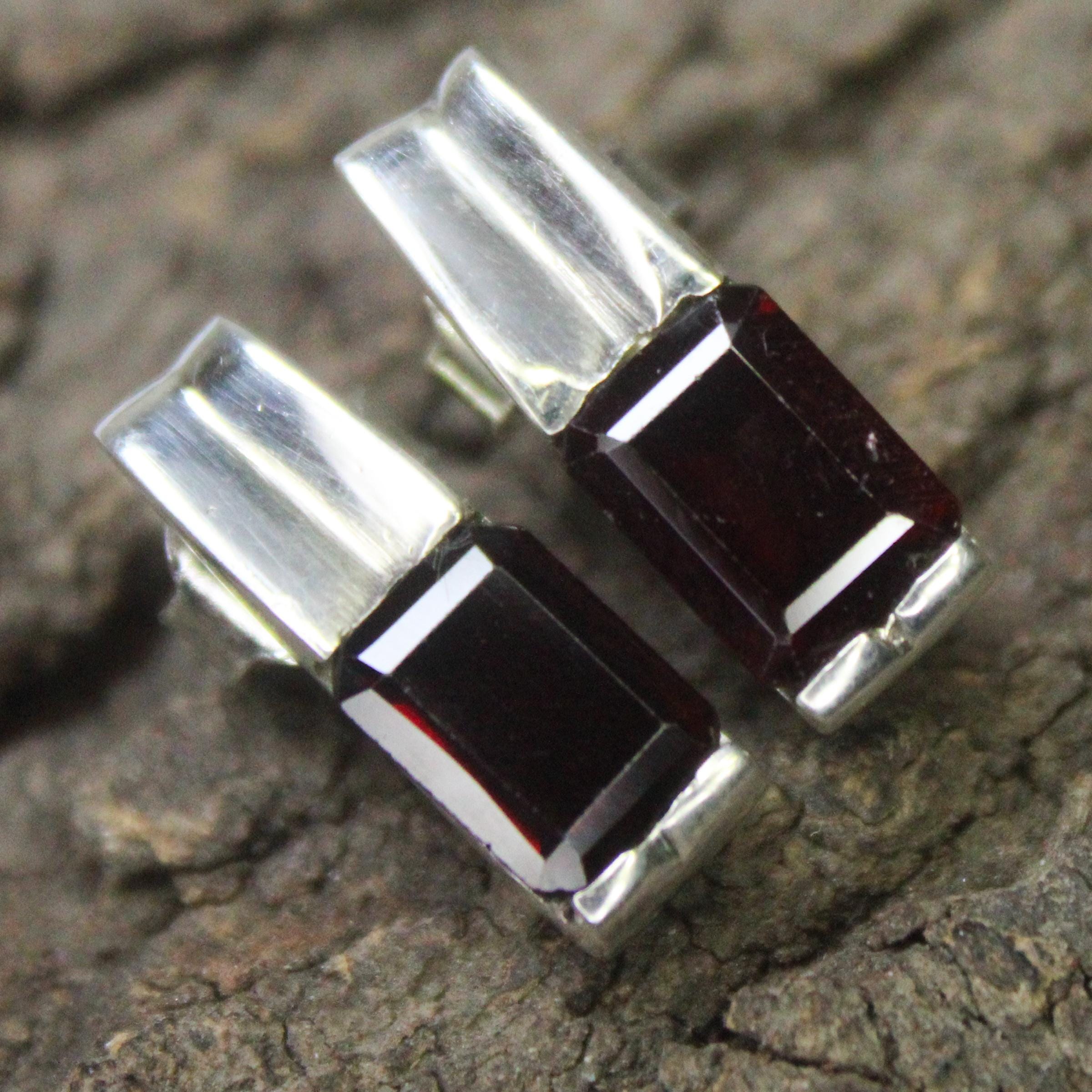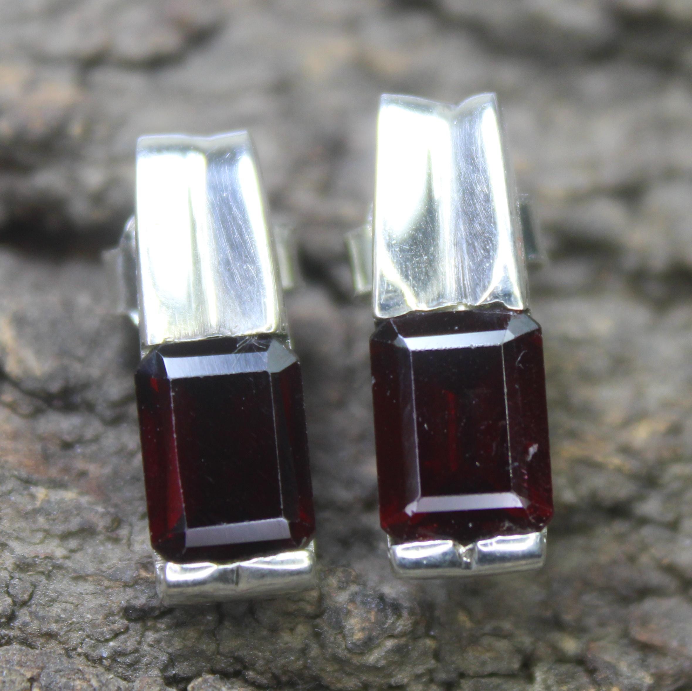 NATURAL RED GARNET STUDS WITH STERLING SILVER