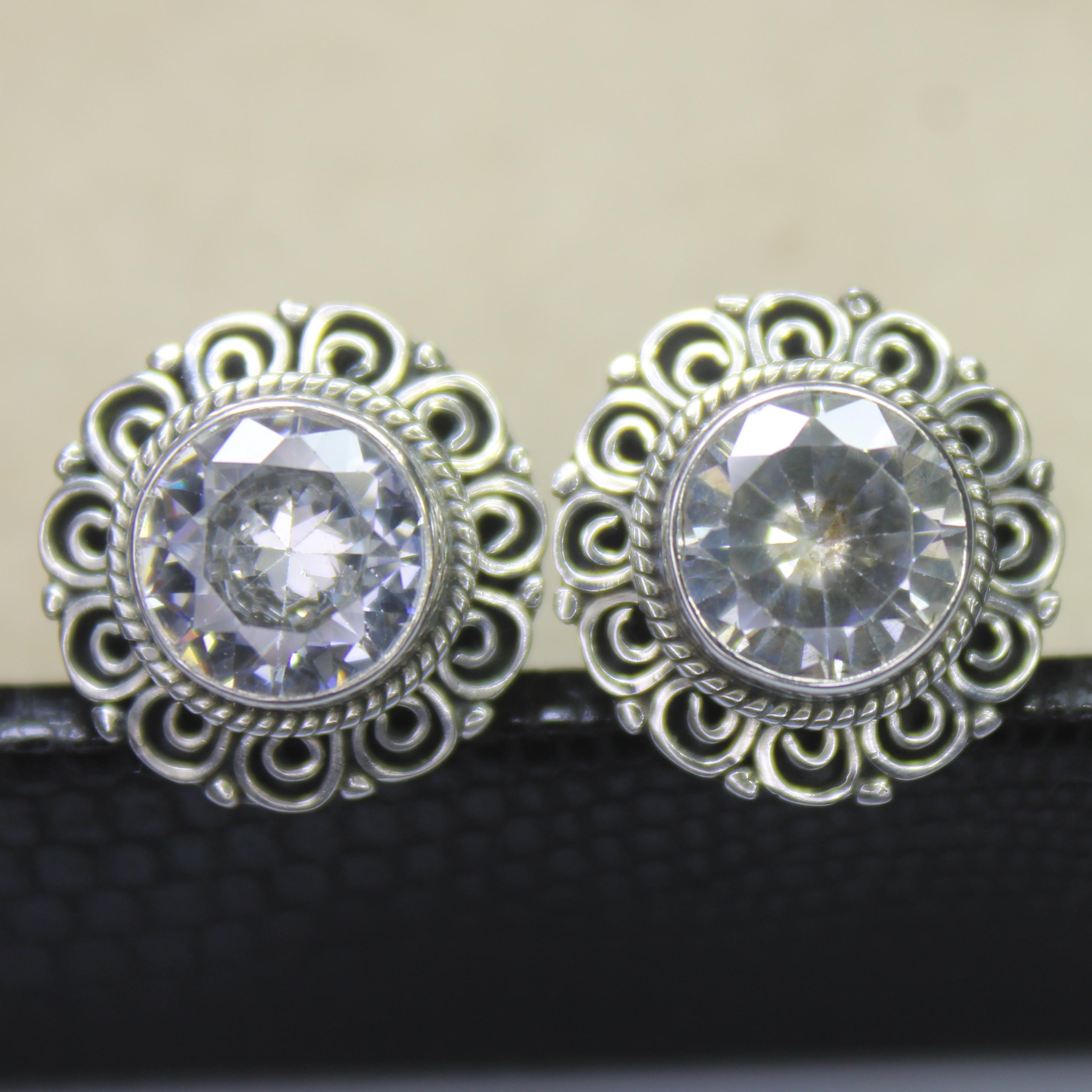 WHITE ZIRCON STUDS WITH STERLING SILVER