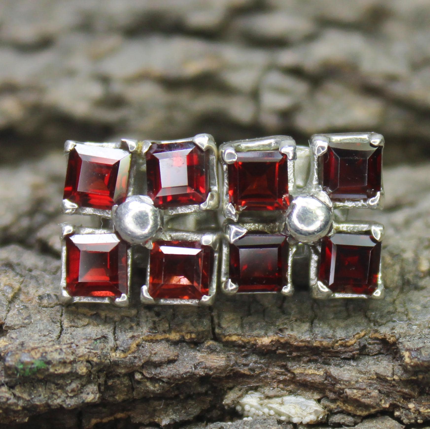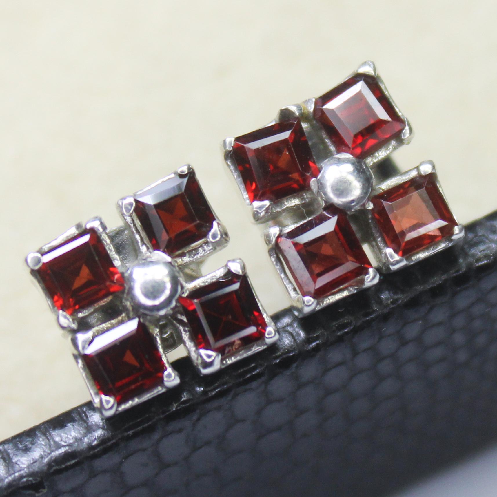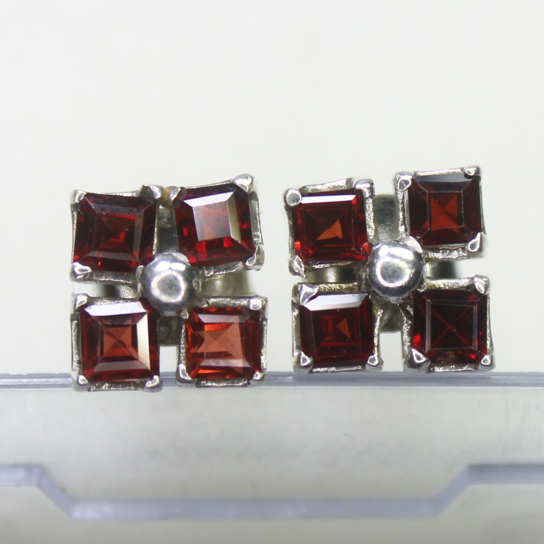 NATURAL RED GARNET STUDS WITH STERLING SILVER