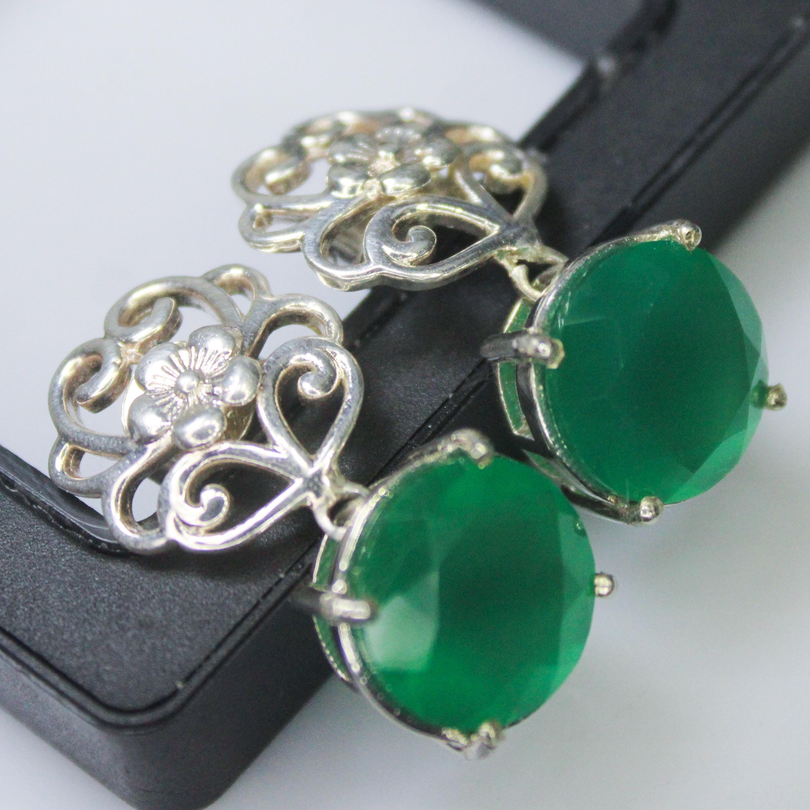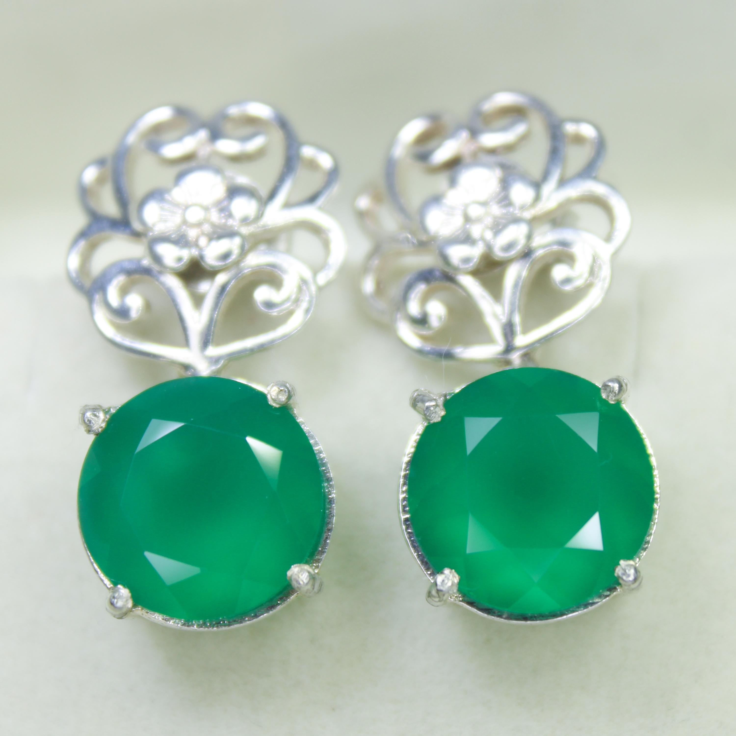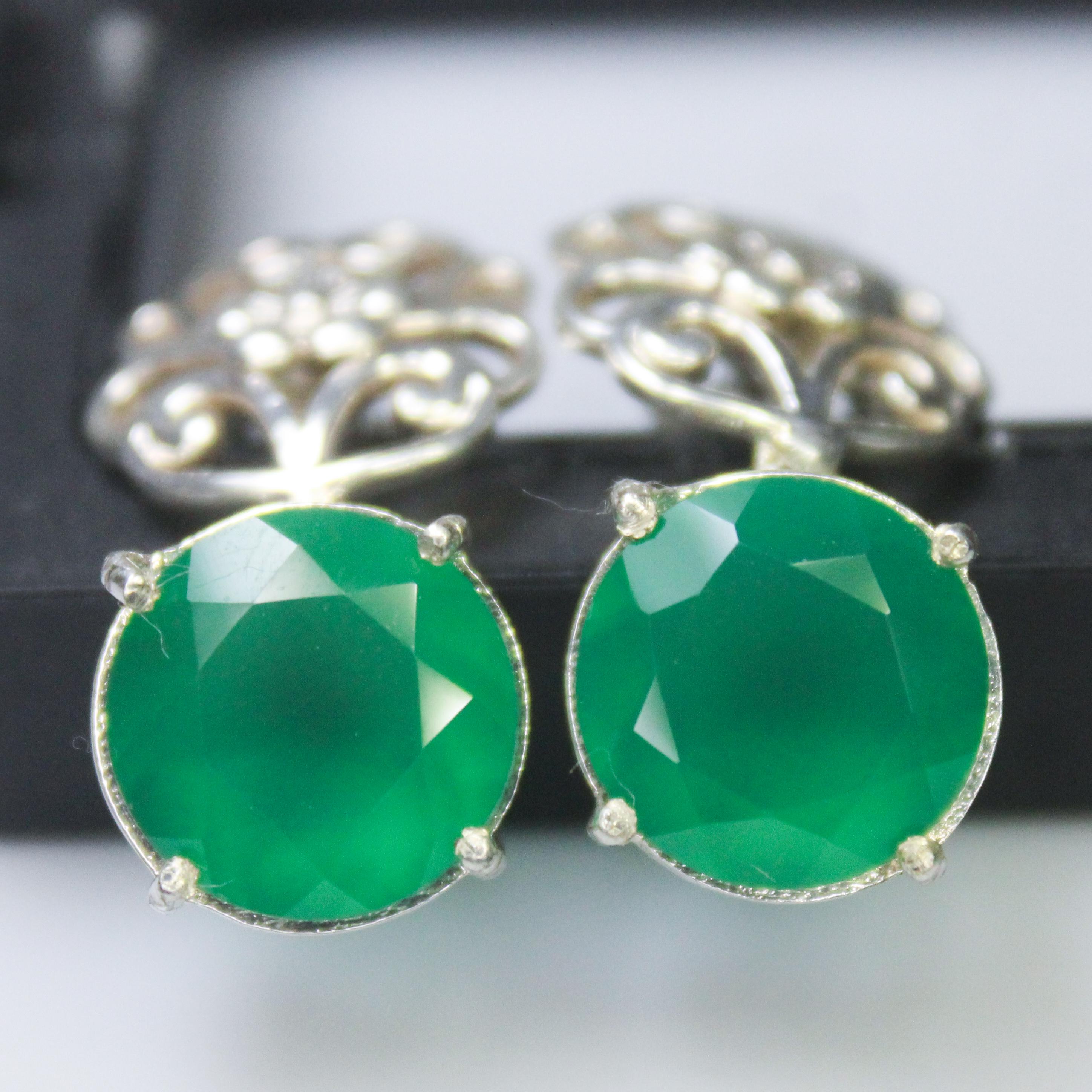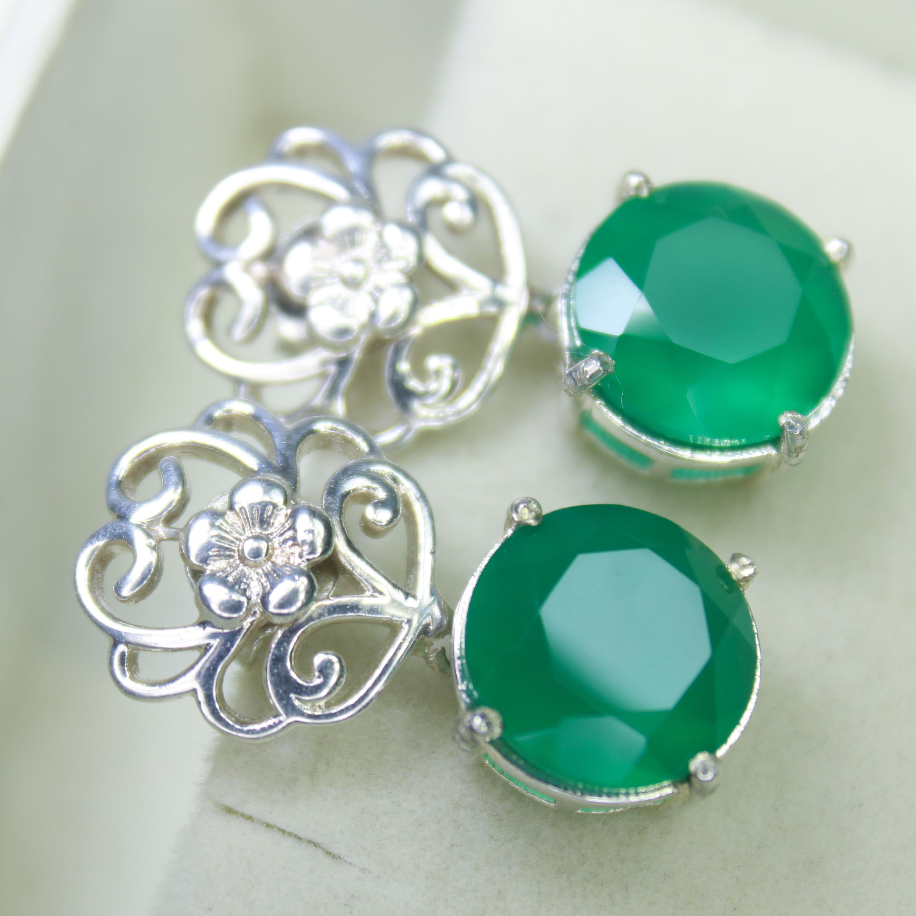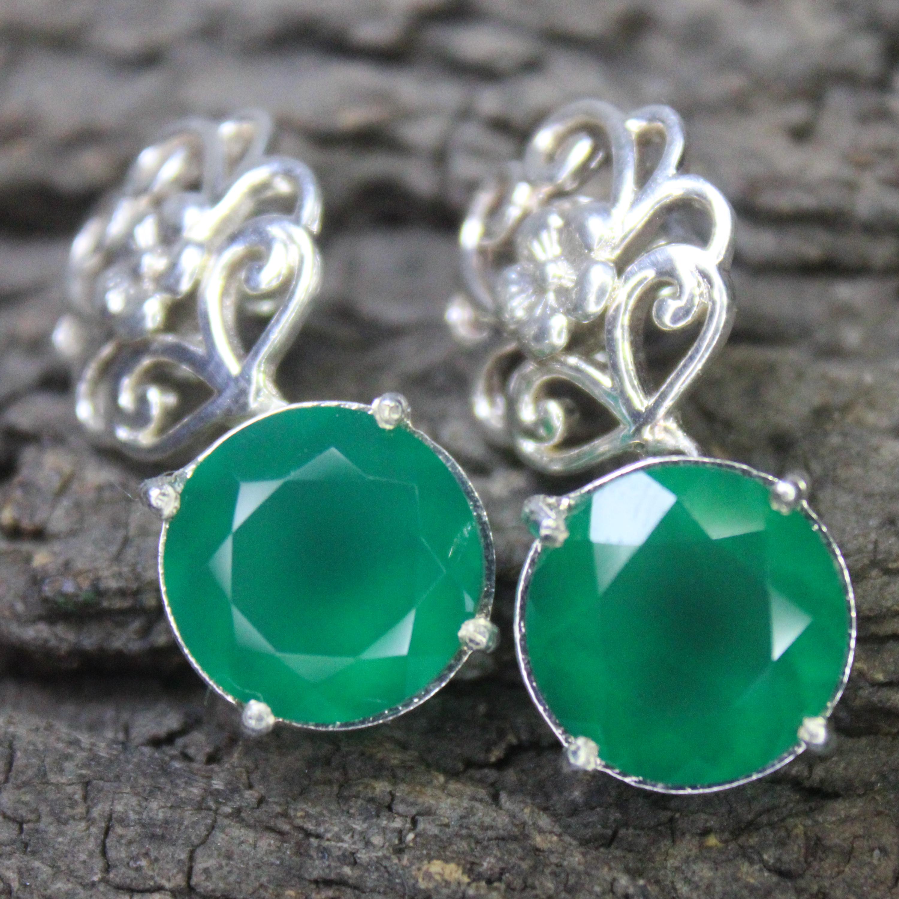 NATURAL GREEN ONYX STUDS WITH STERLING SILVER