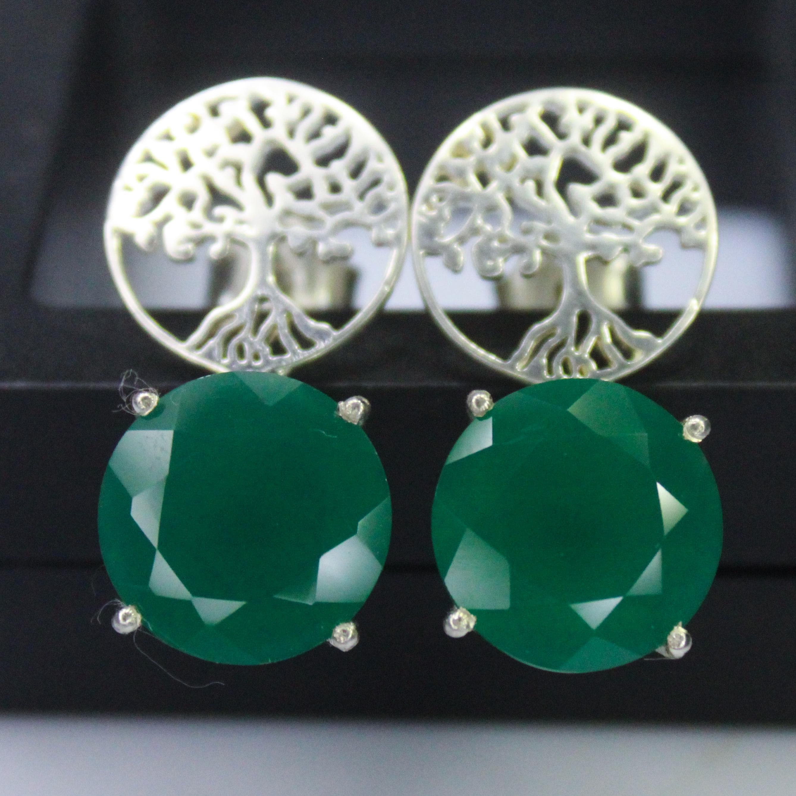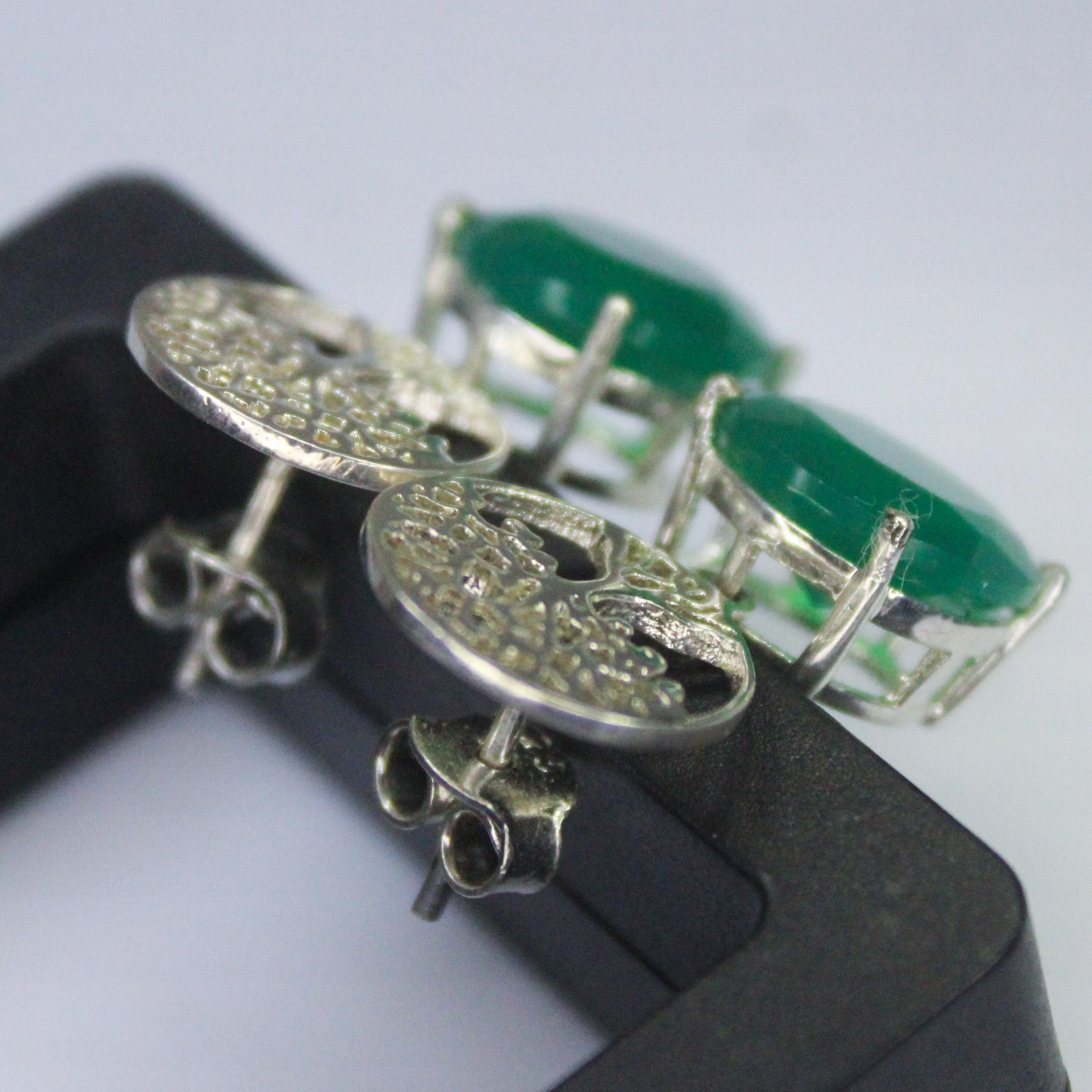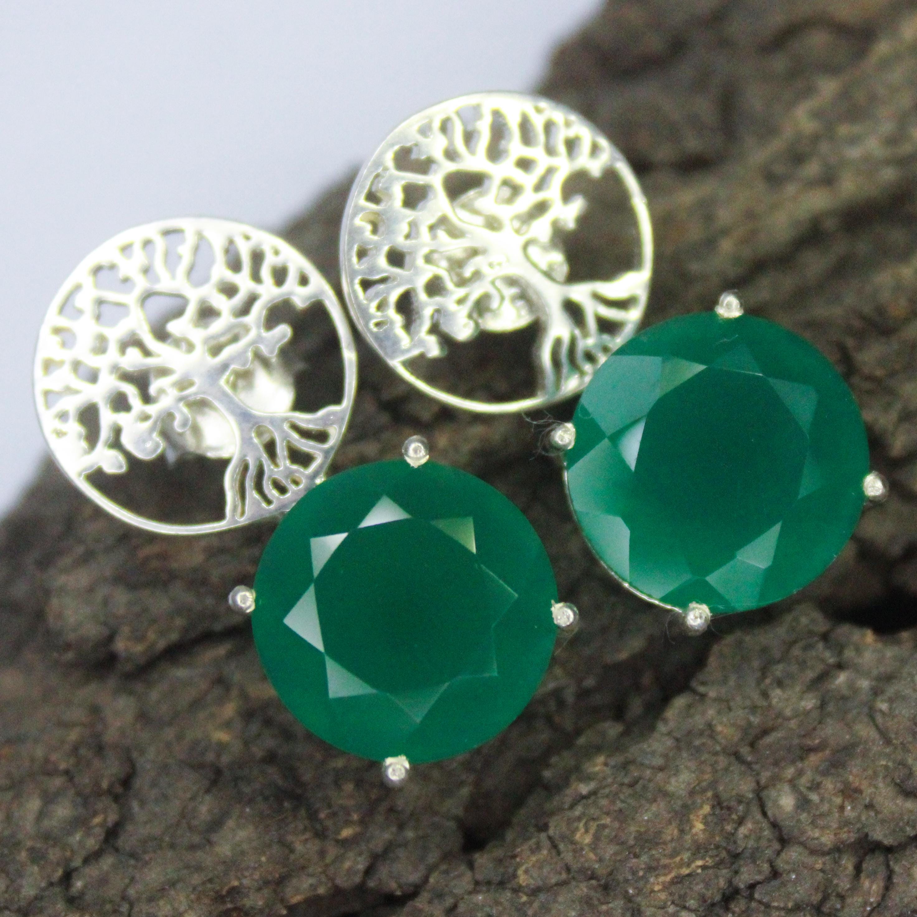 NATURAL GREEN ONYX STUDS WITH STERLING SILVER