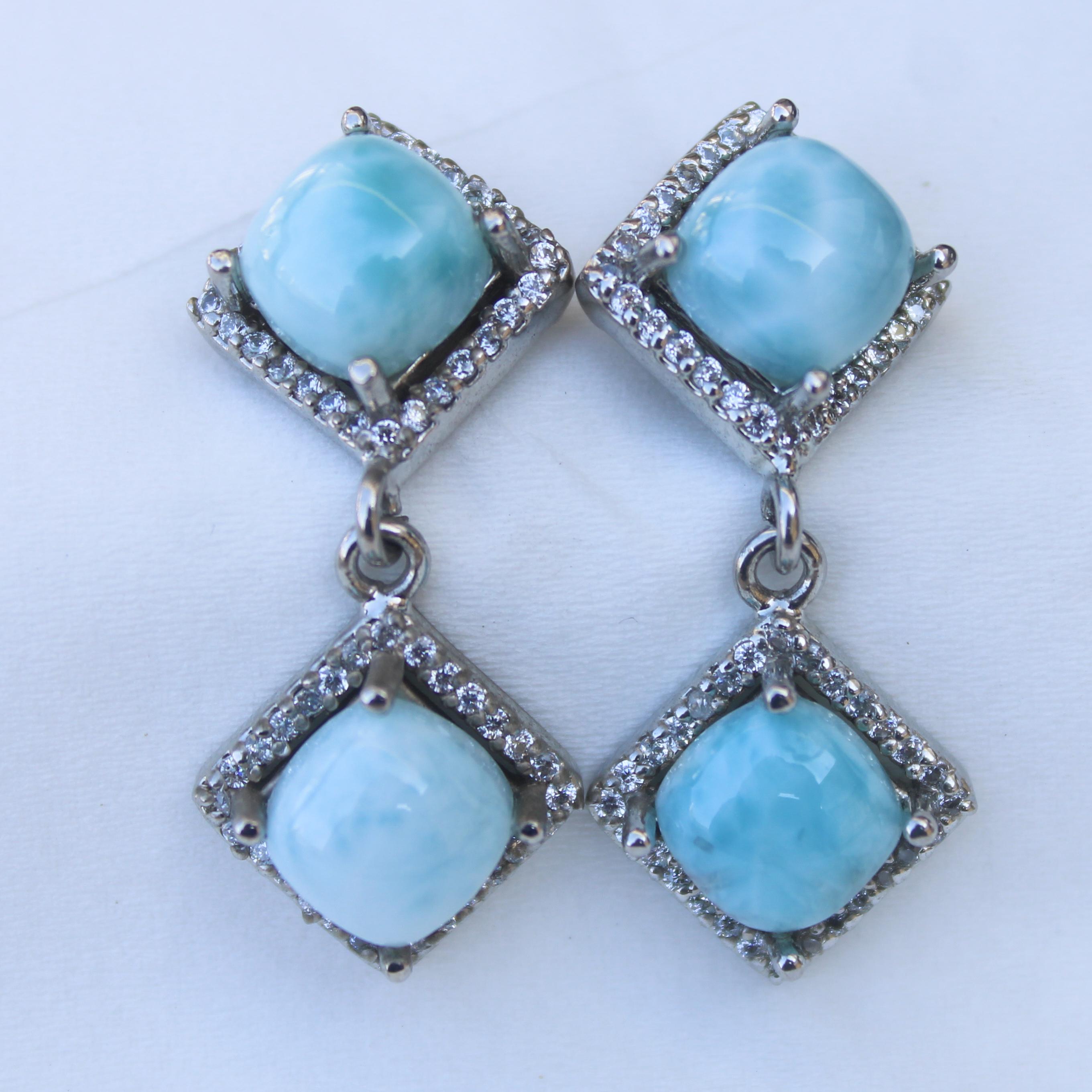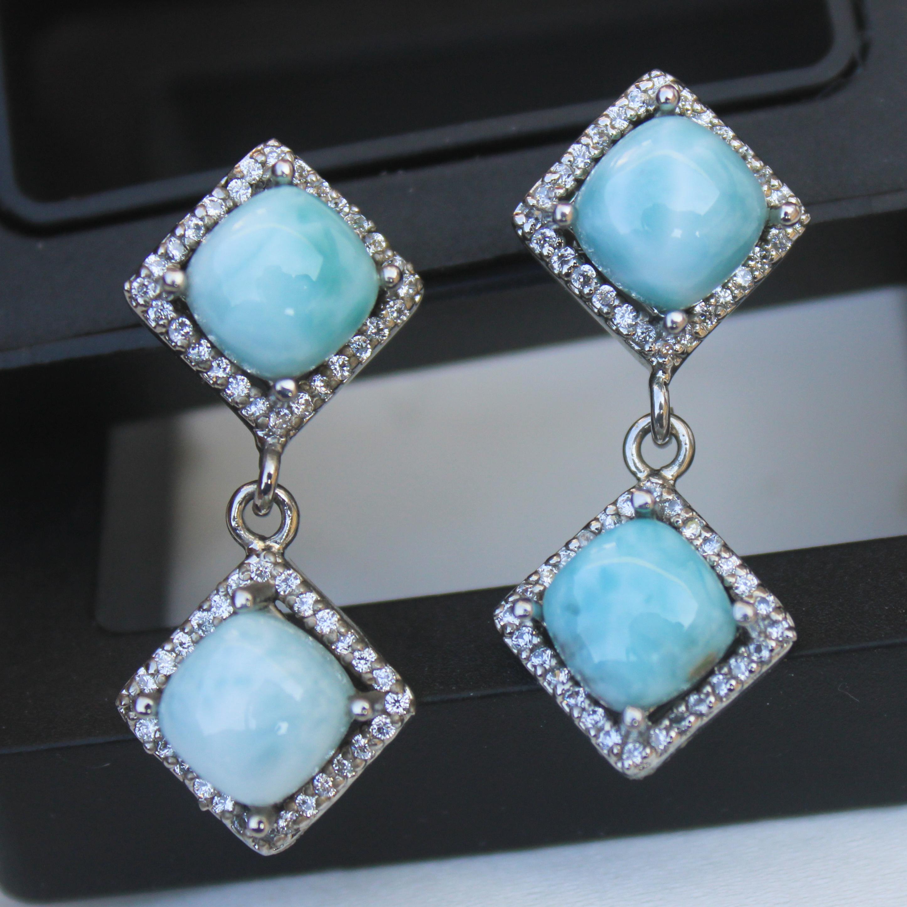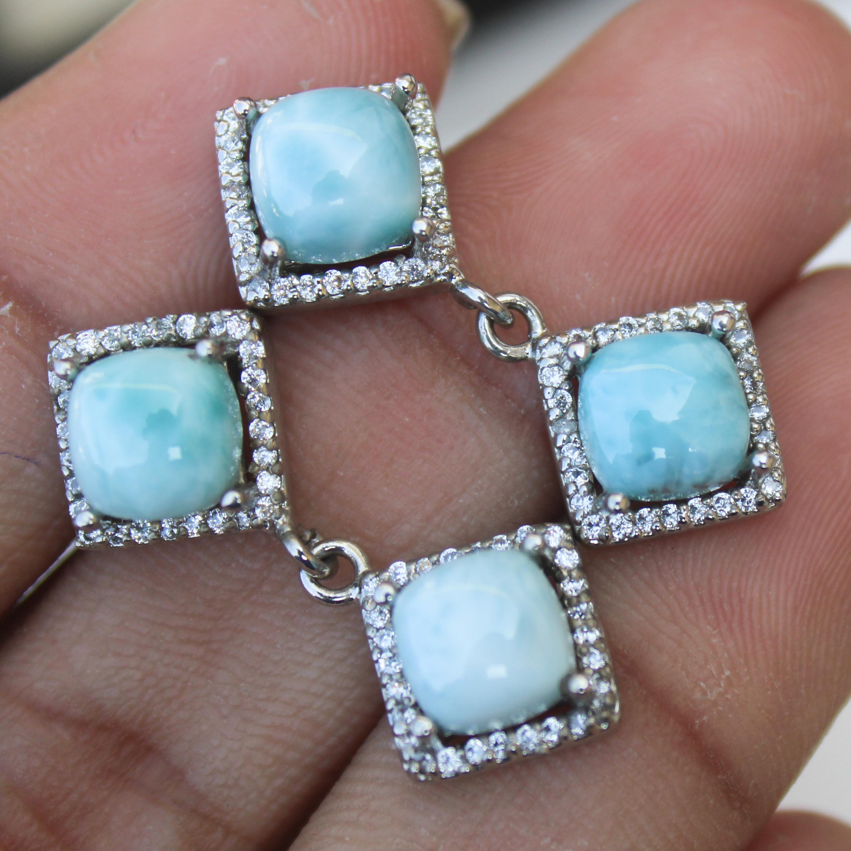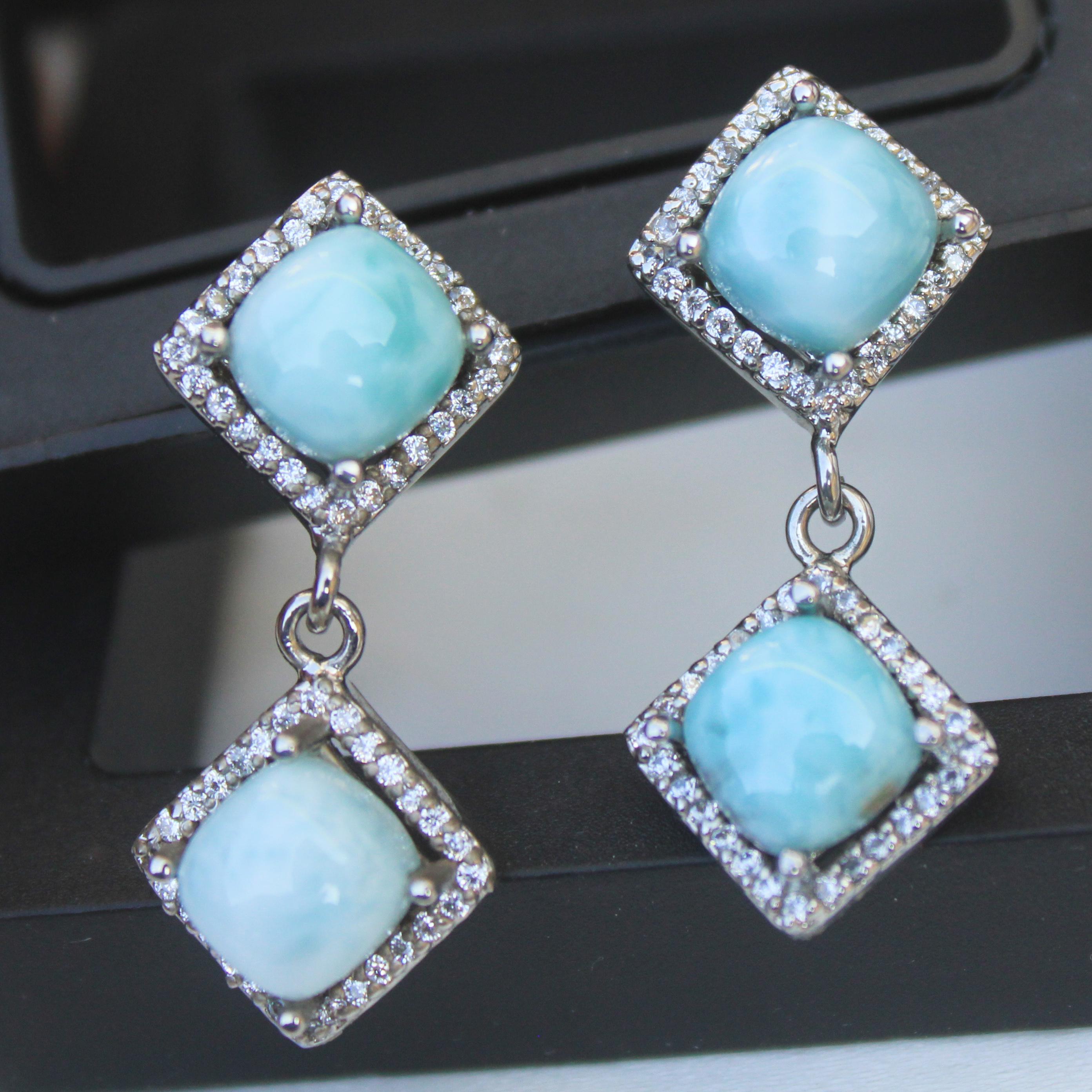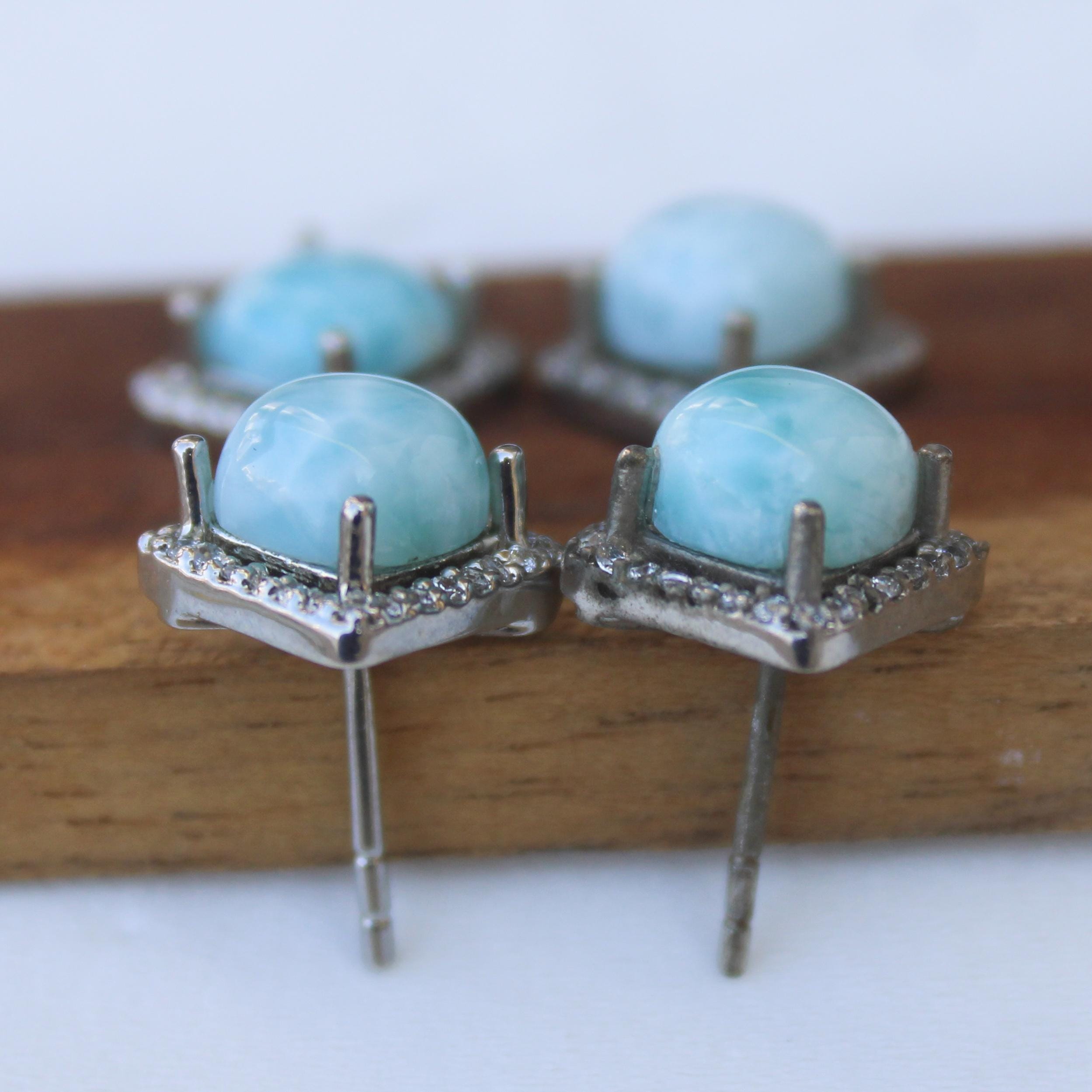 NATURAL BLUE LARIMAR STUDS WITH STERLING SILVER