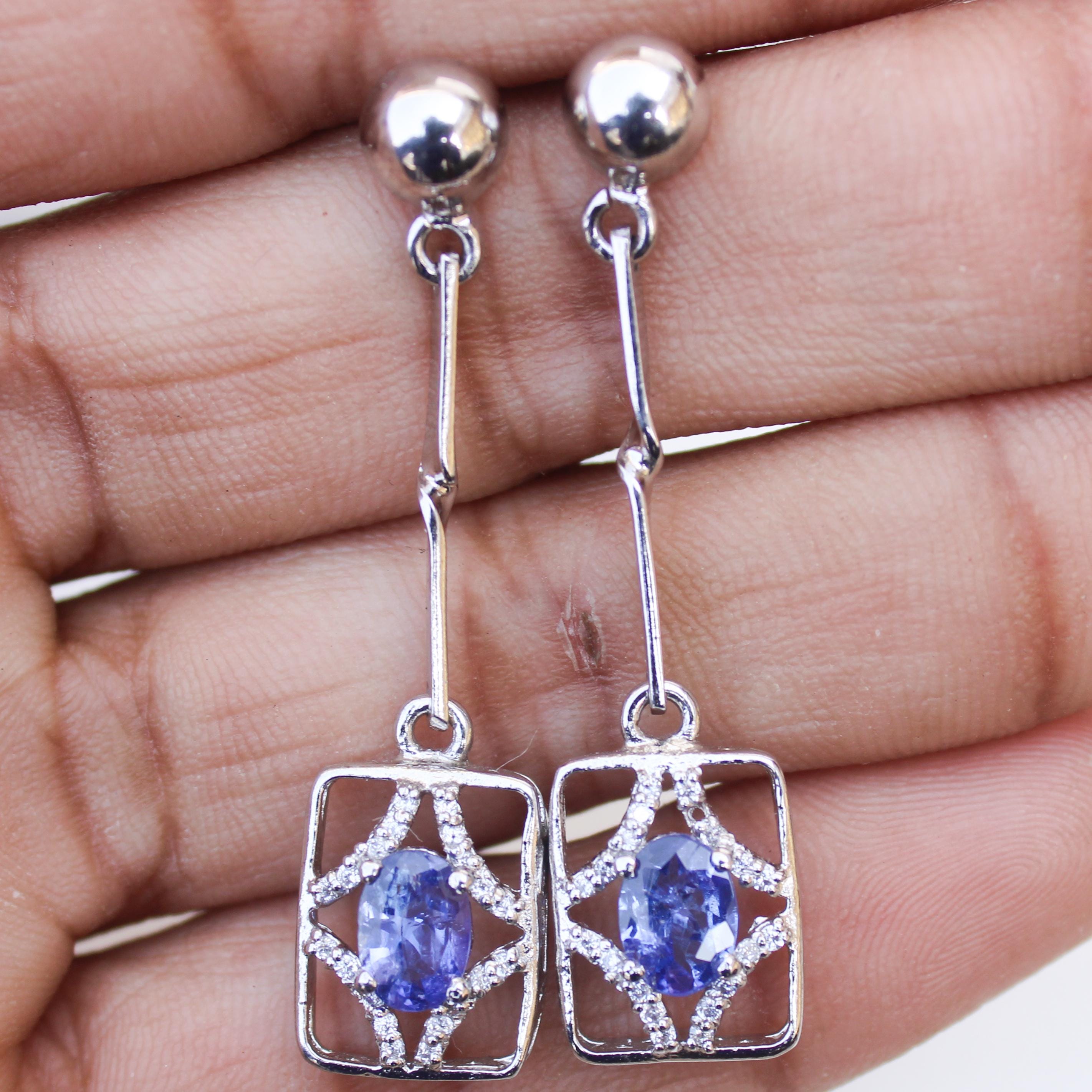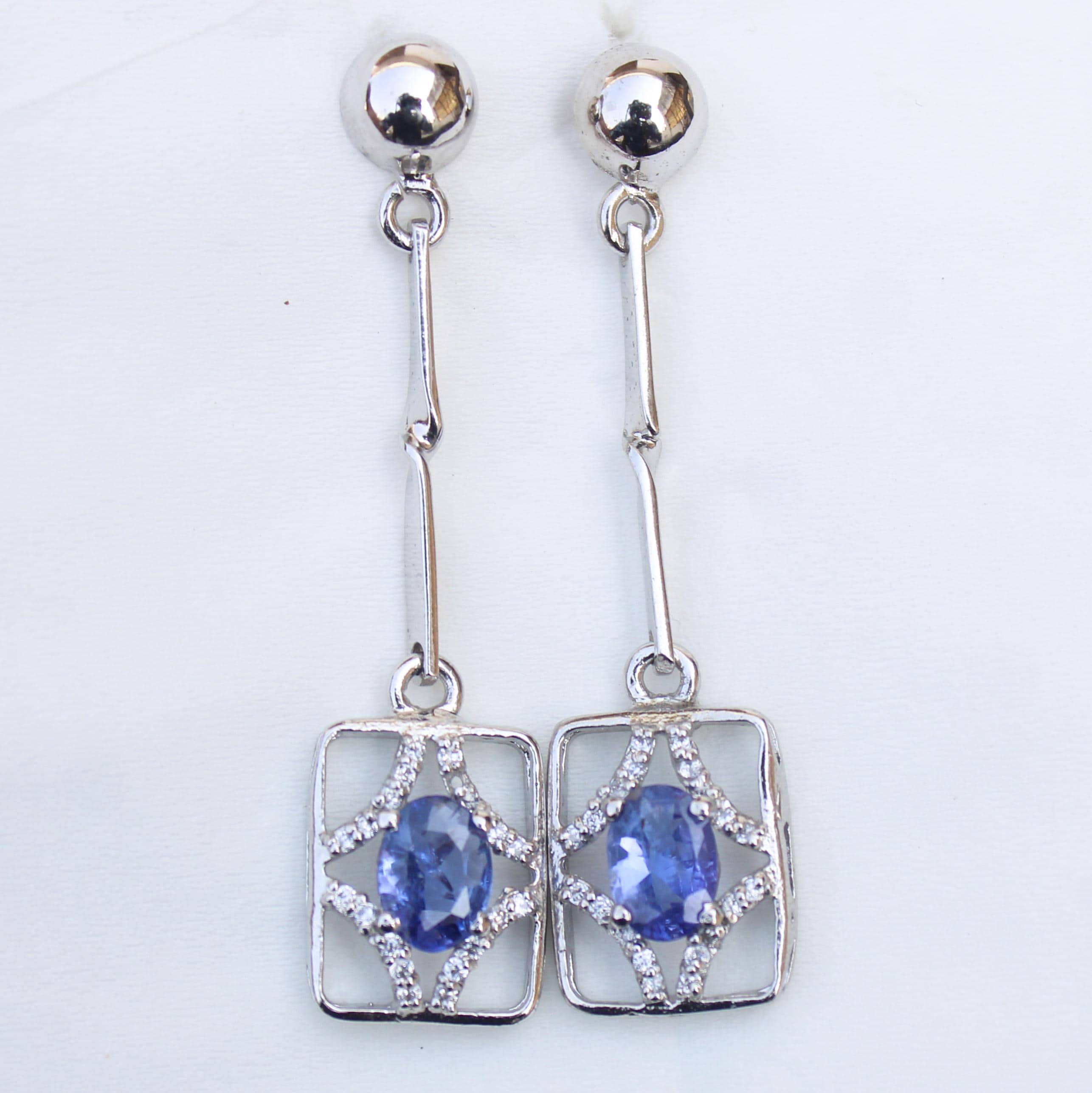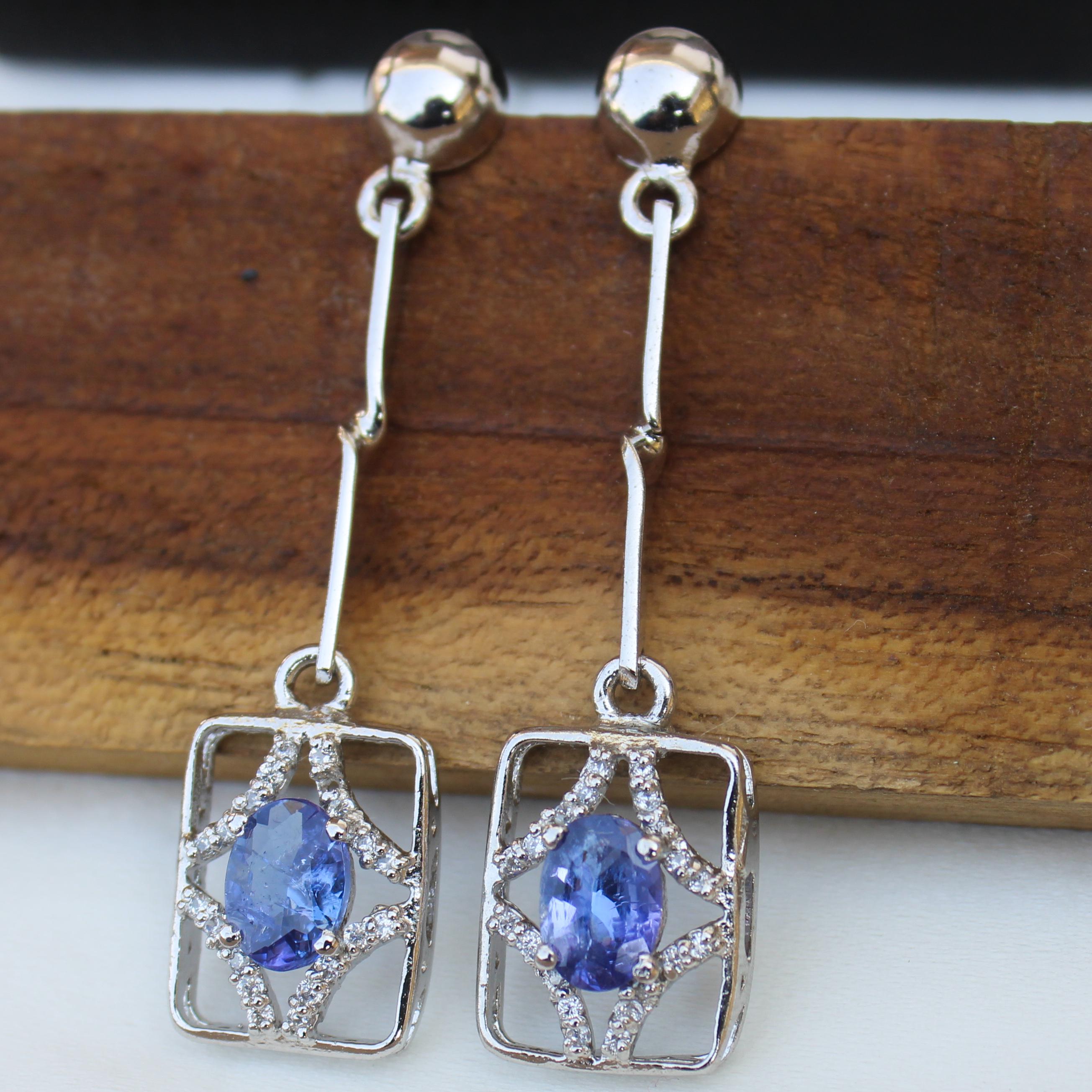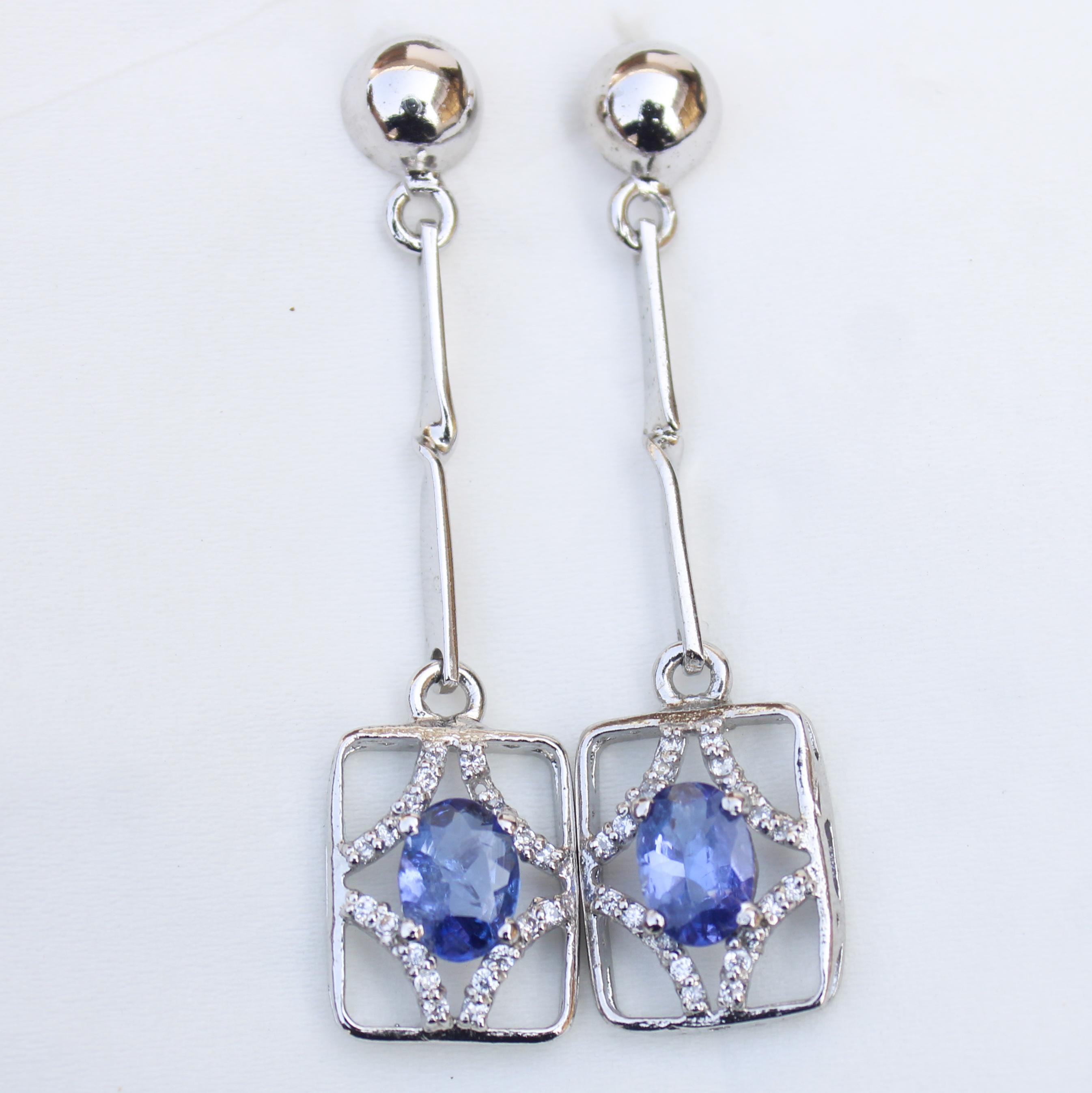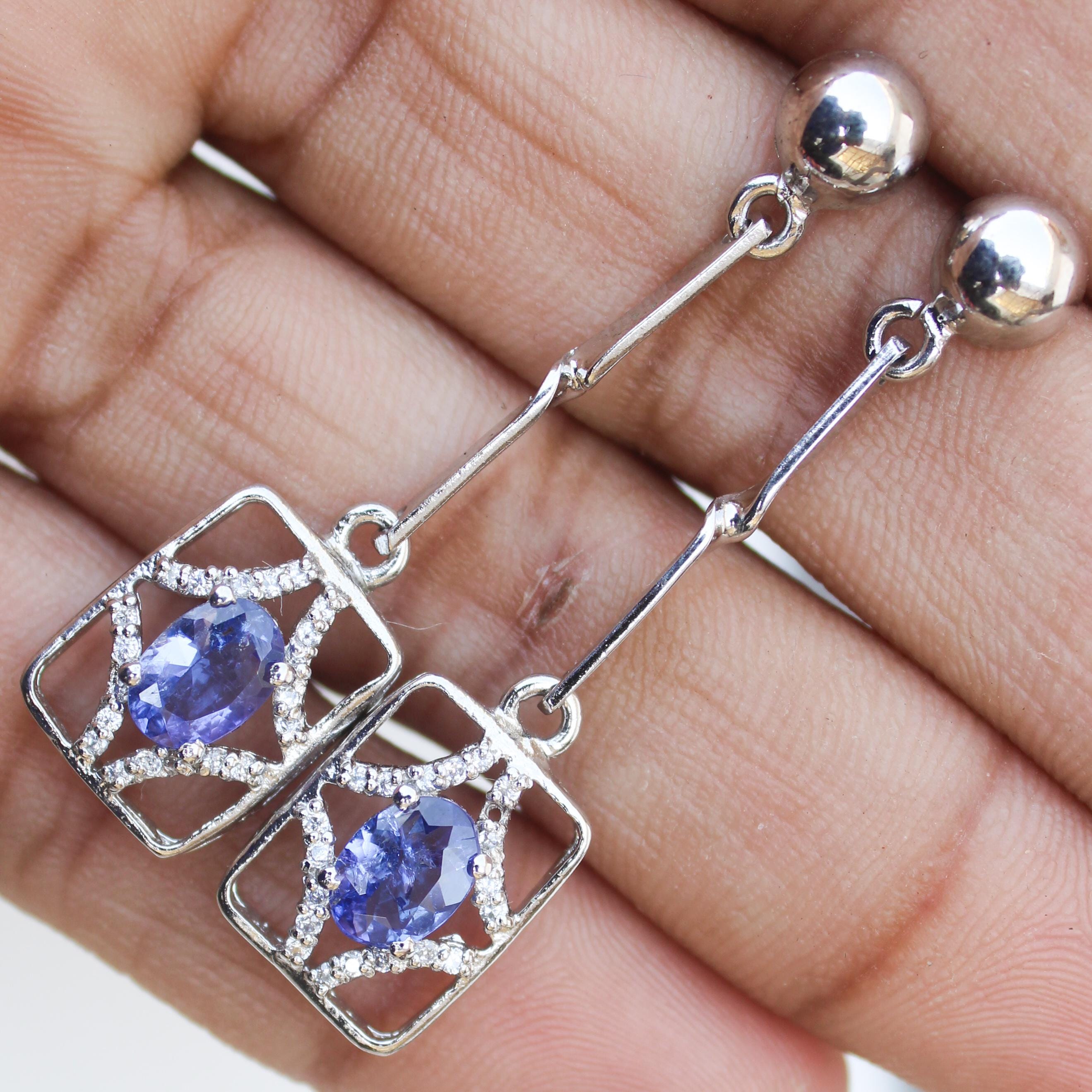 NATURAL BLUE TANZANITE STUDS WITH STERLING SILVER