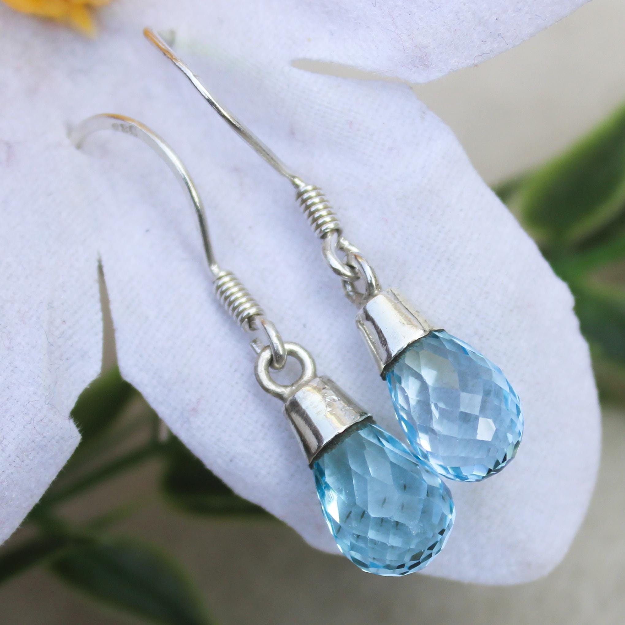 NATURAL BLUE TOPAZ EARRING WITH STERLING SILVER