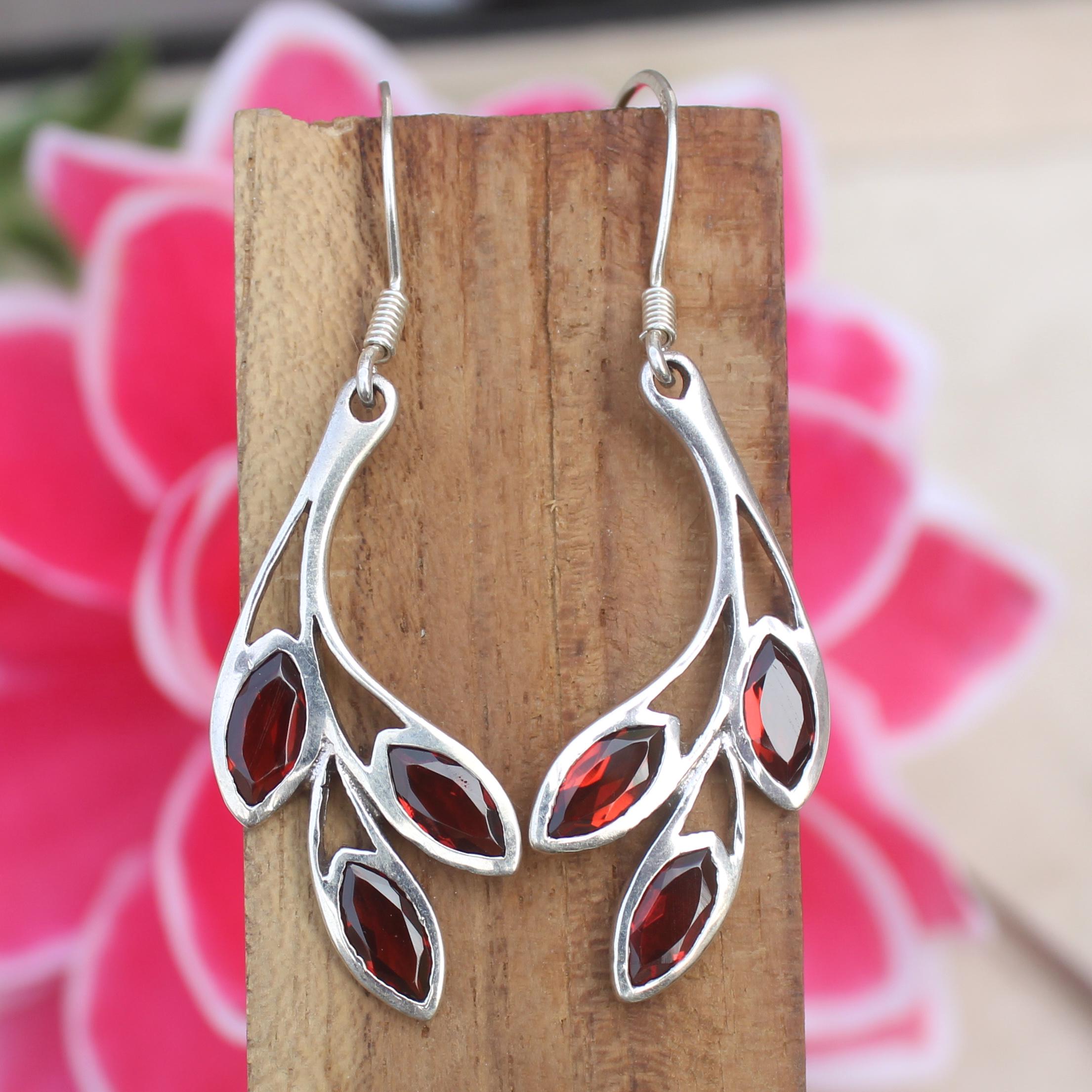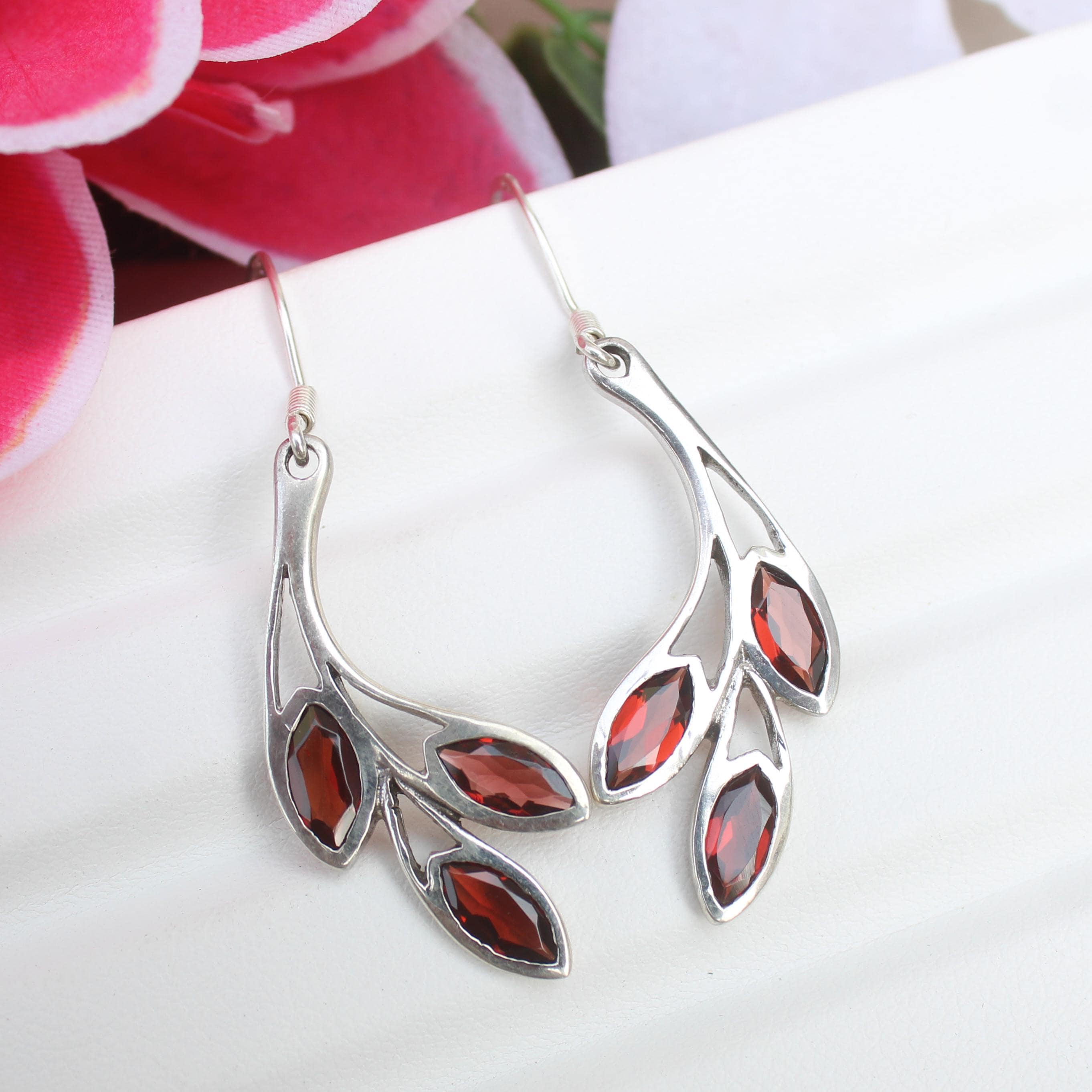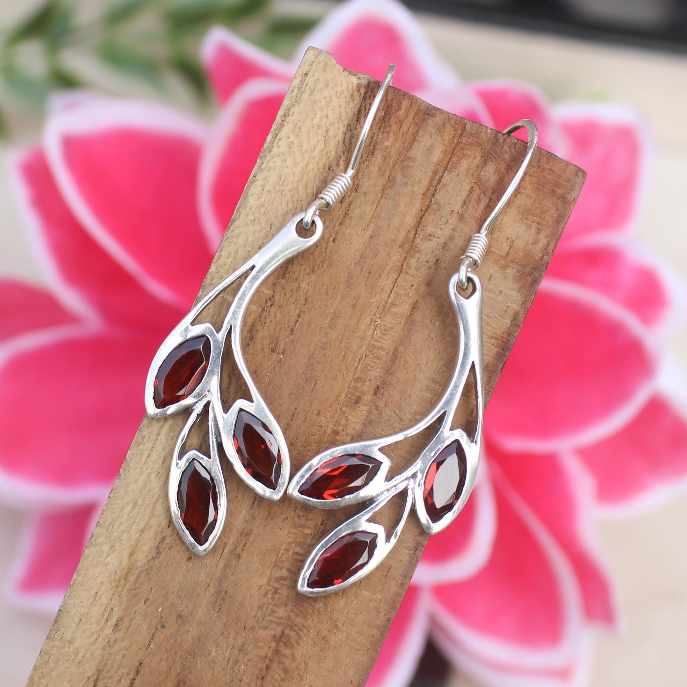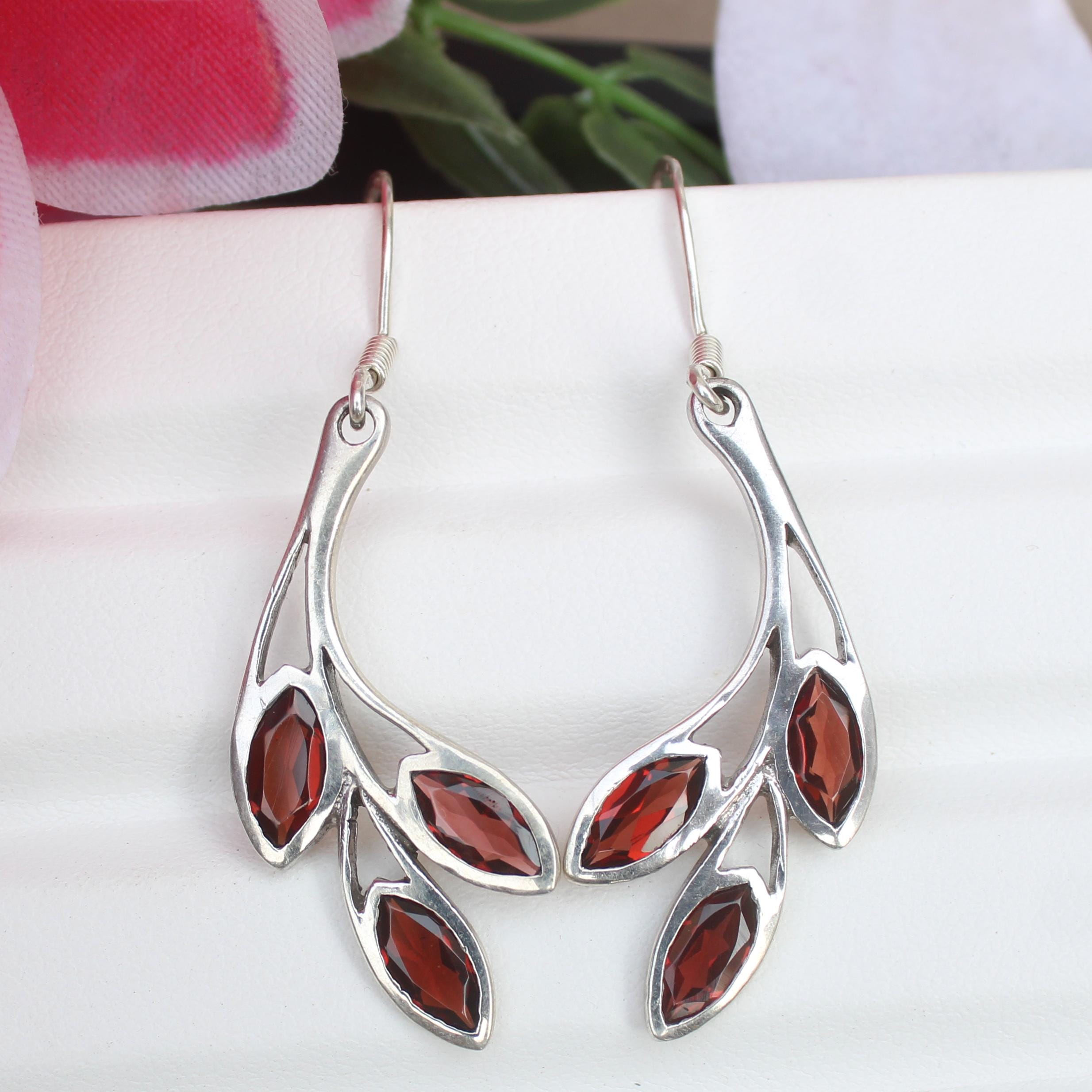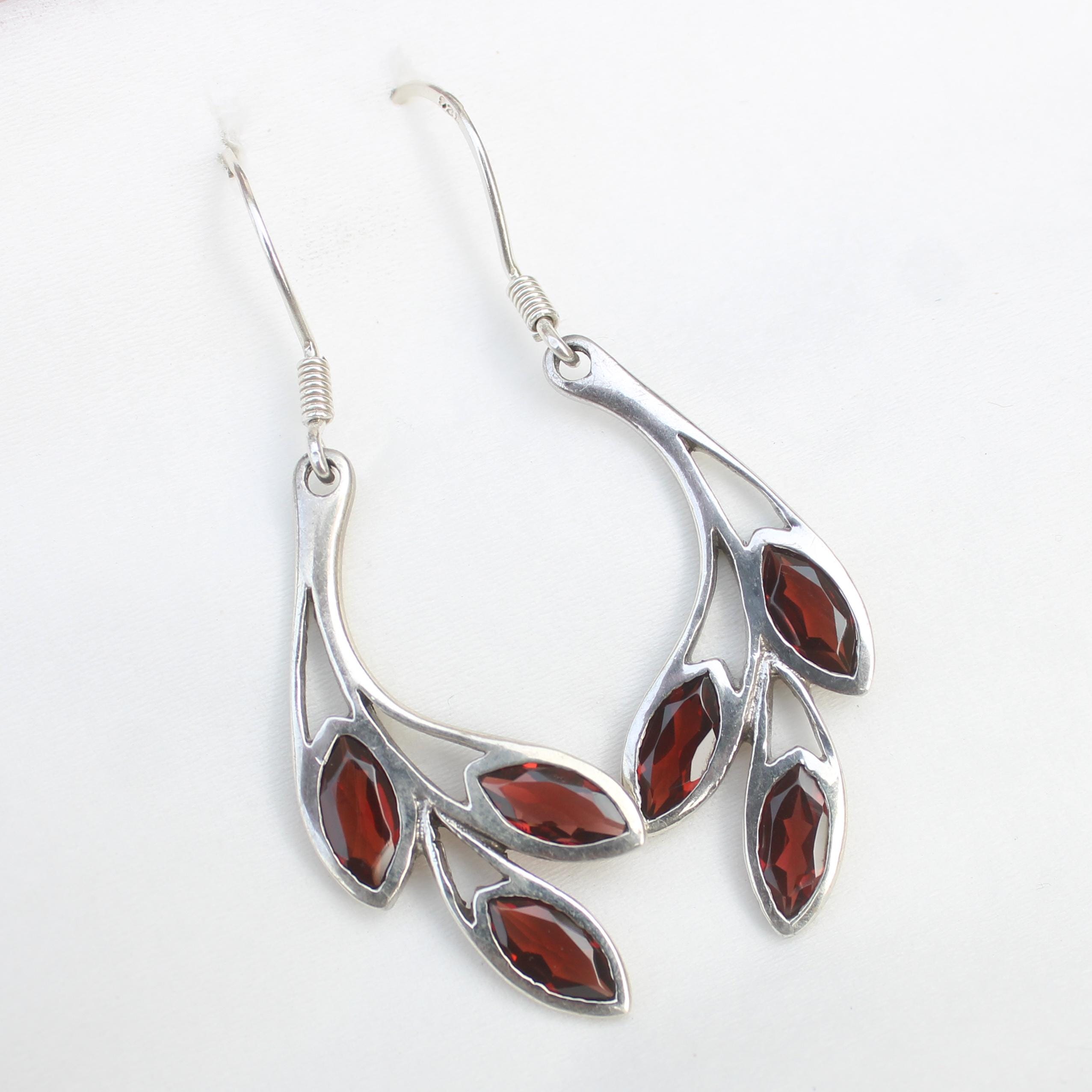NATURAL RED GARNET EARRING WITH STERLING SILVER