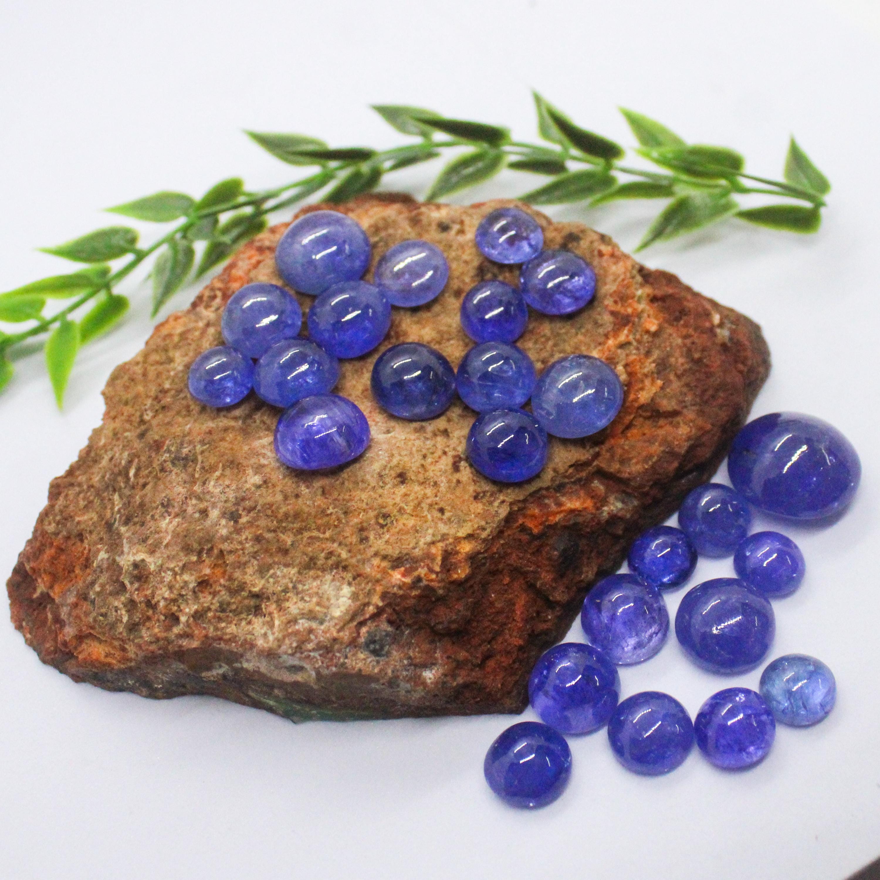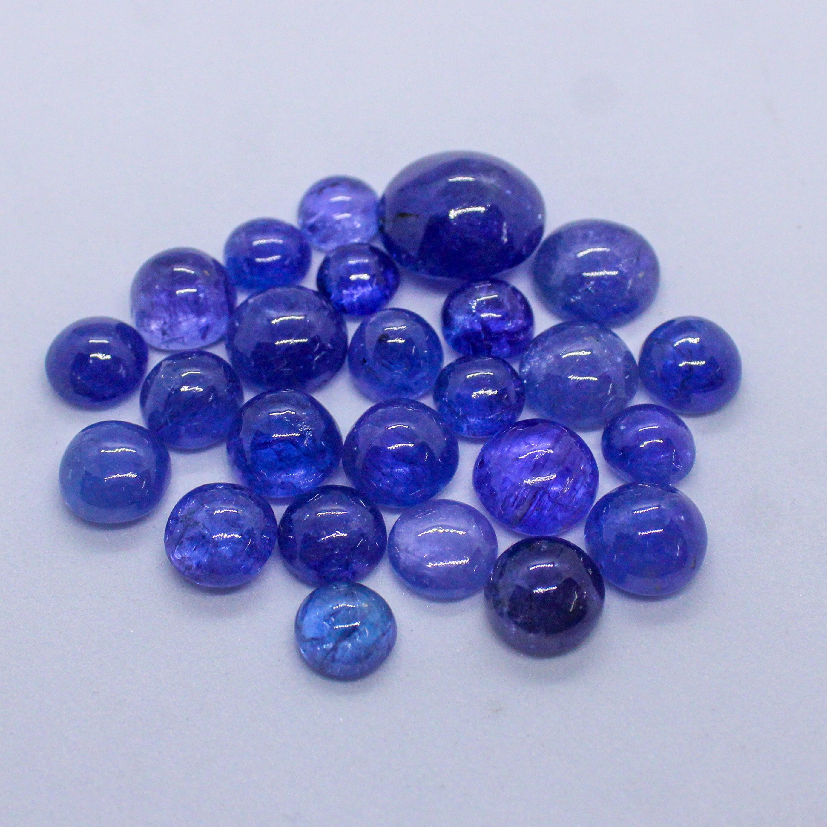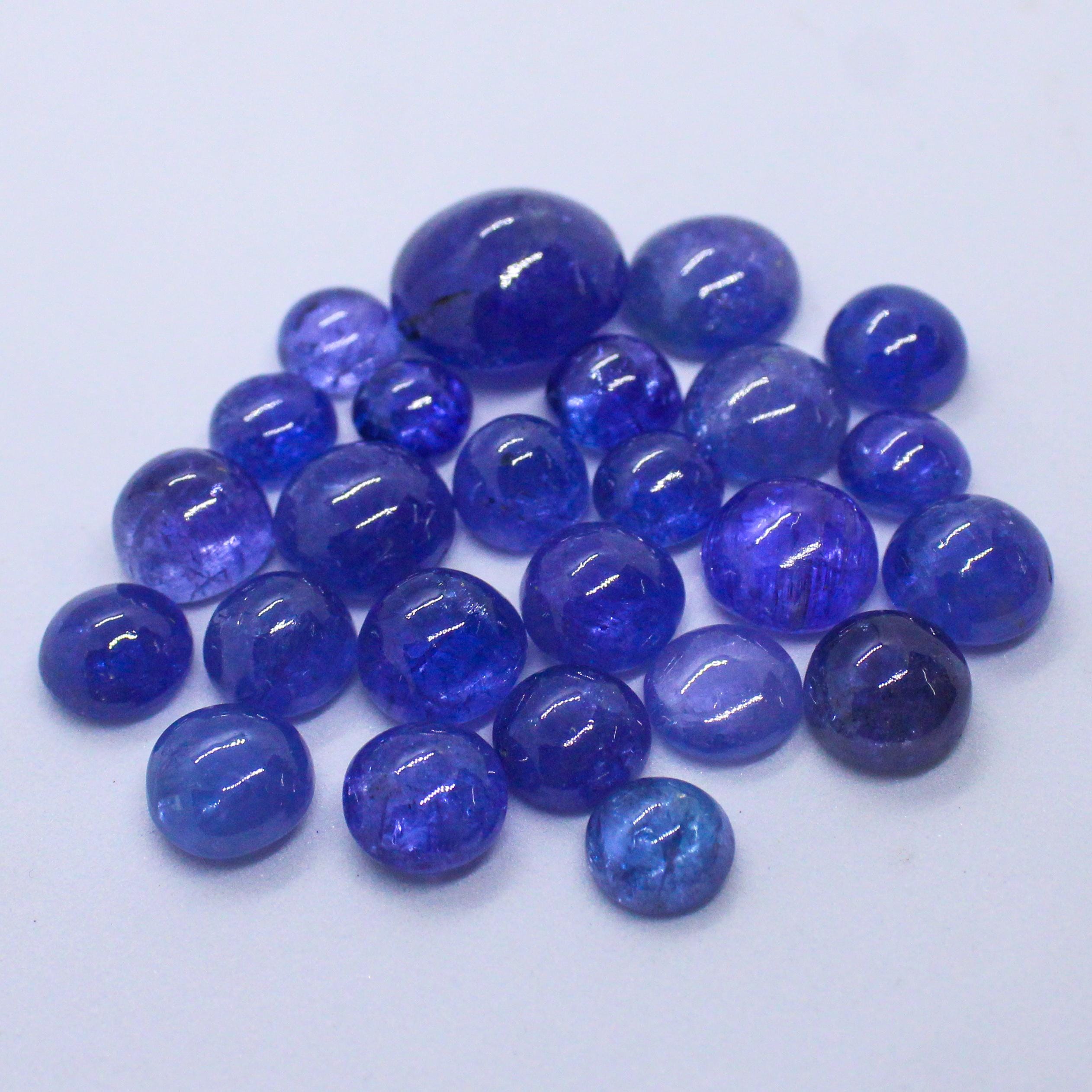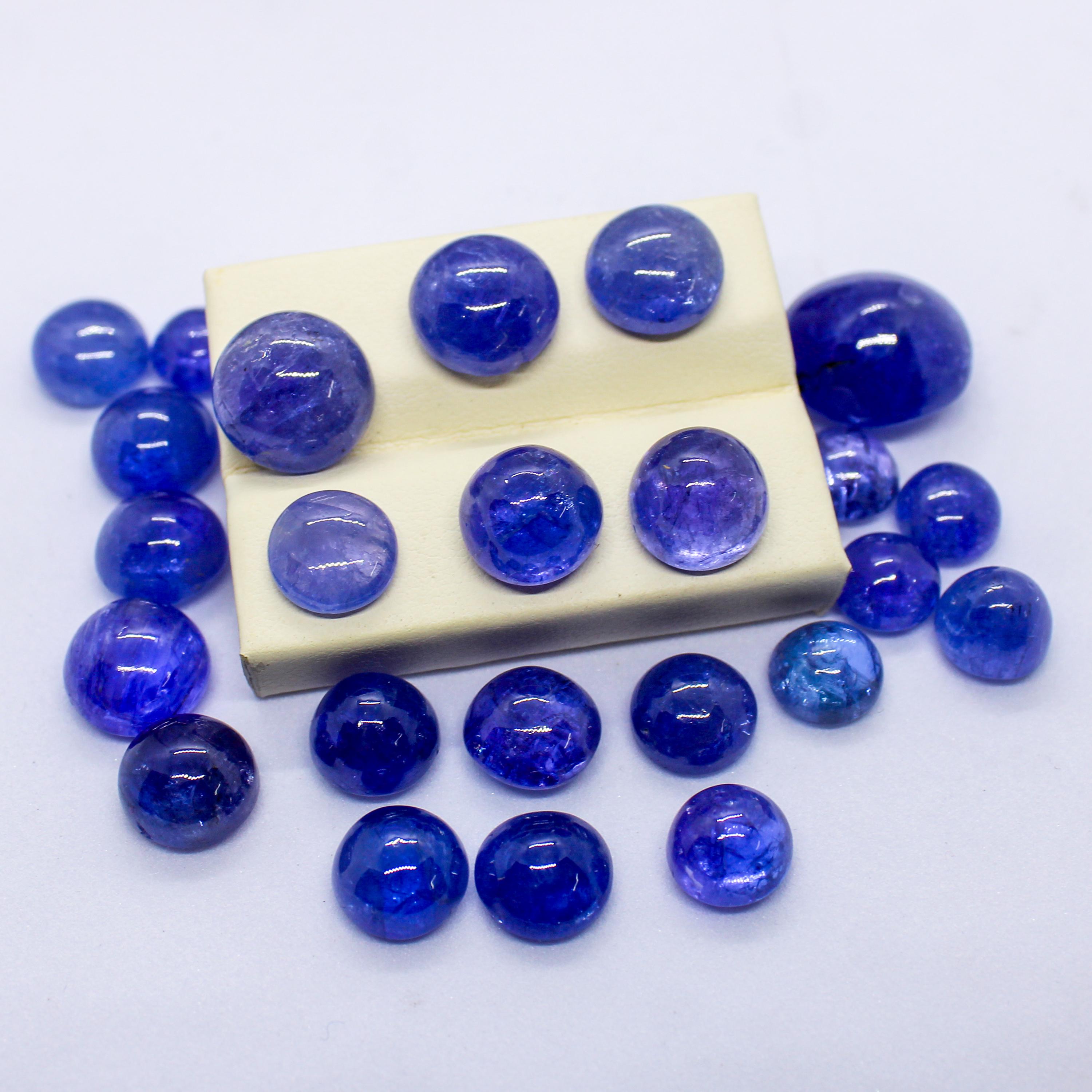 GEMSTONE - NATURAL BLUE TANZANITE ROUND CABOCHON LOT